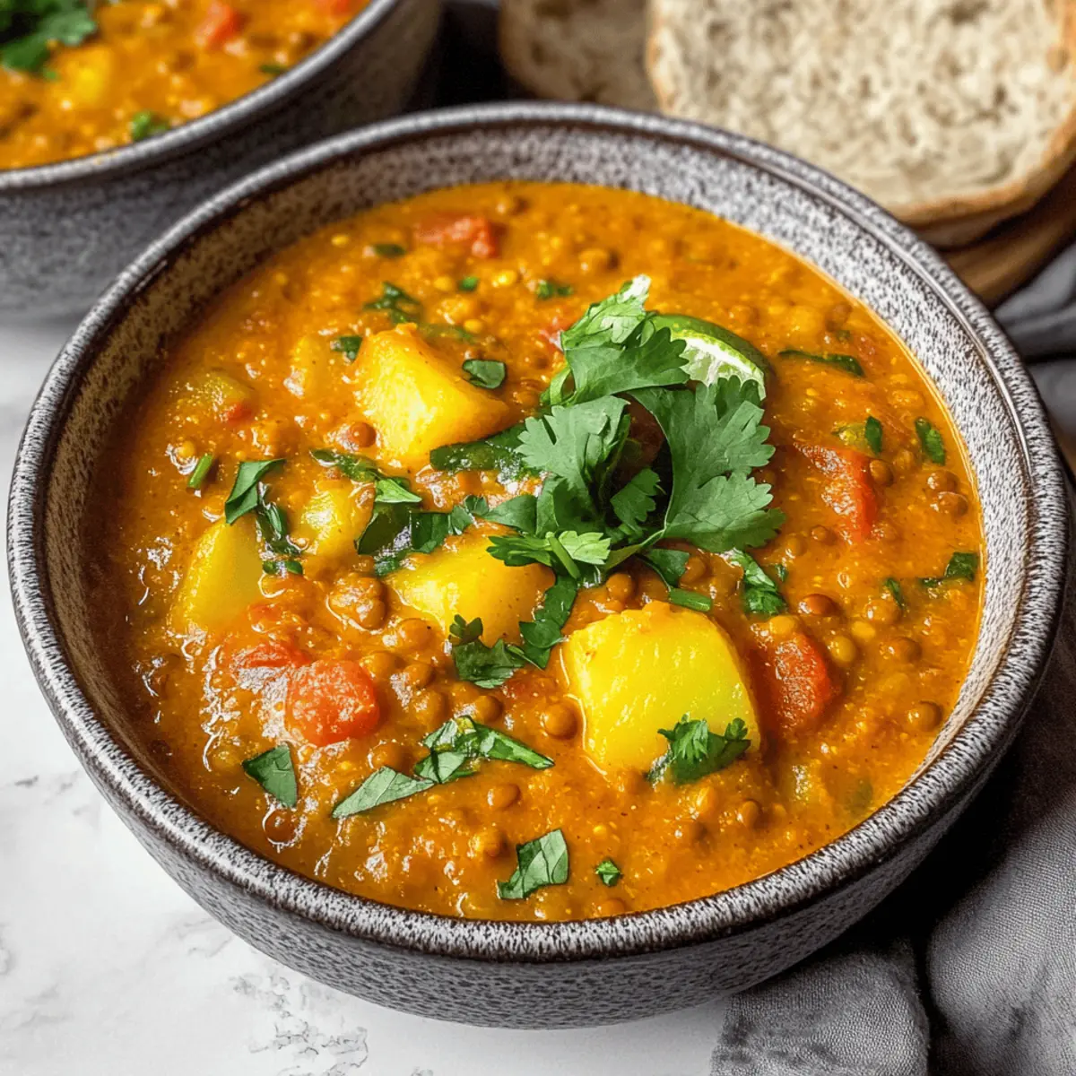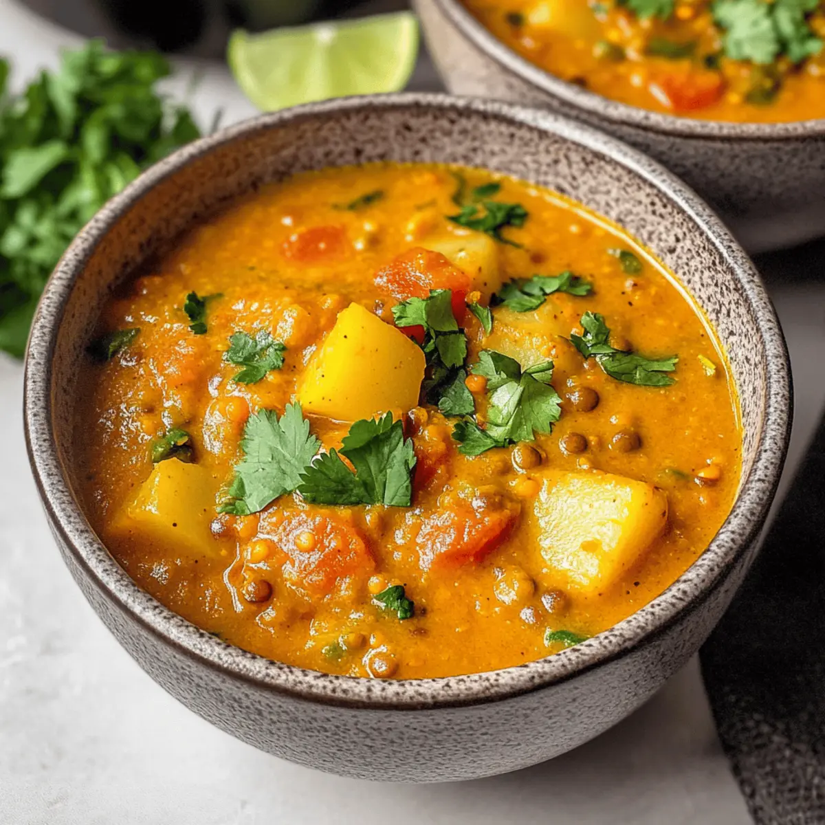 Die Aromen einer thailändischen Straße zogen mich wie ein magnetisches Leuchten an – lebhaft und verführerisch. Als ich durch die bunten Stände schlenderte, entdeckte ich die Inspiration für meinen heutigen Beitrag: die einfache thailändische rote Curry-Linsen-Kartoffelsuppe. Diese köstliche, vegane Suppe ist nicht nur ein Schmaus für die Sinne, sondern auch ein wahres Wohlfühlgericht, das in weniger als einer Stunde zubereitet ist. Mit ihrem wärmenden Charakter und der unkomplizierten Zubereitung im einem einzigen Topf ist sie perfekt für hektische Wochentage oder gemütliche Abende zu Hause. Ob du ein erfahrener Koch oder ein Neuling bist, diese Suppe wird dich begeistern – und lässt sich wunderbar nach deinem persönlichen Geschmack anpassen. Bereit, in die Welt der Aromen einzutauchen? Warum wirst du diese Suppe lieben? Einfachheit: Die Zubereitung ist mühelos und erfordert nur grundlegende Kochkünste, sodass du dich ganz auf die Aromen konzentrieren kannst. Vielfältigkeit: Diese Suppe passt sich deinen Vorlieben an – experimentiere mit verschiedenen Gemüse oder intensiviere den Geschmack mit mehr Curry-Paste. Herzhaft und gesund: Sie ist nicht nur vegan, sondern auch nahrhaft und bietet eine ausgewogene Mahlzeit voller Proteine und Ballaststoffe. Kulinarisches Erlebnis: Jeder Löffel vereint die warmen Gewürze des Currys mit der cremigen Textur von Linsen, was sie zu einem Wohltat macht. Schnell zubereitet: Mit einer Kochzeit von nur 60 Minuten ist sie der perfekte Begleiter für stressige Wochentage. Für eine weitere köstliche Idee schau dir doch auch unser Rezept für Kunst der Espresso an! Zutaten für die einfache thailändische rote Curry Kartoffel-Linsen-Suppe • Diese köstliche Suppe benötigt eine Auswahl an frischen und aromatischen Zutaten. Für die Basis Zwiebel – sorgt für die Geschmacksgrundlage; fein gehackte Zwiebeln fördern die gleichmäßige Verteilung im Gericht. Natives Olivenöl Extra – zum Anbraten der Zwiebeln; kann durch Wasser ersetzt werden, wenn du ein fettfreies Gericht möchtest. Knoblauch – intensiviert den Geschmack; frische Zehen sind für den besten Geschmack empfehlenswert. Für das Herz der Suppe Thailändische rote Curry-Paste – fügt Würze und Geschmacksprofil hinzu; passe die Menge an, je nach gewünschtem Schärfegrad. Achte auf vegane Versionen ohne Fischsoße. Kartoffeln – tragen zur Cremigkeit der Suppe bei; Süßkartoffeln oder Kürbis sind ebenfalls gute Alternativen. Karotten – verleihen Süße und Farbe; auch andere Wurzelgemüse sind geeignet. Rote Linsen – die Hauptquelle für Protein; das Abspülen vor dem Kochen entfernt überschüssige Stärke. Gemüsebrühe – die flüssige Basis; sowohl hausgemachte als auch gekaufte Brühe sind verwendbar. Korianderblätter – für zusätzlichen Geschmack; kann weggelassen werden, wenn du Koriander nicht magst. Salz und Pfeffer – für die Würze; nach Geschmack anpassen. Für das gewisse Etwas Rote Paprikaflocken & Limettensaft – optional; geben zusätzliche Schärfe und Frische. Mit diesen Zutaten wirst du in der Lage sein, eine unwiderstehliche einfache thailändische rote Curry Kartoffel-Linsen-Suppe zu kreieren, die nicht nur vegan, sondern auch voller Geschmack ist! Schritt-für-Schritt-Anleitung für die einfache thailändische rote Curry Kartoffel-Linsen-Suppe Schritt 1: Zwiebeln anbraten In einem großen Topf bei hoher Hitze das native Olivenöl erhitzen und die fein gehackten Zwiebeln hinzufügen. Brate sie für 1 bis 3 Minuten an, bis sie weich und aromatisch sind. Die Zwiebeln sollten transparent sein, bevor du mit dem nächsten Schritt fortfährst. Schritt 2: Knoblauch und Curry-Paste hinzufügen Füge den gehackten Knoblauch und die thailändische rote Curry-Paste zu den Zwiebeln hinzu und brate alles für weitere 1 Minute an. Rühre gut um, damit sich die Aromen entfalten können und die Mischung schön duftet. Achte darauf, dass die Paste gleichmäßig verteilt ist. Schritt 3: Gemüse anbraten Integriere die gewürfelten Kartoffeln und Karotten in den Topf und brate sie etwa 5 Minuten lang an, bis sie leicht gebräunt sind. Rühre regelmäßig um, damit das Gemüse gleichmäßig gegart wird und eine schöne Farbe erhält. Schritt 4: Linsen und Brühe hinzufügen Gib die abgewaschenen roten Linsen, die Gemüsebrühe und die Hälfte der Korianderblätter in den Topf. Bringe die Mischung zum Kochen und achte darauf, dass es sprudelnd kocht. Die Linsen beginnen schnell zu quellen und werden die Basis der einfachen thailändischen roten Curry Kartoffel-Linsen-Suppe bilden. Schritt 5: Köcheln lassen Senkere die Hitze, decke den Topf ab und lasse die Suppe etwa 20 Minuten lang köcheln. Rühre gelegentlich um, bis das Gemüse zart und die Linsen gut durchgegart sind. Du wirst sehen, dass die Suppe eine cremige Konsistenz annimmt. Schritt 6: Textur anpassen Für eine cremigere Textur kannst du die Hälfte der Suppe vorsichtig pürieren. Sei vorsichtig, da die Suppe heiß ist. Diese Konsistenz wird den herzhaften Charakter der einfachen thailändischen roten Curry Kartoffel-Linsen-Suppe verbessern. Schritt 7: Abschmecken und Servieren Schmecke die Suppe mit Salz und Pfeffer ab, um die Aromen zu intensivieren. Serviere die Suppe in Schalen und garniere sie nach Belieben mit zusätzlichem Koriander und einem Spritzer Limettensaft. Genieße diese köstliche, wärmende Mahlzeit! Lagerungstipps für einfache thailändische rote Curry Kartoffel-Linsen-Suppe Zimmertemperatur:: Lass die Suppe vollständig abkühlen, bevor du sie in den Kühlschrank stellst, um die Bildung von Bakterien zu vermeiden. Kühlschrank:: Bewahre die Suppe in einem luftdichten Behälter auf, wo sie bis zu 5 Tage frisch bleibt. Vor dem Servieren gut umrühren. Gefrierschrank:: Du kannst die Suppe bis zu 1 Monat einfrieren. Achte darauf, sie in portionsgerechte Behälter zu füllen, um die Aufbewahrung zu erleichtern. Wiedererwärmung:: Erwärme die gefrorene Suppe auf dem He