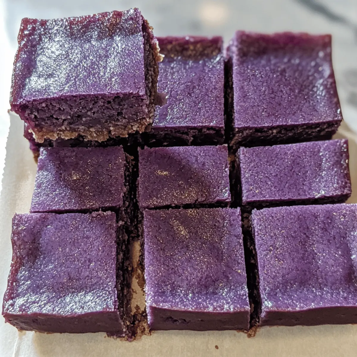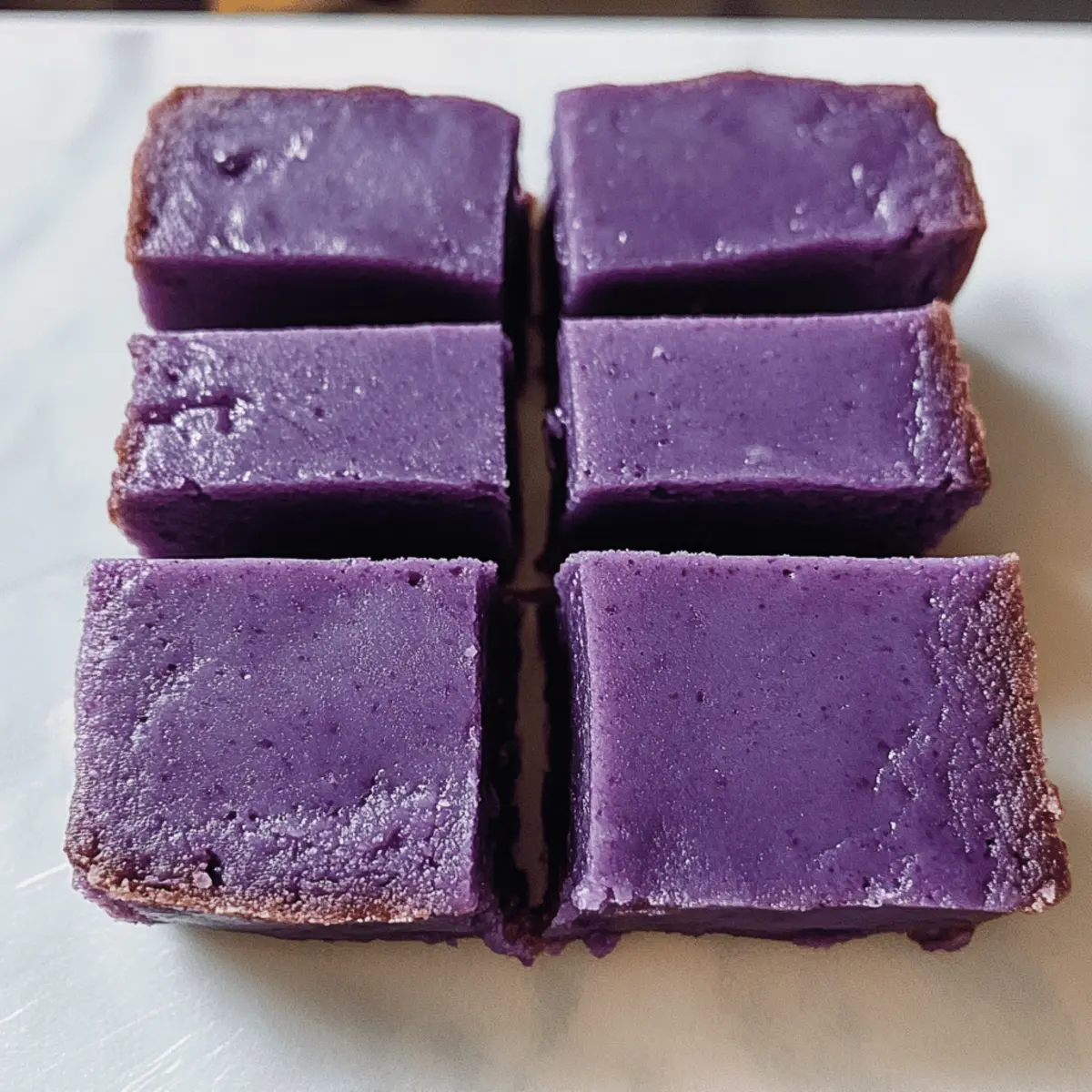 Beim ersten Bissen in die Ube Mochi Bars fühlte ich mich wie auf einer tropischen Insel, umgeben von den süßen Aromen von ube und Kokosnuss. Diese glutenfreien Leckereien sind nicht nur ein Genuss für den Gaumen, sondern auch ein Kinderspiel in der Zubereitung: Mit weniger als zehn Zutaten und einer einzigen Schüssel in der Hand, verwandle ich einfache Zutaten in eine himmlische Köstlichkeit, die perfekt für jeden Anlass ist. Die zähe Textur dieser Mochi-Bars ist einfach unwiderstehlich und macht sie zu einem idealen Dessert für sowohl Anlässe als auch als süßen Snack. Hast du schon einmal darüber nachgedacht, wie einfach es sein könnte, ein Stück paradiesischer Glückseligkeit zu Hause zu zaubern? Warum solltest du Ube Mochi ausprobieren? Einfachheit: Der gesamte Prozess ist mühelos und benötigt weniger als zehn Zutaten – perfekt für alle, die in der Küche schnell Ergebnisse sehen möchten! Zäher Genuss: Die Kombination von ube und Kokosnuss sorgt für eine einzigartige, zähe Textur, die jede Zutat wunderschön ergänzt. Anpassungsfähig: Experimentiere mit verschiedenen Milchsorten oder füge Schokoladenstückchen hinzu, um dein eigenes, individuelles Dessert zu kreieren. Schnell zubereitet: In nur einer Schüssel gemixt und in etwa 45 Minuten gebacken – deine Gäste werden genauso begeistert sein wie du! Kulinarisches Erlebnis: Die Ube Mochi Bars bringen ein Stück tropisches Paradies direkt in deine Küche – probiere auch unser Kinder Bueno Dessert für noch mehr süße Inspiration! Ube Mochi Zutaten Für den Teig Ungesalzene Butter – sorgt für Feuchtigkeit und Reichhaltigkeit; Vorteilhaft ist es, die geschmolzene Butter leicht abkühlen zu lassen. Zucker – süßt die Mochi; du kannst die Menge nach Geschmack anpassen, wenn du es süßer magst. Große Eier – geben Struktur und Feuchtigkeit; achte darauf, dass sie Zimmertemperatur haben für eine bessere Vermischung. Ube-Extrakt – verleiht die charakteristische lila Farbe und den einzigartigen Geschmack; ersetze ihn durch Ube-Pulver, wenn erforderlich, aber achte auf die Intensität. Mochiko-Mehl – die Hauptzutat, die der Mochi seine zähe Textur verleiht; kann durch klebriges Reis-Mahl ersetzt werden. Backpulver – als Treibmittel wichtig; stelle sicher, dass es frisch ist für den richtigen Auftrieb. Kondensmilch – sorgt für Cremigkeit; du kannst auch Mandelmilch oder andere pflanzliche Milch verwenden, wenn nötig. Kokosmilch – trägt zur tropischen Note und Feuchtigkeit bei; kannst du durch Sahne oder Vollmilch für einen reichhaltigeren Geschmack ersetzen. Schritt-für-Schritt-Anleitung für Einfache Ube Mochi Schritt 1: Ofen vorheizen Heize deinen Ofen auf 175°C (350°F) vor und lege eine Backform von 23×33 cm mit Backpapier aus. Achte darauf, dass das Backpapier an den Seiten übersteht, um das Herausnehmen der Ube Mochi später zu erleichtern. Ein gut vorbereiteter Arbeitsbereich ist entscheidend für den Erfolg des Rezepts. Schritt 2: Butter und Zucker mischen In einer großen Schüssel die leicht abgekühlte geschmolzene ungesalzene Butter mit dem Zucker gründlich verrühren. Verwende einen Handmixer oder einen Schneebesen, bis die Mischung eine homogene Konsistenz erreicht hat und der Zucker gut eingearbeitet ist. Diese Basis sorgt für die nötige Süße deiner Ube Mochi. Schritt 3: Eier hinzufügen Gib die großen Eier einzeln zu der Butter-Zucker-Mischung und rühre jedes Ei gründlich ein, bevor du das nächste hinzufügst. Es ist wichtig, dass die Eier Zimmertemperatur haben, um eine optimale Emulsion zu erzielen, wodurch die Struktur der Mochi verbessert wird. Die Mischung sollte glatt und cremig aussehen. Schritt 4: Ube-Extrakt einrühren Füge nun den Ube-Extrakt hinzu und rühre gründlich um, bis der kräftige violette Farbton gleichmäßig in der Mischung verteilt ist. Der Ube-Extrakt ist essentiell, um den charakteristischen Geschmack und die schöne Farbe der Ube Mochi zu erreichen. Achte darauf, dass keine Klumpen zurückbleiben. Schritt 5: Trockene Zutaten kombinieren Siebe das Mochiko-Mehl und das Backpulver in die Schüssel und mische alles vorsichtig, bis die Zutaten etwa zu 80-90% verbunden sind. Es ist wichtig, nicht zu lange zu rühren, um eine zähe Textur zu erreichen, die für Ube Mochi typisch ist. Die Mischung sollte etwas klumpig sein. Schritt 6: Flüssige Zutaten hinzufügen Gieße die Kondensmilch und die Kokosmilch in die Schüssel und rühre die Mischung weiter, bis ein glatter Teig ohne Klumpen entsteht. Die Flüssigkeiten verleihen den Ube Mochi einen köstlichen, cremigen Geschmack und eine zähe Textur, die sie unwiderstehlich machen. Schritt 7: Teig in die Backform füllen Transferiere nun den fertigen Teig in die vorbereitete Backform und streiche die Oberfläche mit einem Spatel glatt. Stelle sicher, dass der Teig gleichmäßig verteilt ist. Dies sorgt dafür, dass die Ube Mochi gleichmäßig backen und eine schöne Form annehmen. Schritt 8: Backen und abkühlen lassen Backe die Ube Mochi für ca. 45 Minuten oder bis ein Tester, den du in die Mitte steckst, mit minimalen trockenen Krümeln herauskommt. Der Teig sollte an den Rändern fest und in der Mitte leicht nachgeben. Lass die Ube Mochi vollständig in der Form abkühlen, bevor du sie in Stücke schneidest. Expertentipps für Ube Mochi Richtige Temperatur: Achte darauf, dass die Eier Zimmertemperatur haben, um eine optimale Vermischung und Struktur für den Ube Mochi zu gewährleisten. Butter abkühlen: Lass die geschmolzene Butter leicht abkühlen, bevor du sie mit Zucker vermischst; dies verhindert ein Kochen der Eier. Nicht übermixen: Mische die trockenen Zutaten nur bis etwa 80-90% kombiniert sind; ein leicht klumpiger Teig sorgt für die charakteristische zähe Textur. Papier verwenden: Lege Backpapier in die Form, damit die Ube Mochi nach dem Backen leicht herausgenommen werden können. Vollständig abkühlen: Lass die Mochi vollständig in der Form abkühlen, um saubere Schnitt
