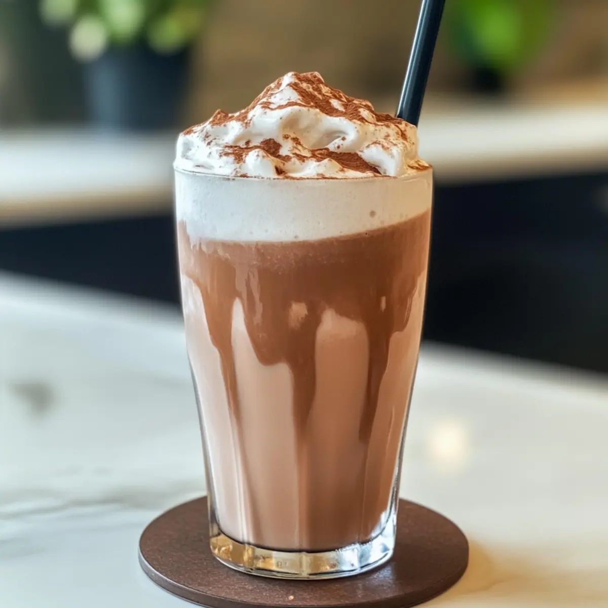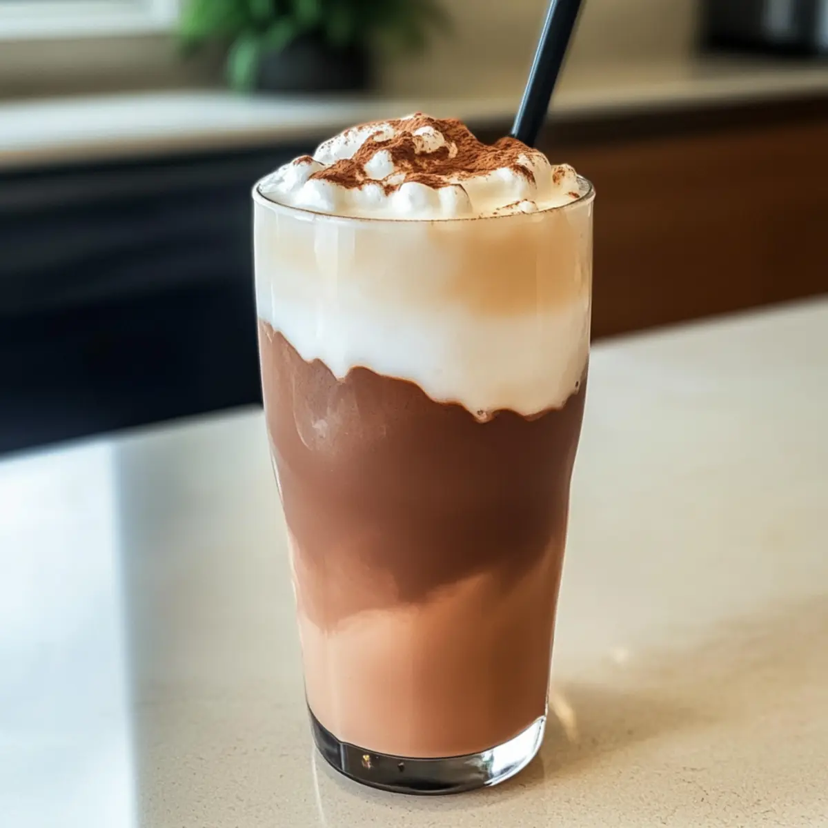 Eines sonnigen Nachmittags entdeckte ich in meinem Kühlschrank die perfekte Grundlage für ein erfrischendes Getränk: eine Kombination aus cremigem Kakao und aromatischem Schwarztee. So wurde der Eisgekühlte Kakao-Milchtee geboren, der nicht nur einen köstlichen Kaffeekick als Ersatz bietet, sondern auch in nur 10 Minuten zubereitet ist. Dieses Rezept vereint die reiche Süße von Kakaosirup mit der sanften Leichtigkeit von Tee und ist die ideale Lösung für alle, die sich nach einer schnellen, hausgemachten Erfrischung sehnen. Plus, es ist vielseitig anpassbar – ob mit pflanzlicher Milch oder einer Extra-Portion Schaum obenauf. Neugierig, wie einfach es ist, diesen Genuss selbst zuzubereiten? Warum sollten Sie diesen Kakao-Milchtee probieren? Einfachheit: Die Zubereitung ist superschnell und erfordert nur grundlegende Kochfähigkeiten – in nur 10 Minuten genießen Sie Ihr Getränk. Verführerischer Geschmack: Die Kombination aus Kakaosirup und Schwarztee sorgt für ein perfektes Geschmackserlebnis, das sowohl süß als auch erfrischend ist. Vielseitigkeit: Experimentieren Sie ganz nach Belieben! Sie können die pflanzliche Milch oder sogar zusätzliche Aromen wie Vanille hinzufügen. Gesunde Alternative: Verabschieden Sie sich von zuckerhaltigen Getränken – unser Eisgekühlter Kakao-Milchtee ist eine leckere Alternative, die dennoch köstlich bleibt. Genießen Sie ihn am besten zusammen mit Snacks wie Cookies oder kleinen Gebäckstücken für den perfekten Nachmittagstee! Eisgekühlter Kakao-Milchtee Zutaten Hinweis: Diese Zutatenliste führt Sie durch die notwendigen Elemente für Ihren köstlichen Eisgekühlten Kakao-Milchtee. Für die Kakao-Mischung Kakaosirup – sorgt für Süße und reichhaltigen Kakaogeschmack; verwenden Sie bei Bedarf Schokoladensirup als Ersatz. Kakaopulver – bietet einen tiefen Schokoladengeschmack; stellen Sie sicher, dass es ungesüßt ist, um die Süße zu kontrollieren. Kondensmilch – trägt zur Cremigkeit und zusätzlichen Süße bei; kann durch Kokosmilch für eine milchfreie Variante ersetzt werden. Heißes Wasser – dient zum Ziehen des Tees und zur Erstellung der Kakaomischung; Wasser sollte etwa 80°C haben für die beste Extraktion. Für den Tee Schwarztee-Flüssigkeit (1/2 Tasse) – bildet die Teebasis; kann durch Grüntee für einen leichteren Geschmack ersetzt werden. Eiswürfel – kühlen das Getränk; essenziell für den erfrischenden Genuss. Für das Finish Milch – fügt Cremigkeit hinzu; jede Art von Milch oder pflanzlicher Milch funktioniert hier. Einfacher Sirup (1 EL) – erhöht die Süße; nach Geschmack anpassen. Käse-Schaum oder kalter Schaum (optional) – verbessert die Textur und sorgt für eine cremige Schicht obenauf. Genießen Sie diesen Eisgekühlten Kakao-Milchtee als köstliche und einfache Kaffeewahl! Step-by-Step Instructions für Eisgekühlter Kakao-Milchtee Step 1: Schwarztee ziehen Füllen Sie eine hitzebeständige Schüssel mit 100 ml heißem Wasser. Fügen Sie entweder einen Teebeutel oder etwa 1 Teelöffel lose Schwarzteeblätter hinzu. Lassen Sie den Tee für 5 Minuten ziehen, bis er eine satte Farbe erhält. Anschließend seihen Sie die Blätter oder den Teebeutel ab, um einen klaren Tee zu erhalten. Step 2: Tee abkühlen Um den Tee schnell abzukühlen, geben Sie eine Handvoll Eiswürfel direkt in den heißen Schwarztee. Rühren Sie leicht um, damit sich die Eiswürfel gleichmäßig verteilen und der Tee schnell auf eine angenehme Trinktemperatur abkühlt. Step 3: Kakaomischung anrühren In ein großes Glas geben Sie Kakaosirup, Kakaopulver und Kondensmilch. Gießen Sie 50 ml heißes Wasser dazu, um die Mischung aufzulösen. Verwenden Sie einen Milchschäumer oder einen kleinen Schneebesen und verrühren Sie alles für 30 Sekunden, bis die Zutaten gut vermischt und eine glatte Konsistenz erreicht ist. Step 4: Getränk assemblieren Gießen Sie den abgekühlten Schwarztee langsam über die Kakaomischung im Glas. Achten Sie darauf, dass sich die zwei Flüssigkeiten nicht sofort vermischen, um eine ansprechende Schichtung zu erzielen. Fügen Sie nun Ihre gewünschte Menge Milch und einfachen Sirup hinzu und rühren Sie gut um, um alles zu vereinen. Step 5: Servieren Füllen Sie ein weiteres Glas mit mehreren Eiswürfeln und gießen Sie die Kakao-Milchtee-Mischung darüber. Optional können Sie den Drink mit Käse-Schaum oder kaltem Schaum toppen, um den Genuss zu verfeinern. Ihr Eisgekühlter Kakao-Milchtee ist nun bereit, serviert und genossen zu werden! Vorbereitung des Eisgekühlten Kakao-Milchtee für stressfreie Genussmomente Der Eisgekühlte Kakao-Milchtee lässt sich perfekt im Voraus zubereiten, was Ihnen viel Zeit an hektischen Tagen spart! Bereiten Sie die Kakaomischung (Kakaosirup, Kakaopulver und Kondensmilch) bis zu 3 Tage im Voraus vor und bewahren Sie sie in einem luftdichten Behälter im Kühlschrank auf, um ihre Frische zu erhalten. Der Schwarztee kann ebenfalls im Voraus zubereitet und in einem geschlossenen Behälter im Kühlschrank für bis zu 24 Stunden gelagert werden. Am Tag des Servierens geben Sie einfach die abgekühlte Kakaomischung in ein Glas, gießen den vorbereiteten Schwarztee darüber, fügen Milch und Sirup hinzu, und rühren gut um. So genießen Sie Ihr köstliches Getränk in kürzester Zeit, ohne auf Qualität verzichten zu müssen! Expertentipps für Eisgekühlter Kakao-Milchtee Frisch Brühender Tee: Verwenden Sie immer frisch gebrühten Schwarztee für den besten Geschmack. Achten Sie darauf, dass er nicht überzogen wird, um Bitterkeit zu vermeiden. Süßung Anpassen: Wenn Ihr Kakao-Milchtee zu bitter ist, beginnen Sie mit weniger Sirup und fügen Sie nach Geschmack mehr hinzu; das sorgt für eine perfekte Balance! Eiswürfel Strategisch: Fügen Sie die Eiswürfel nach dem Ziehen des Tees hinzu, um den Tee schnell abzukühlen, ohne dass er verwässert. Variationen Ausprobieren: Experimentieren Sie mit verschiedenen pflanzlichen Milchsorten oder zusätzlichen 