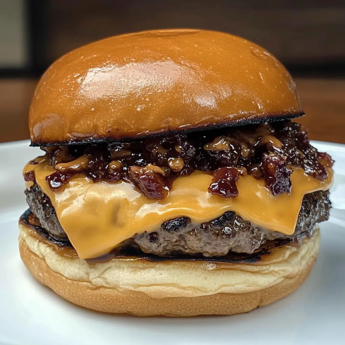 Es war ein jener Tag, an dem ich Lust auf etwas ganz Besonderes hatte – einen Burger, der meine Geschmacksknospen zum Tanzen bringt. Der Erdnussbutter Speck Marmelade Burger kombinierte unerwartete Aromen und versprach eine perfekte Balance aus süß und salzig. Diese geniale Kreation bringt nicht nur Abwechslung auf den Grill, sondern ist auch ein echter Hit für jedes BBQ oder zum entspannten Abendessen. Schnelle Zubereitung und der herzliche Charakter dieser Speise machen sie zu einer idealen Wahl; hier kommen Freunde und Familie garantiert auf ihre Kosten. Vielleicht fragt ihr euch, wie man eine solche geschmackliche Explosion zaubern kann? Lasst uns gemeinsam diesen unvergesslichen Burger kreieren! Warum wirst du diesen Burger lieben? Einzigartige Aromen: Der Erdnussbutter Speck Marmelade Burger verbindet unerwartete Geschmäcker, die einfach unwiderstehlich sind. Schnelle Zubereitung: In nur wenigen Schritten zauberst du ein Gourmet-Erlebnis, perfekt für spontane Grillabende. Familienfreundlich: Dieser Burger trifft den Nerv von Groß und Klein – ein echter Crowd-Pleaser! Vielseitigkeit: Variiere mit verschiedenen Aufstrichen oder Gemüse, um deinen persönlichen Twist zu kreieren. Probiere auch unsere leckeren Vorschläge wie den Proteinriegel Schokoladen Erdnussbutter für einen extra Energieschub! Köstliche Texturen: Saftiger Patty kombiniert mit knusprigem Speck und cremiger Erdnussbutter für das perfekte Geschmackserlebnis. Das Beste für den Grill: Dieser Burger ist der perfekte Star für dein nächste BBQ und begeistert deine Gäste garantiert! Erdnussbutter Speck Marmelade Burger Zutaten Für die Patties • Rinderhackfleisch – 1/3 Pfund pro Patty sorgt für eine saftige Basis. • Burger Rub – Dein Lieblings-BBQ-Rub verleiht dem Patty zusätzlichen Geschmack. Für die Speckmarmelade • Speck – 1/2 lb, knusprig gekocht für reichhaltigen Geschmack und gute Textur. • Zwiebel – 1/2, karamellisiert in Speckfett für süßes Aroma. • Eingelegte Jalapeños – Je nach Vorliebe für Schärfe und Säure. • Traubengelee – Süßt und verdickt die Marmelade, kann durch Apfelgelee ersetzt werden. • Apfelessig – Balanciert die Süße in der Marmelade. • Honig – Für zusätzliche natürliche Süße, geht auch mit Ahornsirup. • Brauner Zucker – Ergänzt die Aromen in der Marmelade. • Honig – Gibt der Marmelade einen einzigartigen Karamellgeschmack. Für die Zusammenstellung • American Cheese – Schmilzt gut und macht den Burger cremig. • Cremige Erdnussbutter – Ein zentraler Bestandteil für den nussigen Geschmack. • Brötchen – Frisch, um die köstlichen Aromen zusammenzuhalten. Lass dich von der Kombination dieser Zutaten inspirieren und verwandle deinen Grillabend mit diesem Erdnussbutter Speck Marmelade Burger in ein Geschmackserlebnis der Extraklasse! Schritt-für-Schritt-Anleitung für Erdnussbutter Speck Marmelade Burger Step 1: Patties vorbereiten Forme 1/3 Pfund Rinderhackfleisch zu Patties und würze sie mit deinem Lieblings-BBQ-Rub. Stelle sicher, dass die Patties gleichmäßig sind, damit sie gleichmäßig garen. Lasse die Patties etwa 10 Minuten ruhen, während du die Speckmarmelade zubereitest, damit sie Aromen aufnehmen können. Step 2: Speckmarmelade zubereiten Brate den gehackten Speck in einer Pfanne bei mittlerer Hitze ca. 6-8 Minuten, bis er knusprig ist. Entferne den Speck und lasse das Fett in der Pfanne. In dem verbliebenen Fett die gewürfelte Zwiebel 4-6 Minuten lang anbraten, bis sie glasig ist. Step 3: Marmelade verfeinern Füge den gebratenen Speck und die eingelegten Jalapeños zur Zwiebel in die Pfanne hinzu. Gib dann Traubengelee, Apfelessig, Honig und braunen Zucker dazu. Lass die Mischung bei niedriger Hitze 5-10 Minuten köcheln, bis sie eindickt und schön glänzt. Step 4: Burger grillen Erhitze deinen Grill auf mittlere bis hohe Temperatur. Grill die Patties 4-5 Minuten pro Seite, bis sie eine schöne Kruste haben und eine Kerntemperatur von 71°C erreicht ist. Übertrage die Patties anschließend auf die indirekte Hitze und lege eine Scheibe American Cheese darauf, damit sie schmelzen kann. Step 5: Burger zusammenstellen Nehme ein Brötchen und lege das gegrillte Patty auf die untere Hälfte. Löffele eine großzügige Menge der Speckmarmelade darüber und streiche eine Schicht cremige Erdnussbutter auf die obere Brötchenhälfte. Setze das Brötchen zusammen, sodass alle Aromen perfekt vereint sind. Step 6: Servieren Serviere die Erdnussbutter Speck Marmelade Burger sofort, um die besten Aromen zu genießen. Diese Kombination aus salzigem Speck, süßer Marmelade und nussiger Erdnussbutter sorgt für ein unvergessliches Geschmackserlebnis, das deine Gäste begeistern wird! Vorbereitung für den Erdnussbutter Speck Marmelade Burger Der Erdnussbutter Speck Marmelade Burger ist eine perfekte Wahl für alle, die Zeit sparen möchten! Du kannst die Speckmarmelade bis zu 3 Tage im Voraus zubereiten und im Kühlschrank aufbewahren. Brate dafür den Speck und die Zwiebeln, füge die restlichen Zutaten hinzu und lasse die Mischung eindicken. Einfach in einem luftdichten Behälter aufbewahren, um die Qualität zu erhalten. Auch die Patties lassen sich bis zu 24 Stunden vorher formen und gewürzt im Kühlschrank lagern. Achte darauf, sie vor dem Grillen bei Zimmertemperatur ruhen zu lassen, damit sie gleichmäßig garen. Wenn du bereit bist zu genießen, grille die Patties, füge die Marmelade und Erdnussbutter hinzu und serviere sie frisch für das beste Geschmackserlebnis! Was passt gut zum Erdnussbutter Speck Marmelade Burger? Der perfekte Begleiter zu diesem außergewöhnlichen Burger sorgt für ein rundum gelungenes Geschmackserlebnis. Süßkartoffel-Pommes: Diese knusprigen Pommes bieten eine süße, erdige Note, die die salzige Marmelade wunderbar ergänzt. Ihre zarte Textur harmoniert hervorragend mit dem herzhaften Burger. Coleslaw: Ein frischer, knackiger Salat bringt eine köstliche Säure ins Spiel.