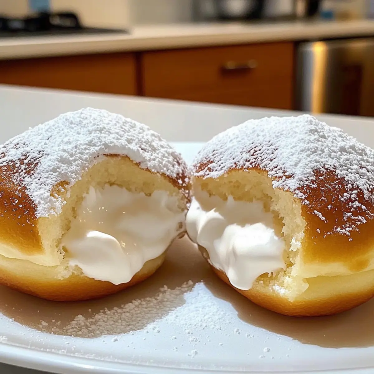 12. Die gefüllten Donuts leicht mit Puderzucker bestäuben, bevor sie serviert werden.