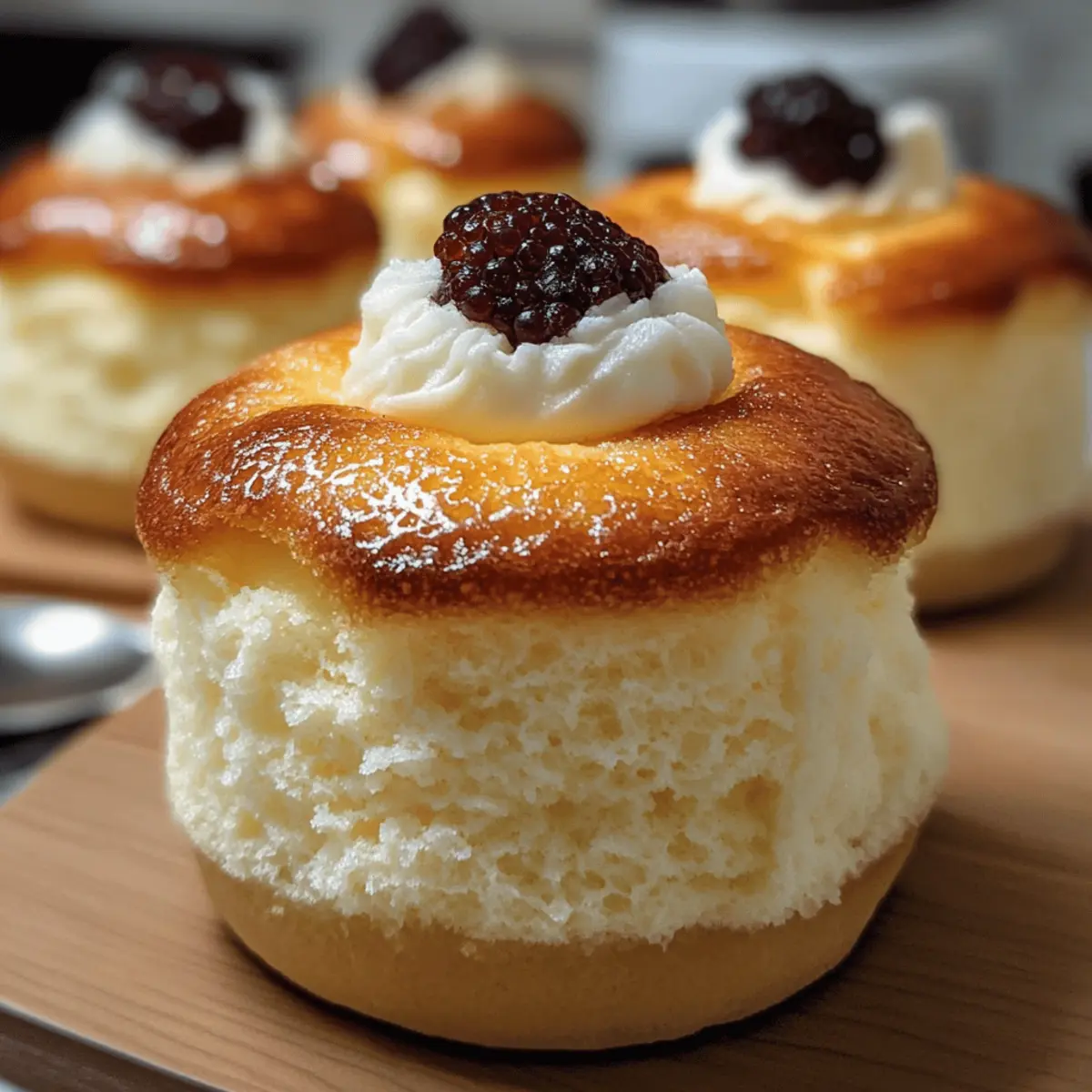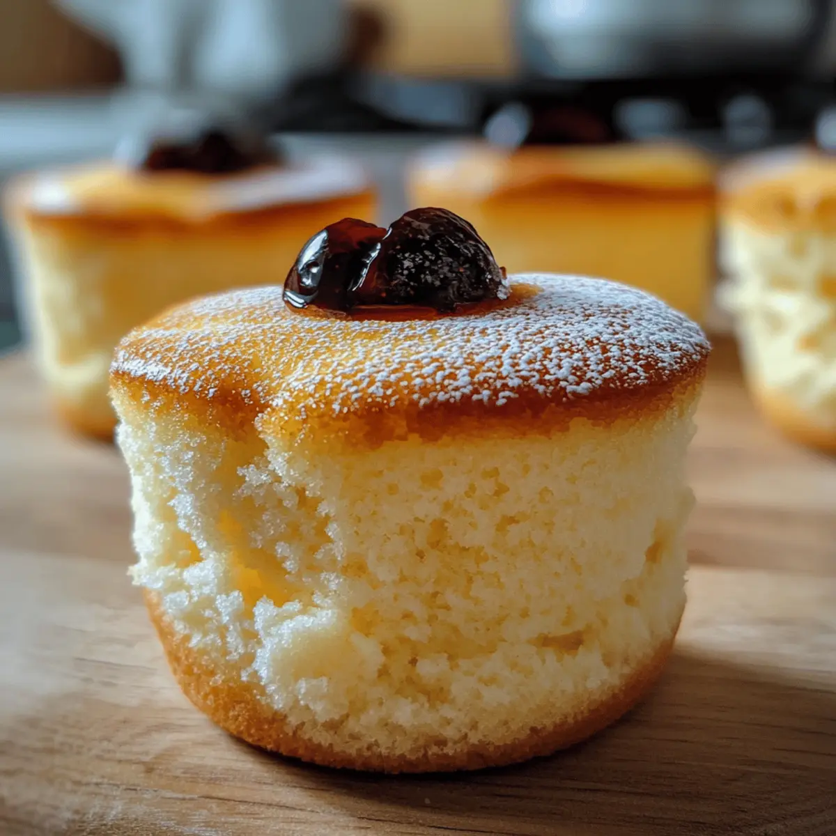 Die fluffigen japanischen Baumwoll-Käsekuchen-Cupcakes sind ein Genuss für die Sinne mit leichter, luftiger Textur.