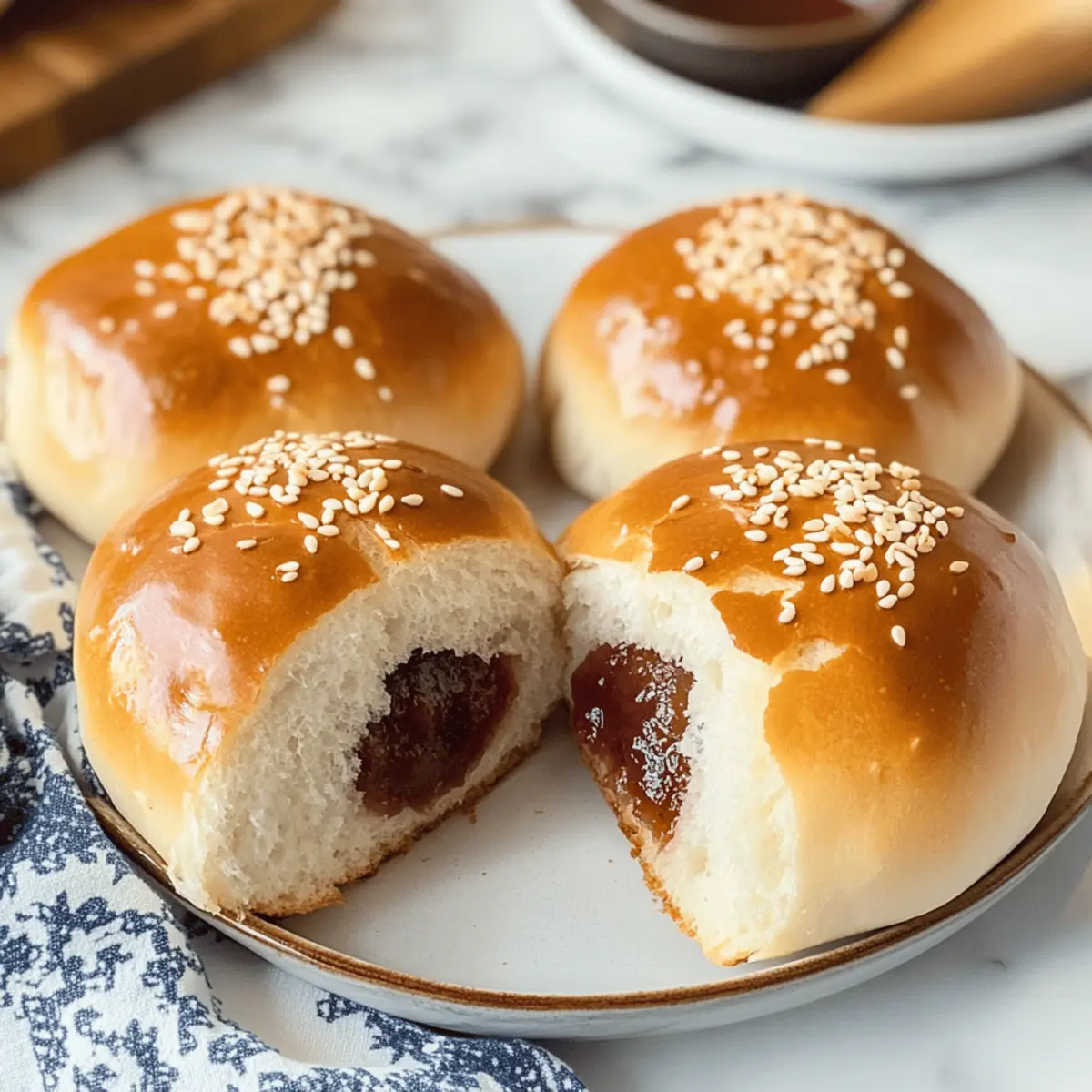 Fluffige Milchbrötchen mit süßer roten Bohnenpaste