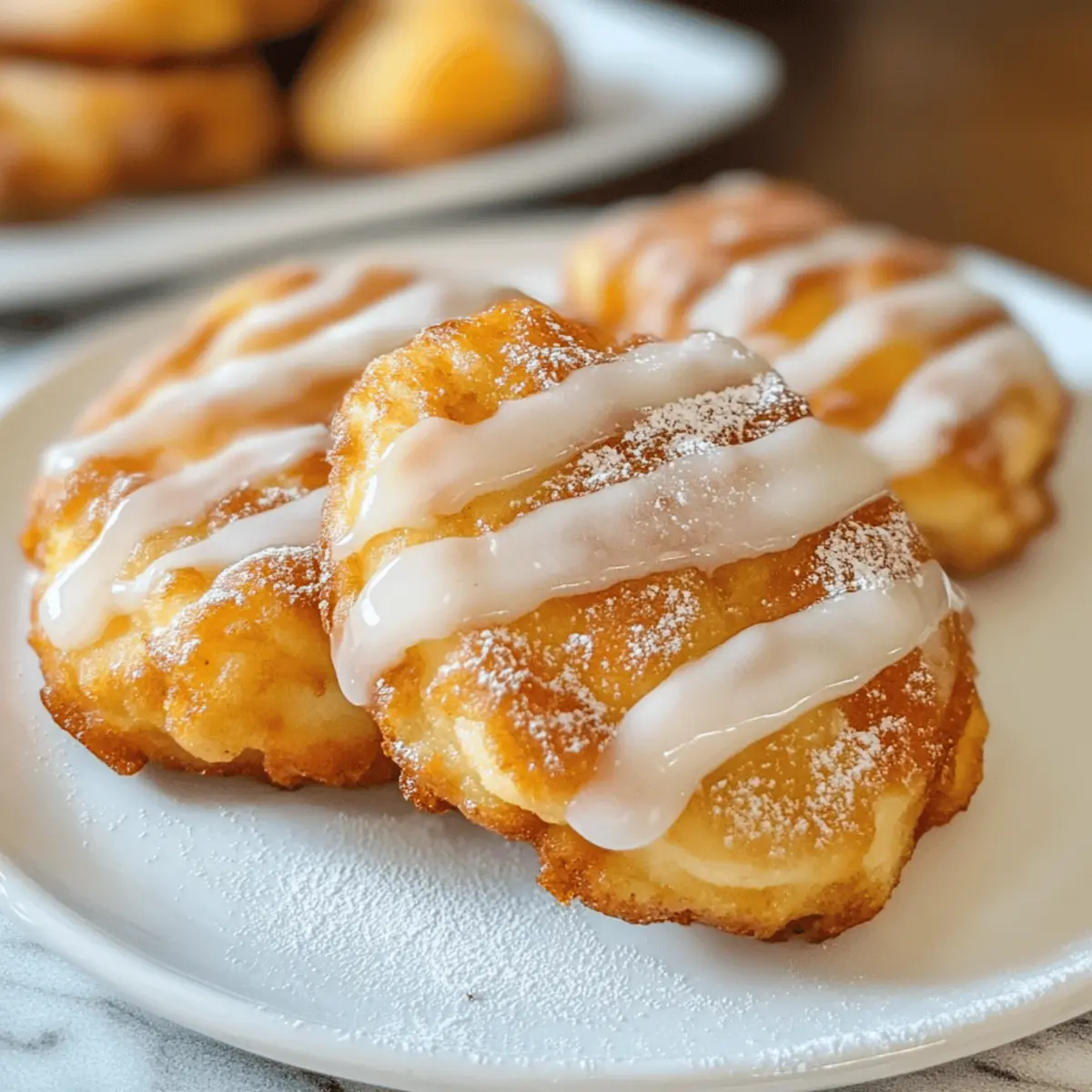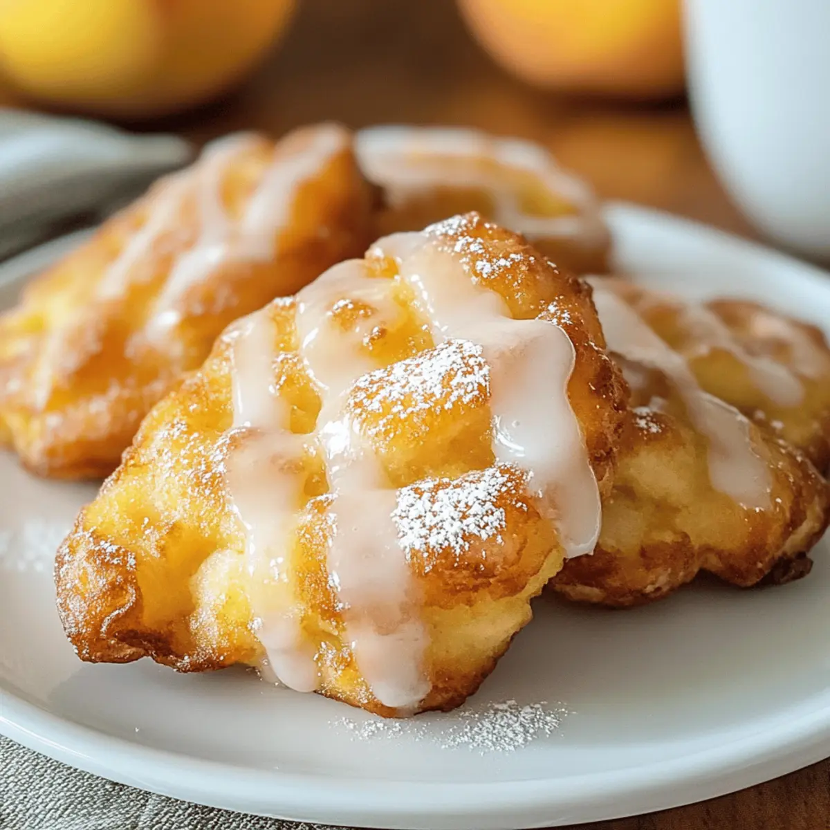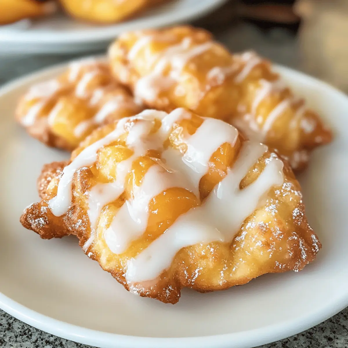 Wenn der Duft von frisch gebratenen Pfirsichfrittern durch die Küche zieht, weiß ich, dass der Sommer in vollem Gange ist. Diese einfachen und schnellen Fresh Peach Fritters sind nicht nur ein wahrer Genuss für die Sinne, sondern auch ein perfekter Höhepunkt für jedes Brunch oder Dessert. Außerdem sind sie ein echter Publikumsmagnet – egal ob Familie oder Freunde, niemand kann widerstehen! Mit knuspriger äußeren Schicht und einem zarten, fruchtigen Inneren, gekrönt von einer himmlischen Vanilleglasur, werden diese Pfirsichfritters dein neuer Geheimtipp. Bist du bereit, die köstliche Welt des Frittierens zu entdecken? Lass uns loslegen! Warum wirst du diese Krapfen lieben? Frische Aromen: Der Geschmack reifer Pfirsiche kommt in jedem Biss durch und weckt Erinnerungen an sonnige Sommertage. Einfach und schnell: Mit minimalem Aufwand sind diese Pfirsichkrapfen in kurzer Zeit zubereitet und perfekt für spontane Küche. Köstliche Vielseitigkeit: Du kannst sie leicht anpassen, indem du Pfirsiche durch andere Früchte wie Äpfel oder Beeren ersetzt, um neue Geschmäcker zu entdecken. Wenn du mehr fruchtige Desserts suchst, schau dir unseren <a href="https://schmalzkuchen.com/beeren-pfirsich-cheesecake-sommergenuss-rezept/">Pfirsich Cheesecake Sommergenuss</a> an! Crowd-Pleaser: Diese Krapfen sind ein Hit bei jedem Brunch oder Familientreffen – alle werden nach dem Rezept fragen! Himmlische Glasur: Die süße Vanilleglasur verwandelt die Pfirsichfritters in wahre Genussmomente. Frische Pfirsichkrapfen Zutaten • Diese Zutatenliste führt alles auf, was du für die Herstellung deiner köstlichen frischen Pfirsichkrapfen benötigst. Für den Teig Allzweckmehl – sorgt für die Struktur der Krapfen; kann durch glutenfreies Mehl ersetzt werden, um eine glutenfreie Version zu kreieren. Zucker – verleiht dem Teig Süße; ersetze ihn durch braunen Zucker für einen tieferen Geschmack. Backpulver – sorgt für das Aufgehen der Krapfen und garantiert eine luftige Textur. Salz – hebt den Gesamtgeschmack hervor. Zimt (optional) – fügt Wärme und Tiefe hinzu; kann weggelassen werden, wenn du keinen Zimt magst. Eier – binden den Teig und sorgen für Reichhaltigkeit. Vollmilch – bringt Feuchtigkeit; kann durch Mandelmilch für eine milchfreie Option ersetzt werden. Vanilleextrakt – verstärkt die Süße und den Geschmack; könnte auch durch Mandelaroma ersetzt werden. Frische Pfirsiche – der Hauptbestandteil; können durch Äpfel, Birnen oder Beeren ersetzt werden. Öl zum Frittieren – notwendig zum Frittieren; empfehlenswert sind Pflanzenöl oder Rapsöl. Für die Glasur Puderzucker – süßt die Glasur. Milch – sorgt für Cremigkeit in der Glasur. Vanilleextrakt (für die Glasur) – verleiht der Glasur Geschmack; kann durch Mandelaroma ersetzt werden. Schritt-für-Schritt-Anleitung für Frische Pfirsichkrapfen mit Vanilleglasur Schritt 1: Pfirsiche vorbereiten Die frischen Pfirsiche schälen und in kleine Stücke schneiden. Achte darauf, die Kerne zu entfernen und die Würfel gleichmäßig zu schneiden, damit sie in den Krapfen gleichmäßig verteilt sind. Setze die vorbereiteten Pfirsiche beiseite, während du den Teig machst. Schritt 2: Teig zubereiten In einer großen Schüssel das Allzweckmehl, Zucker, Backpulver, Salz und optionalen Zimt vermengen. In einer separaten Schüssel die Eier, Vollmilch und Vanilleextrakt gut verrühren. Anschließend die feuchten Zutaten zu den trockenen Zutaten geben und vorsichtig vermischen. Zum Schluss die vorbereiteten Pfirsiche behutsam unterheben. Schritt 3: Öl erhitzen In einer tiefen Pfanne etwa 5 cm Öl erhitzen und darauf achten, dass die Temperatur 180 °C erreicht. Verwende ein Küchenthermometer, um sicherzustellen, dass das Öl heiß genug ist, damit die Krapfen beim Frittieren knusprig werden, ohne zu viel Öl aufzusaugen. Schritt 4: Krapfen frittieren Mit einem Esslöffel Portionen des Teigs vorsichtig in das heiße Öl geben. Frittiere die Krapfen jeweils 2-3 Minuten auf jeder Seite, bis sie goldbraun und knusprig sind. Verwende eine Schaumkelle, um die Krapfen herauszunehmen, und lasse sie auf Küchenpapier abtropfen, um überschüssiges Öl zu entfernen. Schritt 5: Krapfen glasieren Für die Glasur den Puderzucker mit etwas Milch und dem Vanilleextrakt in einer kleinen Schüssel gut vermengen, bis eine glatte Konsistenz entsteht. Sobald die Krapfen leicht abgekühlt sind, entweder die Glasur darüber träufeln oder die Krapfen kurz in die Glasur tauchen, damit sie schön überzogen sind. Meal Prep für frische Pfirsichkrapfen mit Vanilleglasur Frische Pfirsichkrapfen mit Vanilleglasur sind perfekt für die Meal Prep! Du kannst die Pfirsiche bis zu 24 Stunden im Voraus schälen und würfeln, um ihnen eine zarte Konsistenz zu verleihen und das Braunwerden zu verhindern. Die Teigmischung kann ebenfalls bis zu 3 Tage im Voraus zubereitet werden; mische einfach die trockenen Zutaten in eine Schüssel und die nassen in eine andere, bis du bereit bist, sie zusammenzuführen. Am Tag des Frittierens erhitze das Öl und forme die Krapfen, dann frittiere sie, bis sie goldbraun sind. Um die Qualität zu bewahren, lasse die Krapfen kurz abkühlen, bevor du sie glasierst, sodass die Vanilleglasur beim Servieren perfekt haftet. So hast du mit minimalem Aufwand köstliche Ergebnisse! Lagerungstipps für frische Pfirsichkrapfen Raumtemperatur: Bewahre die abgekühlten Krapfen in einem luftdichten Behälter bei Zimmertemperatur für bis zu 2 Tage auf, damit sie frisch bleiben. Kühlschrank: Im Kühlschrank halten sich die Krapfen bis zu 5 Tage. Stelle sicher, dass sie gut verpackt sind, um Feuchtigkeit zu vermeiden. Tiefkühler: Für eine längere Lagerung kannst du die unglasierten Krapfen bis zu 2 Monate einfrieren. Nach dem Auftauen glasieren! Wiederv erwärmen: Um die Krapfen wieder knusprig zu machen, erwärme sie im Ofen bei 150 °C für 5–7 Minuten. So bleiben sie schmackhaft und frisch! Was passt zu frischen Pfirsichkrapfe