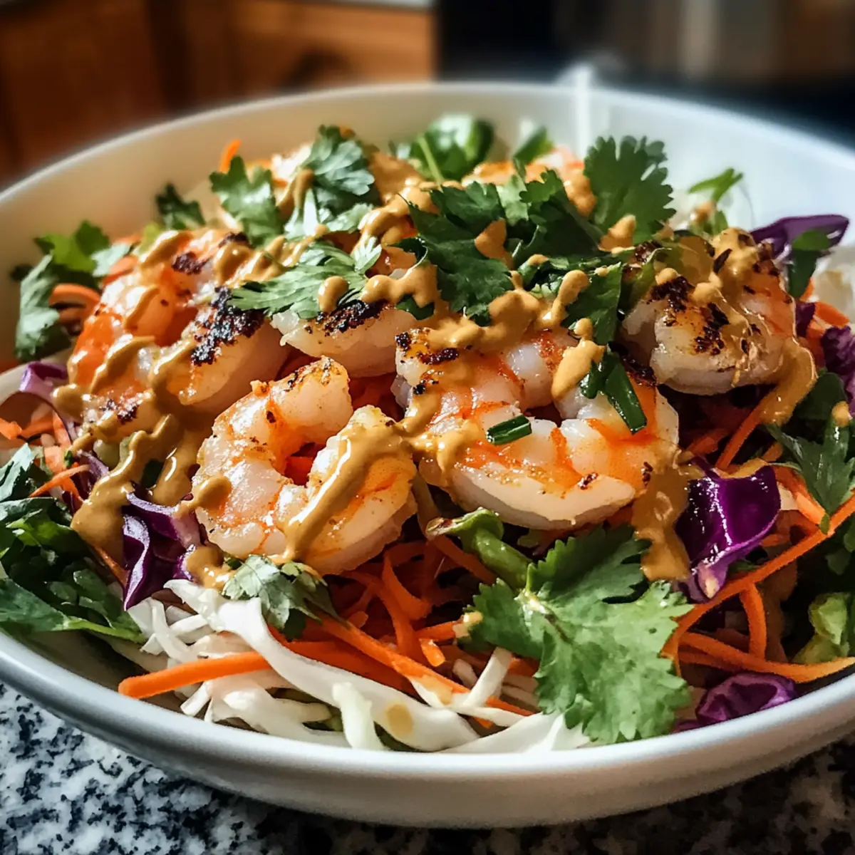 • Gegrilltes Hähnchen: Tausche die Garnelen gegen zartes gegrilltes Hähnchen aus. Dieses proteinreiche Fleisch sorgt für ein herzhaftes Erlebnis, das perfekt zu den frischen Zutaten passt.