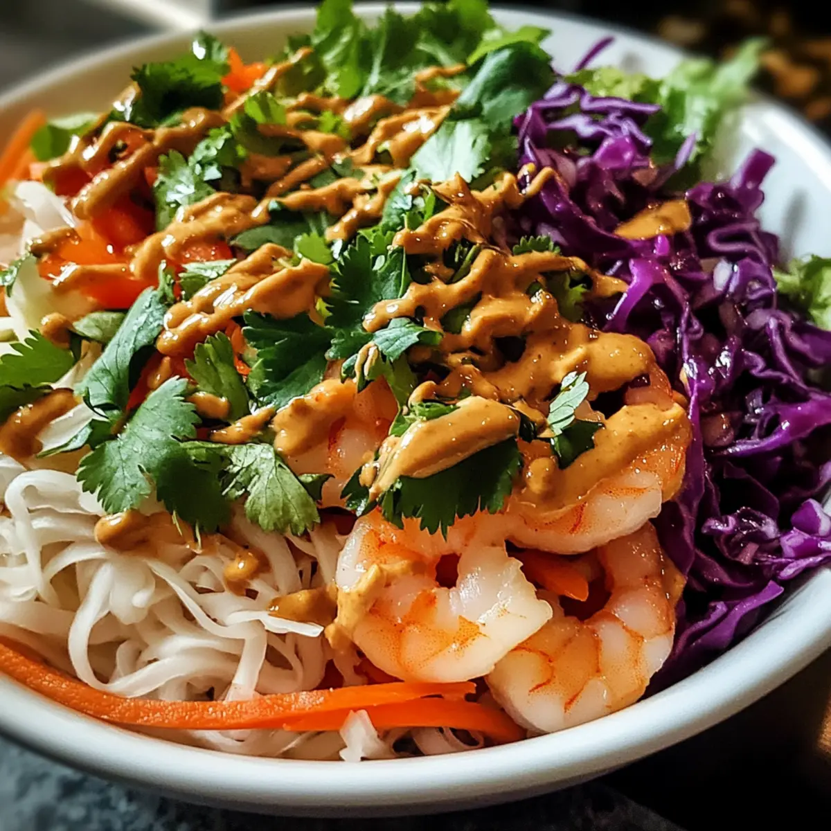 Ja, dieser Frühlingsrollen-Salat mit Erdnussdressing lässt sich leicht an verschiedene diätetische Bedürfnisse anpassen. Verwende Tamari anstelle von Sojasauce für eine glutenfreie Variante oder lasse die Garnelen weg, um ein vegetarisches oder veganes Gericht zu kreieren. Bei Allergien kannst du die Erdnüsse durch Sonnenblumenkerne ersetzen oder ganz weglassen.