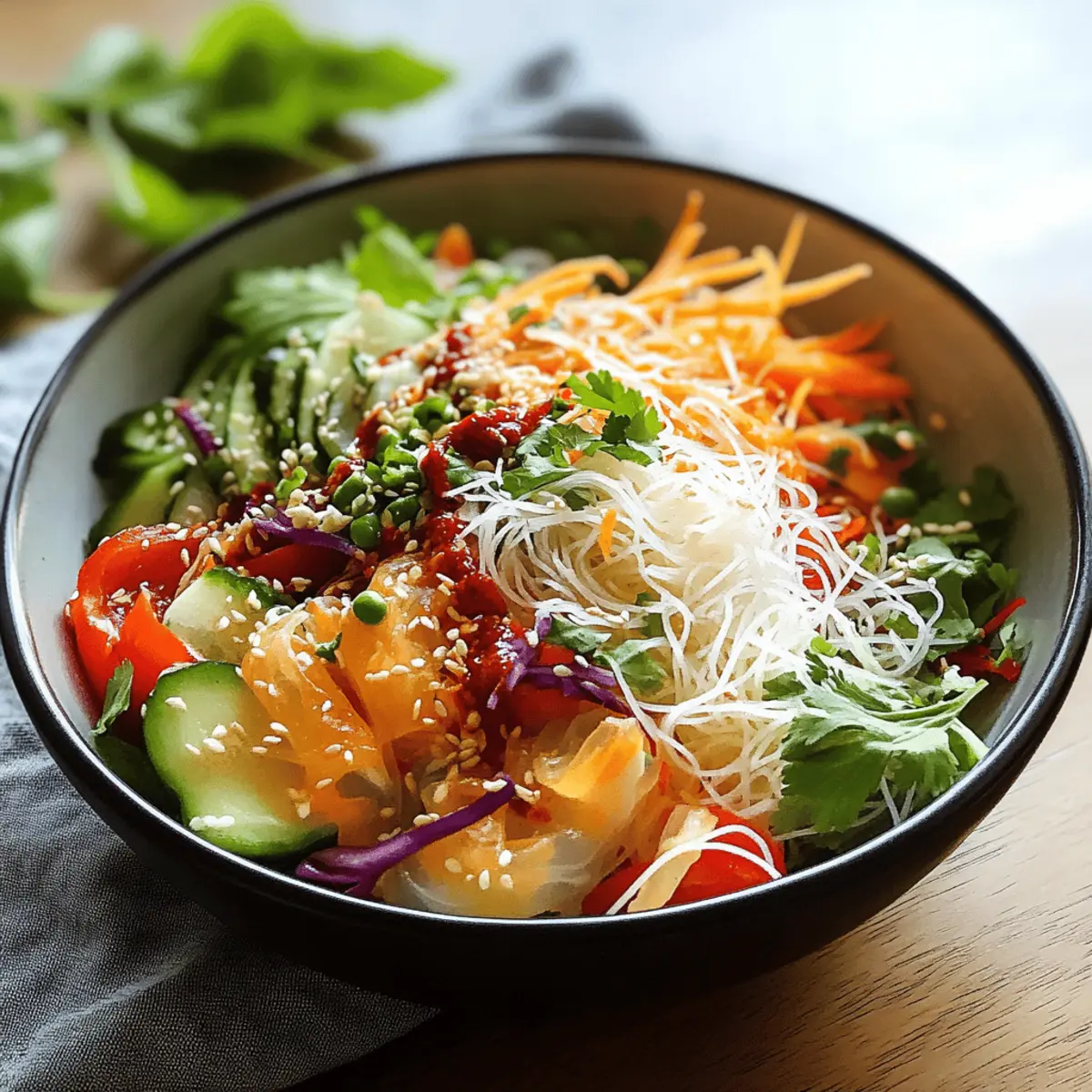 Als ich letzte Woche in einem lokalen Markt stöberte, überkam mich der Geruch von frischem Gemüse und würzigen Aromen, die einfach nach einem guten Essen riefen. Diese Inspiration hat mich zu meiner neuesten Kreation geführt: dem frisch zubereiteten Frühlingsrollen-Salat mit scharfer Ingwer-Dressing. Die Kombination aus knackigen Karotten und bunten Paprikawürfeln in Verbindung mit zarten Reisnudeln macht dieses Rezept nicht nur zum perfekten Snack, sondern auch zu einer gesunden Mahlzeit. Dieser Salat ist nicht nur super einfach und schnell zuzubereiten, sondern kann auch ganz nach deinem Geschmack angepasst werden. Vorstellung von verschiedenen Proteinoptionen oder sogar fruchtigen Ergänzungen macht jeden Bissen zu einem kleinen Genuss. Bist du bereit, dein Mittagessen aufzupeppen?