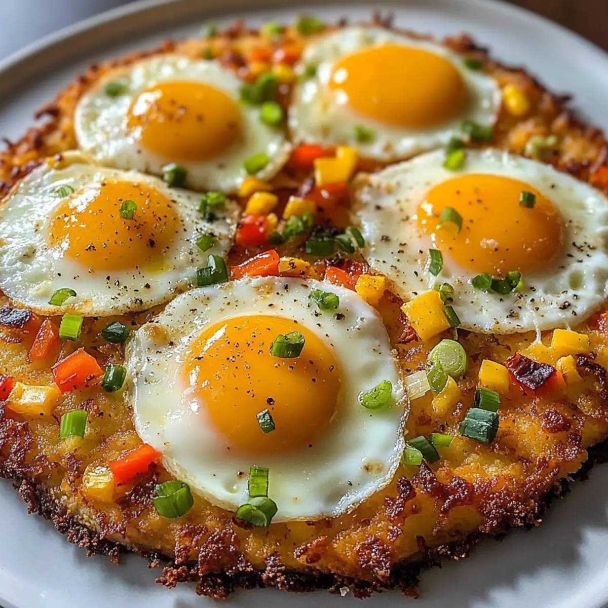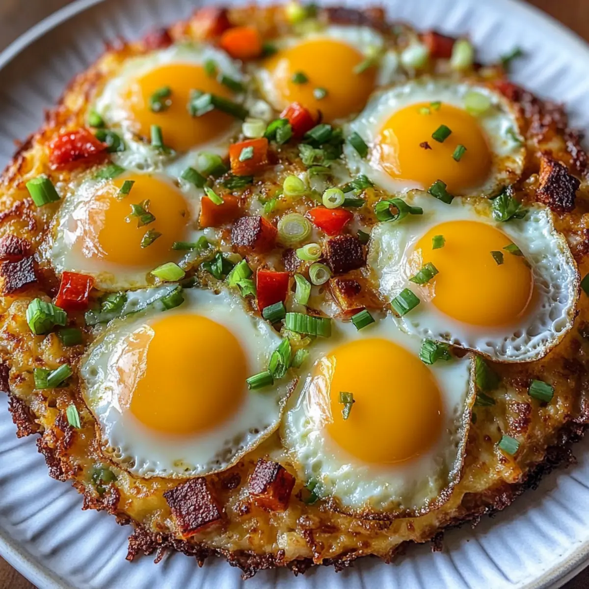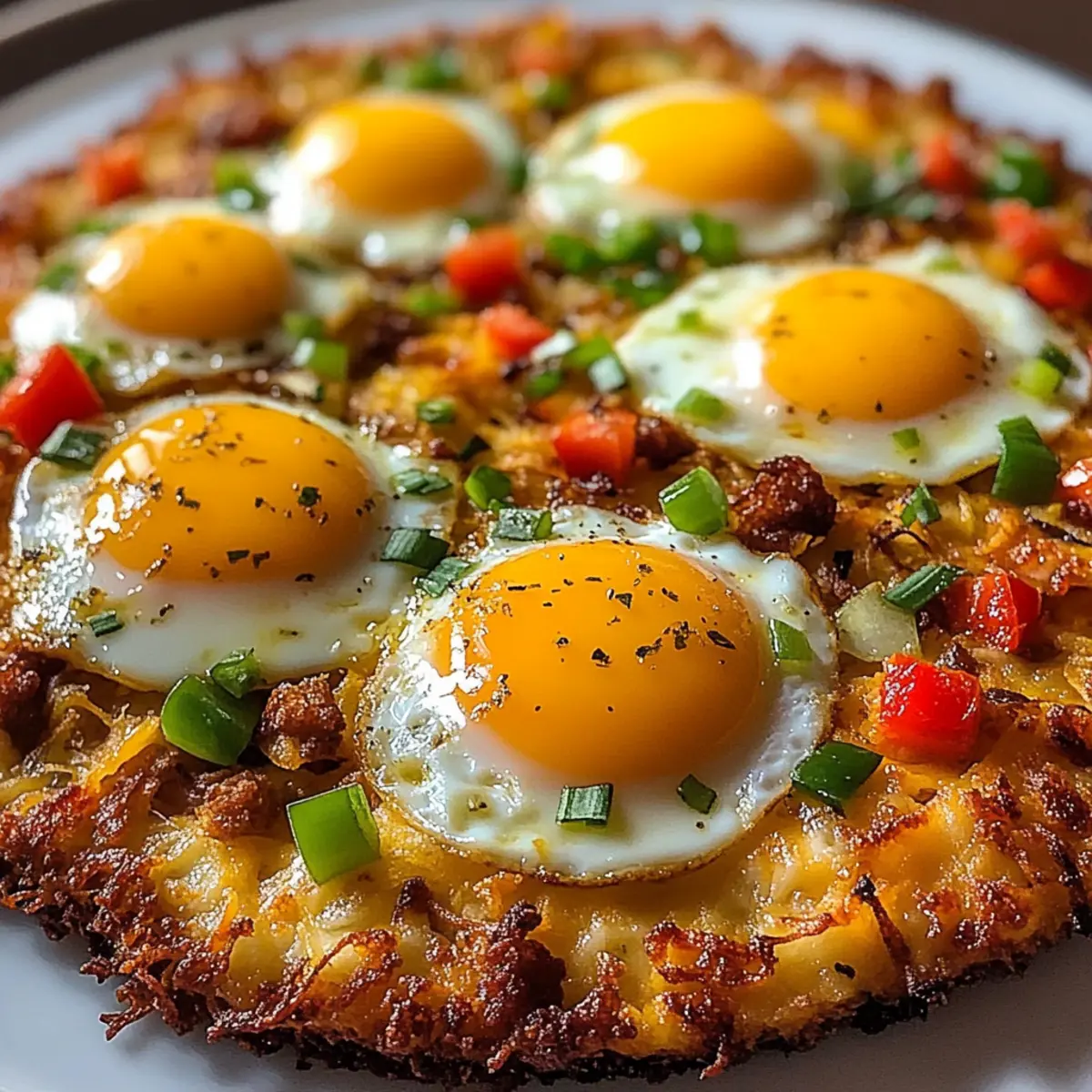 Das Geräusch von knusprigen Rösti, die in den Ofen geschoben werden, durchbricht die Stille eines gemütlichen Sonntagmorgens. Heute lade ich euch ein, in die Welt der Frühstücks-Pizza Rösti-Kruste einzutauchen, eine aufregende Mischung aus vertrauten Frühstückszutaten und der unwiderstehlichen Üppigkeit einer Pizza. Diese vielseitige Speise lässt sich im Handumdrehen zubereiten und passt sowohl für herzhaft Liebhaber als auch für Veggies. Der goldene, knackige Rösti-Boden sorgt für einen köstlichen Crunch und vereint perfekt schmelzenden Käse mit verschiedenen, herzhaften Belägen. Ob ihr ein entspanntes Brunch mit Freunden plant oder einfach euer Frühstück aufpeppen wollt, dieses Rezept wird sicher ein Hit. Seid ihr bereit für diesen köstlichen Genuss? Warum ist diese Frühstücks-Pizza besonders? Vielseitigkeit: Diese Frühstücks-Pizza mit Rösti-Kruste lässt sich nach euren Vorlieben anpassen – ob mediterran mit Feta oder herzhaft mit Chorizo, der Kreativität sind keine Grenzen gesetzt! Einfache Zubereitung: Dank der simplen Schritt-für-Schritt-Anleitung könnt ihr im Handumdrehen ein köstliches Frühstück zaubern. Perfekter Crunch: Der goldene Rösti-Boden sorgt für ein unvergessliches Geschmackserlebnis, das selbst den wählerischsten Esser überzeugt. Familienfreundlich: Ideal für jeden Anlass, sei es ein entspanntes Familientreffen oder ein Brunch mit Freunden, diese Pizza bringt alle zusammen. Zeit sparen: Der Rösti-Boden kann im Voraus zubereitet werden, sodass ihr nur noch die Toppings hinzufügen und backen müsst – perfekt für hektische Mornings! Entdeckt auch unsere anderen leckeren Rezepte wie die cremige Spinat Pilz Lasagne oder die Pfeffer Hähnchen Pasta für mehr kulinarische Inspiration! Zutaten für Frühstücks-Pizza Rösti-Kruste • Entdeckt die perfekten Zutaten für eure köstliche Frühstücks-Pizza! Für den Rösti-Boden Gefrorene geriebene Rösti – Sorgt für die ideale Basis; unbedingt auftauen und gut ausdrücken, um eine matschige Kruste zu vermeiden. Ungesalzene Butter – Verleiht Reichtum und trägt zur Knusprigkeit der Kruste bei; verwenden Sie geklärte Butter für noch mehr Crunch. Salz – Ein unverzichtbares Gewürz für zusätzlichen Geschmack. Schwarzer Pfeffer – Für die nötige Würze. Für die Beläge Geriebener Cheddar Käse – Bietet einen schmelzenden, herzhaften Geschmack; kann durch Mozzarella oder Pepper Jack ersetzt werden für Variation. Gekochte Frühstückswurst oder Speck (optional) – Fügt eine proteinreiche und herzhafte Note hinzu; für Vegetarier – verwendet pflanzliche Alternativen. Würfelig geschnittene Paprika – Bringt Frische und Crunch; kann durch Champignons oder Spinat für Abwechslung ersetzt werden. Chopped Green Onions – Fügt Farbe und milden Zwiebelgeschmack hinzu. Große Eier – Unentbehrlich für ein traditionelles Frühstückselement, das direkt auf der Pizza gegart wird. Paprika – Bietet eine mild-warme Note und die ideale Farbe. Salz und Pfeffer (nach Geschmack) – Für die finale Würze der Eier. Lasst euch von der vielfältigen Frühstücks-Pizza Rösti-Kruste inspirieren! Schritt-für-Schritt-Anleitung für Frühstücks-Pizza mit Rösti-Kruste Step 1: Ofen vorheizen und Pfanne vorbereiten Heize den Ofen auf 220°C vor. Fette eine 30 cm große ofenfeste Pfanne oder Pizzapfanne großzügig mit Butter ein, um sicherzustellen, dass der Boden der Frühstücks-Pizza Rösti-Kruste knusprig wird. Dies ist ein wichtiger Schritt, um das Ankleben der Kruste zu verhindern, während sie goldbraun backt. Step 2: Rösti-Boden zubereiten In einer großen Schüssel vermischst du die aufgetauten und gut ausgedrückten gefrorenen Rösti mit geschmolzener Butter, Salz und Pfeffer. Rühre die Zutaten gründlich um, bis alles gleichmäßig verteilt ist. Achte darauf, dass sich keine Klumpen bilden, damit die Rösti-Boden-Schicht gleichmäßig knusprig wird. Step 3: Kruste formen Drücke die Rösti-Mischung gleichmäßig in die vorbereitete Pfanne, sodass ein gleichmäßiger Boden mit leicht erhöhten Rändern entsteht. Verwende am besten deine Hände oder einen Löffel, um sicherzustellen, dass der Boden gut angedrückt und gleichmäßig verteilt ist. So bekommst du eine stabile Basis für deine Frühstücks-Pizza mit Rösti-Kruste. Step 4: Rösti-Kruste backen Schiebe die Pfanne in den vorgeheizten Ofen und backe die Rösti-Kruste für etwa 20-25 Minuten, bis sie goldbraun und knusprig ist. Halte ein Auge darauf, dass sie nicht zu dunkel wird. Die perfekte Kruste sollte eine nice, gleichmäßige Bräunung aufweisen, die dir die Grundlage für den herzhaften Belag bietet. Step 5: Beläge hinzufügen Nehme die gebackene Rösti-Kruste aus dem Ofen und belege sie großzügig mit geriebenem Cheddar-Käse, Wurst oder Speck, falls verwendet, sowie den gewürfelten Paprika und den grünen Zwiebeln. Verteile die Zutaten gleichmäßig, damit jeder Bissen der Frühstücks-Pizza gut herausgeschmeckt werden kann. Step 6: Vertiefungen für Eier schaffen Nutze den Rücken eines Löffels, um vier flache Vertiefungen in die Beläge zu drücken, sodass die Eier später darin Platz finden. Diese Vertiefungen sind wichtig, um sicherzustellen, dass die Eier perfekt gegart werden und nicht über den gesamten Belag laufen. Step 7: Eier hinzufügen Schlage vorsichtig ein Ei in jede der geschaffenen Vertiefungen. Streue Paprika, Salz und Pfeffer nach Geschmack über die Eier, um ihnen zusätzlichen Geschmack zu verleihen. Achte darauf, die Eier nicht zu zerbrechen, damit sie beim Backen schön intakt bleiben. Step 8: Backen, bis die Eier gestockt sind Schiebe die Pfanne erneut in den Ofen und backe die Frühstücks-Pizza für weitere 10-12 Minuten. Du kannst sehen, dass die Eiweiße fest werden, während die Eier weiter backen. Wenn die Eiweiße vollständig gestockt sind, ist deine Frühstücks-Pizza bereit zum Servieren. Step 9: Abkühlen lassen und servieren Lass die Pizza nach dem Backen für etwa 3 