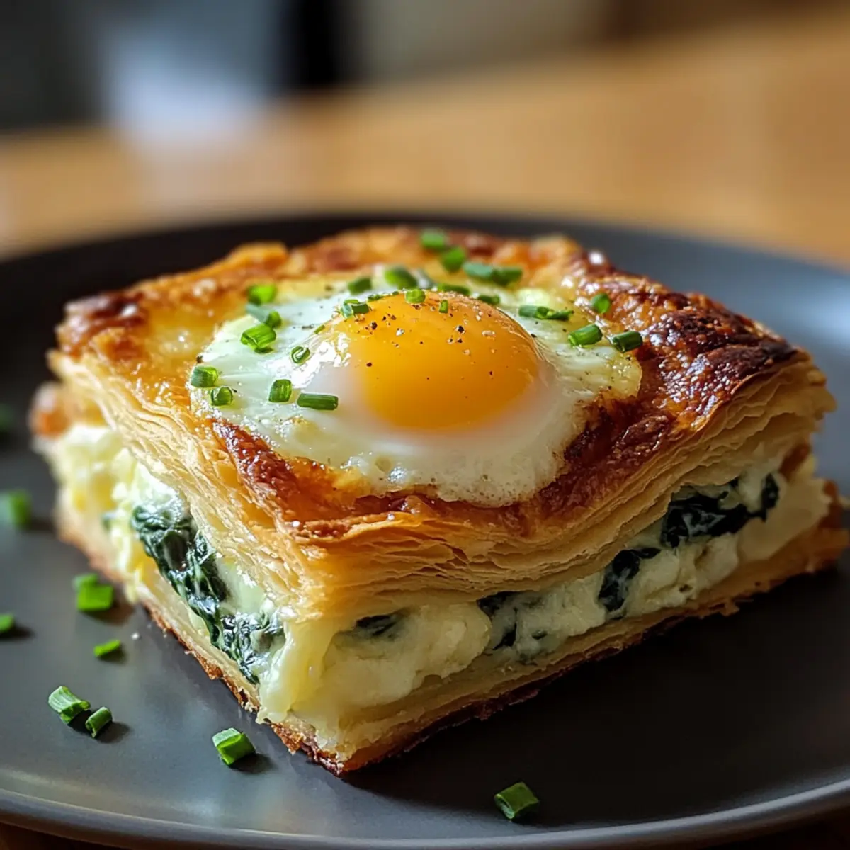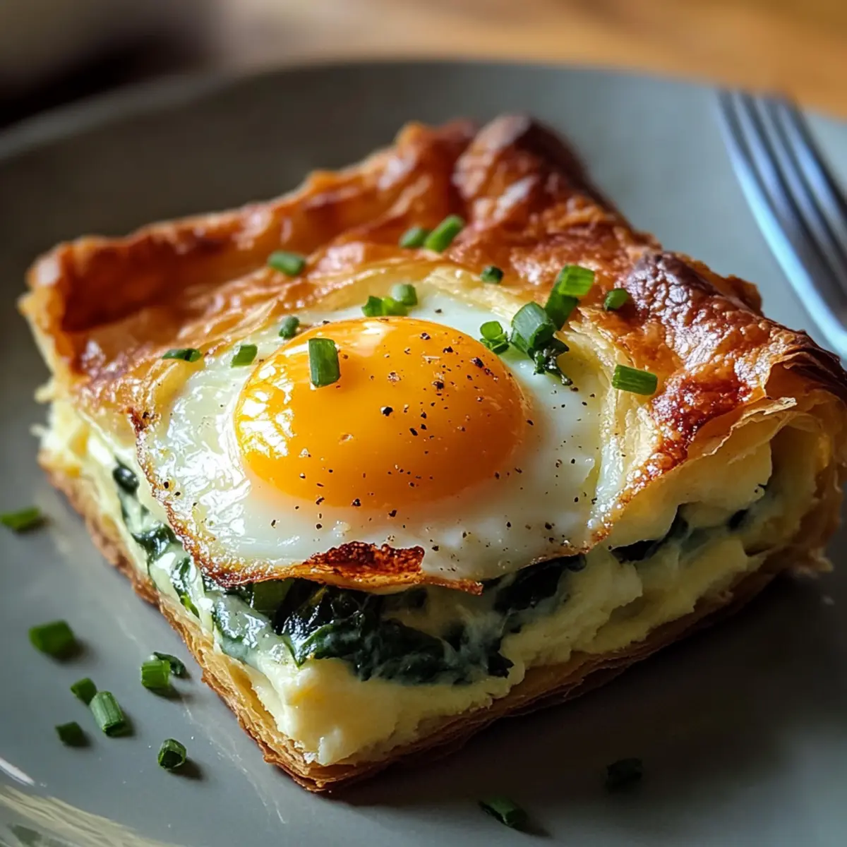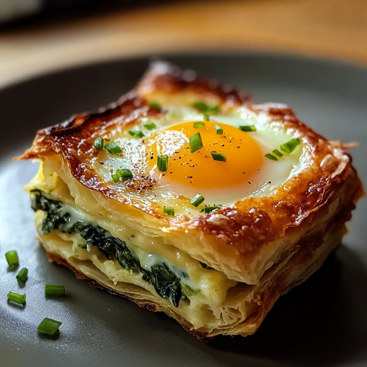 Ein verführerischer Duft zieht durch die Küche, während ich gerade die ersten Schritte zur Zubereitung meiner gebackenen Eier Napoleon beginne. Diese exquisite Brunch-Kreation vereint zarte, knusprige Blätterteigschalen mit perfekt gebackenen Eiern und einer köstlichen Füllung aus cremigem Spinat und aromatischem Käse. Das Schönste an diesem Rezept? Es verbindet gehobenes Flair mit kinderleichter Zubereitung – ideal für alle, die ihre Gäste beeindrucken möchten, ohne stundenlang in der Küche zu stehen. Und ja, du kannst die Zutaten nach Belieben anpassen! Egal, ob du mehr Gemüse oder eine andere Käsesorte bevorzugst, die Möglichkeiten sind nahezu endlos. Bist du bereit, mit mir in die Welt der gebackenen Eier Napoleon einzutauchen und deinen nächsten Brunch in ein Geschmackserlebnis zu verwandeln? Warum wirst du dieses Rezept lieben? Einfachheit: Der Prozess ist unkompliziert und erfordert nur grundlegende Kochfähigkeiten, perfekt für Anfänger. Vielfältige Anpassungen: Du kannst die Füllung ganz nach deinem Geschmack variieren – ob mit weiteren Gemüsesorten oder verschiedenen Käsesorten, die Möglichkeiten sind fast grenzenlos! Wunderbarer Geschmack: Die Kombination aus cremigem Spinat, würzigem Käse und dem zarten Blätterteig zaubert ein Geschmackserlebnis, das alle begeistert. Beeindruckende Präsentation: Diese gebackenen Eier Napoleon sind nicht nur lecker, sondern auch optisch ein Hit – ideal für Brunchs oder besondere Anlässe. Zeitersparnis: In weniger als 30 Minuten fertig, ohne Kompromisse bei der Qualität – ideal für alle, die sich eine köstliche Mahlzeit bei wenig Aufwand wünschen. Entdecke auch Eier Benedict Auflauf für weitere kreative Rezeptideen! Zutaten für gebackene Eier Napoleon • Erfahre hier, was du für dieses köstliche Brunch-Rezept benötigst! Für den Blätterteig Blätterteigplatten – sorgen für die knusprige Struktur; du kannst auch selbstgemachten Teig verwenden, wenn du möchtest. Für die Füllung Eier – essenziell für die Füllung; sie erzeugen eine cremige Textur, also verwende frische Eier für den besten Geschmack. Olivenöl – zum Sautieren von Schalotten und Knoblauch; Butter kann eine reichhaltigere Alternative sein. Schalotte – bringt Süße und Tiefe in die Spinatfüllung; ersetze sie bei Bedarf durch eine kleine Zwiebel. Knoblauch – verleiht ein aromatisches Aroma; nutze frischen, gehackten Knoblauch oder Knoblauchpulver im Notfall. Frischer Spinat – die Basis der Füllung, nährstoffreich und farbenfroh; kann durch Mangold oder Grünkohl ersetzt werden. Frischkäse – sorgt für Cremigkeit und Reichtum in der Füllung; pürierter griechischer Joghurt ist eine leichte Variante. Schlagsahne – steigert den Reichtum der Füllung; ganze Milch ist eine leichtere Option, obwohl Sahne für die Textur bevorzugt wird. Parmesan – bringt salzige, nussige Noten; Gruyère oder Cheddar sind ebenfalls gute Alternativen für verschiedene Geschmacksrichtungen. Muskatnuss – bietet warme Würze; achte auf die Menge, um ein Übermaß zu vermeiden. Salz und schwarzer Pfeffer – essentielle Gewürze; passe sie nach Geschmack an. Frische, gehackte Schnittlauch – zur Garnitur; kann durch Frühlingszwiebeln oder Petersilie ersetzt werden. Genieße die Zubereitung deiner gebackenen Eier Napoleon und verwandle deinen nächsten Brunch in ein unvergessliches Ereignis! Schritt-für-Schritt-Anleitung für Gebackene Eier Napoleon Step 1: Blätterteig vorbereiten und Ofen vorheizen Zuerst den Blätterteig bei Zimmertemperatur auftauen und währenddessen den Ofen auf 200°C vorheizen. Während der Ofen vorheizt, die Ramequins (jeweils 4 Zoll) mit etwas Öl einfetten, um das Ankleben zu verhindern. Wenn der Teig weich ist, kann er gleich weiterverarbeitet werden. Step 2: Teigschalen formen Den aufgetauten Blätterteig auf eine Arbeitsfläche legen und mit einem Nudelholz auf eine Dicke von etwa 0,5 cm ausrollen. Runde Teigstücke ausschneiden, die groß genug sind, um die Ramequins auszukleiden, dabei einen Überhang lassen. Den Blätterteig vorsichtig in die Ramequins drücken, dabei auf eine gleichmäßige Verteilung achten. Step 3: Blätterteig blind backen Um die Teigschalen vor dem Füllen vorzubacken, diese mit Backpapier und Gewichten (z.B. Bohnen) füllen und für ca. 12-15 Minuten im vorgeheizten Ofen backen, bis sie goldbraun sind. Nach dieser Zeit das Backpapier und die Gewichte entfernen und für zusätzliche 3-5 Minuten weiterbacken, bis die Schalen knusprig sind. Step 4: Cremige Spinatfüllung zubereiten In einer Pfanne etwas Olivenöl erhitzen und die fein gehackte Schalotte und den Knoblauch darin anbraten, bis sie weich sind. Danach den frischen Spinat hinzufügen und unter Rühren dünsten, bis er verwelkt ist. Den Herd auf niedrige Stufe stellen und Frischkäse, Sahne und Parmesan unterrühren. Mit Muskatnuss, Salz und Pfeffer abschmecken. Step 5: Napoleon zusammensetzen Die vorbereitete Spinatfüllung gleichmäßig in die vorgebackenen Blätterteigschalen löffeln. Vorsichtig mit einem Löffel in jede Schale ein Ei aufschlagen, darauf achten, dass das Eigelb ganz bleibt. Nach Belieben mit etwas Salz und Pfeffer würzen, um den Geschmack zu intensivieren. Step 6: Eier waschen und würzen Ein geschlagenes Ei in einer kleinen Schüssel zubereiten und die Ränder des Blätterteigs großzügig damit bestreichen. Dies gibt den Teigschalen eine goldene, glänzende Oberfläche. Nach Wunsch eine Prise Salz oder Pfeffer über die Teigkanten streuen, um das Aroma zu verstärken. Step 7: Finale Backzeit Die Gebackenen Eier Napoleon im Ofen bei 200°C für 12-18 Minuten backen. Achte darauf, dass das Eigelb nach deinem Wunsch an Gargrad bleibt – weiche Eigelbe benötigen weniger Zeit. Nach dem Backen den Backofen ausschalten und die Ramequins kurz ruhen lassen. Step 8: Garniere und serviere Die gebackenen Eier Napoleon aus dem Ofen nehmen und etwas abkühlen lassen. Vor dem Servieren mit frisch gehacktem Schn