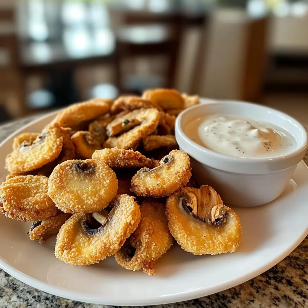 Als ich neulich in der Küche experimentierte, durchzuckte mich plötzlich der Geruch von frisch gebratenen Champignons. Diese gebratene geschnittene Champignons im Handumdrehen zubereiten zu können, ist nicht nur ein echter Zeitgewinner für hektische Abende, sondern sorgt auch immer wieder für Staunen bei meinen Gästen. In dieser Rezeptur verbinden sich die knusprigen, goldbraunen Stücke mit einem cremigen Ranch-Dip zu einem köstlichen Snack, der mühelos jeder Fast-Food-Besuch übertrumpft. Egal, ob für einen gemütlichen Filmeabend oder als Partystarter, diese Champignons sind glutenfrei und in weniger als einer halben Stunde fertig. Ich kann es kaum erwarten, sie mit euch zu teilen! Welche Dips mögt ihr am liebsten dazu? Warum sind gebratene Champignons so beliebt? Schnelle Zubereitung: In weniger als 30 Minuten habt ihr diese köstlichen gebratenen Champignons auf dem Tisch – perfekt für eilige Abende. Unwiderstehlicher Geschmack: Die Kombination aus knusprigem Äußeren und saftig zartem Inneren begeistert jeden. Vielseitige Dip-Optionen: Genießt sie klassisch mit Ranch-Dip oder experimentiert mit anderen Saucen wie Zimt Schnecken Bananenbrot für zusätzliche Abwechslung. Glutenfreie Variante: Dieses Rezept ist flexibel und kann leicht glutenfrei zubereitet werden, sodass alle mit Genuss mitschlemmen können. Perfekt für gesellige Anlässe: Ob als Snack für einen Filmeabend oder als Appetizer auf der nächsten Party – diese Champignons kommen immer gut an. Ein Stück Komfort: Diese Rezeptur verbindet die Gemütlichkeit von hausgemachtem Essen mit dem beliebten Geschmack von Bar-Snacks. Gebratene geschnittene Champignons Zutaten • Für alle, die wissen möchten, was für diese köstlichen gebratenen Champignons benötigt wird, hier die Liste! Für die Champignons 1 lb weiße Champignons – Diese bilden die Basis des Geschmacks; gründlich reinigen und dick schneiden für die beste Textur. 1 Tasse Weizenmehl – Sorgt für die knusprige Hülle; glutenfreies Mehl kann für eine Variante verwendet werden. 1 TL Salz – Verstärkt den Geschmack der Champignons und der Panade. 1 TL schwarzer Pfeffer – Fügt der Mehlmischung eine würzige Note hinzu. 1 großes Ei (optional) – Für eine reichhaltigere und stabilere Panade; kann durch einen Schuss Milch ersetzt werden, wenn Eier vermieden werden. 1 Schuss Milch (bei Verwendung von Ei) – Hilft beim Binden der Mischung für die Panade. 1 Tasse gewürzte Semmelbrösel (optional) – Fügt extra Crunch und Geschmack hinzu. Pflanzenöl (zum Frittieren) – Ausreichend, damit die Champignons beim Frittieren schwimmen können; kann durch Rapsöl ersetzt werden. Für den Dip 1 Tasse Ranch-Dressing – Der perfekte Dip, der wunderbar mit dem knusprigen Äußeren der Champignons harmoniert. Optional scharfer Ketchup oder Honig-Senf – Weitere Dip-Optionen, um Abwechslung zu bieten. Für die Garnitur 2 EL gehackte Petersilie – Für frische und farbliche Akzente auf dem Teller. Genießt diese gebratene geschnittene Champignons in kürzester Zeit und überrascht eure Freunde mit diesem einfachen, aber eleganten Snack! Step-by-Step Instructions für Gebratene geschnittene Champignons mit Ranch-Dip Step 1: Champignons vorbereiten Wascht die weißen Champignons gründlich unter fließendem Wasser und tupft sie mit einem Küchentuch trocken. Schneidet die Champignons etwa 1 cm dick, um beim Braten ein schönes Volumen zu erhalten und damit sie nicht während des Frittierens schrumpfen. Step 2: Panade zubereiten In einer Schüssel vermischt ihr das Weizenmehl mit Salz und schwarzem Pfeffer. Wenn ihr das Ei verwenden möchtet, schlagt es in einer separaten Schüssel kurz auf und ergänzt einen Schuss Milch, um eine glatte Mischung zu erhalten. Dies ist wichtig, um eine reichhaltige Panade für eure gebratenen Champignons zu kreieren. Step 3: Champignons panieren Taucht jede Champignonscheibe zuerst in die Mehlmischung, dann in die Eier-Milch-Mischung (falls ihr damit arbeitet) und schließlich erneut in das Mehl oder die gewürzten Semmelbrösel. Stellt sicher, dass jede Scheibe gleichmäßig bedeckt ist, um ein knuspriges Ergebnis zu erzielen. Step 4: Champignons frittieren Erhitzt das Pflanzenöl in einer tiefen Pfanne oder in einer Fritteuse auf etwa 175°C (350°F). Gebt die Champignons in kleinen Portionen hinein und frittiert sie 2-3 Minuten pro Seite, bis sie goldbraun und knusprig sind. Achtet darauf, die Pfanne nicht zu überladen, damit die Champignons gleichmäßig garen. Step 5: Abtropfen lassen Nehmt die gebratenen Champignons aus dem Öl und lasst sie auf Küchenpapier abtropfen. So entfernt ihr überschüssiges Öl und sorgt dafür, dass sie knusprig bleiben. Achtet darauf, die Champignons heiß zu halten, während ihr die restlichen Portionen zubereitet. Step 6: Servieren Serviert die gebratenen geschnittenen Champignons sofort mit einer Tasse Ranch-Dressing sowie optionalen weiteren Dips wie scharfem Ketchup oder Honig-Senf. Garniert das Ganze nach Belieben mit frisch gehackter Petersilie für einen dekorativen und geschmacklichen Akzent. Expertentipps für gebratene geschnittene Champignons • Öltemperatur prüfen: Stellen Sie sicher, dass das Öl richtig heiß ist (ca. 175°C), um eine perfekte Knusprigkeit zu erreichen. Zu kaltes Öl führt zu einem fettigen Ergebnis. • Nicht überladen: Frittieren Sie die Champignons in kleinen Mengen, um ein gleichmäßiges Garen und eine knusprige Textur zu garantieren. Überfüllung macht sie schnell matschig. • Ersatzoptionen: Wenn Sie auf Eier verzichten möchten, reicht auch ein Spritzer Milch, um die Panade zu binden. Sie bleibt dennoch lecker! • Menüvariationen: Experimentieren Sie mit verschiedenen Gewürzen in der Mehlmischung, um die gebratenen geschnittenen Champignons nach Ihrem Geschmack zu verfeinern. • Abtropfen lassen: Lassen Sie die gebratenen Champignons auf Küchenpapier abtropfen, um überschüssiges Öl zu entfernen und den Crunch zu bewahren. 