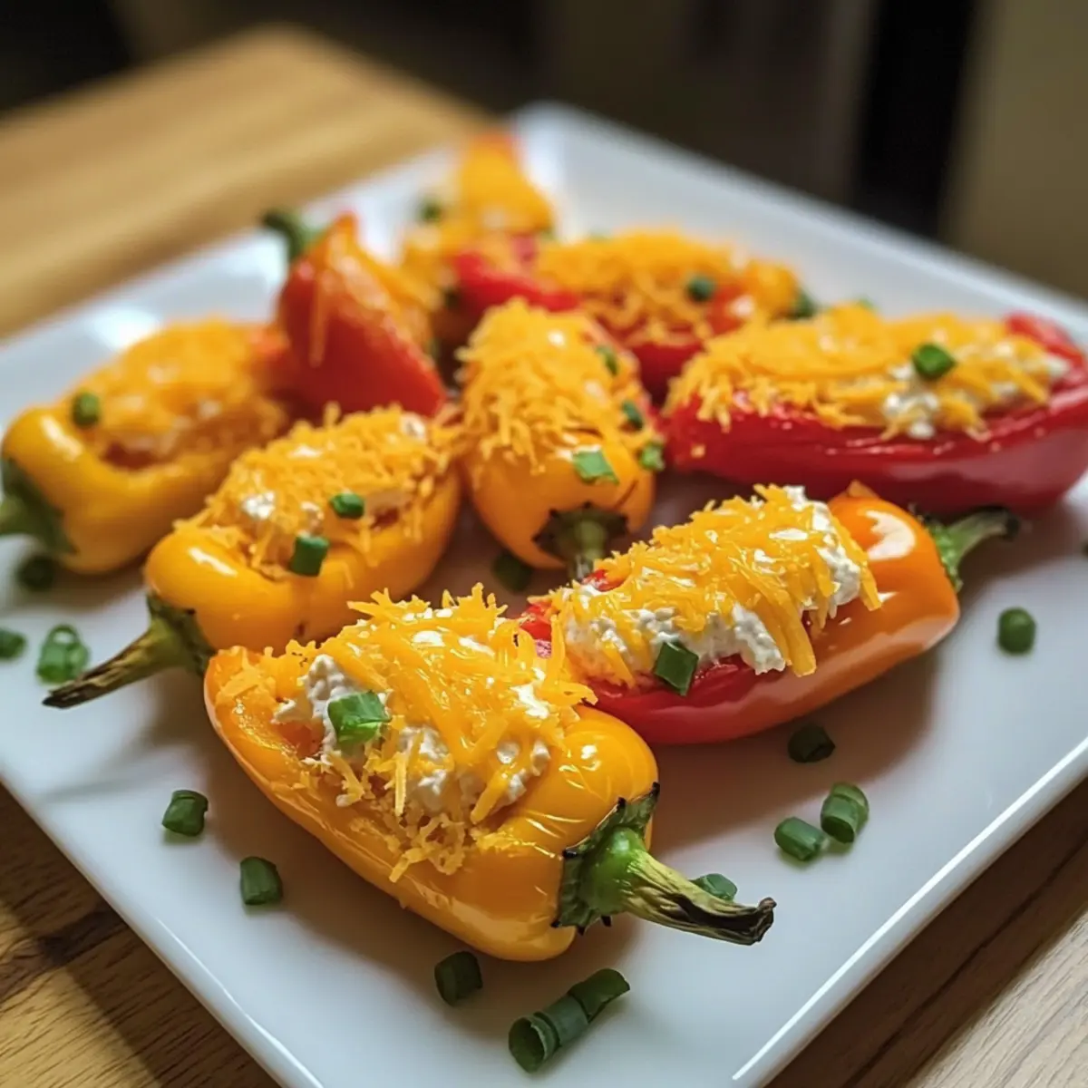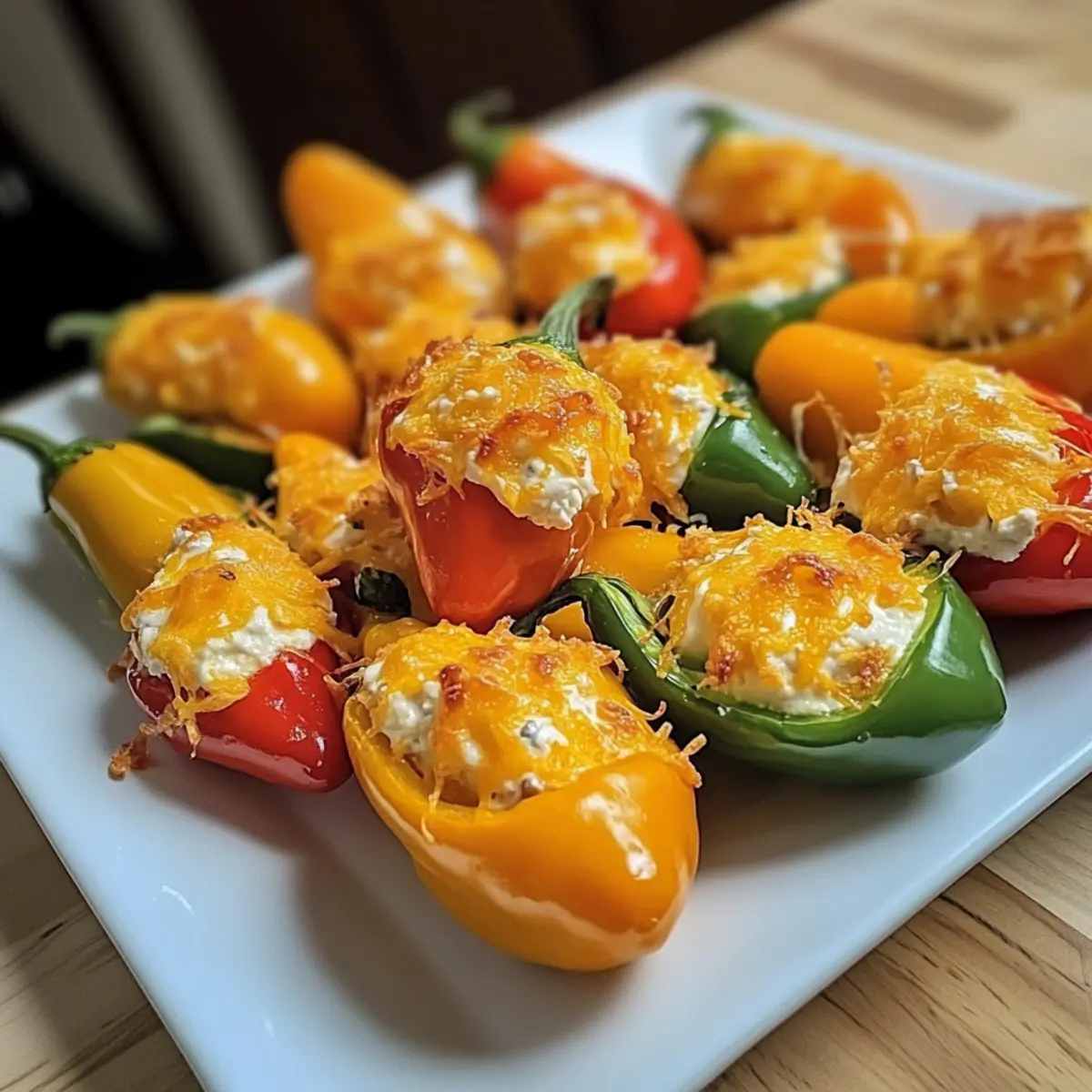 Genieße gefüllte Mini-Paprika, eine köstliche, gesunde Snack-Option, die glutenfrei und kohlenhydratarm ist.