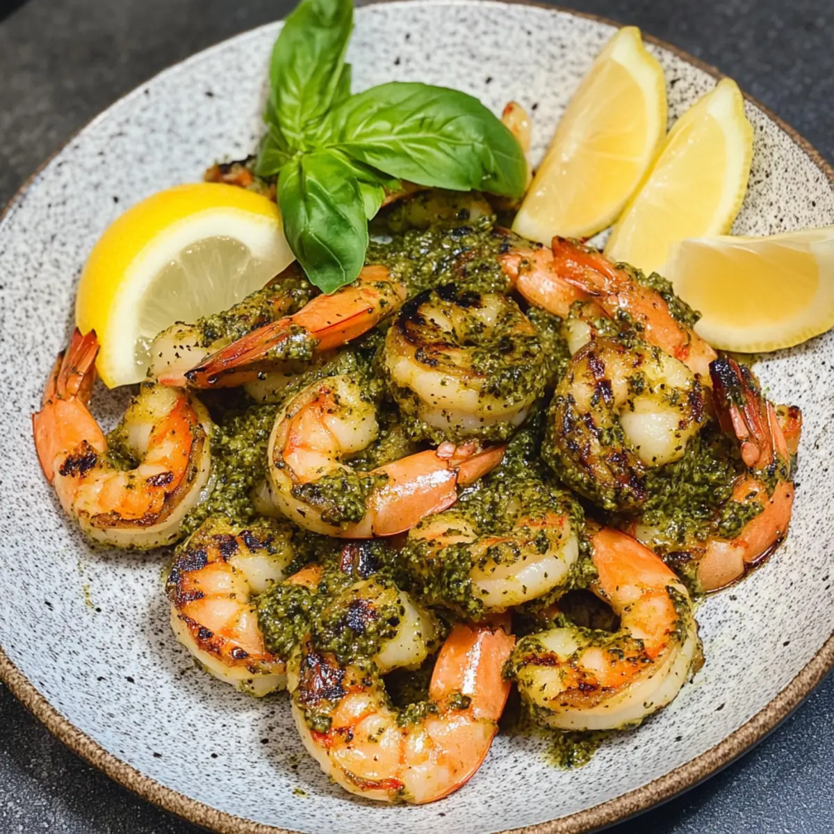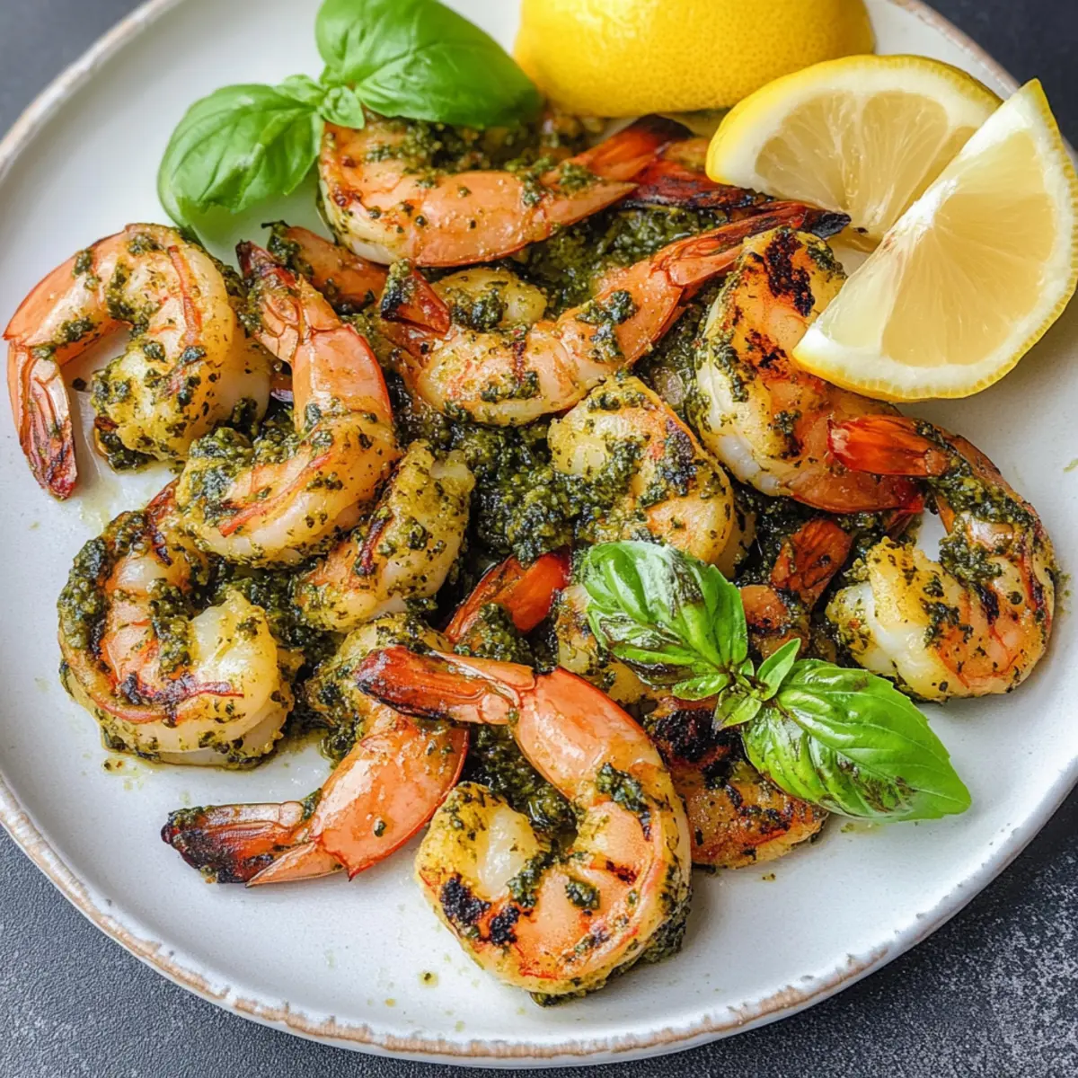 Es war ein lauer Sommerabend, als mir der Duft von gegrilltem Shrimp in die Nase stieg und mich sofort in den Bann zog. Schnell stellte ich fest, dass es an der Zeit war, meine Freunde mit einer köstlichen, selbstgemachten Leckerei zu verwöhnen: gegrillte Pesto-Garnelen! Diese schnell zubereitete Delikatesse, die kinderleicht in weniger als 30 Minuten auf den Tisch kommt, ist nicht nur perfekt für gesellige Abende, sondern auch eine glutenfreie Option für alle, die frische, köstliche Aromen lieben. Der zarte Shrimp, mariniert in einem leuchtenden Basilikumpesto, verspricht ein Geschmackserlebnis, das selbst die anspruchsvollsten Esser glücklich macht. Wie oft habt ihr bereits nach einer unkomplizierten und schmackhaften Idee für das nächste Dinner gesucht? Lasst uns gemeinsam herausfinden, wie einfach es sein kann, eure Gäste zu beeindrucken! Warum sind diese gegrillten Garnelen einzigartig? Schnelle Zubereitung: In weniger als 30 Minuten sind diese gegrillten Pesto-Garnelen fertig, perfekt für spontane Abendessen! Köstlicher Geschmack: Die Kombination aus frischem Basilikum und Parmesan sorgt für ein Geschmackserlebnis, das jeden Gaumen erfreut. Vielseitige Anpassung: Für Gäste mit Nussallergien lässt sich das Pesto problemlos mit Sonnenblumenkernen abwandeln. Gesellige Atmosphäre: Ideal für Grillpartys, die köstlichen Garnelen werden schnell zum Star auf jedem Tisch. Glutenfrei: Genießt diese Delikatesse ohne Bedenken, denn sie ist natürlich glutenfrei. Ergänzt eure Mahlzeit mit einem frischen Salat oder etwas knusprigem Brot, um den extra Pesto-Geschmack zu genießen – ihr werdet begeistert sein! Zutaten für gegrillte Pesto-Garnelen • Diese Zutaten verleihen deinem Gericht den perfekten Geschmack! Für die Garnelen Garnelen – Wähle große oder Jumbo-Garnelen für die beste Textur; gefrorene Garnelen sind ideal, da sie frisch sind und vorher aufgetaut werden sollten. Extrawilde Olivenöl – sorgt für eine reiche, vollmundige Note und hält die Garnelen beim Grillen zart. Für das Pesto Basilikumblätter – die Grundlage des Pestos, sorgen für frische, kräuterige Aromen. Knoblauchzehen – verleihen dem Pesto einen kräftigen Geschmack. Rote Paprikaflocken – füge eine Prise hinzu für etwas Schärfe; passe die Menge nach Geschmack an. Salz – hebt alle Geschmäcker in diesem Gericht hervor. Geriebener Parmigiano-Reggiano – sorgt für Cremigkeit und einen umami-reichen Geschmack im Pesto. Walnüsse – bringen Textur und nussigen Geschmack ins Pesto; verwende stattdessen Sonnenblumen- oder Kürbiskerne für eine nussfreie Variante. Zur Servierung Zitronenspalten – bringen Frische und Säure, die das Gericht perfekt abrunden. Mit diesen Zutaten zauberst du die köstlichen gegrillten Pesto-Garnelen in rekordschneller Zeit – eine glutenfreie Delikatesse, die deinen Abend unvergesslich macht! Schritt-für-Schritt-Anleitung für gegrillte Pesto-Garnelen Schritt 1: Pesto zubereiten Zuerst bereitest du das Basilikumpesto zu, indem du frisches Basilikum, Knoblauch, Olivenöl, geriebenen Parmigiano-Reggiano, Walnüsse, Salz und rote Paprikaflocken in einen Mixer gibst. Mische alles, bis eine glatte, cremige Masse entsteht. Dies dauert etwa 1–2 Minuten, je nach gewünschter Konsistenz. Das Pesto sollte leuchtend grün und aromatisch sein. Schritt 2: Garnelen marinieren Nehme 2 Esslöffel des Pestos zur Seite und stelle es für später in den Kühlschrank. Vermische die restlichen Pesto-Zutaten mit den aufgetauten Garnelen in einer großen Schüssel. Stelle sicher, dass die Garnelen gleichmäßig mit dem Pesto bedeckt sind. Lass die Marinade 30 Minuten bei Raumtemperatur einwirken, damit die Aromen gut einziehen. Schritt 3: Grill vorheizen Heize den Grill auf mittelhohe Temperatur vor, etwa 200–220 °C. Während der Grill aufheizt, bereite ein Grillblech oder Spieße vor, um die Garnelen gleichmäßig zu platzieren und ein Ankleben zu verhindern. Du kannst auch ein wenig Olivenöl auf die Grillfläche streichen, damit die Garnelen nicht kleben bleiben. Schritt 4: Garnelen grillen Legen die marinierten Garnelen bei direkter Hitze auf den Grill und grille sie für 2–3 Minuten pro Seite. Achte darauf, dass die Garnelen eine schöne rosa Farbe annehmen und durchscheinend werden. Übergrille sie nicht, da sie zäh werden können. Sie sind fertig, wenn sie leicht gewölbt und nicht mehr transparent sind. Schritt 5: Garnelen mit Pesto verfeinern Kurz bevor du die gegrillten Pesto-Garnelen servierst, vermenge sie vorsichtig mit dem zurückgehaltenen Pesto aus dem Kühlschrank. Dies verleiht den Garnelen einen zusätzlichen Frischekick und sorgt dafür, dass sie schön glänzen. Du kannst dazu eine Zange verwenden, um die Garnelen gleichmäßig zu beschichten. Schritt 6: Servieren Serviere die gegrillten Garnelen sofort auf einem großen Teller. Garniere sie mit Zitronenspalten, die du zum Verfeinern der Aromen auf die Garnelen pressen kannst. Dazu passt ein frischer Salat oder knuspriges Brot, um das köstliche, übergebliebene Pesto aufzusaugen. Bereite deine Gäste auf ein Geschmackserlebnis vor! Was passt zu gegrillten Pesto-Garnelen? Es gibt nichts Besseres, als ein perfektes Abendessen, das durch frische und schmackhafte Beilagen ergänzt wird. Cremiger Kartoffelsalat: Ein klassischer Kartoffelsalat mit Joghurt-Dressing bietet eine erfrischende Ergänzung zur Schärfe des Pestos. Er ist leichtere als seine klassischen Varianten und harmoniert mit den Aromen der Garnelen. Gegrilltes Gemüse: Eine Mischung aus gegrilltem Zucchini, Paprika und Auberginen bringt zusätzliche Textur und eine leichte Süße, die die Herbheit des Pestos ausgleicht. Das rauchige Aroma des Grills verleiht dem Gemüse eine besondere Note. Frischer Tomatensalat: Saftige Tomaten, verwöhnt mit Olivenöl und frischem Basilikum, bieten eine erfrischende Komponente zu den Garnelen. Die säuerliche Note kommt besonders zur Geltung, wenn man sie mit einem Spritzer Zitronensaft kombinie