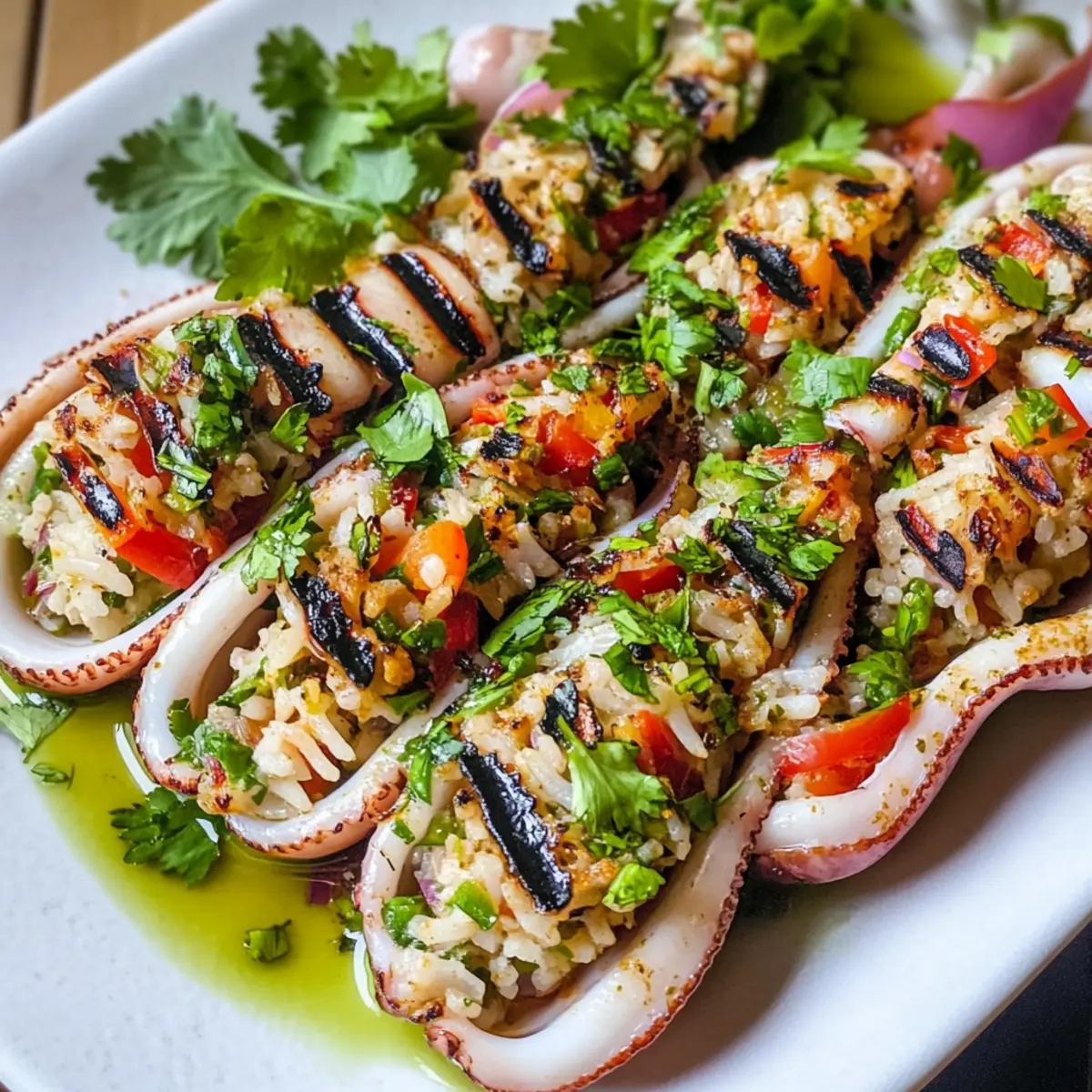 Die Sommerabende sind perfekt für Gegrillter gefüllter Calamari, ein Gericht, das gleich mehrere Sinne anspricht – der Duft von frisch gegrilltem Seafood, die bunten Farben der Füllung und der reizvolle Geschmack, der jeden Bissen zu einem Erlebnis macht. Diese vielseitige Speise lässt sich nicht nur als köstliches Hauptgericht servieren, sondern auch als beeindruckende Vorspeise für gesellige Abende mit Freunden. Das Beste daran? Die Zubereitung ist einfach und schnell, sodass du in kurzer Zeit ein gesundes, proteinreiches Gericht auf den Tisch zaubern kannst. Ob du die mediterranen Aromen bevorzugst oder es etwas schärfer magst, dieser gefüllte Calamari ist ein Genuss, der überzeugt. Bist du bereit, das Grillfest zu bereichern und deine Gäste mit einem besonderen Geschmack zu überraschen? Warum wirst du dieses Rezept lieben? Einfachheit: Die Zubereitung ist unkompliziert und erfordert nur wenige Schritte, ideal für Kochliebhaber jeder Erfahrungsstufe. Gesunder Genuss: Gegrillter gefüllter Calamari ist reich an Protein und enthält wenig Fett, perfekt für eine bewusste Ernährung. Vielfalt der Füllungen: Mit Variationen wie mediterranen oder scharfen Zutaten kannst du deinen persönlichen Geschmack umsetzen. Beeindruckende Präsentation: Die bunten Füllungen und der rauchige Geschmack machen dieses Gericht zum Hingucker bei jedem Abendessen. Schnelle Zubereitung: In nur 30 Minuten steht ein köstliches Gericht auf dem Tisch – ideal für spontane Grillabende! Hol dir auch Tipps zu cremigen Dips für dein Grillfest oder entdecke leichte Beilagen für besondere Anlässe. Gegrillter gefüllter Calamari Zutaten • Diese Zutaten bieten die Grundlage für ein köstliches Geschmackserlebnis. Calamari: Der Hauptbestandteil, der eine zarte Basis für die Füllung bietet. Verwende mittelgroße, gereinigte Calamari. Gekochter Reis: Dient als Grundlage der Füllung für Textur und Volumen. Für eine glutenfreie Option kannst du Quinoa oder zerstoßene Nüsse verwenden. Gehackte Paprika: Bringt Süße und Farbe in die Füllung. Nutze eine Mischung aus verschiedenen Farben für eine ansprechende Optik. Gehackte Zwiebel: Fügt Tiefe zum Geschmack hinzu. Schalotten sind eine milde Alternative. Gehackter Koriander: Sorgt für Frische und Kräuternoten in der Füllung. Basilikum kann alternativ verwendet werden. Gehackter Knoblauch: Intensiviert den Geschmack. Passe die Menge je nach Vorliebe an. Rote Pfefferflocken: Geben dem Gericht Schärfe. Lass sie weg für eine milderere Variante oder ersetze sie mit schwarzem Pfeffer. Olivenöl: Verleiht Reichhaltigkeit und hilft, den Calamari beim Grillen knusprig zu machen. Grapeseed-Öl bietet einen neutralen Geschmack, wenn gewünscht. Zitronensaft: Weckt die Füllung auf. Weiße Weinessig kann für die Säure als Ersatz dienen. Salz & Pfeffer: Wesentliche Gewürze. Nach Geschmack anpassen. Zum Servieren: Zitronenspalten bringen Frische und Geschmack beim Servieren. Schritt-für-Schritt-Anleitung für Gegrillter gefüllter Calamari Schritt 1: Grill vorbereiten Heize den Grill auf mittelhohe Temperatur vor, etwa 200-220 °C. Dies sorgt dafür, dass die Außenseite des Gegrillten gefüllten Calamari schnell eine schöne Grillmarkierung bekommt, während das Innere zart bleibt. Stelle sicher, dass der Grillrost leicht geölt ist, um ein Ankleben zu verhindern. Schritt 2: Füllung zubereiten Mische in einer großen Schüssel den gekochten Reis, die gehackte Paprika, die Zwiebel, den Koriander, den Knoblauch, die roten Pfefferflocken, das Olivenöl, den Zitronensaft, Salz und Pfeffer. Rühre die Zutaten gut durch, sodass sich die Aromen verbinden und eine gleichmäßige Füllung entsteht. Schritt 3: Calamari füllen Nimm die vorbereiteten Calamari und fülle sie vorsichtig mit der Reis-Mischung. Achte darauf, die Calamari nicht zu überfüllen, um ein Austreten der Füllung beim Grillen zu vermeiden. Sicher die Öffnungen gegebenenfalls mit Zahnstocher, damit die Füllung während des Grillens nicht herausfällt. Schritt 4: Calamari würzen Bestreiche die äußere Fläche der gefüllten Calamari gleichmäßig mit Olivenöl und würze sie großzügig mit Salz und Pfeffer. Diese Gewürze werden dazu beitragen, dass der Gegrillter gefüllter Calamari einen köstlichen Geschmack entwickelt und eine knusprige Textur erhält. Schritt 5: Calamari grillen Lege die gefüllten Calamari auf den heißen Grill und lasse sie 3-4 Minuten pro Seite grillen. Achte darauf, dass sie nicht zu lange gegrillt werden, um ein gummiartiges Ergebnis zu vermeiden. Die Calamari sollten beim Grillen opak und fest werden und eine schöne Grillmarkierung erhalten. Schritt 6: Ruhen lassen und servieren Lasse die gegrillten gefüllten Calamari nach dem Grillen kurz ruhen, damit sich die Säfte setzen können. Serviere sie warm mit frischen Zitronenspalten an der Seite, die du einfach über die Calamari pressen kannst, um den Geschmack zu intensivieren. Gegrillter gefüllter Calamari Variationen Lass deiner Kreativität freien Lauf und passe das Rezept an deinen persönlichen Geschmack an! Mediterrane Füllung: Verwende Feta, Oliven oder getrocknete Tomaten für einen herzhaften Geschmack voller Aromen. Asiatische Note: Füge Ingwer, Sojasauce und Sesamöl hinzu, um dem Gericht einen asiatischen Twist zu verleihen. Vegan: Ersetze den Reis durch Quinoa und füge geröstetes Gemüse wie Auberginen und Zucchini hinzu. Käseliebhaber: Integriere gewürfelten Mozzarella oder Gruyère in die Füllung für eine cremige Textur, die beim Grillen schmilzt. Würzige Variante: Erhöhe die Schärfe mit zusätzlichen roten Pfefferflocken oder frisch gehacktem Chili. Frische Kräuter: Verwende einen Mix aus frischem Basilikum und Petersilie statt Koriander für variierenden Geschmack. Nutzen der Jahreszeiten: Ergänze die Füllung je nach Saison mit saisonalem Gemüse wie Spargel im Frühjahr oder Kürbis im Herbst. Zitronen-Frisch: Träufle Zitronensaft über die gefüllten Calamari kurz vor 