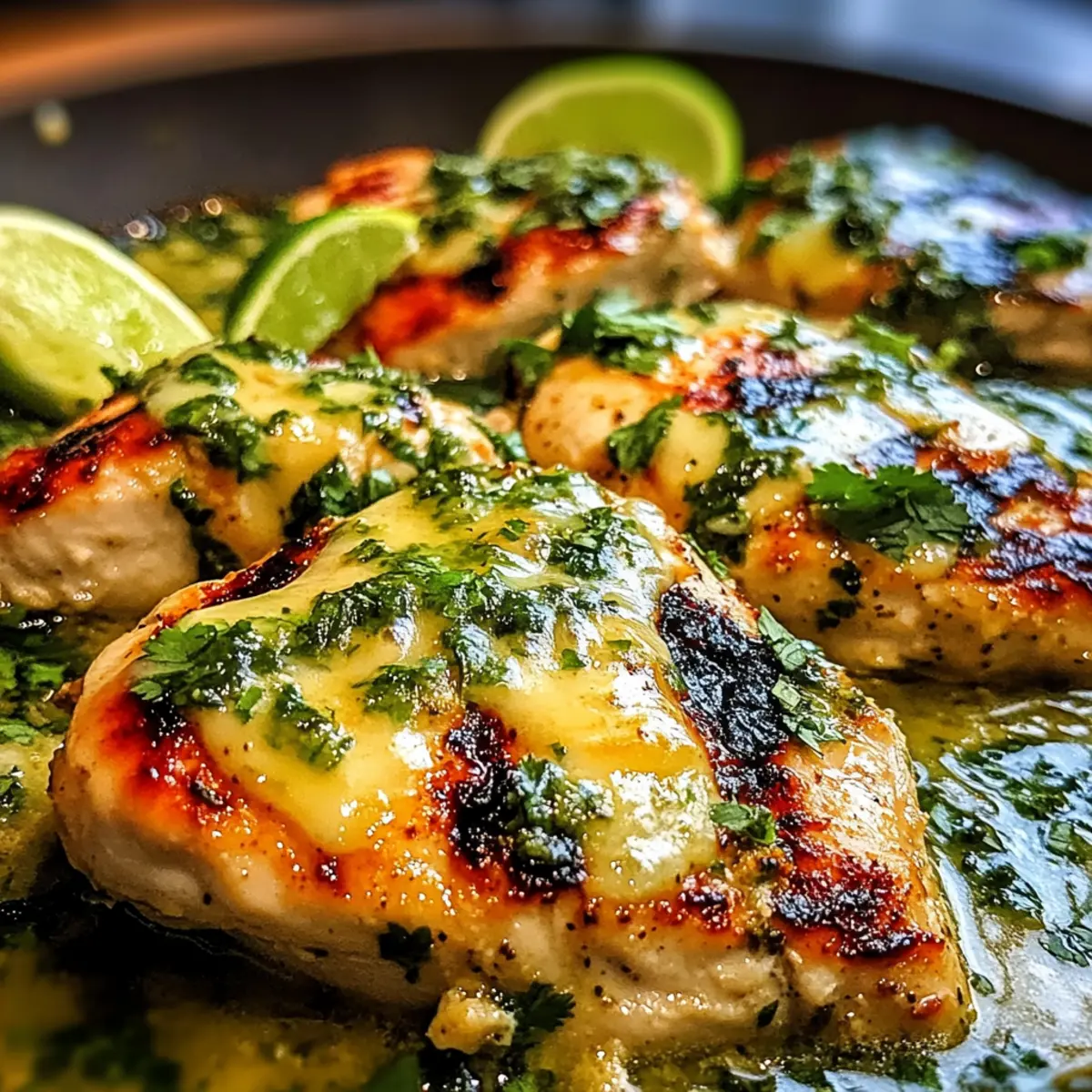 6. Lassen Sie das Hähnchen einige Minuten ruhen, garnieren Sie es mit frischem Koriander und servieren Sie es mit Limettenvierteln.