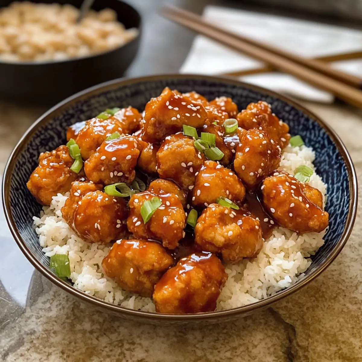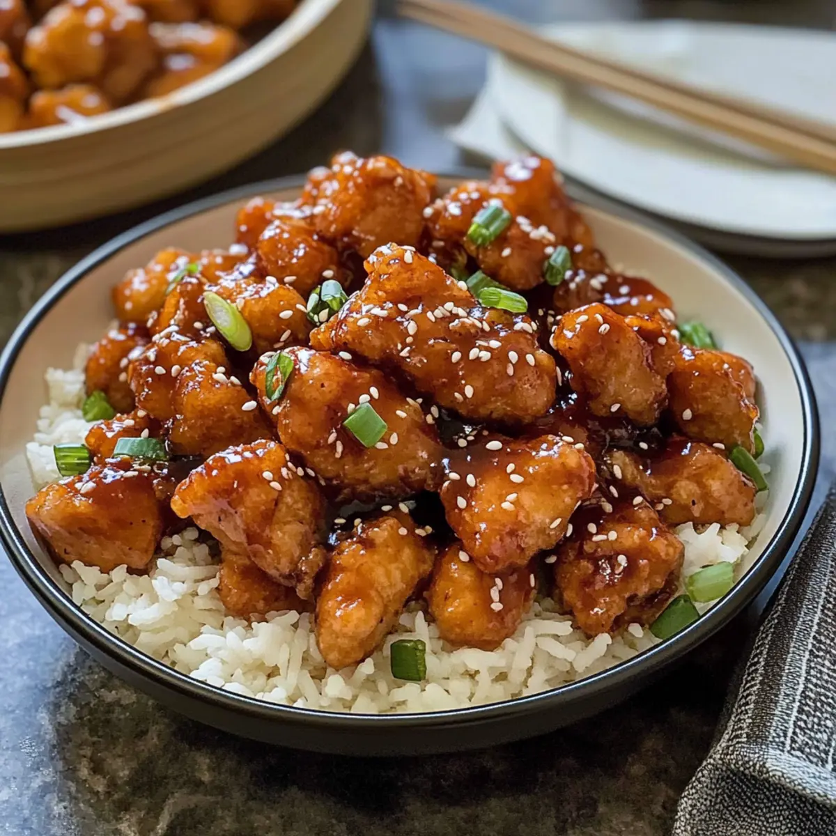 Im Herzen der Stadt, umgeben von strahlenden Lichtern und verführerischen Düften, entdeckte ich das Geheimnis eines amerikanisch-chinesischen Klassikers: General Tsos Hühnchen. Mit seiner Mischung aus süßen und würzigen Aromen verzaubert dieses Gericht nicht nur den Gaumen, sondern bringt auch die Freude des selbstgemachten Essens direkt zu dir nach Hause. In nur 25 Minuten – ja, du hast richtig gehört! – kannst du dieses himmlische Gericht zaubern, das perfekt knuspriges, paniertes Hühnchen in einer großzügigen, dickflüssigen Soße vereint. Überzeuge dich selbst von den zwei unwiderstehlichen Vorteilen: Es ist einfach zuzubereiten und bietet eine glutenfreie Option für alle, die besonderen Wert auf ihre Ernährung legen. Bist du bereit, dein eigenes Restaurant-Feeling zu Hause zu kreieren? Lass uns gemeinsam in die Zubereitung eintauchen! Warum wirst du dieses Rezept lieben? Einfachheit pur: Die Zubereitung ist kinderleicht und erfordert nur grundlegende Kochkünste, sodass du in kürzester Zeit ein köstliches Gericht zaubern kannst. Reiche, würzige Aromen: Die Kombination aus süßer Soja- und Essigsoße, gepaart mit einem Hauch von Chili, sorgt für ein Geschmackserlebnis, das deine Geschmacksknospen zum Tanzen bringt. Gesundheitsbewusste Wahl: Mit einer glutenfreien Variante in der Hinterhand kann jeder mitessen, ohne Kompromisse bei Geschmack oder Textur eingehen zu müssen. Perfekte Textur: Das knusprige Hühnchen umhüllt von der glossigen Soße bietet ein unwiderstehliches Mundgefühl, das sonst nur in Restaurants zu finden ist. Vielseitigkeit: Verpasse diesem Rezept deinen eigenen Twist, indem du Tofu für eine vegetarische Variante verwendest oder die Gewürze nach deinen Vorlieben anpasst – die Möglichkeiten sind endlos! Schnell und sättigend: In nur 25 Minuten servierst du ein Gericht, das die ganze Familie erfreut und alle satt macht – ideal für hektische Wochentage. General Tsos Hühnchen Zutaten • Entdecke die perfekten Zutaten für dein köstliches General Tsos Hühnchen! Für das Hühnchen Hühnchenbrust – Hauptprotein, in Würfel geschnitten für das Frittieren. Allzweckmehl – sorgt für die knusprige Panade; für eine glutenfreie Option kann Stärke verwendet werden. Paprika – verleiht der Panade Farbe und einen milden Geschmack. Knoblauchsalz – intensiviert die herzhafte Note des Hühnchens. Für die Soße Zucker – Hauptsüßungsmittel in der Soße für ein ausgewogenes Geschmackserlebnis. Wasser – Grundlage zum Auflösen des Zuckers sowie zur Integration der Soßenkomponenten. Weiße Essig – sorgt für die notwendige Säure in der Soße. Salz – essenziell für die Würzung. Sojasoße – verleiht der Soße Umami-Geschmack und eine salzige Note. Rote Chiliflocken – optional, für zusätzlichen Schwung in der Soße. Lass uns das köstliche General Tsos Hühnchen zusammen zubereiten und genießen! Schritt-für-Schritt-Anleitung für General Tsos Hühnchen Step 1: Hähnchen panieren und frittieren Schneide die Hühnchenbrust in Würfel und mische in einer Schüssel das Allzweckmehl mit Paprika und Knoblauchsalz. Erhitze in einer Pfanne ausreichend Öl (175°C) zum Frittieren. Lege die Hühnchenstücke in die Panade und achte darauf, dass sie gleichmäßig bedeckt sind. Frittiere die Hühnchenwürfel in Portionen 4-5 Minuten lang, bis sie goldbraun und knusprig sind. Step 2: Soßenzubereitung In einer separaten Schüssel vermische Zucker, Wasser, weißen Essig, Salz, Sojasauce und nach Belieben rote Chiliflocken. Rühre die Mischung gut um, bis sich der Zucker vollständig aufgelöst hat. Diese würzige Soße wird später das General Tsos Hühnchen ummanteln und ihm die charakteristische Süße verleihen. Step 3: Hühnchen und Soße kombinieren Sobald das Hühnchen goldbraun und knusprig ist, nimm es aus der Pfanne und lass es auf einem Küchentuch abtropfen. Gieße die vorbereitete Soße in die Pfanne, erhitze sie bei mittlerer Hitze und bringe sie zum Kochen. Reduziere die Hitze und lasse die Soße 10-12 Minuten köcheln, bis sie dickflüssig wird und das Hühnchen gleichmäßig umhüllt ist. Step 4: Servieren Jetzt ist dein General Tsos Hühnchen bereit zum Servieren! Garniere das Gericht mit Sesam oder geschnittenen Frühlingszwiebeln und serviere es warm mit gedämpftem Reis oder Gemüse. Das knusprige Hühnchen, umhüllt von der süßlichen Soße, wird deine Gäste begeistern und ihnen ein Stück Restaurant-Feeling nach Hause bringen. Vorbereitung für dein General Tsos Hühnchen Die Zubereitung deines General Tsos Hühnchens lässt sich wunderbar im Voraus planen, um wertvolle Zeit zu sparen. Du kannst das Hühnchen bis zu 24 Stunden im Voraus in Würfel schneiden und mit der Panade (Allzweckmehl, Paprika und Knoblauchsalz) versehen, damit es beim Frittieren besonders knusprig wird. Achte darauf, es in einem luftdichten Behälter im Kühlschrank aufzubewahren, um das Austrocknen zu vermeiden. Die Soße lässt sich ebenfalls schon 3 Tage zuvor zubereiten – einfach die Zutaten vermengen und in einem verschlossenen Glas im Kühlschrank lagern. Wenn du bereit bist zu servieren, erhitze einfach die vorab frittierten Hühnchenstücke in der Pfanne und gieße die erwärmte Soße darüber. So kannst du an hektischen Abenden schnell und einfach ein köstliches Gericht servieren, das genauso lecker bleibt wie frisch zubereitet! Was passt zu General Tsos Hühnchen? Im Wohnzimmer duftet es nach köstlichem, frisch zubereitetem General Tsos Hühnchen, und du fragst dich, was die perfekte Ergänzung zu diesem herzhaften Genuss sein könnte? Gedämpfter Reis: Weicher, dampfender Reis nimmt die süße Soße perfekt auf und balanciert die Aromen des Hühnchens. Frittierte Frühlingsrollen: Knusprige Frühlingsrollen sind ein beliebter Snack, der das Geschmackserlebnis mit zusätzlichen Texturen bereichert. Gedünsteter Broccoli: Die leuchtend grüne Farbe und der knackige Biss bieten nicht nur eine gesunde Beilage, sondern mildern auc
