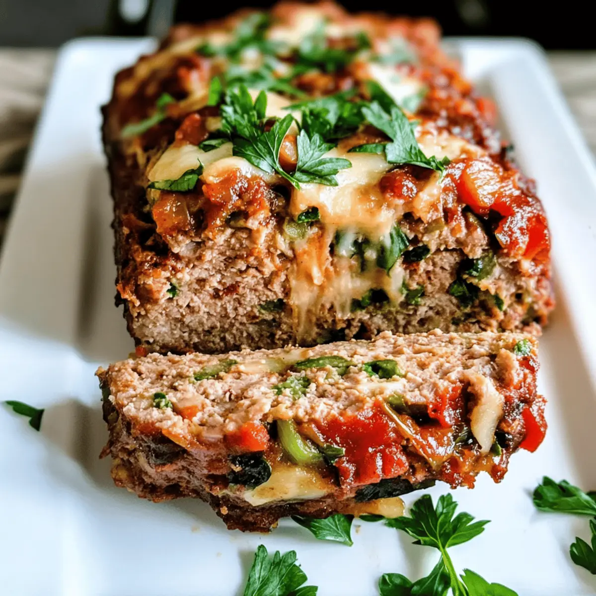 Die Heimreise nach einem langen Tag wird plötzlich zu einem kulinarischen Abenteuer, als ich den Duft von frisch gebackenem Truthahnfleischlaib durch die Küche ziehen höre. Diese gesunde Variante des klassischen Truthahnfleischlaibs ist nicht nur eine Freude für die Sinne, sondern auch eine willkommene Erleichterung für gestresste Familien, die nach einer einfachen Woche suchen. Unser gesunder Truthahnfleischlaib, voller frischer Gemüse und mit weniger gesättigten Fetten, ist die perfekte Lösung für ein schnelles Abendessen, das niemand ablehnen kann. Stell dir vor, die ganze Familie versammelt sich um den Tisch und genießt diese moistische und schmackhafte Speise, während jeder Bissen ein Stückchen Zuhause entfaltet. Bist Du bereit, Deinen nächsten Genussmoment mit dieser köstlichen und nährstoffreichen Kreation zu erleben? Warum wirst du dieses Rezept lieben? Einfachheit: Dieser gesunde Putenhackbraten ist kinderleicht zuzubereiten, perfekt für alle, die nach einer schnellen Lösung für hektische Abende suchen. Frische Aromen: Die Kombination aus frischem Gemüse und würzigem Käse bringt einen tollen Geschmack auf den Tisch – niemand wird den Unterschied zu einer fettigen Version merken! Vielfältige Optionen: Du kannst die Zutaten ganz nach deinem Geschmack anpassen. Ob mit Zucchini oder jalapeños, deiner Kreativität sind keine Grenzen gesetzt. Familienfreundlich: Dieser Hackbraten wird die ganze Familie begeistern und ist ideal für gesellige Abendessen. Serve ihn mit deinen Lieblingsbeilagen, wie gedünstetem Gemüse oder Kartoffelpüree, um das Essenslebnis zu vervollständigen. Gesundheit: Mit weniger gesättigten Fetten und vielen Nährstoffen ist dieser Putenhackbraten eine gute Wahl für gesundheitsbewusste Esser. Lass die Gäste entspannt genießen und die leeren Teller sprechen für sich! Zutaten für den gesunden Putenhackbraten • Möchtest du wissen, was du für diesen köstlichen Turkey Meatloaf brauchst? Hier ist die Übersicht! Für die Füllung Gefrorener Spinat – Sorgt für Feuchtigkeit und Nährstoffgehalt; darauf achten, überschüssige Flüssigkeit vor dem Mischen zu entfernen. Putenhackfleisch – Hauptproteinquelle, magerer als Rinderhack, was zu einem gesünderen Gericht führt. Milch – Bindet die Zutaten zusammen und hält den Hackbraten saftig. Italienisch gewürzte Semmelbrösel – Sorgt für Struktur und Geschmack; kann durch glutenfreie Semmelbrösel oder Haferflocken ersetzt werden. Trockenzwiebel-Suppengewürz – Fügt eine herzhaft tiefgründige Note hinzu und verbessert den Geschmack. Colby Jack Käse (geteilt) – Steigert den Reichtum und verleiht einen käsigen Geschmack; kann gegen fettarmen Käse eingetauscht werden. Ei – Dient als Bindemittel, das den Hackbraten zusammenhält. Worcestershire-Sauce – Bringt Umami und verbessert den Gesamtgeschmack. Rote Paprika – Frische und Süße; kann durch feingehackte Karotten oder Zucchini ersetzt werden. Knoblauchpulver – Fügt Tiefe hinzu; frischer Knoblauch kann für mehr Geschmack verwendet werden. Salz und Pfeffer – Essentielle Gewürze zur Geschmacksverstärkung. Tomatensauce – Wirkt als Geschmacks- und Feuchtigkeitsspender. Gelbe Zwiebel – Sorgt für Aromatik und zusätzliche Süße; kann durch Schalotten ersetzt werden. Um deinen gesunden Turkey Meatloaf perfekt nachzukochen, beachte diese Punkte in der Zutatenliste! Schritt-für-Schritt-Anleitung für den gesunden Putenhackbraten Step 1: Ofen vorheizen Heize den Ofen auf 190°C (375°F) vor. Dies sorgt dafür, dass dein gesunder Putenhackbraten gleichmäßig und perfekt durchgegart wird. Während der Ofen auf Temperatur kommt, kannst du mit den nächsten Schritten beginnen. Step 2: Spinat vorbereiten Taut den gefrorenen Spinat in der Mikrowelle auf und achte darauf, überschüssige Flüssigkeit gründlich auszupressen. Dies verhindert, dass der Hackbraten zu nass wird und sorgt für die richtige Konsistenz. Der Spinat wird dem Gericht nicht nur Feuchtigkeit, sondern auch wertvolle Nährstoffe hinzufügen. Step 3: Zutaten vermengen In einer großen Schüssel kombinierst du das Putenhackfleisch, den ausgedrückten Spinat, die Milch, die Semmelbrösel, die Trockenzwiebel-Suppengewürzmischung, 1,5 Tassen Colby Jack Käse, das Ei, die Worcestershire-Sauce, die gewürfelte Paprika, das Knoblauchpulver, Salz und Pfeffer. Mische alles gut, bis die Zutaten gleichmäßig verteilt sind und eine homogene Masse entsteht. Step 4: Hackmasse in die Form geben Fette eine 8-Zoll x 8-Zoll große Glasbackform mit Antihaftspray ein und verteile die Putenhackmasse gleichmäßig darin. Achte darauf, dass die Oberfläche glatt ist, um ein gleichmäßiges Garen zu gewährleisten. So entsteht eine schöne Kruste während des Backens. Step 5: Käse und Sauce hinzufügen Streue den restlichen Käse gleichmäßig auf die Hackmasse. Gieße dann die Tomatensauce über den Käse und verteile die gewürfelte Zwiebel darauf. Diese Schicht sorgt für zusätzlichen Geschmack und hilft, den Hackbraten saftig zu halten. Step 6: Hackbraten backen Backe den gesunden Putenhackbraten für 1 Stunde im vorgeheizten Ofen. Wenn die Oberseite zu schnell braun wird, kannst du sie locker mit Alufolie abdecken. Behalte während des Backens ein Auge darauf, um sicherzustellen, dass alles gleichmäßig gart. Step 7: Abkühlen und servieren Lass den Hackbraten nach dem Backen 10 Minuten abkühlen, bevor du ihn in 6 gleich große Stücke schneidest. Dies erleichtert das Schneiden und hilft, die Feuchtigkeit im Inneren zu bewahren. Jetzt ist dein gesunder Putenhackbraten bereit, serviert zu werden! Aufbewahrungstipps für den gesunden Putenhackbraten Zimmertemperatur: Lasse den Putenhackbraten nach dem Backen bei Raumtemperatur nicht länger als 2 Stunden stehen, um das Wachstum von Bakterien zu verhindern. Kühlschrank: Bewahre die Reste in einem luftdichten Behälter im Kühlschrank auf, wo sie bis zu 3 Tage haltbar sind. Achte darauf, die Reste gut abzuküh