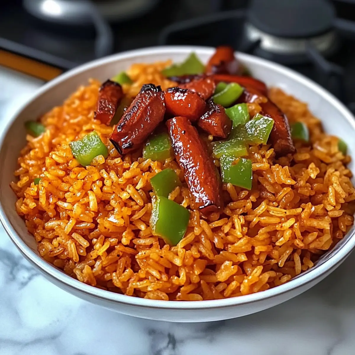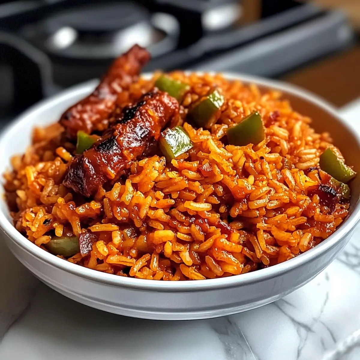 Dieses Ghanaische Jollof-Reis Rezept vereint rauchige und süße Aromen zu einem unvergesslichen Festessen.