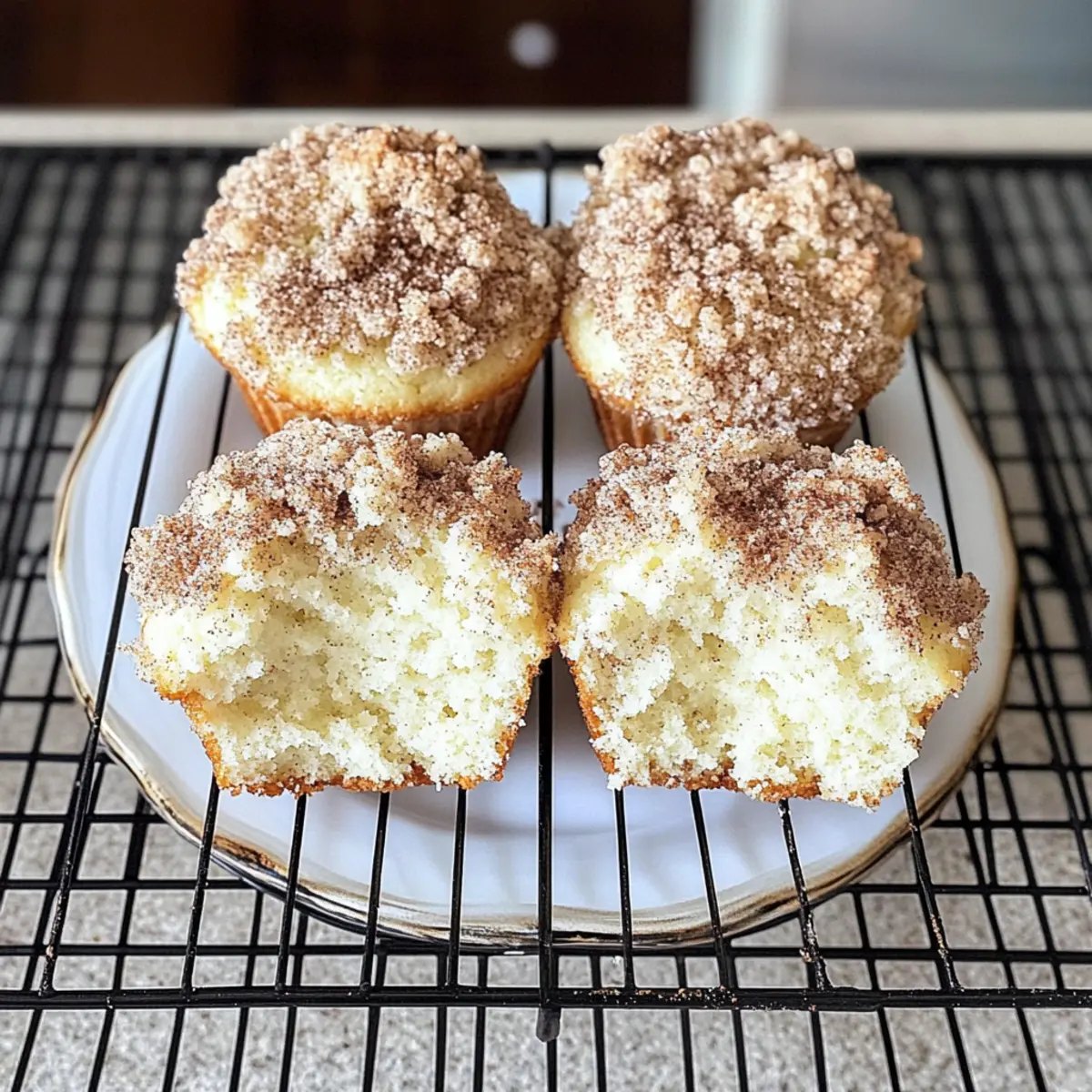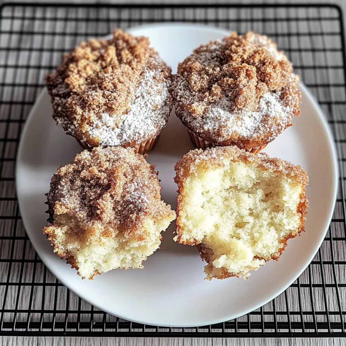So oft höre ich, wie jemand in der Küche voller Begeisterung von den Vorzügen von glutenfreien Rezepten spricht, und heute kann ich das Gefühl nur bestätigen. Diese glutenfreien Zimt-Cream-Cheese-Kaffee-Kuchen-Muffins sind nicht nur traumhaft fluffig und feucht, sie sind auch die perfekte Begleitung zu einem gemütlichen Frühstück oder als süßer Snack am Nachmittag. Mit ihrem köstlichen Zusammenspiel aus Zimt und dem cremigen Käse, der im Inneren darauf wartet, entdeckt zu werden, bieten sie eine verführerische Option, die sich hervorragend für glutenfreie Genießer eignet. Und das Beste daran? Sie sind schnell zubereitet und sorgen garantiert für strahlende Gesichter bei Familie und Freunden. Also, seid ihr bereit, in die Welt des Backens einzutauchen? Warum werden diese Muffins Ihr Herz erobern? Einfachheit: Die Zubereitung dieser glutenfreien Muffins ist unkompliziert, sodass selbst Anfänger in der Küche sie mühelos meistern können. Vielfältiger Genuss: Ob zum Frühstück mit einer Tasse Kaffee oder als Nachmittagssnack, diese Muffins sind immer ein Hit. Köstliche Aromen: Die Mischung aus Zimt und cremigem Käse kreiert einen unwiderstehlichen Geschmack, der jeden Bissen zum Erlebnis macht. Gesündere Wahl: Diese Muffins enthalten weniger Zucker als herkömmliche Rezepte und sind somit eine gute Option für gesundheitsbewusste Genießer. Variationen-freudig: Sie können ganz einfach frische Früchte oder Nüsse hinzufügen, um Ihre Muffins nach Lust und Laune zu variieren. Für eine perfekte Ergänzung zu diesen Muffins, probieren Sie auch unseren drehbaren Obstsalat aus, der frisch und erfrischend ist! Glutenfreier Kaffee Kuchen Zutaten Für den Teig: Ei – Sorgt für Feuchtigkeit und Struktur. Substitution: Verwenden Sie ein Flax-Ei (1 Esslöffel gemahlene Leinsamen + 2,5 Esslöffel Wasser) für eine vegane Option. Brauner Zucker – Fügt Süße und Tiefe hinzu. Keine Substitution erforderlich, aber Kokoszucker kann für eine weniger verarbeitete Option verwendet werden. Kristallzucker – Süße für die Muffins. Kann durch ein Zuckeralternativ wie Erythrit ersetzt werden. Griechischer Joghurt – Erhöht die Feuchtigkeit und sorgt für eine zarte Krume. Substitution: Sauerrahm kann ebenfalls verwendet werden. Öl (Avocado oder Olivenöl) – Bringt Fett für die Feuchtigkeit. Substitution: Geschmolzenes Kokosöl kann dafür einen anderen Geschmacksprofil bringen. Butter (geschmolzen) – Fügt Reichtum und Geschmack hinzu. Substitution: Verwenden Sie vegane Butter oder Kokosöl für eine milchfreie Variante. Milch – Sorgt für Feuchtigkeit und trägt zur Konsistenz des Teigs bei. Substitution: Mandeldrink oder Hafermilch eignet sich gut für eine milchfreie Version. Vanilleextrakt – Verbessert den Gesamtgeschmack. Keine Substitution nötig, aber Mandelaroma kann als alternative Geschmackvariante verwendet werden. Bob’s Red Mill 1 zu 1 Glutenfreies Mehl – Hauptmehlbasis, die Struktur bietet. Achten Sie darauf, glutenfreies zertifiziertes Mehl für die besten Ergebnisse zu verwenden. Backpulver & Natron – Treibmittel für den Auftrieb. Stellen Sie sicher, dass sie frisch sind für maximale Wirkung. Salz – Balanciert die Aromen. Keine Substitution nötig. Muskatnuss & Ceylon-Zimt – Gewürze, die Wärme und Geschmacksprofil verstärken. Substitution: Gewöhnlicher Zimt kann verwendet werden, aber Ceylon ist wegen seines milderen Geschmacks bevorzugt. Frischkäse – Sorgt für die cremige Schicht. Für eine vegane Option, verwenden Sie einen pflanzlichen Frischkäse. Crumble-Topping – Besteht aus Mehl, braunem Zucker, Zimt und Butter für eine crunchy Textur. Kann bei Bedarf durch Haferflocken ersetzt werden, um einen knusprigeren Belag zu erhalten. Diese glutenfreien Kaffee Kuchen Muffins sind ideal für jeden Anlass! Step-by-Step Instructions für Glutenfreier Zimt-Cream-Cheese-Kaffee-Kuchen Step 1: Ofen vorheizen Heizen Sie Ihren Ofen auf 175°C (350°F) vor und bereiten Sie eine Muffin-Backform mit sechs Förmchen vor. Nutzen Sie Papierförmchen, um das Ankleben zu verhindern und eine einfache Entnahme der Muffins zu gewährleisten. Diese Vorbereitungen helfen, den Garprozess gleichmäßig und effizient zu gestalten. Step 2: Flüssige Zutaten mischen Geben Sie in eine Rührschüssel das Ei, den braunen Zucker, den Kristallzucker, den griechischen Joghurt, das Öl, die geschmolzene Butter, die Milch und den Vanilleextrakt. Verwenden Sie einen Standmixer, um alles gut zu vermengen, bis eine homogene Masse entsteht. Dies sollte etwa 2-3 Minuten dauern, sodass die Mischung schön cremig wird. Step 3: Trockene Zutaten kombinieren In einer separaten Schüssel das glutenfreie Mehl, das Backpulver, das Natron, das Salz sowie die Muskatnuss und den Ceylon-Zimt vermengen. Verwenden Sie einen Schneebesen, um alles gut zu vermischen. Dadurch werden Klumpen vermieden und eine gleichmäßige Verteilung der Backtriebmittel in der Mischung sichergestellt. Step 4: Mischungen vereinen Fügen Sie nach und nach die trockenen Zutaten zu der flüssigen Mischung hinzu, während Sie den Mixer auf niedriger Stufe laufen lassen. Mixen Sie nur solange, bis die Zutaten gerade so verbunden sind. Achten Sie darauf, die Masse nicht zu übermixen, damit die Muffins schön fluffig werden, ohne dass sie zäh werden. Step 5: Muffinform füllen Verteilen Sie den Teig gleichmäßig auf die vorbereiteten Muffinförmchen. Füllen Sie jedes Förmchen etwa bis zur Hälfte, um Platz für die cremige Schicht und das Crumble-Topping zu lassen. Ein Eisportionierer kann Ihnen beim gleichmäßigen Befüllen helfen und sorgt für ein einheitliches Aussehen der Muffins. Step 6: Frischkäse-Schicht vorbereiten In einer Schüssel den Frischkäse, das Ei und den Zucker gut verrühren, bis eine cremige, glatte Konsistenz entsteht. Diese Mischung wird später über den Muffinteig gegeben. Stellen Sie sicher, dass keine Klumpen vorhanden sind, um eine gleichmäßige Verteilung der Frischkäse-Schi
