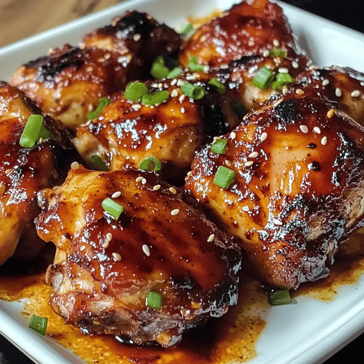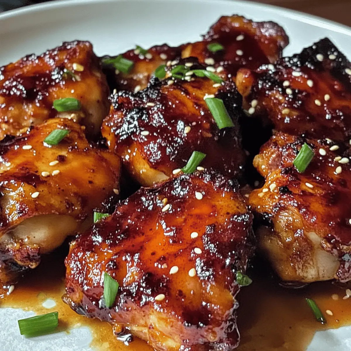 Als die ersten Aromen aus meiner Küche durch das Haus zogen, wusste ich sofort, dass ich eine würzige Entdeckung gemacht hatte. Spicy Gochujang Miso Chicken Thighs sind mehr als nur ein Gericht – sie sind ein Fest für die Sinne. Diese zarten Hähnchenkeulen, mariniert in einer umami-reichen Mischung aus Gochujang und Miso, bringen Koreanisch inspirierten Genuss direkt auf deinen Tisch. Mit nur wenigen leicht erhältlichen Zutaten zauberst du im Handumdrehen ein köstliches Essen, das sich perfekt für stressige Wochentage oder gesellige Abende eignet. Diese Rezeptur vereint nicht nur schnelle Zubereitung mit einem echten Geschmackserlebnis, sondern auch die Möglichkeit, Familie und Freunde mit etwas Einzigartigem zu überraschen. Bist du bereit, deinen Gaumen zu verwöhnen? Lass uns gemeinsam in die Welt der koreanischen Aromen eintauchen! Warum wirst du dieses Rezept lieben? Einfachheit: Die Zubereitung ist unkompliziert und benötigt nur grundlegende Kochkünste – perfekt für jeden zu Hause! Reiche Aromen: Die Kombination aus Gochujang und Miso sorgt für einen unverwechselbaren Umami-Geschmack, der nicht nur den Gaumen verwöhnt, sondern auch Erinnerungen an koreanische BBQs weckt. Vielfältig: Dieses Rezept lässt sich leicht anpassen – tausche das Hähnchen gegen Tofu aus oder füge Gemüse für eine farbenfrohe Ein-Pfannen-Mahlzeit hinzu. Schnelle Zubereitung: Mit einer kurzen Marinierzeit von nur 30 Minuten kannst du blitzschnell ein köstliches Abendessen zaubern, ideal für stressige Wochentage oder Last-Minute-Gäste! Familienfreundlich: Der intensive Geschmack wird alle am Tisch begeistern und lädt dazu ein, dieses Gericht häufiger zu genießen – genauso wie andere Favoriten wie Crack Chicken Gnocchi oder ein Chicken Caesar Sandwich. Beeindruckend: Mit knuspriger Haut und saftigem Fleisch wird dieses Gericht jeden begeistern und sich perfekt für deine nächste Zusammenkunft eignen! Gochujang Miso Hähnchenschenkel Zutaten Für die Marinade • Gochujang – verleiht dem Hähnchen eine würzige Schärfe und Tiefe; ersetze es bei Bedarf durch Sriracha für einen milderen Geschmack. • Miso-Paste – sorgt für eine umami-reiche Basis; verwende weiße Miso für einen süßeren oder rote Miso für einen kräftigeren Geschmack. • Sojasauce – verstärkt die herzhaften Noten; wähle eine natriumarme Variante, um den Salzgehalt zu regulieren. • Honig oder Ahornsirup – bringt die richtige Süße ins Spiel, um die Schärfe auszubalancieren; Agavensirup ist eine großartige vegane Alternative. • Reisessig – sorgt für Frische und bringt die Aromen zum Strahlen; ersetze bei Bedarf durch Apfelessig. • Sesamöl – fügt ein nussiges Aroma hinzu; verwende neutrales Öl, wenn es nicht verfügbar ist, wobei der Geschmack abweicht. • Knoblauch – bringt aromatische Tiefe; frisch gehackt ist ideal, aber bei Notfall kann auch Knoblauchpulver verwendet werden. • Ingwer – sorgt für Wärme und eine leichte Schärfe; Verwendung von natürlichem Ingwer wird empfohlen, reduziere die Menge bei Verwendung von gemahlenem Ingwer. Für das Hähnchen • Hähnchenschenkel – mit Knochen und Haut für mehr Saftigkeit und Geschmack; wähle entbeinte Stücke für eine schnellere Garzeit. • Salz und Pfeffer – zum Abschmecken nach persönlichem Vorlieben; achte darauf, die richtige Balance zu finden. Für die Garnitur • Sesamsamen – diese dekorativen Samen fügen Crunch hinzu und erhöhen den Genuss. • Frische Frühlingszwiebeln – verleihen dem Gericht einen Farbklecks und zusätzlichen Geschmack. Mit diesen Zutaten kannst du die köstlichen Gochujang Miso Hähnchenschenkel kinderleicht zubereiten, die selbst deine Gäste beeindrucken werden! Schritt-für-Schritt-Anleitung für Würzige Gochujang Miso Hähnchenschenkel Step 1: Marinade vorbereiten Vermische in einer Schüssel den Gochujang, die Miso-Paste, Sojasauce, Honig, Reisessig, Sesamöl, den gehackten Knoblauch und den geriebenen Ingwer. Rühre kräftig um, bis eine homogene Marinade entsteht, die schön cremig und duftend ist. Dieser Schritt ist entscheidend, denn die Marinade verleiht den Hähnchenschenkeln ihre würzige und umami-reiche Note. Step 2: Hähnchen marinieren Lege die Hähnchenschenkel in eine große Schüssel oder einen wiederverschließbaren Beutel und gieße die Marinade darüber. Achte darauf, dass alle Stücke gut mit der Marinade überzogen sind. Verschließe die Schüssel oder den Beutel fest und lasse das Hähnchen mindestens 30 Minuten im Kühlschrank marinieren, besser noch über Nacht, damit die Aromen intensiv durchdringen können. Step 3: Ofen vorheizen Heize deinen Ofen auf 200 °C (400 °F) vor. Dies ist der perfekte Zeitpunkt, um sicherzustellen, dass die Hitze gleichmäßig verteilt ist, wenn du die marinierten Hähnchenschenkel hineingibst. Ein gut vorgeheizter Ofen ist entscheidend, damit die Haut knusprig wird und das Fleisch zart bleibt. Step 4: Backform vorbereiten Fette eine Auflaufform leicht mit Kochspray oder etwas Öl ein. Dies hilft, die Hähnchenschenkel daran zu hindern, festzukleben und sorgt für eine gleichmäßige Bräunung. Achte darauf, dass die gesamte Fläche gut bedeckt ist, damit die Hähnchenstücke später leicht herauszunehmen sind. Step 5: Hähnchen anordnen Nimm die marinierten Hähnchenschenkel aus der Marinade und lege sie mit der Hautseite nach oben in die vorbereitete Auflaufform. Achte darauf, die Marinade, die das Hähnchen nicht berührt hat, wegzuwerfen, um eine Überladung an Flüssigkeit im Gericht zu verhindern. Die Hautseite wird schön knusprig und erhält eine appetitliche Farbe beim Backen. Step 6: Würzen Streue eine Prise Salz und frisch gemahlenen Pfeffer über die Hähnchenschenkel. Dies verstärkt die Aromen des Gerichts und sorgt für eine harmonische Balance zwischen der Würze der Marinade und den natürlichen Geschmacksnoten des Hühnerfleisches. Achte darauf, dass du gleichmäßig würzt, um das gesamte Hähnchen zu arom