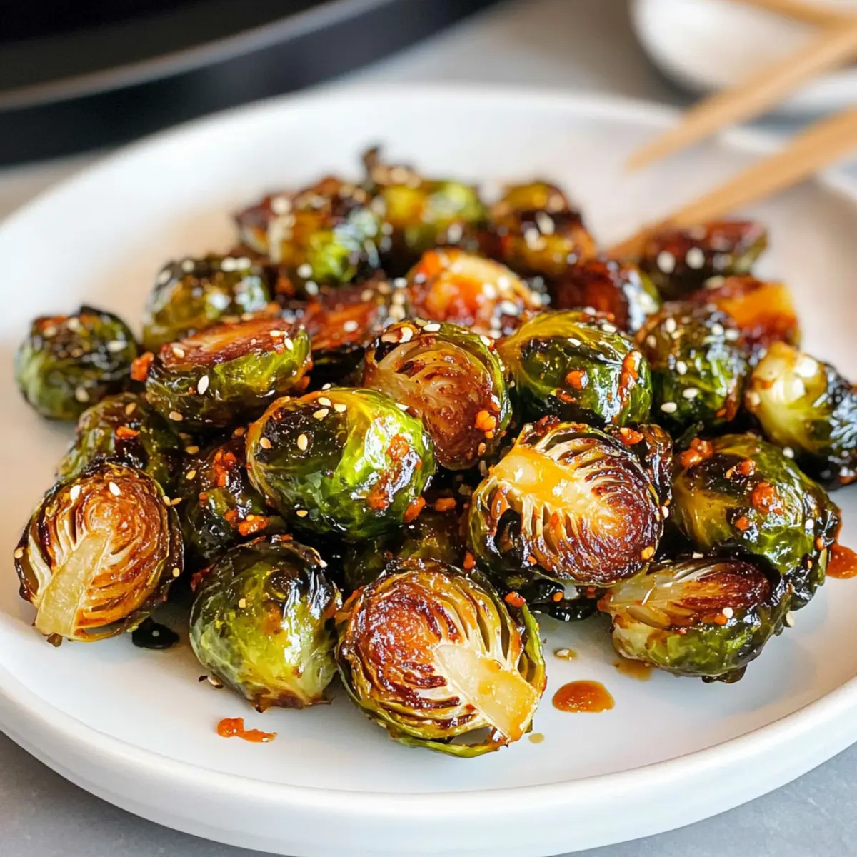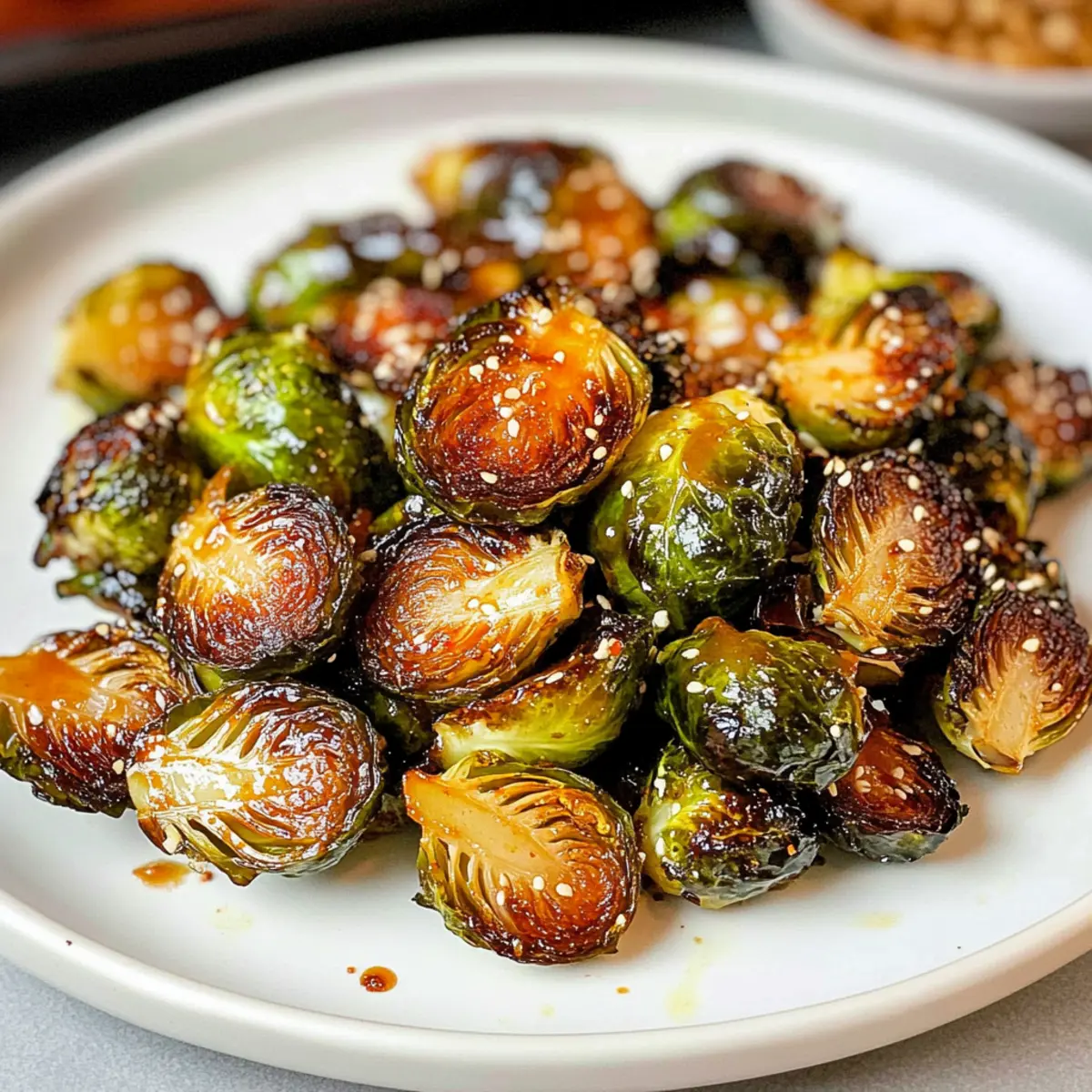 Wenn ich in der Küche stehe und die ersten Aromen von geröstetem Gemüse entweichen, fühle ich mich sofort geborgen. Diese Spicy Roasted Gochujang Brussels Sprouts sind genau das Rezept, das ich immer wieder zubereiten möchte. Mit der aufregenden Kombination aus scharfem Gochujang und süßem Ahornsirup entsteht eine umami-reiche Glasur, die den erdigen Geschmack der Rosenkohl perfekt zur Geltung bringt. Was ich daran am meisten liebe? Die Zubereitung dauert nur 35 Minuten und das Ergebnis ist ein köstliches, vegetarisches Beilagen-Gericht, das sogar die Hartnäckigsten unter den Rosenkohl-Zweiflern überzeugt. Bist du bereit, eine neue Lieblingsbeilage zu entdecken, die deine Geschmacksknospen überraschen wird? Warum wirst du diesen Rezept lieben? Einfachheit pur: Die Zubereitung ist denkbar unkompliziert und erfordert keine besonderen Kochkünste – ideal, um auch in hektischen Zeiten ein schmackhaftes Gericht zu zaubern. Köstliche Umami-Explosion: Die Kombination aus scharfem Gochujang und süßem Ahornsirup sorgt für einen unverwechselbaren Geschmack, der deine Gäste begeistern wird. Vielseitig: Perfekt als Beilage zu Grilled Chicken oder über Reis serviert, passt dieser Rosenkohl wunderbar zu zahlreichen Hauptgerichten. Schnell und zeitsparend: In nur 35 Minuten von der Vorbereitung bis zum Servieren – ein echtes Plus für jeden, der kaum Zeit zum Kochen findet. Gesund und nahrhaft: Diese vegetarische Beilage enthält nicht nur wenig Kalorien, sondern ist auch reich an Vitamin C und Ballaststoffen, was sie zu einer gesunden Wahl macht. Gochujang Rosenkohl Zutaten Für den Rosenkohl • Rosenkohl – Frische Rosenkohl sollten geputzt und halbiert werden, damit sie gleichmäßig rösten. • Olivenöl – Sorgt für eine reiche Textur und hilft, eine knusprige Oberfläche zu erzielen; Avocadoöl ist eine gute Alternative für höhere Temperaturen. • Salz – Verstärkt den Geschmack und kann nach Belieben angepasst werden. • Schwarzer Pfeffer – Bringt eine milde Schärfe; frisch gemahlener Pfeffer hat das beste Aroma. Für die Glasur • Gochujang-Paste – Diese fermentierte koreanische Chilipaste sorgt für einen würzigen und süßen Kick; in asiatischen Geschäften oder Supermärkten erhältlich. • Sojasauce – Fügt Tiefe und Umami hinzu; verwende Tamari für eine glutenfreie Variante. • Ahornsirup – Balanciert die Schärfe des Gochujangs; Honig funktioniert auch, ist aber nicht vegan. • Limettensaft – Sorgt für eine angenehme Säure; kann durch Zitronensaft ersetzt werden. Mit diesen Zutaten bist du auf dem besten Weg, diese köstlichen Gochujang Rosenkohl zuzubereiten, die garantiert alle überzeugen werden! Schritt-für-Schritt-Anleitung für Gochujang Rosenkohl Step 1: Vorbereitung Heize den Ofen auf 200°C vor. Putze die frischen Rosenkohl und halbiere sie, wobei du darauf achtest, dass sie am Boden zusammenbleiben. So schaffst du eine gleichmäßige Röstaromatik. Lege die vorbereiteten Rosenkohl in eine große Schüssel bereit. Step 2: Beschichtung Füge in die Schüssel mit den halbierten Rosenkohl das Olivenöl sowie Salz und schwarzen Pfeffer hinzu. Tossiere alles gut, damit die Rosenkohl gleichmäßig mit dem Öl und den Gewürzen überzogen sind. Dies gewährleistet, dass sie beim Rösten schön knusprig werden. Step 3: Erstes Rösten Verteile die gewürzten Rosenkohl gleichmäßig auf einem Backblech und achte darauf, dass sie nicht übereinanderliegen. Röste sie im vorgeheizten Ofen für etwa 20 Minuten, bis sie zart und goldbraun sind. Diese ersten 20 Minuten sind entscheidend für die Entwicklung der Aromen. Step 4: Soßenvorbereitung Bereite während das Gemüse röstet die Glasur vor. Mische in einer separaten Schüssel die Gochujang-Paste, Sojasauce, Ahornsirup und Limettensaft. Rühre alles gut um, bis eine homogene Mischung entsteht, die später den Gochujang Rosenkohl verfeinert. Step 5: Finale Röstung Nimm die Rosenkohl nach 20 Minuten aus dem Ofen und gieße die vorbereitete Glasur über sie. Rühre vorsichtig um, damit jeder Rosenkohl gleichmäßig mit der würzigen Mischung bedeckt wird. Lege die Mischung wieder auf das Backblech und röste sie für weitere 10-12 Minuten, bis die Glasur karamellisiert ist. Step 6: Servieren Sobald die Gochujang Rosenkohl fertig sind, nimm sie aus dem Ofen. Richte sie auf einem hübschen Teller an und genieße sie als köstliche Beilage zu deinem Hauptgericht. Die Röstaromen und die süß-würzige Glasur werden alle überzeugen! Lagerungstipps für Gochujang Rosenkohl Kühlschrank: Lagere übrig gebliebene Gochujang Rosenkohl in einem luftdichten Behälter im Kühlschrank für bis zu 3 Tage. Dies hilft, die Frische und den Geschmack zu bewahren. Gefrierschrank: Du kannst die Gochujang Rosenkohl auch für bis zu 2 Monate im Gefrierschrank aufbewahren. Verteile sie auf einem Backblech, friere sie ein, und transfere sie dann in einen Gefrierbeutel, damit sie nicht zusammenkleben. Wiedereingang: Zum Aufwärmen, die gefrorenen Rosenkohl im vorgeheizten Ofen bei 200°C für 15-20 Minuten rösten, bis sie durchgewärmt und knusprig sind. So bleibt die leckere Textur erhalten. Raumtemperatur: Nicht empfehlenswert für längere Zeit. Lasse die Gochujang Rosenkohl nicht länger als 2 Stunden bei Raumtemperatur, um die Frische und Sicherheit zu gewährleisten. Gochujang Rosenkohl im Voraus zubereiten Diese Gochujang Rosenkohl sind perfekt für die Mahlzeitvorbereitung! Du kannst die frischen Rosenkohl bis zu 24 Stunden im Voraus putzen und halbieren, sodass sie im Kühlschrank aufbewahrt werden – so bleibt ihre Frische und Struktur erhalten. Auch die Glasur aus Gochujang, Sojasauce, Ahornsirup und Limettensaft kannst du bis zu 3 Tage im Voraus zubereiten; bewahre sie in einem luftdichten Behälter auf, um die Aromen zu bewahren. Wenn du bereit bist zu servieren, heize einfach den Ofen vor, röste die Rosenkohl für 20 Minuten, füge dann die vorbereitete Glasur hinzu und röste sie weitere 10-12 M