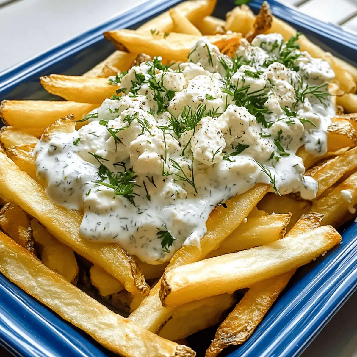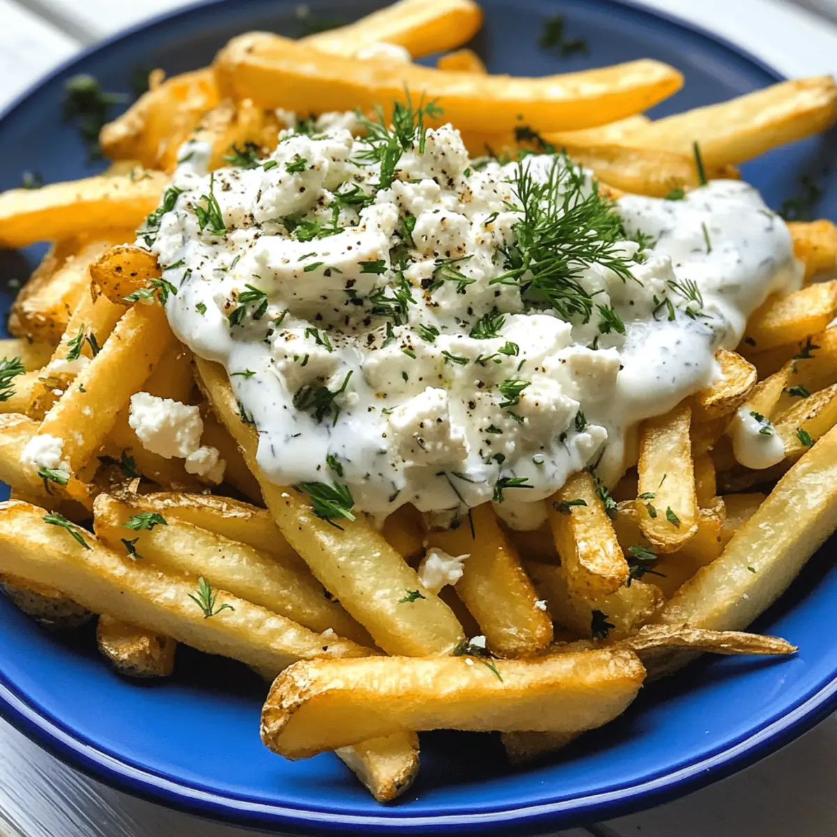 Als die goldbraunen Pommes im Ofen surrten, erinnerte ich mich an das letzte Grillfest, wo selbst die hartgesottensten Fast-Food-Liebhaber vor Begeisterung ins Schwärmen gerieten. Die griechischen Feta-Pommes sind nicht nur ein echter Hingucker, sondern auch ein wahrer Genuss – knusprig, fluffig und gekrönt von einer cremigen Feta-Joghurt-Sauce, die jedem Biss das gewisse Etwas verleiht. Diese einfache Rezeptur ist eine wunderbare Wahl für jede Zusammenkunft, denn sie lässt sich in nur 5 Minuten vorbereiten und benötigt dann lediglich 12 Minuten im Ofen. Perfekt für einen geselligen Abend oder als schneller Snack! Was wird Ihre Lieblingskombination mit diesen köstlichen Pommes sein? Warum sind diese Feta-Pommes einzigartig? Einfachheit: Die Zubereitung ist kinderleicht und benötigt nur wenige grundlegende Zutaten. In weniger als 20 Minuten genießen Sie ein köstliches Gericht. Köstlicher Geschmack: Die Fusion aus knusprigen Pommes und der cremigen Feta-Joghurt-Sauce sorgt für ein Geschmackserlebnis, das begeistert. Vielseitig: Diese Pommes passen hervorragend zu verschiedenen Dips, von Tzatziki bis zu einem frischen Joghurt-Dip, die Sie ebenfalls ausprobieren sollten. Geselligkeit: Perfekt für Partys oder gesellige Abende, diese Pommes werden garantiert zum Star Ihres Buffets und bringen alle zum Schwärmen. Kreativität: Variieren Sie das Rezept, indem Sie Oliven oder geröstete Paprika hinzufügen für eine spannende zusätzliche Note. Griechische Feta-Pommes Zutaten Für die Pommes • Pommes Frites – Stärkebasis für das Gericht. Verwenden Sie dicke gefrorene Pommes für optimale Knusprigkeit. Für die Feta-Joghurt-Sauce • Feta-Käse – Fügt salzigen Geschmack und Cremigkeit hinzu. Wählen Sie qualitativ hochwertigen Feta für den besten Geschmack. • Naturjoghurt – Kombiniert mit Feta für eine cremige Sauce. Kann durch griechischen Joghurt für eine dickere Konsistenz ersetzt werden. • Sauerrahm – Verstärkt den pikanten Geschmack der Sauce. Optional, jedoch empfohlen für zusätzliche Tiefe. • Knoblauch (1 große Zehe, gehackt) – Sorgt für aromatischen Geschmack. Frischer Knoblauch ist für optimalen Geschmack am besten. • Zitronensaft (2 Esslöffel, frisch gepresst) – Fügt Säure und Frische zu den Pommes hinzu. Frisch gepresst ist vorzuziehen für den besseren Geschmack. • Frische Petersilie (1 Esslöffel, gehackt) – Garniert für zusätzliche Frische. Basilikum kann eine gute Alternative sein. • Frischer Dill (1 Esslöffel, gehackt) – Verstärkt das griechische Geschmacksprofil. Getrockneter Dill kann im Notfall verwendet werden. • Getrockneter Oregano (1 Teelöffel) – Gewürz zur Ergänzung der Pommes. Frischer Oregano kann verwendet werden, wenn verfügbar. • Salz – Verstärkt den Gesamtgeschmack. Nach Geschmack anpassen. Schritt-für-Schritt-Anleitung für Griechische Feta-Pommes Schritt 1: Ofen vorheizen Heizen Sie Ihren Ofen auf 220 Grad Celsius vor. Legen Sie ein Backblech mit Backpapier aus und verteilen Sie die gefrorenen Pommes gleichmäßig darauf. Backen Sie die Pommes für etwa 12 bis 15 Minuten, bis sie goldbraun und knusprig sind, und wenden Sie sie nach der Hälfte der Backzeit, um eine gleichmäßige Bräunung zu gewährleisten. Schritt 2: Feta-Joghurt-Sauce zubereiten Während die Pommes im Ofen sind, geben Sie Feta-Käse, Naturjoghurt, Sauerrahm, gehackten Knoblauch, frisch gepressten Zitronensaft, Petersilie, Dill, Oregano und Salz in eine mittlere Schüssel. Mischen Sie alle Zutaten gut, bis eine cremige Sauce entsteht. Lassen Sie die Mischung einige Minuten ruhen, damit sich die Aromen entfalten können. Schritt 3: Pommes würzen Sobald die Pommes fertig sind, nehmen Sie sie aus dem Ofen und stellen Sie sicher, dass sie richtig knusprig sind. Salzen Sie die heißen Pommes sofort, während sie noch dampfen, damit das Salz besser haftet. Dies gibt Ihnen zusätzlichen Geschmack, der die Basis für die Griechischen Feta-Pommes bildet. Schritt 4: Anrichten und servieren Übertragen Sie die knusprigen Pommes auf eine Servierplatte. Gießen Sie großzügig die Feta-Joghurt-Sauce über die Pommes, sodass sie gut bedeckt sind. Diese köstliche Sauce wird schnell zu einem Highlight Ihrer Griechischen Feta-Pommes und verleiht jedem Biss eine cremige Note. Schritt 5: Garnieren Um die Präsentation noch ansprechender zu gestalten, können Sie die Pommes optional mit zusätzlichen gehackten Kräutern und zerbröckeltem Feta garnieren. Dies gibt nicht nur einen farbenfrohen Akzent, sondern verstärkt auch das griechische Geschmacksprofil. Servieren Sie die Pommes sofort warm für das beste Geschmackserlebnis. Griechische Feta-Pommes optimal vorbereiten Die Griechischen Feta-Pommes sind perfekt für die Vorbereitung und bieten eine große Erleichterung für geschäftige Tage! Die Feta-Joghurt-Sauce können Sie bis zu 24 Stunden im Voraus zubereiten, damit die Aromen schön durchziehen. Stellen Sie sicher, dass Sie sie in einem luftdichten Behälter im Kühlschrank aufbewahren, um die Frische zu bewahren. Wenn es Zeit ist, die Pommes zu servieren, backen Sie einfach die gefrorenen Pommes für 12 bis 15 Minuten, bis sie goldbraun und knusprig sind. Sobald die Pommes fertig sind und noch heiß, salzen Sie sie sofort und träufeln Sie die vorbereitete Sauce darüber, um ein köstliches Geschmackserlebnis zu garantieren. Diese Vorbereitung spart nicht nur Zeit, sondern sorgt auch dafür, dass Sie frisch zubereitete Pommes genießen können! Lagerungstipps für Griechische Feta-Pommes Raumtemperatur: Lassen Sie die Pommes nicht länger als 2 Stunden bei Raumtemperatur stehen, um eine mögliche Verderblichkeit zu vermeiden. Kühlschrank: Bewahren Sie übrig gebliebene Pommes in einem luftdichten Behälter im Kühlschrank auf; sie halten sich bis zu 3 Tage, verlieren aber an Knusprigkeit. Tiefkühler: Für eine längere Aufbewahrung können die zubereiteten Pommes eingefroren werden; wickeln Sie sie gut in Folie ein und lagern 