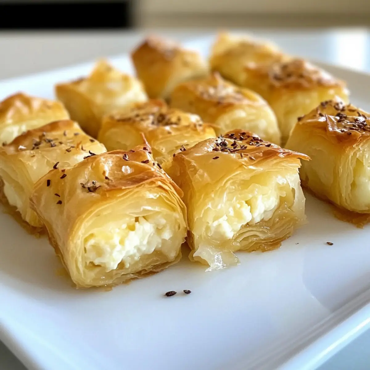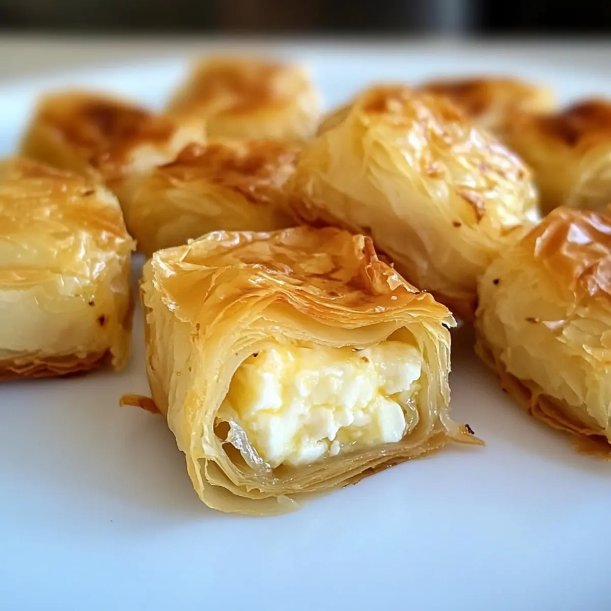 Kürzlich saß ich mit Freunden an einem Tisch, der voller guter Dinge war, als plötzlich der verführerische Duft von frisch gebackenem Gebäck meine Aufmerksamkeit erregte. Diese Griechischen Feta-Teigbissen, auch Käse Saragli genannt, sind nicht nur ein Genuss für die Sinne, sondern auch unglaublich einfach zuzubereiten. Mit nur drei Hauptzutaten zaubern wir eine köstliche Vorspeise, die perfekt für jede Zusammenkunft ist. Sie sind schnell gemacht und im Handumdrehen auf dem Tisch – ideal, wenn der Hunger zuschlägt oder die Gäste anklopfen. Wenn du auf der Suche nach einem leichten Snack bist, der sowohl einfach als auch beeindruckend ist, dann wirst du diese Bissen lieben. Welche Füllung würdest du dazu am liebsten ausprobieren? Warum wirst du diese Feta-Teigbissen lieben? Einfachheit pur: Die Zubereitung ist unkompliziert und erfordert nur grundlegende Kochkenntnisse. Mit nur drei Zutaten zauberst du im Handumdrehen ein köstliches Gericht. Köstlicher Geschmack: Die Kombination aus cremigem Feta und aromatischem Kefalograviera sorgt für ein reichhaltiges und herzhaftes Geschmackserlebnis. Vielfältige Anpassungsmöglichkeiten: Du kannst das Rezept leicht variieren, zum Beispiel mit verschiedenen Kräutern oder indem du Ricotta anstelle von Feta verwendest. Perfekte Konsistenz: Die Kombination aus knusprigem Phylloteig und schmelzendem Käse sorgt für ein unwiderstehliches Mundgefühl. Ideale Vorspeise: Diese Bissen sind der perfekte Gesprächsanlass bei jeder Feier. Serviere sie warm oder bei Zimmertemperatur mit einem Joghurt-Dip wie Tzatziki. Wenn du mehr über Mediterrane Ernährung wissen möchtest, findest du hier zusätzliche Tipps. Griechische Feta-Teigbissen Zutaten Für die Füllung: Feta Käse – Unverzichtbar für Cremigkeit und einen leichten, würzigen Geschmack; verwende Kühe-Feta für eine mildere Variante. Kefalograviera Käse – Sorgt für eine geschmackliche Tiefe und eine leichte Schärfe; ersetze ihn durch geriebenen Pecorino, falls Kefalograviera nicht verfügbar ist. Pfeffer – Fügt Geschmack hinzu; passe die Menge nach deinem persönlichen Geschmack an. Für den Teig: Phyllo-Blätter – bilden die Basis und sorgen für die knusprige Textur; achte darauf, dass sie vollständig aufgetaut sind, bevor du sie verwendest. Olivenöl – Verleiht Reichtum und hilft dabei, den Phyllo knusprig zu machen; für den besten Geschmack, verwende extra natives Olivenöl. Schritt-für-Schritt-Anleitung für Griechische Feta-Teigbissen Step 1: Käsemasse vorbereiten In einer Schüssel zerbrichst du den Feta-Käse und reibst den Kefalograviera Käse. Vermenge die beiden Käsesorten gründlich und würze sie nach Geschmack mit frisch gemahlenem Pfeffer. Diese cremige Füllung wird das Herzstück deiner Griechischen Feta-Teigbissen sein und sorgt für den unwiderstehlichen Geschmack. Step 2: Phyllo schichten Lege ein Blatt Phyllo-Teig auf eine saubere Arbeitsfläche und bestreiche es großzügig mit Olivenöl. Streue anschließend einen Teil der Käsemasse gleichmäßig darauf. Wiederhole diesen Vorgang mit zwei weiteren Blättern und schichte sie aufeinander. Die Schichtung sorgt für die knusprige Textur der Griechischen Feta-Teigbissen. Step 3: Teig rollen Beginne am langen Ende der Teigschichten zu rollen und forme ein festes, gleichmäßiges Log. Achte darauf, die Enden leicht einzuklappen, um die Füllung zu sichern. Das gewickelte Gebäck wird die Basis deiner Griechischen Feta-Teigbissen, die im Ofen perfekt aufgehen wird. Step 4: Einfrieren Wickle das geformte Log in Frischhaltefolie und lege es für mindestens eine Stunde in das Gefrierfach. Dies hilft, die Bissen zu festigen, sodass sie beim Schneiden und Backen ihre Form behalten. Diese Vorbereitungszeit ist entscheidend für die optimale Textur. Step 5: Backen Heize den Ofen auf 175°C vor. Nimm das gefrorene Log aus dem Gefrierfach und schneide es in etwa 2,5 cm breite Stücke. Lege die geschnittenen Stücke mit der Schnittfläche nach oben auf ein gefettetes Backblech. Backe sie für 20 bis 30 Minuten, bis sie goldbraun und knusprig sind. Achte darauf, dass sie gleichmäßig gebacken werden. Step 6: Servieren und genießen Lasse die Griechischen Feta-Teigbissen kurz abkühlen, bevor du sie servierst. Sie schmecken warm oder bei Zimmertemperatur hervorragend. Diese köstlichen Bissen sind ein echter Hit auf jeder Feier und laden dazu ein, sie mit Freunden und Familie zu teilen! Zeitersparnis durch praktische Vorbereitung Die Griechischen Feta-Teigbissen sind perfekt für alle, die Zeit sparen möchten! Du kannst die Käsemasse bis zu 24 Stunden im Voraus zubereiten und im Kühlschrank aufbewahren, um die Aromen vollständig zu entfalten. Zudem lässt sich das gewickelte und eingefrorene Log bis zu 3 Monate lagern, sodass du jederzeit köstliche Häppchen bereit hast. Achte darauf, das Log in Frischhaltefolie gut einzuwickeln, um Gefrierbrand zu vermeiden – so bleibt die Qualität gleichbleibend hoch. Wenn du bereit bist, deine Teigbissen zu backen, schneide das gefrorene Log einfach in Stücke, lege sie auf ein Backblech und backe sie für 20 bis 30 Minuten, bis sie goldbraun sind. So hast du im Handumdrehen eine leckere Vorspeise für deine Gäste! Expert Tips für Griechische Feta-Teigbissen Phyllo-Handhabung: Decke die Phyllo-Blätter während der Zubereitung mit einem feuchten Tuch ab, um ein Austrocknen zu vermeiden. So bleibt der Teig geschmeidig und knusprig. Käse-Kombination: Experimentiere mit verschiedenen Käsesorten wie Feta oder Ricotta. Beides verleiht den Griechischen Feta-Teigbissen eine einzigartige Note. Saisonal würzen: Füge frische Kräuter wie Oregano oder Dill zur Käsemasse hinzu, um mehr Geschmack zu erzielen. Dies macht die Bissen noch aromatischer. Backzeit beobachten: Achte darauf, die Bissen während des Backens im Auge zu behalten, um ein Überbacken zu vermeiden. Goldbraun ist der Schlüssel für die perfekte Konsistenz. Portionierung: Schneide das gefrorene Log i