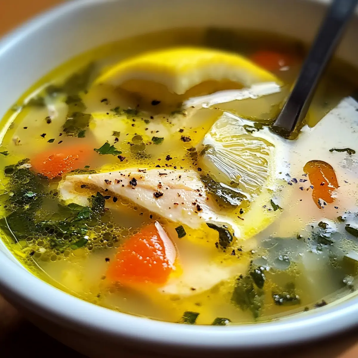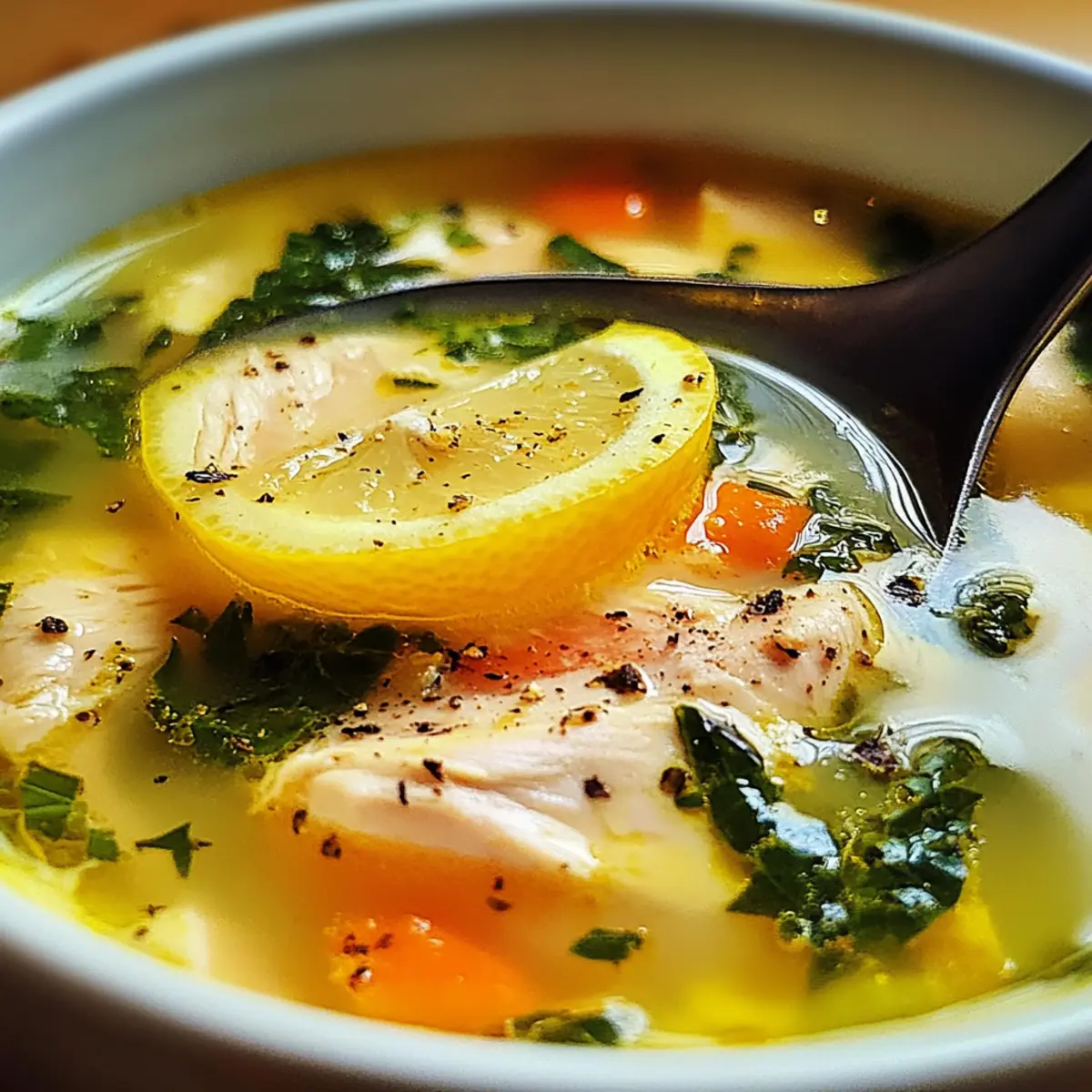 Diese Griechische Heil-Suppe, bekannt als Avgolemono, kombiniert Aromen von Hühnchen, Gemüse und Zitrone für eine gesundheitsfördernde Mahlzeit.