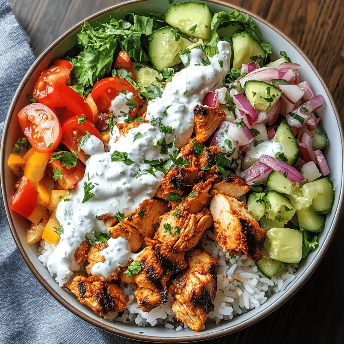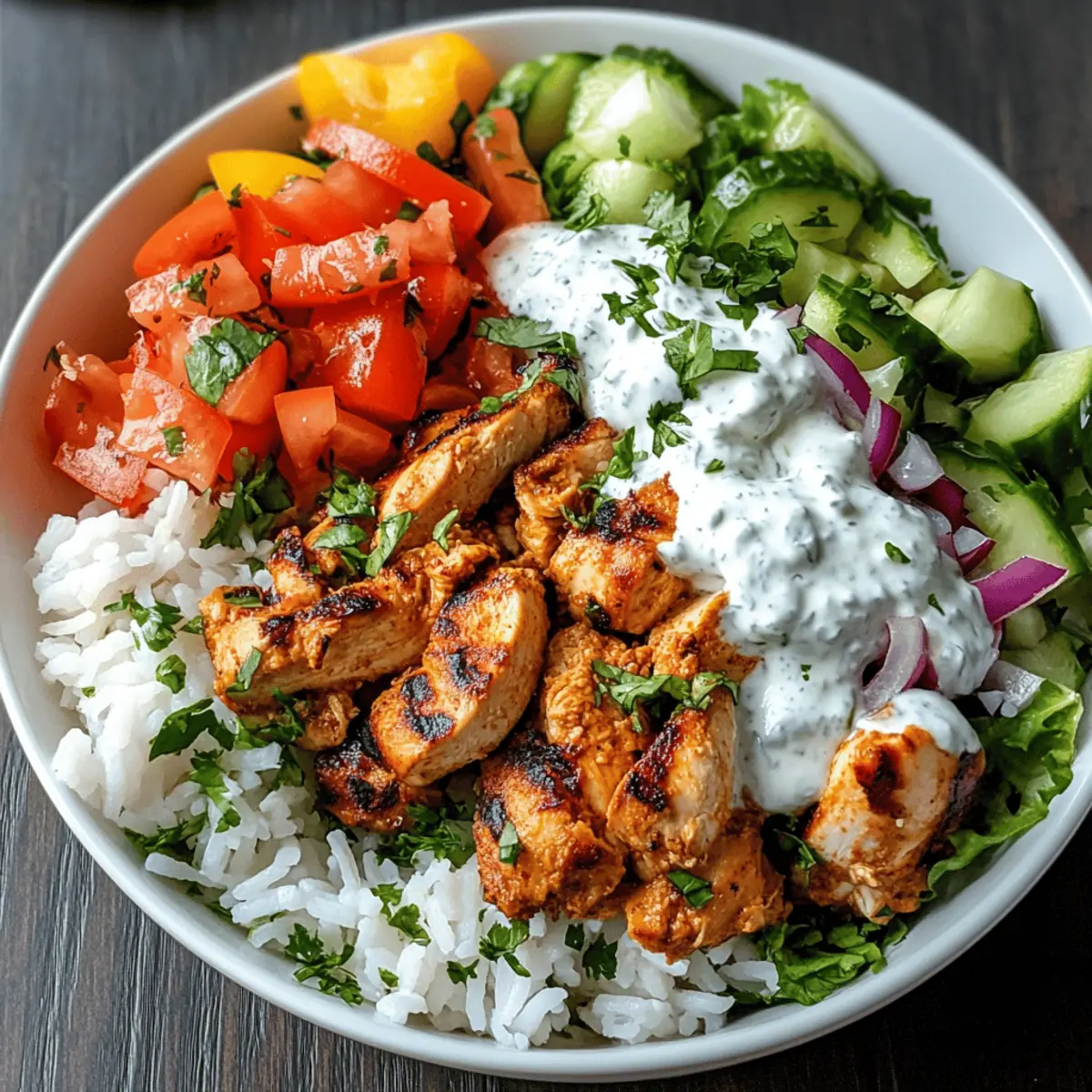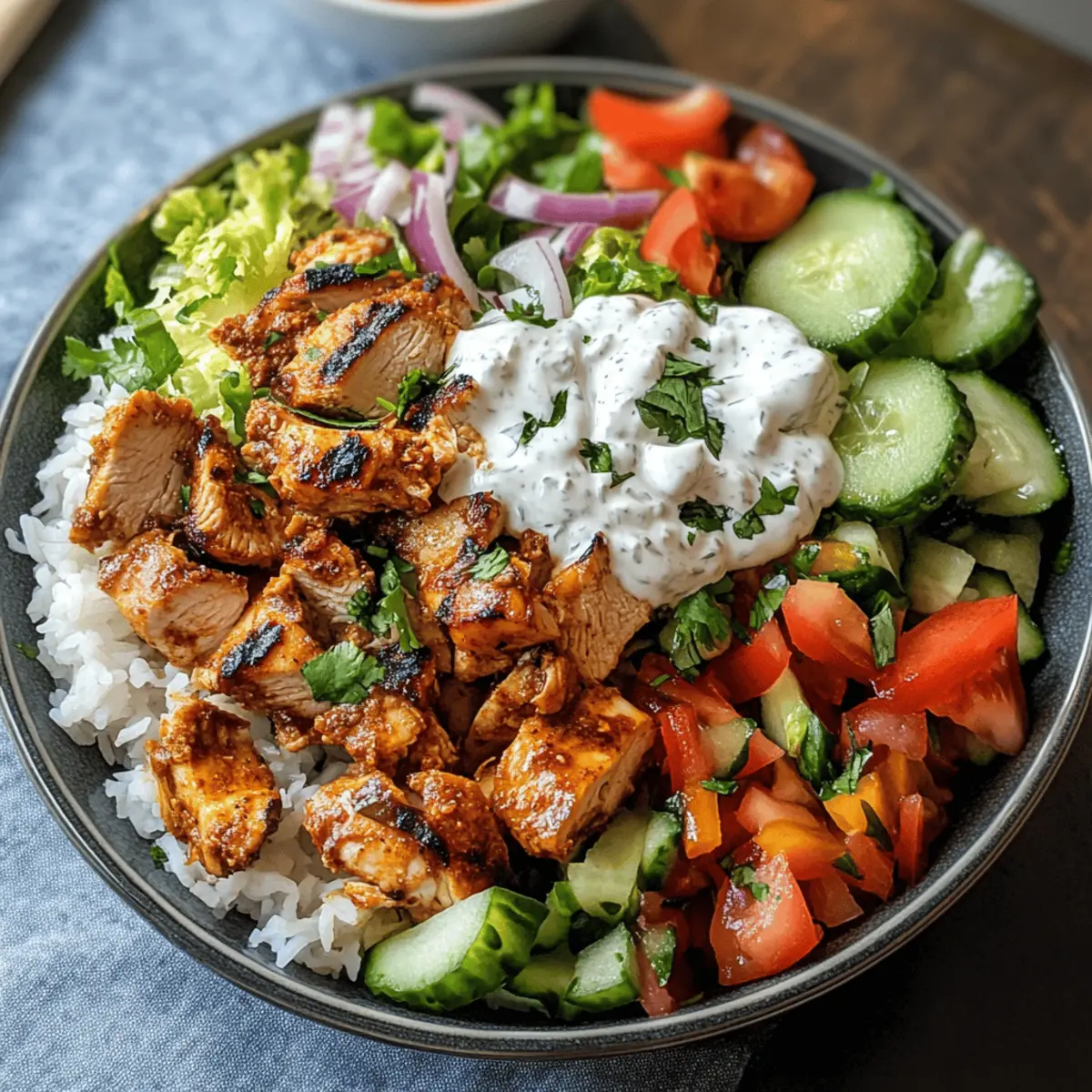 Die Aromen der Mittelmeerküche können selbst in der hektischsten Woche Freude bringen. Mit dieser authentischen Chicken Shawarma Bowl verwandle ich mein Abendessen in ein Fest der frischen Zutaten und würzigen Köstlichkeiten. Der Fokus liegt auf saftigem, perfekt gewürztem Hähnchen, knackigem Gemüse und dem cremigen Knoblauch-Joghurtsauce, die all diese Elemente harmonisch vereint. Diese Mahlzeit ist nicht nur gesund und glutenfrei, sondern auch äußerst vielseitig, sodass du sie nach deinem Geschmack anpassen kannst. Ideal für Meal Prep, bleibt dir so viel Zeit für die wichtigen Dinge im Leben! Neugierig, wie du in weniger als einer Stunde ein Gourmetgericht zaubern kannst? Lass uns gemeinsam eintauchen! Warum wirst du dieses Rezept lieben? Einfachheit: Die Zubereitung ist unkompliziert und erfordert nur wenige Zutaten, die du vielleicht schon zu Hause hast. Vielfältig: Du kannst die Zutaten nach deinen Vorlieben anpassen – ob Hähnchen, Lamm oder sogar Tofu, der Geschmack bleibt großartig. Gesund: Diese Bowls sind nicht nur lecker, sondern auch nahrhaft, mit frischem Gemüse und einer cremigen Soße, die die Aromen perfekt ergänzt. Schnelle Zubereitung: In weniger als einer Stunde servierst du ein Restaurant-Qualität Gericht, ideal für stressige Abende. Meal Prep-freundlich: Du kannst die Komponenten im Voraus zubereiten und flexibel genießen, wann immer es dir passt. Kultur erleben: Lass dich von den Aromen des Nahen Ostens begeistern – eine kulinarische Reise, die du ganz einfach nach Hause holen kannst. Wenn du nach weiteren interessanten Rezepten suchst, schau dir auch meine Japanische Katsu Bowls oder Crack Chicken Gnocchi an! Hähnchen Shawarma Bowl Zutaten Für das Hähnchen • Hähnchenkeulen oder -brust – Hauptproteinquelle; Hähnchenkeulen sind zarter. • Olivenöl – Fügt Feuchtigkeit hinzu und verstärkt die Gewürze; kann durch Avocadoöl ersetzt werden. • Zitronensaft – Bringt Säure und Frische; frisch gepresst ist am besten. • Gewürze (Kreuzkümmel, Koriander, Paprika, Kurkuma, Zimt, Knoblauchpulver, Cayenne) – Sorgen für den authentischen Shawarma-Geschmack; Cayenne nach Geschmack anpassen. • Salz & schwarzer Pfeffer – Unverzichtbar für die Würze; nach persönlichem Geschmack anpassen. Für die Joghurtsauce • Naturjoghurt – Macht das Hähnchen zart und sorgt für einen würzigen Geschmack; griechischer Joghurt ist cremiger. • Griechischer Joghurt – Basis der Joghurtsauce, reichhaltig und cremig; kann mit veganem Joghurt substituiert werden. Für die Bowls • Frisches Gemüse (Gurke, Kirschtomaten, rote Zwiebel, Salat) – Sorgt für Frische und Knackigkeit; tausche nach Belieben aus. • Reis (Jasmin/Basmati/Quinoa) – Grundlage der Bowl bietet Kohlenhydrate; Blumenkohlreis kann für eine Low-Carb-Option verwendet werden. Optionale Toppings • Eingelegte Zwiebeln – Fügen einen zusätzlichen Geschmackskick hinzu. • Oliven oder Feta – Erhöhen die Geschmacksvielfalt; sehr empfehlenswert! • Zitronenscheiben – Perfekt zum Abschmecken und für mehr Frische. Nutze diese Zutaten für deine Hähnchen Shawarma Bowl und erlebe ein gesundes, leckeres Essen, das auch für Meal Prep geeignet ist! Step-by-Step Instructions für die leckere Hähnchen Shawarma Bowl Step 1: Marinieren des Hähnchens Mische die Marinade mit Olivenöl, Zitronensaft und den Gewürzen in einer Schüssel, bis alles gut vermischt ist. Füge die Hähnchenkeulen oder -brust hinzu und sorge dafür, dass das Fleisch gleichmäßig mit der Marinade bedeckt ist. Decke die Schüssel ab und stelle sie für mindestens 30 Minuten, idealerweise 2-4 Stunden, in den Kühlschrank, um die Aromen einziehen zu lassen. Step 2: Zubereitung der Knoblauch-Joghurtsauce In einer mittelgroßen Schüssel verrührst du den Naturjoghurt mit einem Schuss Zitronensaft und einer gepressten Knoblauchzehe. Füge nach Geschmack Salz und Pfeffer hinzu und rühre die Mischung gut um, bis sie cremig und homogen ist. Decke die Sauce ab und stelle sie bis zum Servieren in den Kühlschrank, damit sich die Aromen entfalten können. Step 3: Reis kochen Spüle den Reis gründlich unter kaltem Wasser ab, bis das Wasser klar ist. Koche den Reis in einem Topf mit der entsprechenden Menge Wasser nach Paketangaben. Bring das Wasser zum Kochen, reduziere die Hitze und lasse den Reis bei schwacher Hitze 10-15 Minuten köcheln, bis er gar ist. Fluffe den Reis danach mit einer Gabel auf und halte ihn warm. Step 4: Gemüse vorbereiten Während der Reis kocht, wasche und schneide das frische Gemüse. Würfle die Gurke, halbiere die Kirschtomaten und schneide die rote Zwiebel in feine Ringe. Lege das geschnittene Gemüse auf einen großen Teller oder in Schüsseln, um es für die Assembly der Hähnchen Shawarma Bowl bereit zu haben. Step 5: Hähnchen braten Erhitze eine große Pfanne bei mittlerer bis hoher Hitze und füge einen Esslöffel Olivenöl hinzu. Sobald das Öl heiß ist, lege das marinierte Hähnchen in die Pfanne und brate es 6-8 Minuten pro Seite, bis es goldbraun und durchgegart ist (Kerntemperatur von 74°C). Nimm das Hähnchen aus der Pfanne und lasse es 5 Minuten ruhen, bevor du es in Scheiben schneidest. Step 6: Bowls zusammenstellen Nimm eine Schüssel und gib eine großzügige Portion Reis als Basis hinein. Verteile die in Scheiben geschnittenen Hähnchenstücke darüber und füge das geschnittene Gemüse hinzu. Beträufle die Bowl mit der cremigen Knoblauch-Joghurtsauce und garniere sie nach Belieben mit optionalen Toppings wie eingelegten Zwiebeln, Oliven oder Feta. Lagerungstipps für die Hähnchen Shawarma Bowl Kühlschrank: Die verschiedenen Komponenten der Hähnchen Shawarma Bowl können bis zu 4 Tage getrennt gelagert werden. Stelle sicher, dass alles gut abgedeckt oder in luftdichten Behältern aufbewahrt wird, um Frische zu erhalten. Gefrierschrank: Gekochtes Hähnchen kann bis zu 3 Monate eingefroren werden. Achte darauf, es gut einzupacken, um Gefrierbrand zu vermeiden