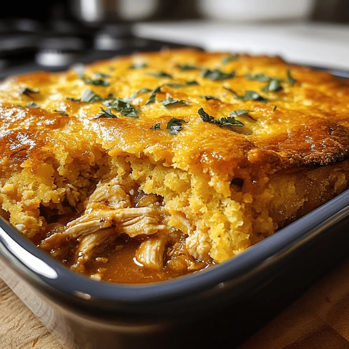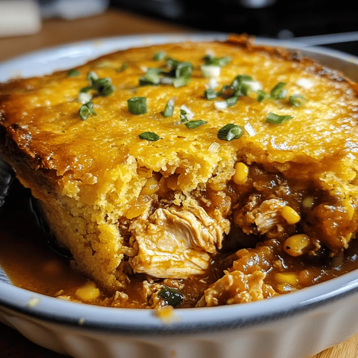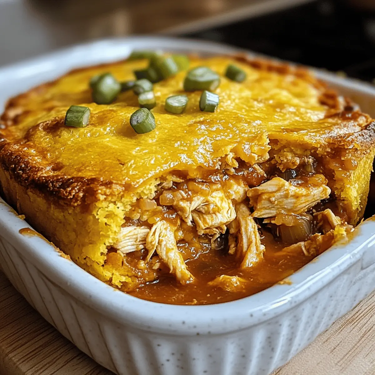 Wenn der Alltag hektisch ist und die Zeit zum Kochen schwindet, ist es leicht, die Lust auf hausgemachtes Essen zu verlieren. Aber was, wenn ich Ihnen sage, dass Sie in nur 15 Minuten ein herzhaftes Gericht zaubern können, das so gut schmeckt, dass es garantiert jedem schmeichelt? In diesem Artikel präsentiere ich Ihnen unser Rezept für Chicken Tamale Pie – eine wunderbare Mischung aus saftigem Hühnchen, gewürzt mit köstlichen Aromen, und einem fluffigen Maisbrot-Topping. Dieses Gericht ist nicht nur schnell zubereitet, sondern auch super anpassbar, sodass Sie es ganz nach Ihrem Geschmack variieren können. Stellen Sie sich vor, wie der Duft von frisch gebackenem Maisbrot Ihre Küche erfüllt und Ihre Liebsten an den Tisch ruft. Bereit zu erfahren, wie Sie diesen Genuss selbst kreieren können? Warum werden Sie dieses Rezept lieben? Schnelligkeit: In nur 15 Minuten haben Sie ein köstliches Gericht auf dem Tisch, perfekt für hektische Abende. Anpassungsfähigkeit: Passen Sie das Rezept ganz nach Ihrem Geschmack an, ob Sie die Schärfe variieren oder vegetarische Alternativen wählen möchten. Herzhafter Geschmack: Die Kombination aus saftigem Hühnchen und würziger Enchiladasauce sorgt für ein unvergleichliches Geschmackserlebnis. Vielfältige Texturen: Das fluffige Maisbrot-Topping bietet einen perfekten Kontrast zur saftigen Füllung, die an traditionelle Tamales erinnert. Begeisterung garantiert: Ihre Familie und Freunde werden begeistert sein! Kombinieren Sie das Gericht mit einer frischen Beilage, um ein vollständiges Menü zu kreieren. Probieren Sie auch mein Kinder Bueno Dessert für einen süßen Abschluss! Hähnchen-Tamale-Pie Zutaten Hinweis: Hier finden Sie die wichtigsten Zutaten für unser Rezept für Hähnchen-Tamale-Pie, das nicht nur einfach zuzubereiten ist, sondern auch herrlich schmeckt! Für die Füllung: Hähnchenbrust – sorgt für eine herzhafte Grundlage; verwenden Sie gekochtes, zerkleinertes Hähnchen für mehr Komfort. Rote Enchiladasauce – verleiht dem Gericht eine reichhaltige Würze; tauschen Sie sie gegen grüne Enchiladasauce für einen anderen Geschmack. Taco-Gewürz – gibt dem Hähnchen eine ausgezeichnete Würze; können nach Geschmack angepasst werden. Für das Maisbrot-Topping: Maisbrot-/Muffin-Mix – bildet die krustige Oberseite des Pies, unverzichtbar für die Struktur; kann durch hausgemachtes Maisbrot ersetzt werden. Milch – hilft, die Maisbrotmischung zu verbinden; ungesüßte pflanzliche Alternativen wie Mandelmilch sind ebenfalls möglich. Eier – bindet das Maisbrot; kann für eine vegane Option durch einen Leinsamen-Ei-Ersatz ersetzt werden. Frischkäse aus der Dose – sorgt für Feuchtigkeit und Süße; kann durch normalen Mais ersetzt werden, falls gewünscht. Chili-Schoten (gehackt) – sorgt für Geschmack und Schärfe; denken Sie darüber nach, Jalapeños für eine würzigere Version zu verwenden. Für den Belag: Käse (Monterey Jack oder mexikanische Mischung) – schmilzt über dem Hähnchen und sorgt für Reichhaltigkeit; kann reduziert oder durch laktosefreien Käse ersetzt werden. Grüne Zwiebeln & Koriander – frische Garnierungen, die Farbe und Frische hinzufügen; optional für das Servieren. Sauerrahm – optionaler Klecks für Extra-Cremigkeit; kann durch griechischen Joghurt für eine gesündere Option ersetzt werden. Schritt-für-Schritt-Anleitung für schnelle und köstliche Hähnchen-Tamale-Pie Step 1: Ofen vorheizen Heizen Sie den Ofen auf 200 °C vor und fetten Sie eine 23 cm große Quicheform ein. Das Einfetten ist wichtig, damit der Hähnchen-Tamale-Pie leicht herausgenommen werden kann. Stellen Sie sicher, dass Ihr Ofen die richtige Temperatur erreicht hat, bevor Sie mit dem nächsten Schritt fortfahren. Step 2: Cornbread-Mischung vorbereiten In einer großen Schüssel das Ei und die Milch verquirlen. Fügen Sie die frische Maiscreme, den Muffin-Mix und die gehackten Chili-Schoten hinzu. Mischen Sie alles gründlich, bis eine gleichmäßige Masse entsteht. Achten Sie darauf, dass keine Klumpen entstehen, da dies das Backergebnis beeinträchtigen könnte. Step 3: Cornbread backen Gießen Sie die vorbereitete Maisbrotmischung in die gefettete Quicheform und backen Sie sie 20-30 Minuten lang. Der Teig sollte fest sein und eine goldene Farbe annehmen. Um sicherzustellen, dass das Maisbrot vollständig gebacken ist, können Sie leicht mit einem Zahnstocher in die Mitte stechen; er sollte sauber herauskommen. Step 4: Enchiladasauce hinzufügen Nachdem das Maisbrot gebacken und fest geworden ist, stechen Sie mit einem Löffelstiel kleine Löcher in die Oberfläche der Mischung. Gießen Sie dann eine halbe Tasse Red Enchilada Sauce gleichmäßig über die Oberfläche. Dies sorgt für zusätzlichen Geschmack und Feuchtigkeit, die die Füllung intensivieren werden. Step 5: Hähnchenmischung anrichten Mischen Sie das zerkleinerte Hühnchen mit dem Taco-Gewürz und der restlichen Enchiladasauce sowie einem Viertel des Käses. Verbreiten Sie die Mischung gleichmäßig über dem Maisbrot. Diese vorzügliche Kombination wird für eine würzige und herzhafte Füllung sorgen, die perfekt zu dem fluffigen Topping passt. Step 6: Käse hinzufügen und backen Streuen Sie den verbleibenden Käse gleichmäßig über die Hühnchenmischung. Backen Sie das Ganze zusätzlich 15-20 Minuten lang im Ofen, bis der Käse geschmolzen und sprudelnd ist. Achten Sie darauf, dass die Oberseite goldbraun und köstlich aussieht, während die Aromen miteinander verschmelzen. Step 7: Servieren und garnieren Lassen Sie den Hähnchen-Tamale-Pie nach dem Backen 5 Minuten ruhen. Garnieren Sie ihn dann nach Belieben mit gehackten grünen Zwiebeln, Koriander und einem Klecks Sauerrahm. Dies verleiht dem Gericht Frische und eine zusätzliche Geschmacksebene. Servieren Sie es warm und genießen Sie den herzhaften Genuss! Variationen & Substitutionen Entdecken Sie, wie Sie dieses Rezept nach Ihrem Geschmack anpassen können und dabei neue Gesch