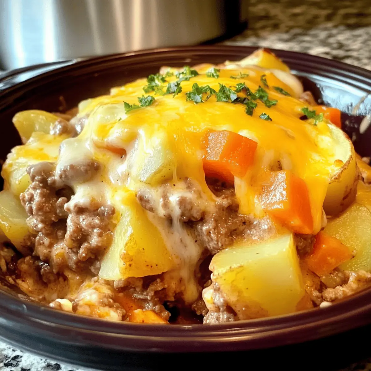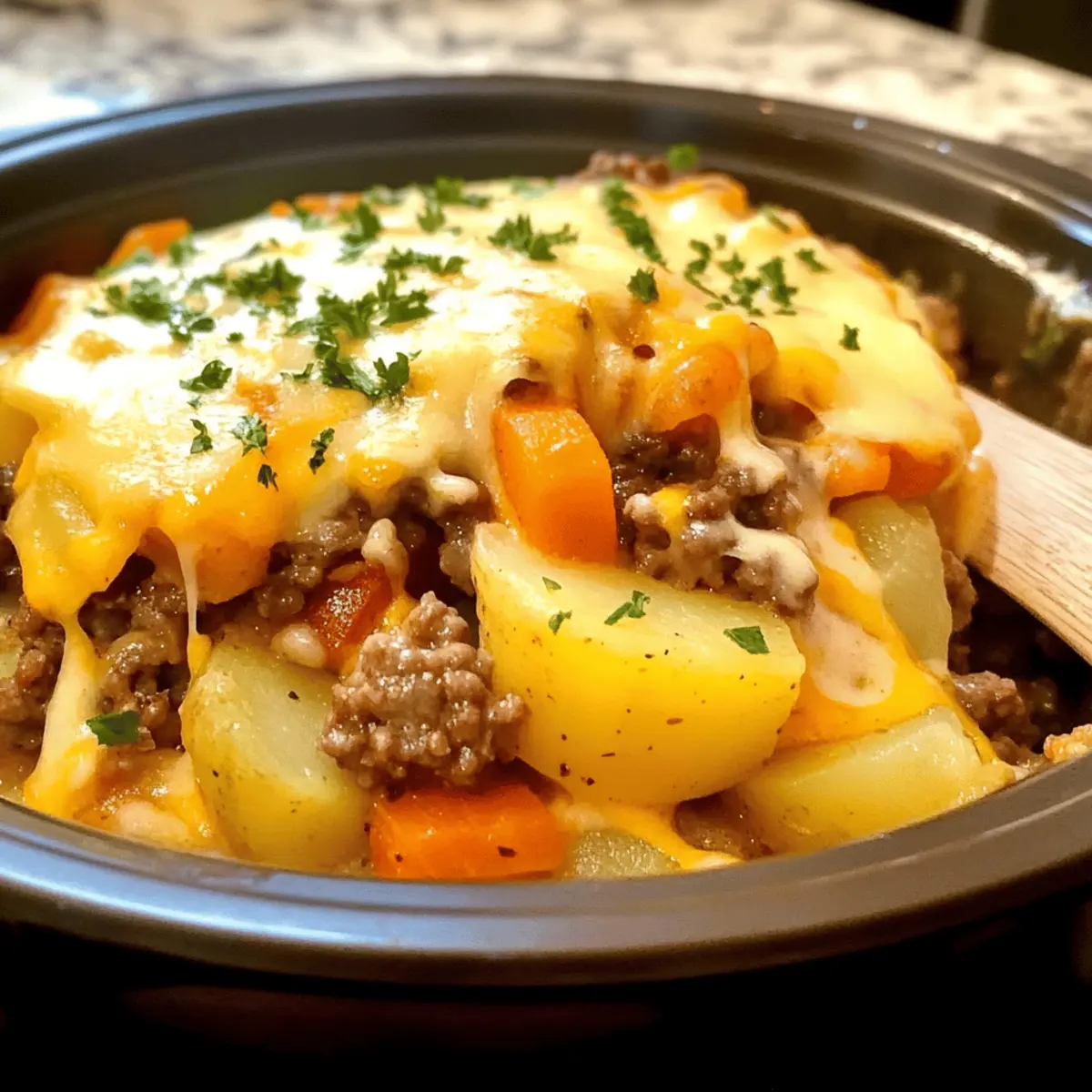 Eines Abends, als die Kälte draußen tobt, habe ich beschlossen, das perfekte Gericht für einen gemütlichen Familienabend zu kreieren. Der Easy Slow Cooker Hamburger Potato Casserole hat nicht nur meine Familie begeistert, sondern auch mein Herz erobert, denn er ist so wandelbar, dass man ihn nach Lust und Laune abwandeln kann. Mit herzhaften Schichten aus zartem Rinderhack, Kartoffeln und buntem Gemüse ist dieses Gericht die Antwort auf all die hektischen Tage, an denen man einfach etwas Warmes und Beruhigendes braucht. Außerdem freut sich jeder über ein schnelles, einfaches Rezept, das sich gut aufbewahren und sogar einfrieren lässt – ideal für spontane Einladungen oder geschäftige Wochenenden. Können Sie sich vorstellen, wie köstlich es duftet, wenn die Aromen in Ihrem Slow Cooker langsam miteinander verschmelzen? Lassen Sie uns zusammen in die Freude dieses wundervollen Gerichts eintauchen! Warum wird dieses Rezept Ihr neues Favorit? Einfachheit pur: Die Zubereitung ist kinderleicht – alle Zutaten in den Slow Cooker schichten, einschalten und entspannen. Wandelbarkeit: Passen Sie die Zutaten nach dem an, was Sie zur Hand haben! Sei es Gemüse oder Bohnen, die Möglichkeiten sind endlos. Herzlicher Geschmack: Die Kombination aus zartem Rinderhack, cremiger Suppe und Käse bietet eine harmonische Geschmacksexplosion, die die ganze Familie begeistert. Zeitersparnis: Bereiten Sie das Gericht im Voraus vor und genießen Sie es an geschäftigen Tagen, ohne auf Geschmack verzichten zu müssen. Perfekt für Gesellschaft: Ob bei einer Familienfeier oder einem spontane Treffen mit Freunden – dieser Auflauf wird garantiert der Star Ihres Buffets sein. Entdecken Sie auch unsere anderen beliebten Rezepte wie das Kinder Bueno Dessert oder die Kunst Der Espresso für weitere kulinarische Inspiration! Zutaten für Hamburger Kartoffelauflauf • Ideal für kreative Köche! Für die Füllung Rinderhackfleisch – sorgt für Proteine und herzhaften Geschmack; nutzen Sie mageres Hackfleisch für eine leichtere Variante. Zwiebel – bringt aromatische Tiefe und Süße; kann durch Schalotten ersetzt werden, wenn gewünscht. Kartoffeln – liefern die nötige Substanz und Textur; verwenden Sie Russet- oder Yukon-Gold-Kartoffeln, die vor dem Kochen geschnitten werden können. Karotten – fügen Farbe und Nährstoffe hinzu; Sie können diese auch durch Sellerie oder beliebiges Gemüse ersetzen. Kidneybohnen – tragen zur Eiweiß- und Ballaststoffzufuhr bei; durch schwarze Bohnen oder andere Dosenbohnen austauschbar. Für die Sauce Champignoncremesuppe – verbindet die Aromen und verleiht eine cremige Konsistenz; verwenden Sie fettreduzierte Varianten für eine leichtere Option oder ersetzen Sie sie durch Hühnersuppe. Rinderbrühe oder -fond – intensiviert den Geschmack; kann durch Gemüsebrühe oder Hühnchenbrühe ersetzt werden. Für den Belag Geriebener Cheddar-Käse – bietet eine schmelzige, reichhaltige Kruste; kann weggelassen oder durch eine vegane Käsealternative ersetzt werden, um das Gericht milchfrei zu halten. Schritt-für-Schritt-Anleitung für den Schnellen Hamburger Kartoffelauflauf Schritt 1: Soup Mixture In einer großen Schüssel die Champignoncremesuppe mit der Rinderbrühe gut vermengen, bis eine glatte Mischung entsteht. Stellen Sie die Mischung beiseite, während Sie die anderen Zutaten vorbereiten. Dies sorgt dafür, dass die Aromen im Hamburger Kartoffelauflauf harmonisch miteinander verschmelzen, wenn sie im Slow Cooker garen. Schritt 2: Layer Ingredients Im Slow Cooker zuerst das Rinderhackfleisch gleichmäßig verteilen. Dann die geschnittene Zwiebel und die Karotten (oder Ihr gewähltes Gemüse) darauf schichten. Anschließend die Kidneybohnen und die in Scheiben geschnittenen Kartoffeln gleichmäßig darüber legen. Diese Schichtung sorgt dafür, dass alle Zutaten wunderbar durchziehen können und gleichmäßig garen. Schritt 3: Pour Soup Gießen Sie die vorbereitete Suppe gleichmäßig über die geschichteten Zutaten im Slow Cooker. Stellen Sie sicher, dass alles gut bedeckt ist, sodass der Hamburger Kartoffelauflauf saftig bleibt. Die Suppe wird während des Kochens den Geschmack der anderen Zutaten aufnehmen und für eine cremige Konsistenz sorgen. Schritt 4: Cook Den Slow Cooker auf niedriger Stufe einstellen und den Auflauf 6 bis 10 Stunden lang garen. Überprüfen Sie den Garzustand nach etwa 6,5 Stunden: Die Kartoffeln sollten weich sein und das Hackfleisch durchgegart. Während dieser Zeit werden die Aromen perfekt miteinander verschmolzen. Schritt 5: Cheese Topping Etwa 20 Minuten vor dem Servieren den geriebenen Cheddar-Käse gleichmäßig über den Auflauf streuen. Den Deckel wieder auf den Slow Cooker setzen, damit der Käse schmelzen kann. Nach dieser kurzen Zeit wird der Hamburger Kartoffelauflauf mit einer köstlichen, goldbraunen Käsekruste verziert sein, die jeden Bissen noch verlockender macht. Varianten für den Hamburger Kartoffelauflauf Lassen Sie Ihrer Kreativität freien Lauf und passen Sie dieses Rezept ganz nach Ihrem Geschmack an! Vegetarisch: Tauschen Sie das Rinderhack durch eine Mischung aus Linsen oder Tofu aus, um eine köstliche pflanzliche Version zu kreieren. Sie werden überrascht sein, wie gut die Aromen harmonieren! Würzige Note: Fügen Sie gewürfelte Jalapeños oder eine Prise Cayennepfeffer hinzu, um Ihrem Auflauf einen feurigen Kick zu verleihen. Ein Hauch von Schärfe macht das Essen gleich aufregender! Zusätzliche Gemüse: Nutzen Sie saisonales Gemüse wie Zucchini oder Paprika, um dem Gericht mehr Farbe und Nährstoffe hinzuzufügen. So bleibt der Auflauf frisch und spannend. Käsevielfalt: Experimentieren Sie mit verschiedenen Käsesorten wie Gouda oder Feta, um dem Auflauf eine neue Geschmacksrichtung zu verleihen. Eine Umstellung kann Wunder bewirken! Kohlenhydratarm: Ersetzen Sie die Kartoffeln durch Blumenkohl oder Zucchini für eine niedrigere Kohlenhydratversion. Diese Varianten sind genauso herzhaft 