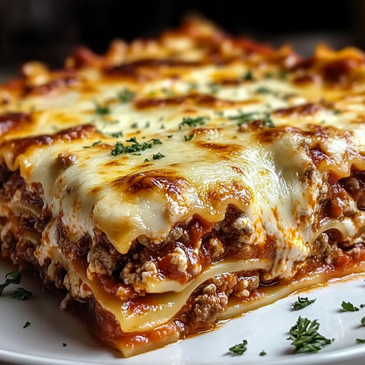 Der Duft von frisch gebackener Hausgemachter Lasagne bringt sofort ein Gefühl von Gemütlichkeit und Wärme in unsere Küchen. Diese einfache Rezeptur ist nicht nur eine köstliche Lösung für schnelllebige Wochentage, sondern auch ein Highlight für festliche Zusammenkünfte. Die Kombination aus al dente Nudeln, einer reichhaltigen Fleischsauce und einer cremigen Ricotta-Füllung sorgt für ein unvergessliches Geschmackserlebnis, das Familie und Freunde stets begeistert. Darüber hinaus ist diese Lasagne vielfältig anpassbar – ob vegetarisch, glutenfrei oder mit einer leichteren Proteinquelle, es gibt für jeden etwas! Hast du schon die perfekte Variante für deinen nächsten Kochabend im Kopf? Warum wird diese Lasagne jeden begeistern? Hausgemachte Lasagne ist der Inbegriff von Comfort Food! Vielfältigkeit ist garantiert: Ob mit Rinderhack, Hähnchen oder als vegetarische Variante mit Linsen – hier findet jeder etwas nach seinem Geschmack. Einfachheit zeichnet sich durch die kinderleichte Zubereitung aus, die auch Kochneulingen Freude bereitet. Zeitersparnis ist ein weiteres Plus, denn du kannst sie im Voraus zubereiten und einfach im Ofen backen. Perfekte Textur von zartem Pasta und cremiger Füllung sorgt für ein unvergessliches Geschmackserlebnis. Kombiniere sie mit einem frischen Salat oder Knusprigen Gnocchi Salat für ein komplettes Menü, das Gäste begeistert! Hausgemachte Lasagne Zutaten • Die perfekten Zutaten für ein unvergessliches Gericht! Lasagne-Nudeln – Sie geben der Lasagne Struktur; du kannst auch Zeit sparen mit No-Boil-Nudeln. Rinderhackfleisch – Die Hauptproteinquelle; tausche es gegen Puten- oder Hähnchenhack für eine leichtere Variante. Italienische Wurst – Fügt Geschmacksschichten hinzu; all Rind- oder Hähnchenwurst kann als Alternative verwendet werden. Gelbe Zwiebel – Verstärkt das Geschmacksprofil; Schalotten sind eine milderer Option. Knoblauch – Sorgt für aromatische Tiefe; Knoblauchpulver ist zur Handhabung praktisch. Pasta-Sauce – bildet die Basis der Fleischsauce; selbstgemacht bringt einen überlegenen Geschmack. Tomatenmark – Konzentriert den Tomatengeschmack in der Sauce. Italienische Gewürze – Verleiht würzige Noten; frisches Basilikum oder Oregano könnten den Geschmack heben. Salz & Pfeffer – Essentiell zur Würze; nach Geschmack anpassen. Ricotta-Käse – Bildet die cremige Füllung; Hüttenkäse kann eine leichtere Alternative darstellen. Mozzarella-Käse – Der essentielle schmelzende Käse; Provolone ist eine schmackhafte Alternative. Parmesan-Käse – Fügt Reichhaltigkeit hinzu; geriebener Käse schmilzt besser. Ei – Bindet die Käsefüllung; Flachsmehl ist eine vegane Alternative. Frische Petersilie – Bringt Frische; frisches Basilikum kann eine geschmackliche Steigerung bieten. Das nächste Festmahl für deine Liebsten mit dieser hausgemachten Lasagne wird sicher in Erinnerung bleiben! Schritt-für-Schritt-Anleitung für Hausgemachte Lasagne Step 1: Ofen vorheizen Heize deinen Ofen auf 175°C (350°F) vor. Dies sorgt für ideale Backbedingungen, während du die anderen Schritte vorbereitest. Eine gut eingestellte Temperatur stellt sicher, dass deine hausgemachte Lasagne gleichmäßig gart und die Käseoberfläche schön goldbraun wird. Step 2: Nudeln kochen Bringe einen großen Topf mit gesalzenem Wasser zum Kochen. Koche die Lasagne-Nudeln für etwa 8-10 Minuten, bis sie al dente sind. Rühre gelegentlich, um ein Verkleben zu verhindern. Anschließend die Nudeln in ein Sieb abgießen und unter kaltem Wasser abspülen, damit sie nicht weiter garen. Step 3: Fleischsauce zubereiten Erhitze in einer großen Pfanne etwas Öl und brate das Rinderhackfleisch sowie die italienische Wurst bei mittlerer Hitze an, bis sie braun sind. Füge die gewürfelte Zwiebel und den gehackten Knoblauch hinzu; brate sie für 3-5 Minuten, bis sie weich sind. Rühre dann die Pasta-Sauce, das Tomatenmark und die italienischen Gewürze ein und lasse die Sauce 5 Minuten köcheln. Step 4: Käsefüllung herstellen In einer großen Schüssel kombinierst du die Ricotta mit 2 Tassen Mozzarella, Parmesan, Petersilie, dem Ei und einer Prise Salz. Vermenge alles gut, bis die Mischung cremig und gut durchmischt ist. Das sorgt für die köstliche Käsefüllung deiner hausgemachten Lasagne. Step 5: Lasagne schichten Beginne, deine Lasagne in einer 23×33 cm großen Auflaufform zu schichten. Gib zuerst eine Schicht Fleischsauce auf den Boden, gefolgt von einer Schicht Nudeln, dann eine Schicht Käsefüllung. Wiederhole diese Schichten, bis alle Zutaten aufgebraucht sind, und beende mit einer Schicht der Fleischsauce. Step 6: Backen Decke die Form mit Aluminiumfolie ab und backe die Lasagne für 45 Minuten im vorgeheizten Ofen. Nach dieser Zeit entferne die Folie, streue den restlichen Mozzarella darüber und backe sie für weitere 15 Minuten, bis der Käse goldbraun und blubbernd ist. Step 7: Ruhen lassen und servieren Lass die frisch gebackene hausgemachte Lasagne nach dem Backen für etwa 15 Minuten ruhen. Dies hilft dabei, die Schichten zu festigen, sodass du saftige, gut geformte Stücke schneiden kannst. Serviere sie warm und genieße das Lächeln deiner Familie! Variationen & Alternativen für Hausgemachte Lasagne Lass deiner Kreativität freien Lauf und passe dieses Rezept nach deinem Geschmack an! Leichtes Fleisch: Ersetze das Rinderhackfleisch durch Puten- oder Hähnchenhack für eine fettärmere Variante. Vegetarisch: Verwende Linsen oder pflanzliche Fleischalternativen für eine gesunde, fleischlose Option. Glutenfrei: Nutze glutenfreie Lasagne-Nudeln, um das Gericht für glutenempfindliche Esser geeignet zu machen. Milchfrei: Experimentiere mit pflanzlichem Käse für eine köstliche, laktosefreie Version. Extra Gemüse: Füge gebratene Zucchini oder Spinat hinzu, um mehr Nährstoffe und Textur zu erhalten. Käsemischung: Probiere verschiedene Käsesorten wie Gouda aus, um den Geschmack zu variieren. Kreative Soßen: Integr