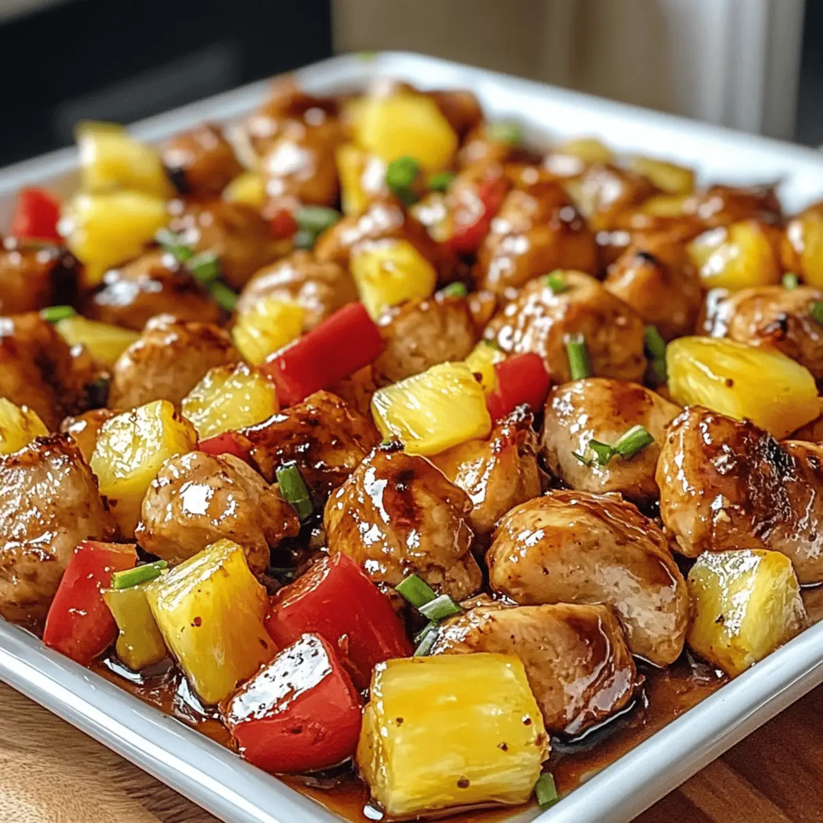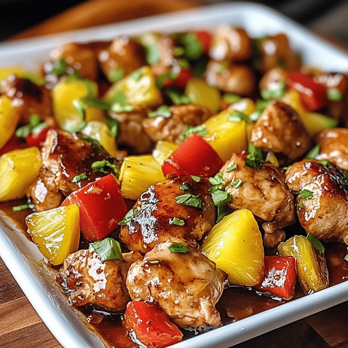 Als ich zuletzt nach Hause kam und der Duft von gegrilltem Hühnchen in der Luft lag, erinnerte ich mich sofort an mein Lieblingsgericht: das Hawaiian Chicken Sheet Pan. Diese einfache und vielseitige Rezeptur kombiniert zartes Hühnchen mit süßer Ananas und buntem Gemüse – perfekt für geschäftige Abende, wenn die Zeit zum Kochen knapp ist. Was dieses Gericht besonders macht? Es ist nicht nur schnell zubereitet, sondern auch eine gesunde und farbenfrohe Mahlzeit, die die ganze Familie begeistern wird. Egal, ob Sie mit Freunden oder der Familie am Tisch sitzen, dieses Rezept wird die Gemüter erfreuen und lässt sich zudem leicht individuell anpassen. Was denken Sie, welche ausgefallene Zutat könnten Sie hinzufügen, um Ihrer ganz eigenen Version dieses leckeren Gerichts einen Twist zu geben? Warum werden Sie dieses Rezept lieben? Einfachheit pur: Die Zubereitung ist unkompliziert und erfordert keine speziellen Kochkenntnisse, sodass Sie entspannt genießen können. Wunderbare Aromen: Die Kombination aus saftigem Hühnchen, süßer Ananas und buntem Gemüse ergibt ein unvergleichliches Geschmackserlebnis. Vielseitigkeit: Variieren Sie die Zutaten ganz nach Ihrem Geschmack – tauschen Sie Hühnchen gegen Tofu oder Garnelen aus oder experimentieren Sie mit verschiedenen Saucen. Gesunde Wahl: Diese Mahlzeit ist nicht nur köstlich, sondern auch nahrhaft und bietet eine ausgewogene Portion Proteine und Vitamine. Schnelle Zubereitung: In weniger als einer Stunde sind Sie bereit, sich an den Tisch zu setzen und mit Ihrer Familie zu genießen. Für weitere köstliche Ideen, schauen Sie sich unser Rezept für Hawaiian Roll Französischer Toast oder Crack Chicken Gnocchi an! Hawaiian Chicken Sheet Pan Zutaten Für das Hühnchen • Hühnchen – Verwendung von aufgetautem Hühnchen sorgt für gleichmäßiges Garen. • Ananas – Fügt natürliche Süße und tropischen Geschmack hinzu; Mango kann als Alternative verwendet werden. Für das Gemüse • Paprika – Sorgt für Farbe und Knusprigkeit; fügen Sie gerne Brokkoli oder Zuckerschoten hinzu. • Zwiebel – Gibt zusätzliche Tiefe und Geschmack; verwenden Sie auch rote oder grüne Zwiebeln für Variation. Für die Sauce • Teriyaki-Sauce – Verleiht dem Gericht einen herzhaften Glanz; eine Mischung aus Sojasauce, Honig und Knoblauch kann substituiert werden. • Olivenöl – Unterstützt beim Kochen und verleiht Reichtum; Sesamöl kann für mehr Geschmack verwendet werden. Diese Zutaten machen das Rezept für Hawaiian Chicken Sheet Pan zu einer wunderbaren Option für ein schnelles und einfaches Abendessen. Schritt-für-Schritt-Anleitung für Hawaiian Chicken Sheet Pan Step 1: Ofen vorheizen Heizen Sie den Ofen auf 200°C vor. Dies sorgt für eine gleichmäßige Hitze, während Sie das Hühnchen und das Gemüse vorbereiten. Eine gut vorgeheizte Umgebung ist entscheidend für den perfekten Garprozess und hilft dabei, das Fleisch zart und saftig zu halten. Step 2: Backblech vorbereiten Bereiten Sie ein Backblech vor, indem Sie es mit Antihafterspray besprühen oder mit Backpapier auslegen. Diese Maßnahmen verhindern, dass das Gericht anhaftet, und erleichtern Ihnen das spätere Reinigen. Ein gut vorbereites Blech ist der Schlüssel zu einem erfolgreichen Hawaiian Chicken Sheet Pan. Step 3: Zutaten kombinieren In einer großen Schüssel kombinieren Sie das aufgetaute Hühnchen, die Ananasstücke, Paprika, Zwiebel, Teriyaki-Sauce und Olivenöl. Mischen Sie alles gut durch, bis die Zutaten gleichmäßig mit der Sauce bedeckt sind. Dieser Schritt sorgt dafür, dass die Aromen optimal miteinander verschmelzen. Step 4: Auf dem Blech verteilen Verteilen Sie die Mischung gleichmäßig in einer einzigen Schicht auf dem vorbereiteten Backblech. Achten Sie darauf, dass die Zutaten nicht überlappen, damit sie gleichmäßig garen können. Eine gleichmäßige Verteilung sorgt dafür, dass das Hühnchen schön bräunt und die Gemüse bissfest bleiben. Step 5: Backen Backen Sie das Gericht für 25-30 Minuten im vorgeheizten Ofen. Überprüfen Sie nach 20 Minuten, ob das Hühnchen schön goldbraun ist und die Gemüse weich, aber noch knackig sind. Achten Sie darauf, dass das Hühnchen eine Innentemperatur von 74°C erreicht, um sicherzustellen, dass es richtig gegart ist. Step 6: Servieren Nehmen Sie das Backblech aus dem Ofen und lassen Sie das Gericht kurz abkühlen. Servieren Sie das Hawaiian Chicken Sheet Pan direkt vom Blech oder auf einem großen Teller, optional über warmem Reis. Genießen Sie die harmonische Kombination aus Hühnchen, Ananas und buntem Gemüse, während Sie Ihre Familie oder Freunde um den Tisch versammeln. Aufbewahrungstipps für Hawaiian Chicken Sheet Pan Raumtemperatur:: Genießen Sie das Gericht frisch aus dem Ofen; lassen Sie übrig gebliebenes Hühnchen nicht länger als 2 Stunden bei Raumtemperatur stehen, um die Lebensmittelsicherheit zu gewährleisten. Kühlschrank:: Lagern Sie Reste in einem luftdichten Behälter bis zu 3 Tage im Kühlschrank; so bleiben die Aromen erhalten und das Gericht bleibt frisch. Gefrierschrank:: Für eine längere Haltbarkeit können Sie das Hawaiian Chicken Sheet Pan bis zu 3 Monate einfrieren; achten Sie darauf, es gut in Frischhaltefolie und Alufolie einzuwickeln, um Gefrierbrand zu vermeiden. Wiedererwärmen:: Erwärmen Sie das Gericht im Ofen bei 175°C für etwa 15-20 Minuten oder in der Mikrowelle, bis es vollständig durchgeheizt ist; dies sorgt für die beste Textur und Geschmack. Meal Prep für Hawaiian Chicken Sheet Pan Diese Hawaiian Chicken Sheet Pan ist ideal für die Vorbereitung im Voraus! Sie können das Hühnchen, die Ananas und das Gemüse bis zu 24 Stunden vorher marinieren, um die Aromen intensivieren und die Zubereitung am Tag des Servierens erleichtern. Dazu kombinieren Sie einfach Hühnchen, Ananas, Paprika, Zwiebel, Teriyaki-Sauce und Olivenöl in einer Schüssel und decken sie mit Frischhaltefolie ab. Wenn Sie bereit sind zu essen, verteilen Sie die Mischung a