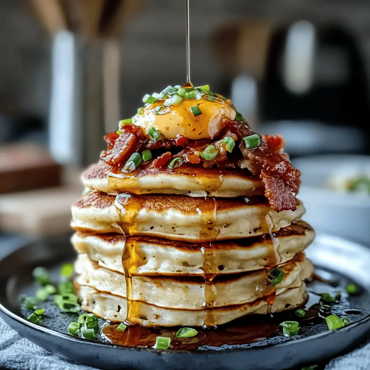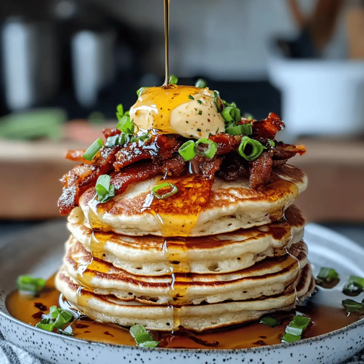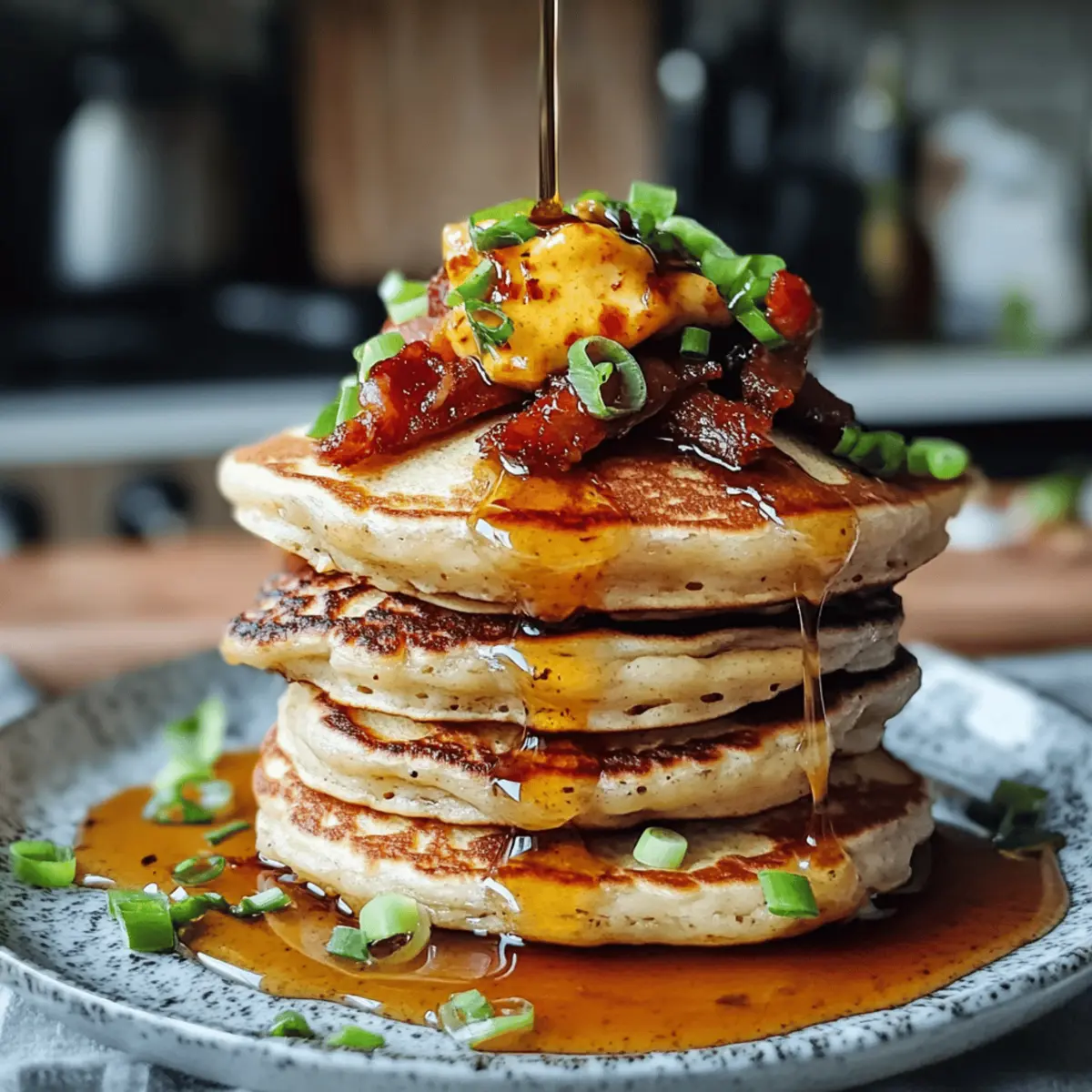 Ein köstliches Aroma von geröstetem Speck und würzigem Chorizo hüllt die Küche ein, während ich die Pfanne vorbereite. Diese herzhaften Pfannkuchen mit Chorizo, Bacon und würziger Chilibutter bringen eine aufregende Wendung in mein Frühstücksrepertoire. Jeder Biss ist ein harmonischer Tanz zwischen der knusprigen Textur des Specks und der samtigen Füllung, und das Beste daran? Sie sind schnell zubereitet und eignen sich perfekt für ein munteres Brunch mit Freunden oder Familie. Die Kombination aus herzhaften und süßen Aromen, besonders mit einem Hauch von goldenem Sirup, wird selbst die kritischsten Esser begeistern. Seid ihr bereit, in die Welt der herzhaften Pfannkuchen einzutauchen und euer nächste Brunch zu revolutionieren? Warum werden Sie dieses Rezept lieben? Einfache Zubereitung: Die Zubereitung dieser herzhaften Pancakes erfordert nur grundlegende Kochkenntnisse und ist in wenigen Minuten erledigt. Süß und herzhaft: Diese Kombination aus würzigem Chorizo, knusprigem Bacon und süßem Sirup sorgt für ein harmonisches Geschmackserlebnis. Vielseitig anpassbar: Passen Sie die Zutaten nach Ihren Wünschen an – egal, ob Sie Gemüsestücke hinzufügen oder das Fleisch weglassen möchten. Perfekt für jede Gelegenheit: Ob Frühstück oder Brunch, diese Pancakes sind ein Hit bei jedem Anlass. Schnell und nahrhaft: In nur 30 Minuten haben Sie ein köstliches Gericht auf dem Tisch, das auch sättigend ist. Lassen Sie sich von diesen herzhaften Pancakes inspirieren und probieren Sie sie gemeinsam mit Protein Pfannkuchen für Fitnessliebhaber für eine gesunde Variante! Zutaten für Herzhafte Pancakes Für den Teig Chorizo – Fügt ein rauchiges Aroma und eine herzhafte Textur hinzu. Substitute durch eine andere Wurst, wenn gewünscht. Weizenmehl – Sorgt für Struktur und fluffige Konsistenz. Glutenfreies Mehl kann für eine glutenfreie Version verwendet werden. Backpulver – Essentiell für das Volumen der Pancakes, damit sie leicht und luftig werden. Salz – Verstärkt die Aromen im Teig. Nach Geschmack anpassen. Großes Ei – Bindet die Zutaten und sorgt für Feuchtigkeit. Kann durch ein Flachs-Ei als vegane Option ersetzt werden. Milch – Sorgt für Feuchtigkeit und Reichhaltigkeit im Teig. Pflanzliche Milch für eine milchfreie Variante verwenden. Frühlingszwiebeln – Fügen einen frischen, zwiebelartigen Geschmack hinzu. Verwenden Sie Schnittlauch oder Schalotten für Abwechslung. ungesalzene Butter – Wird zum Braten der Pancakes verwendet und sorgt für eine goldene Kruste. Kann durch Öl ersetzt werden. Geriebener Cheddar – Schmilzt wunderbar in die Pancakes und fügt Geschmack hinzu. Lassen Sie ihn weg für eine milchfreie Option. Für die Chilibutter Butter (gesalzen) – Schafft eine reichhaltige Basis für den würzigen Aufstrich. Grüne Chili – Verleiht der Butter Schärfe; Jalapenos sind eine großartige Wahl. Chili-Typ je nach gewünschtem Schärfemaß anpassen. Für die Toppings Speck (knusprig) – Sorgt für den nötigen Crunch und herzhaften Geschmack; kann durch Puten-Speck für eine leichtere Option ersetzt werden. Goldener Sirup – Sorgt für Süße; Ahornsirup kann als Alternative verwendet werden, verändert jedoch das Geschmacksprofil. Tauchen Sie ein in die Welt der herzhaften Pancakes und lassen Sie sich von der Kombination der Aromen mit dieser vielseitigen und leckeren Mahlzeit begeistern! Schritt-für-Schritt-Anleitung für Herzhafte Pancakes mit Chorizo und Bacon Step 1: Ofen vorheizen Heizen Sie den Ofen auf eine sehr niedrige Temperatur vor, um die fertigen herzhafte Pancakes warm zu halten. Bereiten Sie eine Backform oder ein Blech vor, auf dem Sie die gebratenen Pancakes platzieren können, während Sie die anderen zubereiten. Dies sorgt dafür, dass alle Pancakes zum Servieren warm und köstlich bleiben. Step 2: Chorizo anbraten Erhitzen Sie eine Pfanne bei hoher Hitze und fügen Sie die gewürfelte Chorizo hinzu. Braten Sie die Chorizo für etwa 1-2 Minuten an, bis sie leicht bräunt und ihr Aroma entfaltet. Sobald sie fertig ist, nehmen Sie die Chorizo von der Hitze und legen Sie sie beiseite, um sie später in den Pancakes zu verwenden. Step 3: Teig zubereiten In einer großen Schüssel kombinieren Sie das Weizenmehl, Backpulver, Salz und das große Ei. Rühren Sie langsam die Milch ein, bis ein dicker, klumpiger Teig entsteht. Fügen Sie 3/4 der geschnittenen Frühlingszwiebeln hinzu und mischen Sie alles gut miteinander, um die Aromen für die herzhaften Pancakes zu vereinen. Step 4: Chilibutter vorbereiten Nehmen Sie die weiche gesalzene Butter und kombinieren Sie sie in einer kleinen Schüssel mit der fein gehackten grünen Chili. Rühren Sie, bis die Chili gleichmäßig verteilt ist, und stellen Sie die Mischung in den Kühlschrank, damit sie fest wird und die Aromen durchziehen können, während Sie die Pancakes zubereiten. Step 5: Pancakes braten Erhitzen Sie eine Antihaft-Pfanne bei mittelhoher Temperatur und lassen Sie ein Stück ungesalzene Butter darin schmelzen. Gießen Sie etwa 1/4 Tasse (4 Esslöffel) des Teigs für jeden Pancake in die Pfanne. Braten Sie die Pancakes 1,5-2 Minuten lang, bis sich Blasen bilden, und bestreuen Sie sie dann mit der angebratenen Chorizo und geriebenem Cheddar. Wenden Sie die Pancakes vorsichtig und braten Sie sie für weitere 1-2 Minuten, bis sie goldbraun und durchgebacken sind. Step 6: Servieren Stapeln Sie die fertig gebratenen herzhaften Pancakes auf einem großen Teller und belegen Sie sie mit knusprigem Bacon, den restlichen Frühlingszwiebeln und einem großzügigen Klecks der vorbereiteten Chilibutter. Zum Abschluss träufeln Sie etwas goldenen Sirup über die Pancakes, um den herzhaften und süßen Geschmack perfekt auszubalancieren. Aufbewahrungstipps für Herzhafte Pancakes Kühlschrank: Bewahren Sie die fertigen herzhaften Pancakes im Kühlschrank in einem luftdichten Behälter für bis zu 2 Tage auf, um die Frische zu erhalten. Gefrierfach: Für längere Lagerun