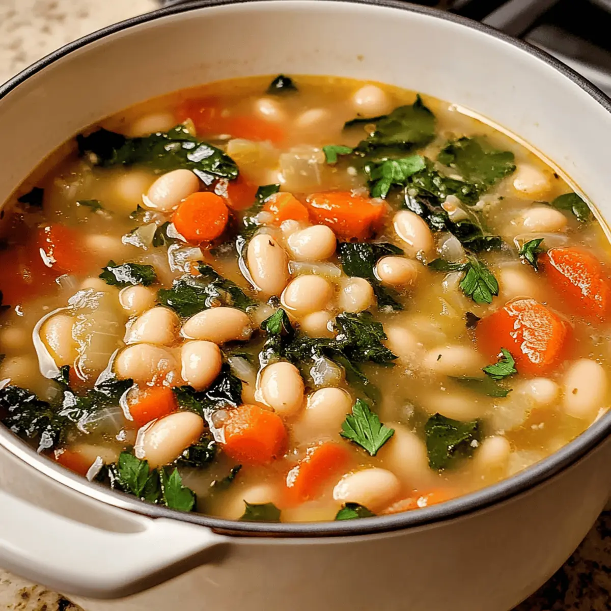 Während ich in meiner Küche stehe und den Duft von frischem Knoblauch und zarten Gemüse höre, entfaltet sich eine magische Verwandlung. Es ist Zeit für meine herzhafteste Kreation: die Hearty Tuscan White Bean Soup. Diese vegane und glutenfreie Suppe ist nicht nur unglaublich nährstoffreich, sondern auch der perfekte Begleiter für kalte Winterabende oder als Meal Prep für die kommende Woche. Stellen Sie sich vor, wie Sie einen großen Löffel dieser cremigen Köstlichkeit genießen, während sie Ihnen ein warmes Gefühl des Wohlbefindens vermittelt. Und das Beste daran? Sie können sie ganz einfach für die ganze Familie zubereiten, und sie ist ein echter Publikumsliebling! Bereit, den köstlichen Duft Ihrer eigenen italienischen Küche zu erleben? Warum werden Sie diese Suppe lieben? Simplicity: Die Zubereitung dieser Suppe ist denkbar einfach! Nur grundlegende Kochfähigkeiten sind erforderlich, um diese köstliche Mahlzeit zu zaubern. Reichhaltiger Geschmack: Eine harmonische Kombination aus frischen Kräutern und zarten Bohnen sorgt für ein geschmackliches Erlebnis, das die kalten Wintertage erhellt. Vielseitig: Ob als herzhaftes Hauptgericht oder als Beilage zu einem knusprigen Ciabatta Sandwich Rezept, diese Suppe passt einfach immer. Nahrhaft und gesund: Mit einer Basis aus Cannellini-Bohnen ist dieses Gericht nicht nur reich an Protein, sondern auch kalorienarm, ideal für gesundheitsbewusste Genießer. Perfekt für Meal Prep: Bereiten Sie eine große Portion vor und genießen Sie die einfache Aufbewahrung im Kühlschrank für eine Woche oder im Gefrierfach für später. Genießen Sie eine Schüssel dieser herzhaften Suppe, und vielleicht möchten Sie dazu auch unser fantastisches Mac Cheese Rezept ausprobieren! Hearty Tuscan White Bean Soup Zutaten Für die Brühe • Olivenöl – Verleiht der Suppe Reichhaltigkeit und Geschmack; verwenden Sie extra natives Olivenöl für den besten Geschmack. • kleine Zwiebel – Bietet eine süße Basis; kann durch Schalotten ersetzt werden. • mittlere Schalotten – Verstärkt die Geschmacksintensität; kann durch weitere Zwiebel ersetzt werden. • Knoblauch (4 Zehen, zerdrückt) – Sorgt für aromatische Intensität; frischer Knoblauch ist am besten. • Karotten (2, in Scheiben geschnitten) – Fügt natürliche Süße und Farbe hinzu. • Selleriestangen (2, gewürfelt) – Trägt zur knusprigen Textur und herzhaften Note bei. • Cannellini-Bohnen (3 Dosen, 15 Unzen jeweils, abgetropft und gespült) – Sorgt für Cremigkeit und Protein; kann durch andere weiße Bohnen wie Navy- oder große Northern-Bohnen ersetzt werden. • Lorbeerblätter (2) – Verleiht einen subtilen Kräutergeschmack; vor dem Servieren entfernen. • Italienische Gewürzmischung (1 Esslöffel) – Bringt eine Mischung aus Kräutern, um den Geschmack der Suppe zu verbessern. • Rote Pfefferflocken (½ Teelöffel) – Fügt eine sanfte Schärfe hinzu; nach Geschmack anpassen oder mit schwarzem Pfeffer ersetzen. • Gemüsebrühe (5-6 Tassen) – Dient als Basis für die Suppe; verwenden Sie hochwertige oder hausgemachte Brühe für besseren Geschmack. • Meersalz (½ Teelöffel) – Verbessert den Gesamtgeschmack; nach der Salzigkeit der Brühe anpassen. • Schwarzer Pfeffer (¼ Teelöffel) – Würzt die Suppe; mehr hinzufügen für einen stärkeren Geschmack. • Frischer Spinat (3 Tassen) – Sorgt für Frische und Nährstoffe; kann durch Grünkohl oder Mangold für Abwechslung ersetzt werden. Expertentipp: Diese herzhafte Suppe ist nicht nur ein winterlicher Genuss, sondern auch eine wunderbare Option für Meal Prep! Step-by-Step Instructions for Herzhafter Toskanischer Weiße-Bohnen-Suppe Step 1: Olivenöl erhitzen Erhitzen Sie das Olivenöl in einem großen Suppentopf oder einem Schmortopf bei mittlerer bis niedriger Hitze. Warten Sie, bis das Öl leicht shimmernd ist, was etwa 2 Minuten dauert. Dies schafft die perfekte Basis für alle Aromen, die die Hearty Tuscan White Bean Soup so unwiderstehlich machen. Step 2: Zwiebel und Knoblauch anbraten Fügen Sie die gewürfelte Zwiebel, den zerdrückten Knoblauch und die Schalotten hinzu. Sauté-N Sie für etwa 3 bis 4 Minuten, bis die Zwiebel glasig und weich wird. Diese aromatische Basis wird dem Gericht Tiefe und einen wunderbaren Duft verleihen, während Sie die anderen Zutaten vorbereiten. Step 3: Karotten und Sellerie hinzufügen Geben Sie die geschnittenen Karotten und den gewürfelten Sellerie in den Topf. Sauen Sie für weitere 7 bis 10 Minuten, bis das Gemüse leicht anfängt, weich zu werden. Achten Sie darauf, gelegentlich umzurühren, um ein Anbrennen zu vermeiden und die Aromen gut zu verbinden. Step 4: Bohnen und Gewürze einfüllen Spülen Sie die Cannellini-Bohnen ab und geben Sie sie zusammen mit den Lorbeerblättern, der italienischen Gewürzmischung, den roten Pfefferflocken, der Gemüsebrühe, dem Salz und dem Pfeffer in den Topf. Rühren Sie gründlich um und bringen Sie die Mischung zum Kochen, damit sich alle Aromen entfalten. Step 5: Köcheln lassen Sobald die Suppe kocht, reduzieren Sie die Hitze auf niedrig, decken Sie den Topf ab und lassen Sie die Suppe 15 Minuten sanft köcheln. Diese Methode sorgt dafür, dass alle Zutaten miteinander verschmelzen und die Hearty Tuscan White Bean Soup zu einem vollmundigen Erlebnis wird. Step 6: Lorbeerblätter entfernen Nehmen Sie nach dem Köcheln die Lorbeerblätter vorsichtig heraus. Diese Blätter sind nicht essbar, tragen aber zum Geschmack der Suppe bei. Dies ist ein wichtiger Schritt, um sicherzustellen, dass Ihre Suppe beim Servieren angenehm bleibt. Step 7: Suppe pürieren Verteilen Sie zwei Tassen der Suppe in einen Mixer und pürieren Sie sie, bis die Konsistenz schön dick und cremig ist. Dies gibt der Hearty Tuscan White Bean Soup eine herrlich samtige Textur und sorgt dafür, dass die Aromen intensiver werden. Step 8: Pürierte Suppe zurückgeben Gießen Sie die pürierte Suppe zurück in den Topf und rühren Sie sie g