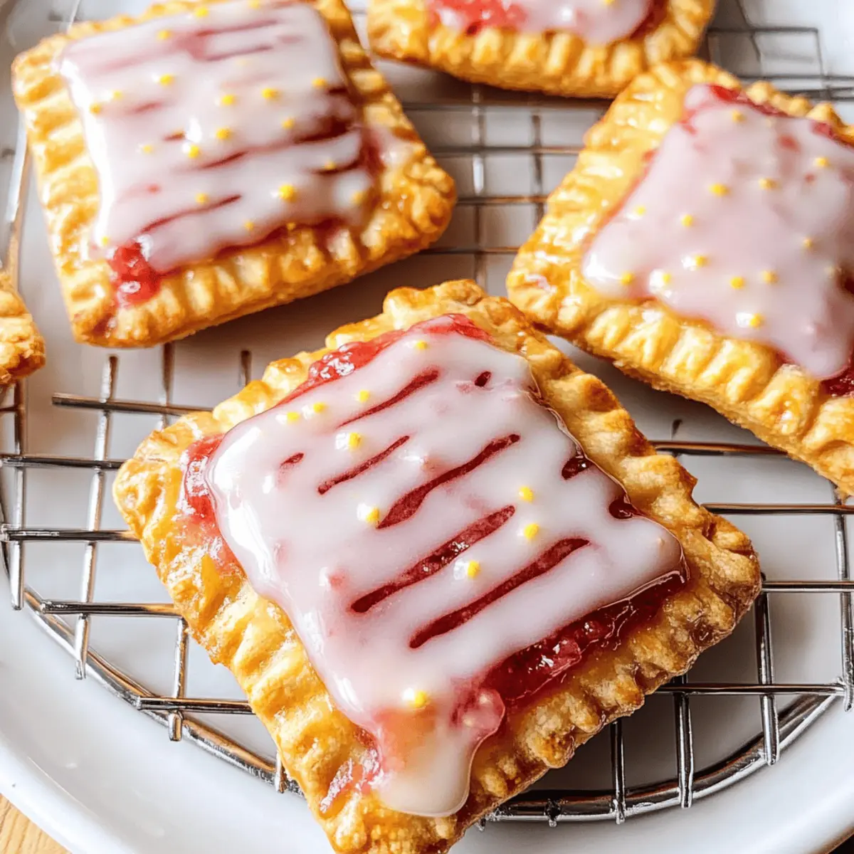 Eine unerwartete Geschmacksexplosion erwartet dich mit diesen köstlichen High-Protein Erdbeer-Pop Tarts! Stell dir vor, du beißt in eine zarte, buttrige Teighülle, die mit einer fruchtigen Erdbeer-Marmelade gefüllt ist – einfach himmlisch. Mit über 20 Gramm Protein pro Törtchen sind sie nicht nur ein schneller Genuss für dein Frühstück, sondern auch eine nahrhafte Snack-Option für den ganzen Tag. Die Zubereitung dauert gerade einmal 35 Minuten, was sie perfekt für vielbeschäftigte Menschen macht, die gesunde, hausgemachte Speisen ohne großen Aufwand genießen möchten. Bist du bereit, deine eigene vorteilhafte Variante dieses Klassikers zu kreieren? Warum wirst du dieses Rezept lieben? Einfachheit: Die Zubereitung ist unkompliziert und erfordert nur grundlegende Kochfähigkeiten. In nur 35 Minuten hast du ein köstliches Ergebnis! Nährstoffreich: Mit über 20 Gramm Protein pro Pop Tart sind diese Leckerbissen perfekt für einen gesunden Snack oder ein nahrhaftes Frühstück. Vielfältigkeit: Du kannst die Füllung nach Belieben anpassen – probiere die glutenfreie Variante oder genieße sie einfach mit Blaubeermarmelade für einen fruchtigen Twist! Nostalgischer Geschmack: Diese Pop Tarts lassen dich an deine Kindheit denken, aber mit einem gesunden, modernen Twist, der das Beste aus beiden Welten vereint. Beliebte Kombination: Ideal für die ganze Familie oder als Snack, wenn die Freunde zu Besuch sind. Sie werden garantiert begeistern! Für weitere gesunde Snackideen, schau dir auch unsere High Protein Eiweiss oder die Protein Waffeln Rezept an! High-Protein Erdbeer Pop Tarts Zutaten Für den Teig: Vollkornmehl – sorgt für Struktur und einen nussigen Geschmack; für die glutenfreie Variante kann glutenfreies Mehl verwendet werden. Vanille-Protein-Pulver – erhöht den Eiweißgehalt und verleiht Geschmack; ungesüßtes Proteinpulver kann ebenfalls genutzt werden. Zucker – bringt Süße; verwende Kokoszucker oder einen Zuckerersatz für eine gesündere Option. Backpulver – sorgt für die nötige Fluffigkeit; achte darauf, dass es frisch ist. Apfelmus – sorgt für Feuchtigkeit und Süße; ungesüßtes Apfelmus kann durch zerdrückte Bananen ersetzt werden. Neutrales Öl – sorgt für Zartheit; jedes geschmacksneutrale Öl (wie Raps- oder Sonnenblumenöl) ist geeignet. Vanilleextrakt – verstärkt den Geschmack; nutze reinen Vanilleextrakt für das beste Aroma. Für die Füllung: Erdbeermarmelade – für die Füllung; jede bevorzugte Marmelade kann verwendet werden, idealerweise niedrig zuckerhaltige oder hausgemachte Varianten für eine gesündere Wahl. Für die Glasur: Puderzucker – für die süße Glasur; zuckerfreier Puderzucker kann als kalorienärmere Alternative genutzt werden. Milch oder Wasser (für die Glasur) – Flüssigkeit zur Anpassung der Glasur-Konsistenz; kann durch pflanzliche Milch ersetzt werden. Mit diesen hochwertigen Zutaten zauberst du deine eigenen köstlichen High-Protein Erdbeer Pop Tarts – eine perfekte Kombination aus Nostalgie und gesunder Ernährung für zwischendurch! Schritt-für-Schritt-Anleitung für High-Protein Erdbeer Pop Tarts Schritt 1: Ofen vorheizen Heize den Ofen auf 170°C (325°F) vor und lege ein Backblech mit Backpapier aus. Achte darauf, dass der Ofen die richtige Temperatur erreicht, bevor du mit der Zubereitung der Teigmasse beginnst, damit die High-Protein Erdbeer Pop Tarts gleichmäßig gebacken werden. Schritt 2: Teig herstellen Vermische in einer großen Schüssel das Vollkornmehl, das Vanille-Protein-Pulver, den Zucker und das Backpulver. In einer separaten Schüssel mischst du das Apfelmus, das neutrale Öl und den Vanilleextrakt; anschließend kombinierst du diese Mischung mit den trockenen Zutaten. Wenn der Teig zu trocken erscheint, füge nach und nach eiswasser hinzu, bis du eine geschmeidige Teigkonsistenz erhältst. Schritt 3: Teig kühlen Forme den Teig zu einer glatten Kugel, wickle ihn in Plastikfolie und lege ihn für 15 Minuten in den Kühlschrank. Das Kühlen des Teigs hilft dabei, die Füllung in den High-Protein Erdbeer Pop Tarts besser zu halten und sorgt für eine bessere Textur beim Backen. Schritt 4: Teig ausrollen Teile den gekühlten Teig in zwei Hälften und rolle eine Hälfte auf einer leicht bemehlten Fläche auf eine Dicke von etwa 0,5 cm aus. Schneide den ausgerollten Teig in 8 Rechtecke und achte darauf, dass sie gleichmäßig groß sind, um eine ansprechende Präsentation der High-Protein Erdbeer Pop Tarts zu gewährleisten. Schritt 5: Tarts füllen Platziere jeweils einen Löffel Erdbeermarmelade in die Mitte der Hälfte der Rechtecke. Lege die restlichen Teigrechtecke darauf und drücke die Ränder mit einer Gabel fest, um sie zu versiegeln. Achte darauf, dass keine Marmelade herausläuft, damit die Füllung beim Backen nicht austritt. Schritt 6: Backen Lege die gefüllten Tarts auf das vorbereitete Backblech und backe sie für 10-15 Minuten, bis sie goldbraun sind. Die High-Protein Erdbeer Pop Tarts sind fertig, wenn sie leicht fest und die Ränder golden sind. Lasse sie anschließend auf einem Gitterrost auskühlen. Schritt 7: Glasur zubereiten Vermische in einer kleinen Schüssel den Puderzucker, die Milch und den Vanilleextrakt, um eine glatte Glasur zu erhalten. Verteile die Glasur gleichmäßig über die ausgekühlten High-Protein Erdbeer Pop Tarts und verziere sie nach Belieben mit bunten Streuseln oder Nüssen für eine besondere Note. Expert Tips für High-Protein Erdbeer Pop Tarts Frische Zutaten: Achte darauf, dass dein Backpulver frisch ist. Veraltetes Backpulver kann dazu führen, dass die Tarts nicht richtig aufgehen und ihre fluffige Textur verlieren. Teigfeuchtigkeit: Wenn der Teig zu trocken ist, füge vorsichtig eisgekühltes Wasser in kleinen Mengen hinzu. So erhältst du eine angenehme, geschmeidige Konsistenz für deine High-Protein Erdbeer Pop Tarts. Gesunde Füllung: Experimentiere mit verschiedenen Marmeladensorten! Verwende zuckerfreie oder hausge