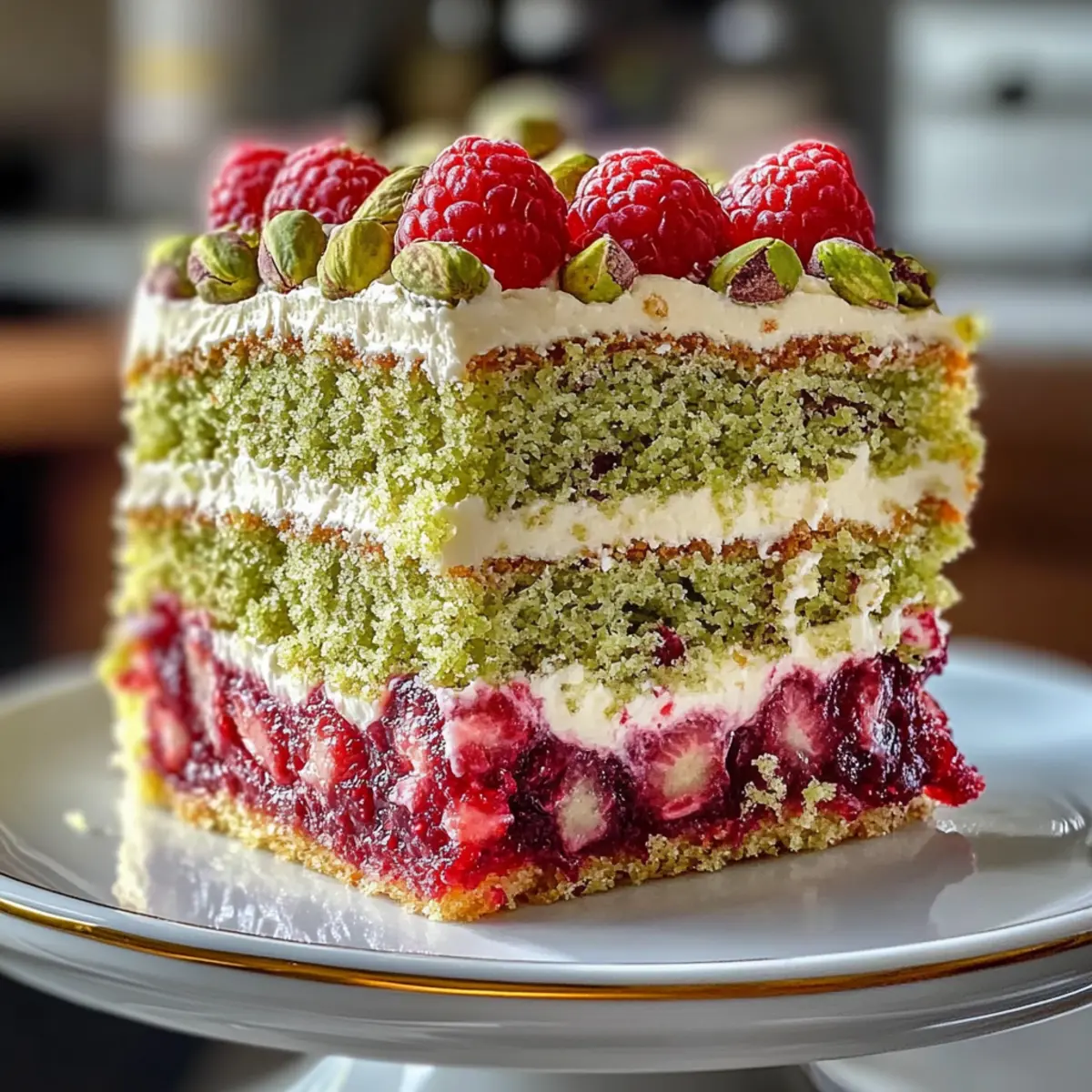 Als ich das erste Mal einen Himmlischen Pistazien-Himbeer-Kuchen zubereitete, war es, als würde ich die Aromen eines sonnendurchfluteten Marktes in meine Küche bringen. Die Kombination aus nussigen Pistazien und spritzigen Himbeeren zaubert ein wahres Geschmackserlebnis, das nicht nur das Herz, sondern auch die Seele erfreut. Dieser Kuchen ist nicht nur ein Hingucker auf jeder Feier, sondern auch blitzschnell zubereitet, sodass du mehr Zeit mit deinen Liebsten verbringen kannst! Ob als besondere Überraschung für ein festliches Dinner oder einfach nur, um dich selbst zu verwöhnen – du wirst erstaunt sein, wie einfach es ist, mit diesem Rezept Begeisterung zu entfachen. Bist du bereit, deinen eigenen märchenhaften Kuchen zu kreieren? Warum wirst du diesen Kuchen lieben? Einzigartige Kombination: Der Himmlische Pistazien-Himbeer-Kuchen vereint die nussigen Aromen von Pistazien mit der spritzigen Frische von Himbeeren und schafft so ein Geschmackserlebnis der Extraklasse. Einfache Zubereitung: Mit nur wenigen Schritten ist dieser Kuchen schnell gebacken – perfekt für alle, die wenig Zeit haben, aber trotzdem beeindrucken möchten. Beeindruckende Optik: Durch die Farben und Texturen wird er das Highlight jeder Feier und lässt sich wunderbar präsentieren. Vielseitig gestaltbar: Ob du ihn für ein festliches Dinner oder einen gemütlichen Nachmittagskaffee machst, der Kuchen passt zu jedem Anlass. Für jeden Genuss: Das Rezept lässt sich auch an verschiedene Diäten anpassen, z.B. glutenfrei oder vegan, sodass alle etwas davon haben können. Himmlischer Pistazien-Himbeer-Kuchen Zutaten • Dieser Kuchen wird dich durch seine köstlichen Aromen und einfache Zubereitung verzaubern! Für den Teig Ungesalzene Pistazien – verleihen dem Teig einen nussigen Geschmack; mahle sie für eine gleichmäßige Verteilung. Weizenmehl – sorgt für die Struktur; du kannst auch glutenfreies Mehl verwenden, um den Kuchen glutenfrei zu machen. Backpulver – sorgt für das Aufgehen des Kuchens. Salz – hebt den Geschmack hervor. Ungesalzene Butter – sorgt für eine zarte Textur; veganer Butter ist eine gute Alternative für eine milchfreie Version. Zucker – süßt den Kuchen; brauner Zucker kann für zusätzliches Aroma sorgen. Eier – binden die Zutaten und sorgen für Feuchtigkeit; Flachseier sind eine vegane Option. Vanilleextrakt – intensiviert den Geschmack. Mandelextrakt – betont die Nussigkeit; weglassen, wenn Allergien bestehen. Buttermilch – hält den Kuchen feucht; ersetze sie durch Milch mit Essig oder Zitronensaft. Für die Himbeerfüllung Frische oder gefrorene Himbeeren – bringen die spritzige Note; bei gefrorenen Himbeeren vorher auftauen. Zucker (für die Füllung) – süßt die Himbeeren. Speisestärke – dickt die Himbeerfüllung ein. Wasser und Zitronensaft – helfen, die Füllung zu binden. Für die Mascarponefüllung Mascarpone – Cremige Basis für die Füllung; Frischkäse ist eine Alternative. Puderzucker – süßt und stabilisiert die Füllung. Schlagsahne – lockert die Füllung auf. Dieser Himmlische Pistazien-Himbeer-Kuchen wird garantiert deine Gäste beeindrucken und ist ganz einfach zuzubereiten! Schritt-für-Schritt-Anleitung für Himmlischer Pistazien-Himbeer-Kuchen Step 1: Ofen vorheizen Heize deinen Ofen auf 175°C vor und bereite zwei 20 cm runde Kuchenformen vor, indem du sie mit Butter einfettest und den Boden mit Backpapier auslegst. Dies sorgt dafür, dass der Himmlische Pistazien-Himbeer-Kuchen später problemlos aus der Form gelöst werden kann, ohne zu zerbrechen. Step 2: Pistazien mahlen Gib die ungesalzenen Pistazien in die Küchenmaschine und mahle sie, bis sie fein sind. Achte darauf, dass sie nicht zu einer Paste werden; sie sollten eine gleichmäßige Konsistenz haben, um später im Teig gut verteilt zu werden. Dies ist der Grundstein für den nussigen Geschmack im Kuchen. Step 3: Trockene Zutaten mischen In einer großen Schüssel vermenge das Weizenmehl, Backpulver, Salz und die gemahlenen Pistazien. Rühre gut um, um sicherzustellen, dass alle trockenen Zutaten gleichmäßig verteilt sind. Dies schafft eine solide Basis für deinen Himmlischen Pistazien-Himbeer-Kuchen und stellt sicher, dass er gleichmäßig aufgeht. Step 4: Butter und Zucker aufschlagen In einer separaten Schüssel die weichgewordene Butter zusammen mit dem Zucker schaumig schlagen, bis die Mischung leicht und fluffig ist. Dies dauert etwa 3–5 Minuten mit einem Handmixer. Eine gute Emulsion sorgt dafür, dass der Kuchen schön zart wird. Step 5: Eier und Aromen hinzufügen Füge die Eier einzeln zur Butter-Zucker-Mischung hinzu und schlage jedes Ei gut durch, bevor du das nächste hinzufügst. Gib danach auch den Vanille- und Mandelextrakt hinzu; diese Aromen werden die Tiefe und den Charakter deines Himmlischen Pistazien-Himbeer-Kuchens verstärken. Step 6: Trockene Zutaten und Buttermilch kombinieren Wechsle abwechselnd, beginnend und endend mit den trockenen Zutaten, die Mischung aus trockenen Zutaten und der Buttermilch zur Butter-Ei-Mischung hinzu. Mische alles nur, bis es gerade so kombiniert ist; eine Übermischung könnte den Kuchen zäh machen. Falls gewünscht, kannst du hier auch einen Spritzer Lebensmittelfarbe für einen lebendigen Teig einfügen. Step 7: Teig aufteilen und backen Verteile den Teig gleichmäßig auf die vorbereiteten Kuchenformen. Backe die Teige dann etwa 25–30 Minuten lang, bis die Ränder goldbraun sind und ein Zahnstocker sauber aus der Mitte herauskommt. Lass die Kuchen nach dem Backen in den Formen für etwa 10 Minuten abkühlen, bevor du sie auf ein Abkühlgitter transferierst. Step 8: Himbeerfüllung zubereiten In einem kleinen Topf die Himbeeren, Zucker, Speisestärke, Wasser und Zitronensaft bei mittlerer Hitze vermischen. Rühre ständig um, bis die Mischung eindickt und zu köcheln beginnt, was etwa 5–7 Minuten dauert. Die Himbeerfüllung sollte schön glänzend und dickflüssig werden, perfekt als fruchtige Sch