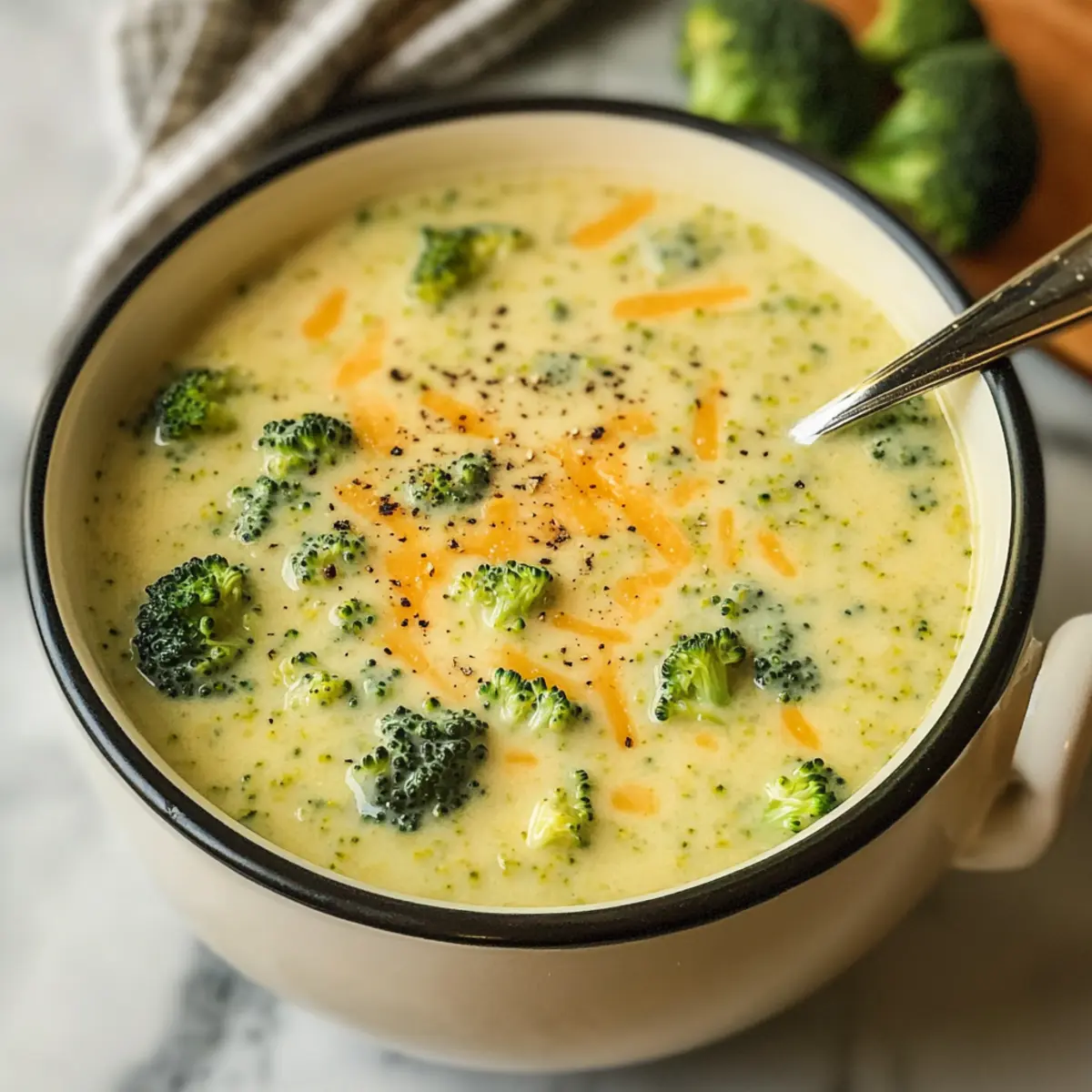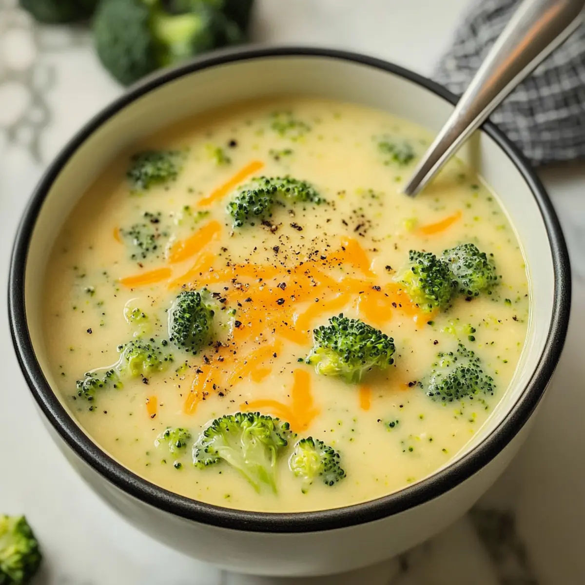 Während ich am Herd stehe und die Zwiebeln anbrate, entfaltet sich ein unverwechselbarer Duft in meiner Küche, der sofort Erinnerungen an gemütliche Abende mit der Familie heraufbeschwört. Heute präsentiere ich meine Variante der klassischen Hoher Protein Brokkoli-Cheddar-Suppe, die nicht nur wärmend und herzhaft ist, sondern auch 20 Gramm Protein pro Portion bietet. Die Kombination aus schmelzendem Cheddar und cremigem Hüttenkäse sorgt für eine angenehme Textur und erhöht den Nährwert, perfekt für jeden, der eine gesunde Mahlzeit genießen möchte. Diese Suppe ist nicht nur blitzschnell zubereitet, sondern auch ein echter Publikumsmagnet – ideal für kalte Tage und hungrige Mägen. Bist du bereit, dich von dem köstlichen Aroma verführen zu lassen? Lass uns zusammen kochen! Warum ist diese Suppe besonders? Gesundheitlicher Genuss: Mit 20 Gramm Protein pro Portion bietet diese Suppe eine nährstoffreiche Möglichkeit, deinen Tag zu bereichern. Einfache Zubereitung: Die schnellen Schritte ermöglichen es dir, in kürzester Zeit etwas Köstliches auf den Tisch zu bringen. Vielseitige Anpassung: Füge weiteres Gemüse oder proteinreiche Zutaten wie Hähnchen hinzu, um den Nährwert zu steigern. Herzhafter Geschmack: Die Kombination aus schmelzendem Cheddar und cremigem Hüttenkäse sorgt für einen vollmundigen Genuss, den du lieben wirst. Schnell und praktisch: Perfekt für ein schnelles Mittagessen oder ein Abendessen, wenn du wenig Zeit hast. Deine Familie wird sich freuen, und vielleicht möchtest du diese Suppe mit einem leckeren Avocado Toast für ein vollwertiges Abendessen kombinieren! Hoher Protein Brokkoli-Cheddar-Suppe Zutaten Für die Suppe Brokkoli – bringt die Hauptgemüsebasis. Frisch oder gefroren ist beides möglich. Hüttenkäse – sorgt für Cremigkeit und erhöht den Proteinanteil; griechischer Joghurt kann als Alternative für einen würzigeren Geschmack verwendet werden. Cheddar Käse – verleiht den charakteristischen Käsegeschmack; nutze scharfen Cheddar für mehr Aroma. Gemüse- oder Hühnerbrühe – dient als Geschmacksbasis für die Suppe; die Menge kann je nach gewünschter Dicke angepasst werden. Karotten – bringen Süße und Farbe; können für eine kohlenhydratarme Variante weggelassen werden. Zwiebel – verstärkt den grundlegenden Geschmack der Suppe; kann durch Schalotten für einen milderen Geschmack ersetzt werden. Knoblauch – sorgt für aromatische Tiefe; frischer, gehackter Knoblauch ist bevorzugt, aber auch Knoblauchpulver ist möglich. Mehl – wird zum Andicken der Suppe verwendet; für eine glutenfreie Option mit Speisestärke ersetzen oder weglassen. Salz & Pfeffer – nach Geschmack anpassen. Olivenöl – zum Anbraten; kann durch neutrales Öl oder Butter ersetzt werden. Genieße diese hohe Protein Brokkoli-Cheddar-Suppe als perfekte und nahrhafte Mahlzeit an einem kühlen Tag! Schritt-für-Schritt-Anleitung für die Hoher Protein Brokkoli-Cheddar-Suppe Step 1: Zwiebeln und Knoblauch anbraten Erhitze in einem großen Topf das Olivenöl bei mittlerer Hitze. Füge die gehackte Zwiebel und den frisch gehackten Knoblauch hinzu und brate beides unter ständigem Rühren für etwa 5 Minuten, bis die Zwiebeln weich und leicht durchsichtig sind. Der köstliche Duft wird schon jetzt in der Küche stehen und Vorfreude auf die Hoher Protein Brokkoli-Cheddar-Suppe wecken. Step 2: Brokkoli und Karotten hinzufügen Gib den geputzten und gehackten Brokkoli sowie die Karottenstücke in den Topf. Rühre alles gut um und lasse es für weitere 5 Minuten kochen, bis das Gemüse leicht weich wird. Achte darauf, dass der Brokkoli eine leuchtend grüne Farbe behält, während die Karotten ihre Süße entfalten. Step 3: Mehl einstreuen Streue das Mehl gleichmäßig über das Gemüse und rühre es gut unter. Lasse die Mischung für etwa 1 Minute unter Rühren weiterkochen, bis das Mehl leicht bräunlich wird und die Aromen sich verbinden. Dies wird helfen, die Hoher Protein Brokkoli-Cheddar-Suppe schön cremig zu machen. Step 4: Brühe einrühren Gieße langsam die Gemüse- oder Hühnerbrühe in den Topf, während du ständig rührst, um Klumpenbildung zu vermeiden. Bring die Suppe zum Simmern und lasse sie für ca. 10 Minuten leicht köcheln. Achte darauf, dass sie eine angenehme, leicht dickflüssige Konsistenz erreicht, bevor du mit dem nächsten Schritt fortfährst. Step 5: Käse hinzufügen Reduziere die Hitze und füge den Hüttenkäse und den geriebenen Cheddar in die Suppe hinzu. Rühre alles gut um, bis sich der Käse vollständig aufgelöst hat und eine cremige Konsistenz entsteht. Die Kombination aus schmelzendem Cheddar und Hüttenkäse wird deine Hoher Protein Brokkoli-Cheddar-Suppe unwiderstehlich machen. Step 6: Abgeschmecken und servieren Nimm den Topf vom Herd und schmecke die Suppe mit Salz und Pfeffer ab. Verteile die heiß servierte Suppe in Schalen und genieße sie sofort. Unterstreiche das Geschmackserlebnis mit frischem Brot oder einem frischen Salat – perfekt für kalte Tage! Was passt zur Hoher Protein Brokkoli-Cheddar-Suppe? Die perfekte Begleitung für deine wärmende Suppe kann das Geschmackserlebnis in deiner Küche erheblich steigern. Frischer grüner Salat: Ein knackiger, grüner Salat mit einem leichten Zitronen-Dressing sorgt für einen frisch-fruchtigen Kontrast zur Cremigkeit der Suppe. Ideal, um den Gaumen zu erfrischen. Knuspriges Baguette: Das warme, frische Baguette zum Dippen in die Suppe ist einfach unwiderstehlich. Es bringt eine angenehme Textur und rundet das Mahl ab. Gebackene Süßkartoffeln: Die natürliche Süße der gebackenen Süßkartoffeln ergänzt die herzhaften Aromen der Suppe perfekt. Außerdem liefern sie zusätzliche Nährstoffe und Ballaststoffe. Geröstete Kichererbsen: Kichererbsen sorgen für einen leckeren, knusprigen Snack. Sie fügen sowohl Textur als auch Proteine hinzu, die die nahrhafte Suppe wunderbar ergänzen. Cremige Avocado: Die buttrige Konsistenz der Avocado sorgt für e