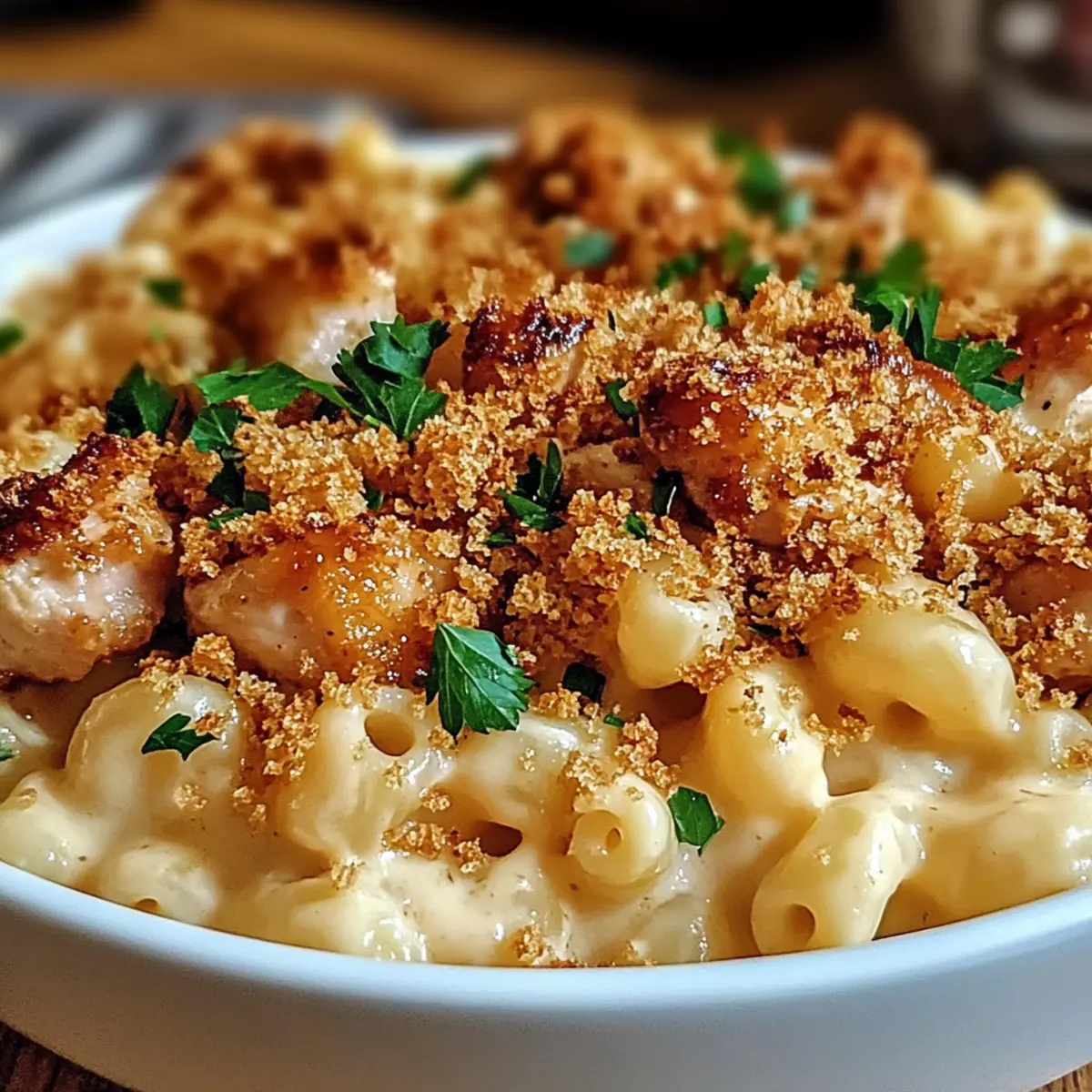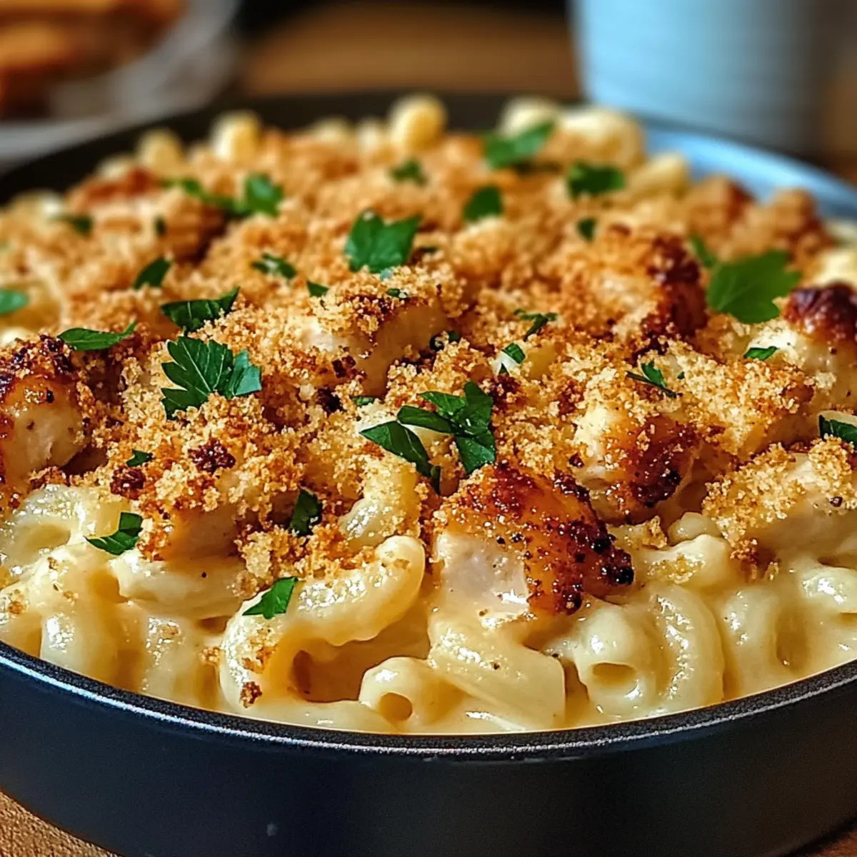Genieße dieses köstliche Honig Pfeffer Hähnchen Makkaroni und Käse Rezept, das perfekt für die Familie ist.