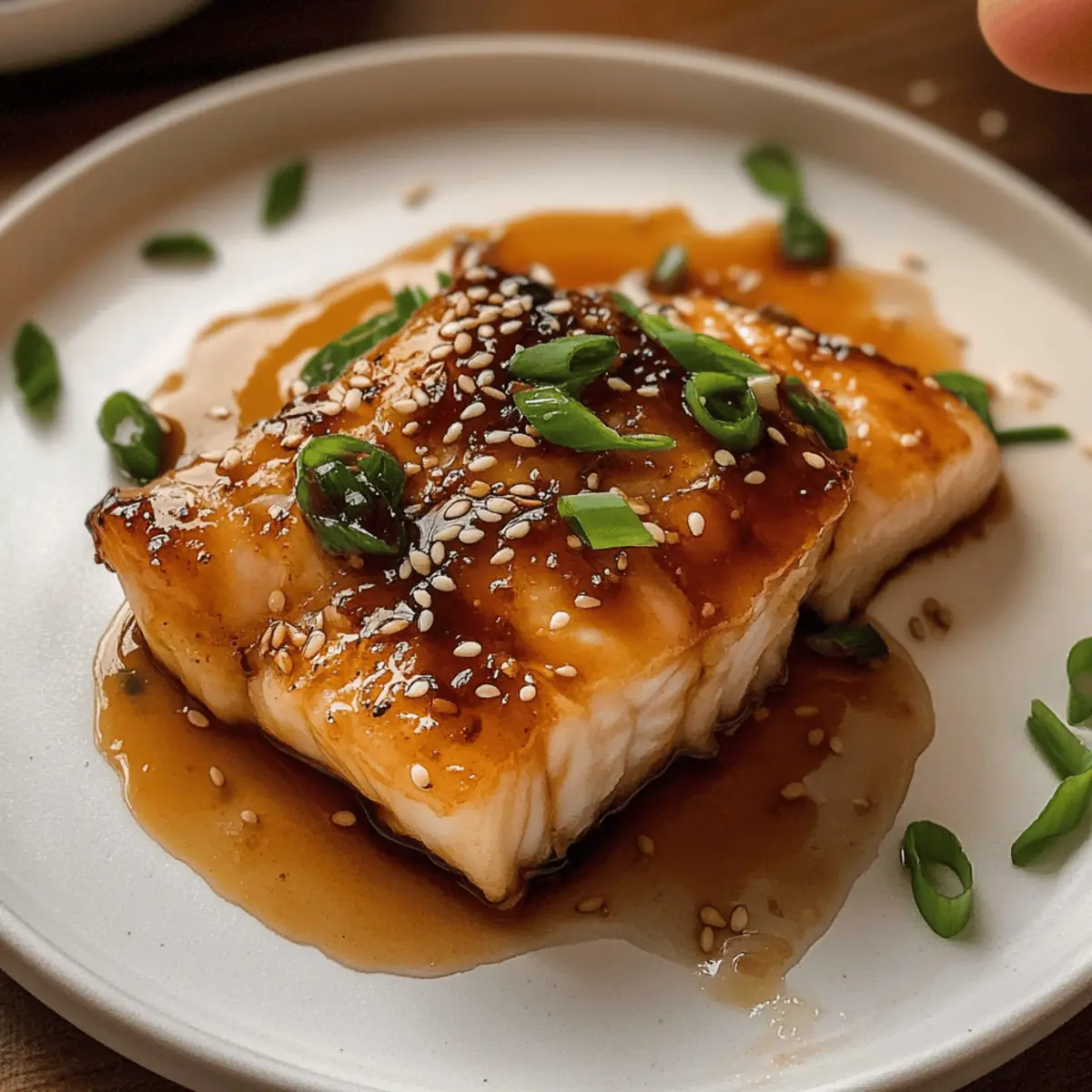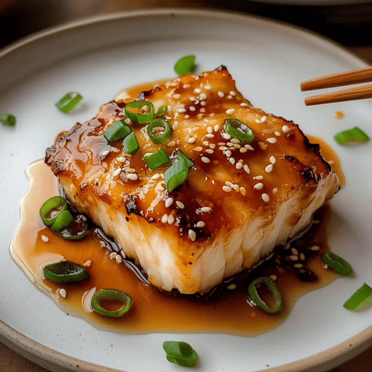 Den Kabeljau vorsichtig mit einem Spatel auf einen Servierteller legen und nach Belieben mit in Scheiben geschnittenen Frühlingszwiebeln garnieren. Der Honig-Soja-glasierte Kabeljau ist nun bereit, serviert zu werden und verleiht Ihrem Abendessen eine köstliche, asiatisch inspirierte Note.