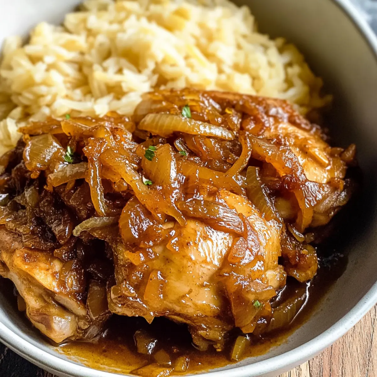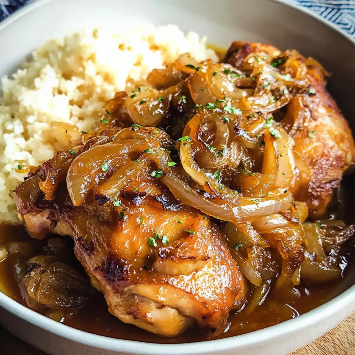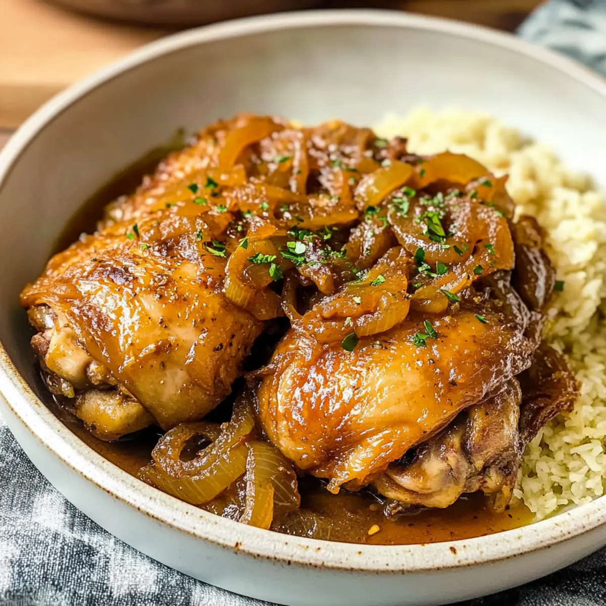 Als ich zum ersten Mal den Duft von Poulet Yassa in einem kleinen Standard-Restaurant in Dakar einatmete, wusste ich, dass ich einen Schatz entdeckt hatte. Dieses traditionelle senegalesische Gericht mit zartem Hühnchen, das in einer Mischung aus Zitrone, Knoblauch und einer Vielzahl von Gewürzen mariniert wird, ist nicht nur ein kulinarisches Highlight, sondern auch eine wunderbare Möglichkeit, die afrikanische Küche in die heimische Kochkunst zu integrieren. Die köstlich karamellisierten Zwiebeln verleihen dem Gericht eine süße Note, die perfekt mit den würzigen Aromen harmoniert. Dieses Rezept ist nicht nur schnell zubereitet, sondern auch perfekt für alle, die eine kohlenhydratarme oder keto-freundliche Ernährung anstreben. Lust auf eine geschmackvolle Reise? Lass uns gemeinsam in die Welt von Poulet Yassa eintauchen! Warum ist Hühnchen Yassa so besonders? Einfache Zubereitung: Dieses Rezept erfordert nur grundlegende Kochkünste und benötigt keine komplizierten Techniken. Würzige Aromen: Die Kombination aus Zitrone, Knoblauch und Gewürzen sorgt für ein Geschmackserlebnis, das Ihre Sinne berauscht. Schnelles Kochen: Ideal für geschäftige Abende, da die Marinierzeit flexibel ist und die Kochzeit kurz hält. Vielseitig servierbar: Genießen Sie es über Reis oder Blumenkohlreis, passend zu einem gesunden Lebensstil. Familienfreundlich: Das köstliche Aroma von Hühnchen Yassa wird Ihre Familie und Freunde begeistern, perfekt für gesellige Abende! Entdecken Sie auch unsere anderen köstlichen Rezepte wie Kaesekuchen Nach Omas oder Honig Schnecken Kaesekuchen, die ebenfalls für schöne gemeinsame Momente sorgen. Hühnchen Yassa Zutaten Für die Marinade Hähnchenschenkel – Eine zarte und geschmacksintensive Proteinquelle; Hähnchenbrust kann für eine magerere Variante verwendet werden. Olivenöl – Für das Anbraten; es verleiht dem Gericht eine reichhaltige Note. Knoblauchzehen – Unverzichtbar für einen aromatischen Geschmack; frisch ist immer besser als Pulver. Zitronensaft – Bringt Frische ins Gericht; frisch gepresst ist optimal, aber auch Flaschenware kann verwendet werden. Dijon-Senf – Fügt eine angenehme Säure hinzu, die hervorragend zur Zitrone passt. Für das Hauptgericht Zwiebeln – Sorgen für Süße und Tiefe; verwenden Sie große, dünn geschnittene Zwiebeln für gleichmäßiges Garen. Hühnerbrühe – Sorgt für Feuchtigkeit und verstärkt den Geschmack; am besten hausgemacht oder mit wenig Natrium. Raucharoma Paprika – Verleiht dem Gericht eine rauchige Note und Farbe; normales Paprikapulver kann verwendet werden, hat aber weniger Tiefe. Cayennepfeffer – Fügt eine angenehme Schärfe hinzu; je nach Vorliebe anpassen. Für die Würze Bouillonpulver – Verstärkt den umami-Geschmack; sichern Sie sich eine low-sodium Variante, wenn Sie auf Ihre Gesundheit achten. Salz – Zum Würzen; nach Geschmack anpassen. Erleben Sie das Geschmackserlebnis eines authentischen Hühnchen Yassa, das Ihren Gaumen verwöhnen wird! Step-by-Step Instructions for Hühnchen Yassa Step 1: Hühnchen vorbereiten Waschen Sie die Hähnchenschenkel gründlich und tupfen Sie sie mit Küchenpapier trocken. Schneiden Sie die Hähnchenteile in bevorzugte Portionen, um eine schnelle und gleichmäßige Marinierung zu gewährleisten. Legen Sie die Hähnchenteile in eine große Schüssel, um sie für die Marinade bereit zu machen. Step 2: Marinade mischen In einer separaten Schüssel vermengen Sie den frisch gepressten Zitronensaft, die gehackten Knoblauchzehen, den Dijon-Senf, die Zwiebeln und die Gewürze (einschließlich rauchiger Paprika und Cayennepfeffer). Gießen Sie diese Marinade über das Hühnchen, stellen Sie sicher, dass es vollständig bedeckt ist. Decken Sie die Schüssel ab und lassen Sie das Hühnchen mindestens 2 Stunden im Kühlschrank marinieren, optimal ist über Nacht. Step 3: Hühnchen anbraten Entfernen Sie das Hühnchen aus der Marinade und schaben Sie die überschüssige Marinade ab. Erhitzen Sie in einer großen Pfanne 2–3 Esslöffel Olivenöl bei mittlerer bis hoher Hitze. Braten Sie das Hühnchen in der Pfanne für etwa 4–5 Minuten auf jeder Seite an, bis es goldbraun und knusprig ist. Achten Sie darauf, das Hühnchen nicht zu überfüllen, damit es gleichmäßig bräunt. Step 4: Zwiebeln karamellisieren Nehmen Sie das angebratene Hühnchen aus der Pfanne und stellen Sie es vorübergehend beiseite. Geben Sie die verbleibenden, in Scheiben geschnittenen Zwiebeln in dieselbe Pfanne und braten Sie sie bei mittlerer Hitze etwa 5 Minuten lang an, bis sie weich und karamellisiert sind. Rühren Sie gelegentlich um, um ein Anbrennen zu verhindern, und genießen Sie das Aroma! Step 5: Kombinieren und köcheln lassen Legen Sie das gebräunte Hühnchen zurück in die Pfanne zu den karamellisierten Zwiebeln. Gießen Sie die Hühnerbrühe hinzu, und bringen Sie die Mischung zum Kochen. Reduzieren Sie die Hitze auf niedrig bis mittel und lassen Sie alles 15–20 Minuten köcheln, bis das Hühnchen durchgegart und zart ist. Passen Sie das Salz nach Belieben an und genießen Sie den Duft von Hühnchen Yassa in Ihrer Küche. Lagerungstipps für Hühnchen Yassa Kühlschrank: Bewahren Sie übrig gebliebenes Hühnchen Yassa in einem luftdichten Behälter im Kühlschrank auf, wo es bis zu 3 Tage frisch bleibt. Gefrierschrank: Für eine längere Lagerung frieren Sie das Hühnchen Yassa bis zu 6 Monate ein. Verwenden Sie gefriergeeignete Behälter oder Beutel, um Gefrierbrand zu vermeiden. Auftauen: Lassen Sie das gefrorene Hühnchen Yassa über Nacht im Kühlschrank auftauen, um die Qualität und Textur zu erhalten. Wiedererwärmung: Zum Aufwärmen das Hühnchen Yassa in einer Pfanne bei mittlerer Hitze erhitzen und etwas Hühnerbrühe hinzufügen, falls es zu trocken erscheint. Was passt zu Hühnchen Yassa? Entdecken Sie die perfekte Ergänzung zu Ihren kulinarischen Abenteuern mit Hühnchen Yassa, um ein harmonisches und genussvolles Essen zu kreieren. Kokosre