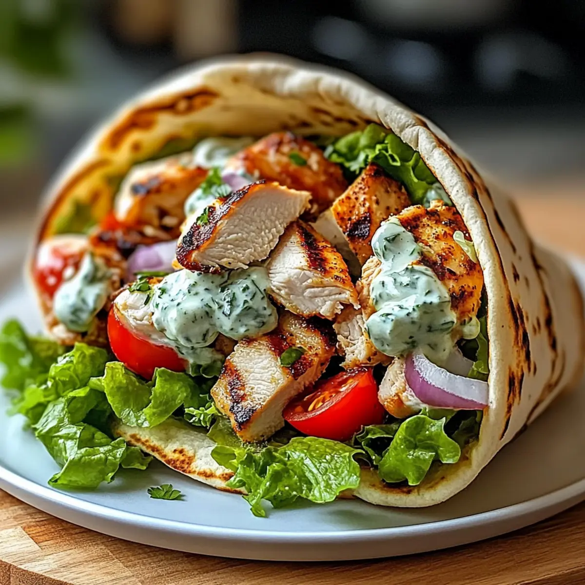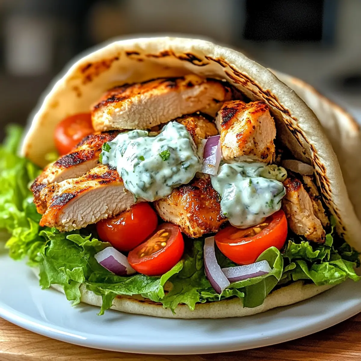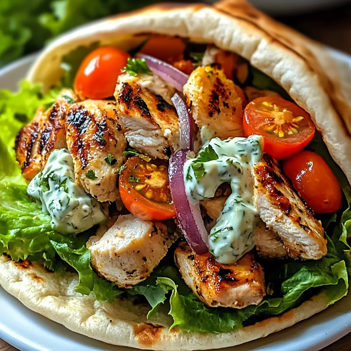 Ein köstlicher Duft von gegrilltem Hühnchen und frischen Kräutern erfüllt die Luft, während ich in der Küche stehe und mich auf die Zubereitung meiner mediterranen Hühnchen Gyros vorbereite. Dieser schnelle Genuss ist nicht nur ideal für hektische Wochentage, sondern auch ein absoluter Crowd-Pleaser, wenn Freunde zu Besuch sind. Die Kombination aus zart mariniertem Hähnchen, knackigem Gemüse und dem cremigen, erfrischenden Tzatziki in warmem Pita-Brot garantiert einen geschmacklichen Hochgenuss, der richtig glücklich macht. Egal, ob Sie ein erfahrener Koch oder ein Neuling in der Küche sind – dieses Rezept lässt sich kinderleicht umsetzen und verspricht trotzdem ein unvergessliches Geschmackserlebnis. Bereit, Ihre nächste kulinarische Herausforderung anzunehmen? Warum sind Hühnchen Gyros so beliebt? Schnelle Zubereitung: Dieses Rezept ist ideal für hektische Wochentage, da es in etwa 30 Minuten zubereitet werden kann. Wunderbare Aromen: Die Marinade sorgt für unvergessliche Geschmäcker und lässt das Hühnchen zart und saftig werden. Frische Zutaten: Mit knackigem Gemüse und einer cremigen Tzatziki-Sauce wird jede Bissen zu einem Genuss. Vielseitigkeit: Variieren Sie die Toppings nach Ihrem Geschmack, vielleicht mit Proteinriegel Schokoladen Erdnussbutter als Alternative für die gemütlichen Mahlzeiten nach dem Kochen. Crowd-Pleaser: Ob beim Familienessen oder beim Grillabend mit Freunden, diese Hühnchen Gyros kommen immer gut an! Genießen Sie dieses urzeitliche Rezept und bringen Sie ein Stück mediterranen Flair auf Ihren Tisch. Hühnchen Gyros Zutaten Für das Hähnchen • Hühnchenschenkel – Zartes Protein, das die perfekte Grundlage für Ihre Hühnchen Gyros bietet. Kann durch Hühnchenbrust für eine fettärmere Variante ersetzt werden. • Olivenöl – Fügen Sie Feuchtigkeit und Reichhaltigkeit zur Marinade hinzu. Kann durch Avocadoöl ersetzt werden, wenn gewünscht. • Rotweinessig – Bringt Säure und verstärkt den Geschmack. Kann durch Apfelessig substituiert werden. • Knoblauch – Aromatische Note sowohl in der Marinade als auch im Tzatziki. Verwenden Sie Knoblauchpulver als Alternative und passen Sie die Menge nach Geschmack an. • Getrockneter Oregano – Baut erdige Aromen auf, die mediterranen Gerichten eigen sind. Frischer Oregano sorgt für einen lebhafteren Geschmack. • Gemahlener Kreuzkümmel – Fügt Wärme und einen leicht rauchigen Geschmack hinzu. Fenchelsamen können für ein anderes Geschmacksprofil verwendet werden. • Geräuchertes Paprikapulver – Sorgt für eine milde, rauchige Tiefe. Reguläres Paprikapulver kann als Ersatz verwendet werden, wenn geräuchert nicht verfügbar ist. • Salz und Pfeffer – Unverzichtbar, um die Gesamtgeschmäcker zu verstärken. Nach Belieben anpassen. Für das Tzatziki • Griechischer Joghurt – Basis der Tzatziki-Sauce, die Cremigkeit und Frische bietet. Kann durch pflanzlichen Joghurt für eine vegane Option ersetzt werden. • Gurke – Sorgt für Frische und Knackigkeit im Tzatziki. Zucchini kann verwendet werden, wenn keine Gurke verfügbar ist. • Frischer Dill – Fügt eine unverwechselbare Kräuternote hinzu. Getrockneter Dill kann verwendet werden, obwohl frischer bevorzugt wird. • Zitronensaft – Bringt die Aromen im Tzatziki zum Strahlen. Limettensaft ist eine geeignete Alternative. Für die Beilage • Pita-Brot/Fladenbrot – Das Gefäß für die Gyros. Kann durch glutenfreie Wraps ersetzt werden. • Kirschtomaten – Frischer, süßer Zusatz für zusätzlichen Geschmack und Farbe. Reguläre Tomaten können ebenfalls, gewürfelt, verwendet werden. • Rote Zwiebel – Sorgt für Knackigkeit und Schärfe. Schalotten können als mildere Alternative dienen. • Salat – Fügt Knackigkeit und Frische in die Gyros ein. Beliebige Blattgemüse kann verwendet werden. • Feta-Käse – Bringt Salzigkeit und Cremigkeit ins Gericht. Kann durch zerbröselten Ziegenkäse ersetzt oder für eine vegane Variante weggelassen werden. • Olivenöl (zum Beträufeln) – Verbessert die Aromen der zusammengestellten Gyros. Verwenden Sie aromatisierte Öle für zusätzlichen Geschmack. • Frische Petersilie – Optionale Garnitur, die Farbe und einen Hauch von Bitterkeit hinzufügt. Minze kann für einen erfrischenden Twist verwendet werden. Genießen Sie Ihre Hühnchen Gyros und lassen Sie sich von den köstlichen mediterranen Aromen verzaubern! Schritt-für-Schritt-Anleitung für Hühnchen Gyros Step 1: Hühnchen marinieren Bereiten Sie eine Marinade vor, indem Sie Olivenöl, Rotweinessig, gehackten Knoblauch, Oregano, Kreuzkümmel, geräuchertes Paprikapulver, Salz und Pfeffer in einer Schüssel vermengen. Fügen Sie die Hühnchenschenkel hinzu und sorgen Sie dafür, dass diese gut bedeckt sind. Lassen Sie das Hühnchen mindestens 1 Stunde, besser über Nacht, im Kühlschrank marinieren, um die Aromen gut einziehen zu lassen. Step 2: Tzatziki-Sauce zubereiten In einer separaten Schüssel mischen Sie griechischen Joghurt, geriebene Gurke, gehackten Knoblauch, Olivenöl, frischen Dill, Zitronensaft und etwas Salz. Rühren Sie alles gut um, bis eine cremige Konsistenz erreicht ist. Lassen Sie die Tzatziki-Sauce bis zum Servieren im Kühlschrank ruhen, damit sich die Aromen entfalten können. Step 3: Hühnchen garen Erhitzen Sie den Grill auf mittelhohe Temperatur oder alternativ den Ofen auf 200 °C. Grillen Sie die marinierten Hühnchenschenkel etwa 5-7 Minuten pro Seite, bis sie durchgegart sind (Kerntemperatur mindestens 74 °C). Alternativ können Sie das Hühnchen auch in einer Pfanne mit etwas Olivenöl anbraten, bis es goldbraun und knusprig ist. Step 4: Hühnchen ruhen und schneiden Nach dem Garen lassen Sie das Hühnchen für ein paar Minuten ruhen, damit der Saft sich setzen kann. Schneiden Sie anschließend die Hühnchenschenkel in dünne Streifen. Diese zarten Stücke sind bereit, in die Hühnchen Gyros gefüllt zu werden und bringen das mediterrane Flair in Ihr Gericht.