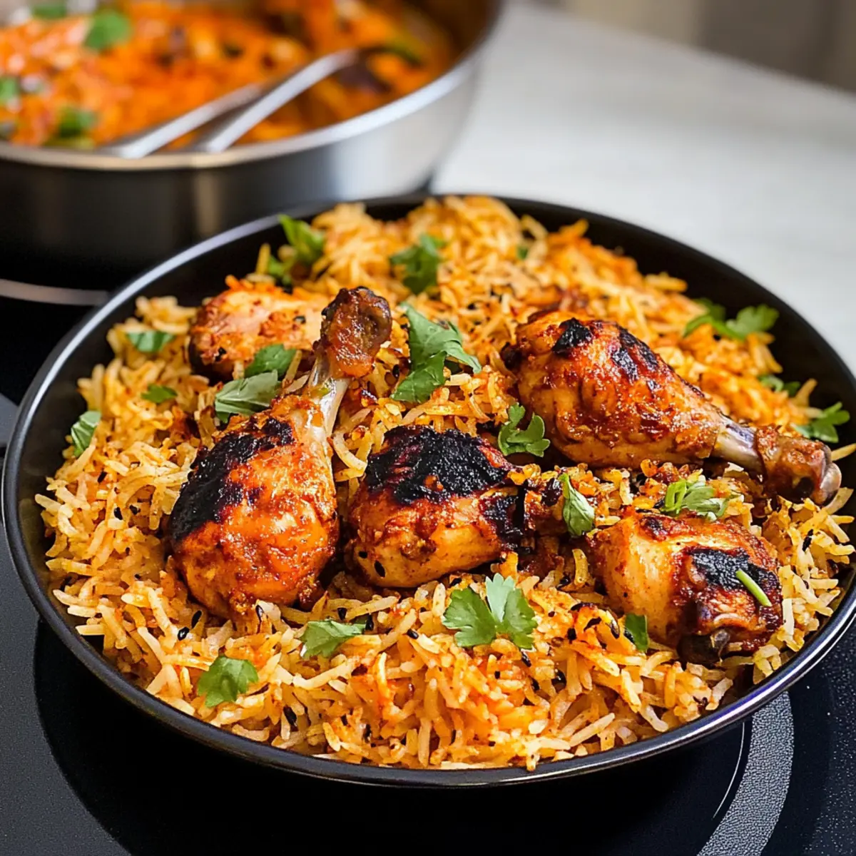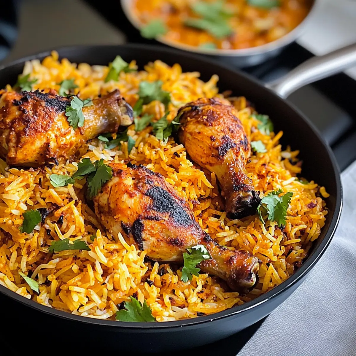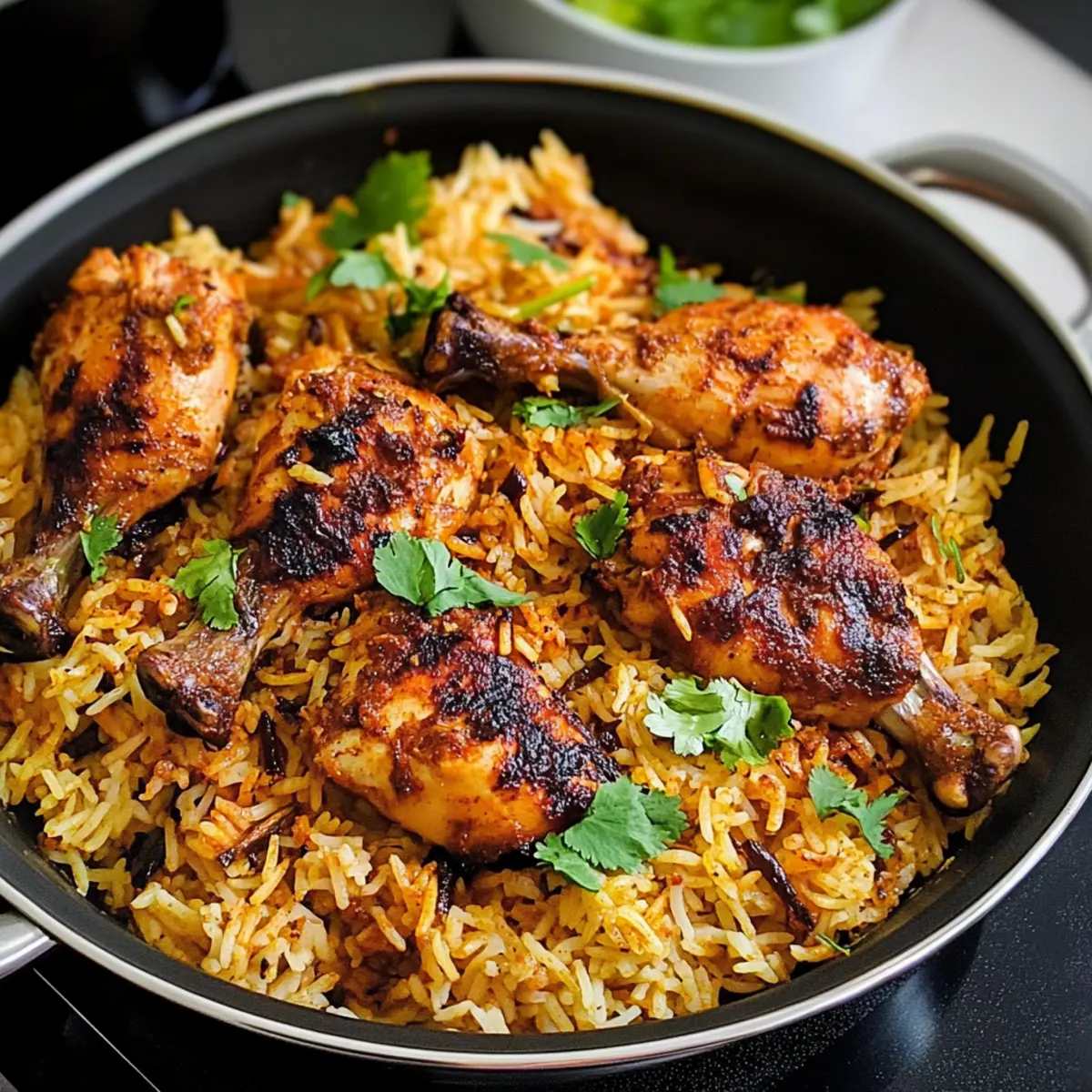„Hast du jemals den Duft von frisch gewürztem Reis und saftigem Hähnchen in der Luft gespürt, der dich sofort in ein ferneres Land versetzt?“ Genau das bietet dir dieses authentische Rezept für Hühnchen Kabsa. Diese köstliche, arabische Spezialität vereint würziges, gegrilltes Hühnchen mit aromatischem Basmati-Reis zu einem herzhaften Festmahl, das perfekt für Familienfeiern oder besondere Anlässe geeignet ist. Was ich besonders liebe, ist die einfache Zubereitung in nur einem Topf – weniger Stress und Geschirr zu spülen! Darüber hinaus sind die reichhaltigen Aromen und die Vielzahl an Gewürzen ein wahrer Genuss für die Sinne. Bist du bereit, in die Welt der arabischen Küche einzutauchen und deine Liebsten mit einem unvergleichlichen Gericht zu begeistern? Lass uns anfangen! Warum wirst du Hühnchen Kabsa lieben? Einfachheit: Die Zubereitung dieses Gerichts ist unkompliziert und benötigt nur einen einzigen Topf, was die Reinigung zum Kinderspiel macht. Rasante Aromen: Die Kombination aus Kräutern und Gewürzen sorgt für ein Geschmackserlebnis, das dich und deine Gäste begeistern wird. Familienfreundlich: Ein Gericht, das sowohl Erwachsene als auch Kinder lieben, macht es zur perfekten Wahl für Familientreffen. Vielseitigkeit: Du kannst das Rezept leicht anpassen, indem du verschiedene Proteine oder Gemüse verwendest. Ein Fest der Sinne: Hühnchen Kabsa erfüllt nicht nur den Bauch, sondern auch das Herz, bereit für eine geschmackliche Reise in die arabische Welt! Hühnchen Kabsa Zutaten • Für die Gewürzmischung Kabsa Gewürzmischung – Eine Kombination aus Gewürzen, die dem Gericht seinen reichen Geschmack verleihen; du kannst sie kaufen oder selbst herstellen. Zimtstange – Sorgt für eine warme und süße Note; kann weggelassen werden, senkt aber die Aromatik. Nelken – Fügen eine leicht süßliche Schärfe hinzu; wichtig für das authentische Aroma. Kardamomkapseln – Bereichern den Geruch und Geschmack; frisch ist am besten! • Für das Hühnchen Ganzes Hühnchen (in 6 Stücke geschnitten) – Die Hauptquelle des Proteins; du kannst auch Hähnchenschenkel oder -flügel verwenden, wenn das einfacher für dich ist. • Für die Aromaten Zwiebeln – Die Basis für den Geschmack des Gerichts; verwende Schalotten für einen milden Geschmack. Frischer Ingwer – Hiermit wird Wärme und Tiefe hinzugefügt; frisch ist ideal. Frischer Knoblauch – Verstärkt das Aroma; bei Bedarf kann auch Knoblauchpulver verwendet werden. Grüne Chilischoten – Fügt Schärfe hinzu; du kannst sie weglassen oder durch mildere Paprika ersetzen. • Für die Flüssigkeiten Tomatenmark und gewürfelte Tomaten – Bringen Säure und Feuchtigkeit; frische Tomaten können anstelle von Konserven verwendet werden. Hühnerbrühewürfel – Sorgt für zusätzliche Tiefe; kann durch hausgemachte Brühe oder Wasser ersetzt werden. Wasser – Zum Kochen des Reises; je nach verwendetem Reis die Menge anpassen. • Für den Reis Basmati-Reis – Garantiert die richtige Textur und das Aroma; du kannst auch Jasminreis verwenden, beachte jedoch, dass die Kochzeiten variieren können. • Für die Beigaben Karotten – Fügen Süße und Farbe hinzu; du kannst auch Erbsen oder Paprika verwenden, wenn du möchtest. Rosinen – Verleihen Süße; optional für die Garnitur. Salz nach Geschmack – Unverzichtbar zur Geschmacksverstärkung. Genieße dieses köstliche Rezept für Hühnchen Kabsa im Kreise deiner Familie! Step-by-Step Instructions für Hühnchen Kabsa Step 1: Gewürzmischung vorbereiten Mische in einer Schüssel die Kabsa Gewürzmischung, bestehend aus Kardamom, weißem Pfeffer, Safran, Zimt, Allgewürz und Limettenpulver. Stelle sicher, dass alle Gewürze gut vermengt sind, um ein harmonisches Aroma zu erzielen. Beiseitelegen, während du die anderen Zutaten vorbereitest. Step 2: Aromaten anbraten Erhitze in einem schweren Topf etwas Öl bei mittlerer Hitze. Füge die fein gehackten Zwiebeln, den Ingwer, den Knoblauch und die grünen Chilischoten hinzu. Sauté alles für etwa 5–7 Minuten, bis die Zwiebeln goldbraun sind und aromatisch duften. Diese aromatische Grundlage wird das Herz deiner Hühnchen Kabsa. Step 3: Ganze Gewürze hinzufügen Gib die Lorbeerblätter, Nelken, Kardamomkapseln und die Zimtstange in den Topf. Rühre für etwa 2 Minuten um, damit die Aromen der Gewürze freigesetzt werden. Dies verleiht dem Gericht eine wunderbar komplexe Geschmacksbasis. Step 4: Tomaten integrieren Füge die Tomatenmark und die gewürfelten Tomaten in den Topf. Koche diese Mischung für etwa 2 Minuten, bis sie sehr gut vermischt und leicht eingekocht ist. Die Tomaten sorgen für die notwendige Feuchtigkeit und Säure in deiner Hühnchen Kabsa. Step 5: Würzen Mische das frische Muskatnuss, den schwarzen Pfeffer, Kreuzkümmel, Koriander sowie die zuvor vorbereitete Kabsa Gewürzmischung unter die Tomaten. Würze die Mischung mit Salz und brate sie für weitere 1–2 Minuten an, sodass sich die Gewürze gut entfalten können und die Aromen intensiv werden. Step 6: Hühnchen kochen Gib die Hühnchenstücke in den Topf und brate sie ca. 30 Minuten an, bis sie von allen Seiten schön goldbraun sind. Achte darauf, dass das Hühnchen gut durchgegart ist, um die besten Aromen für deine Hühnchen Kabsa zu erzielen. Step 7: Reis vorbereiten Rühre den gewaschenen Basmati-Reis und die Rosinen ein, gefolgt von 4 Tassen Wasser. Bring die Mischung zum Kochen und reduziere dann die Hitze. Decke den Topf ab und lasse das Ganze für 10-15 Minuten sanft köcheln, bis der Reis weich und das Wasser aufgenommen ist. Step 8: Hühnchen grillen Heize den Grill auf mittlere Hitze vor. Lege die Hähnchenkeulen auf den Grill und grille sie 10-15 Minuten, bis sie vollkommen durchgegart sind und eine knusprige, goldbraune Haut haben. Dies bringt zusätzlichen Geschmack zu deiner Hühnchen Kabsa. Step 9: Servieren Lockere den Reis mit einer Gabel auf und platziere ihn auf einem großen Servierteller. Arrang