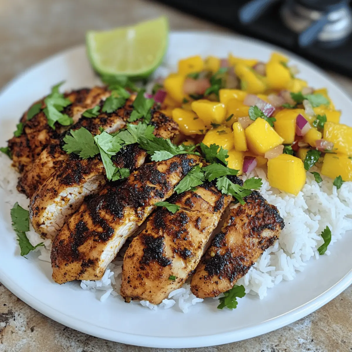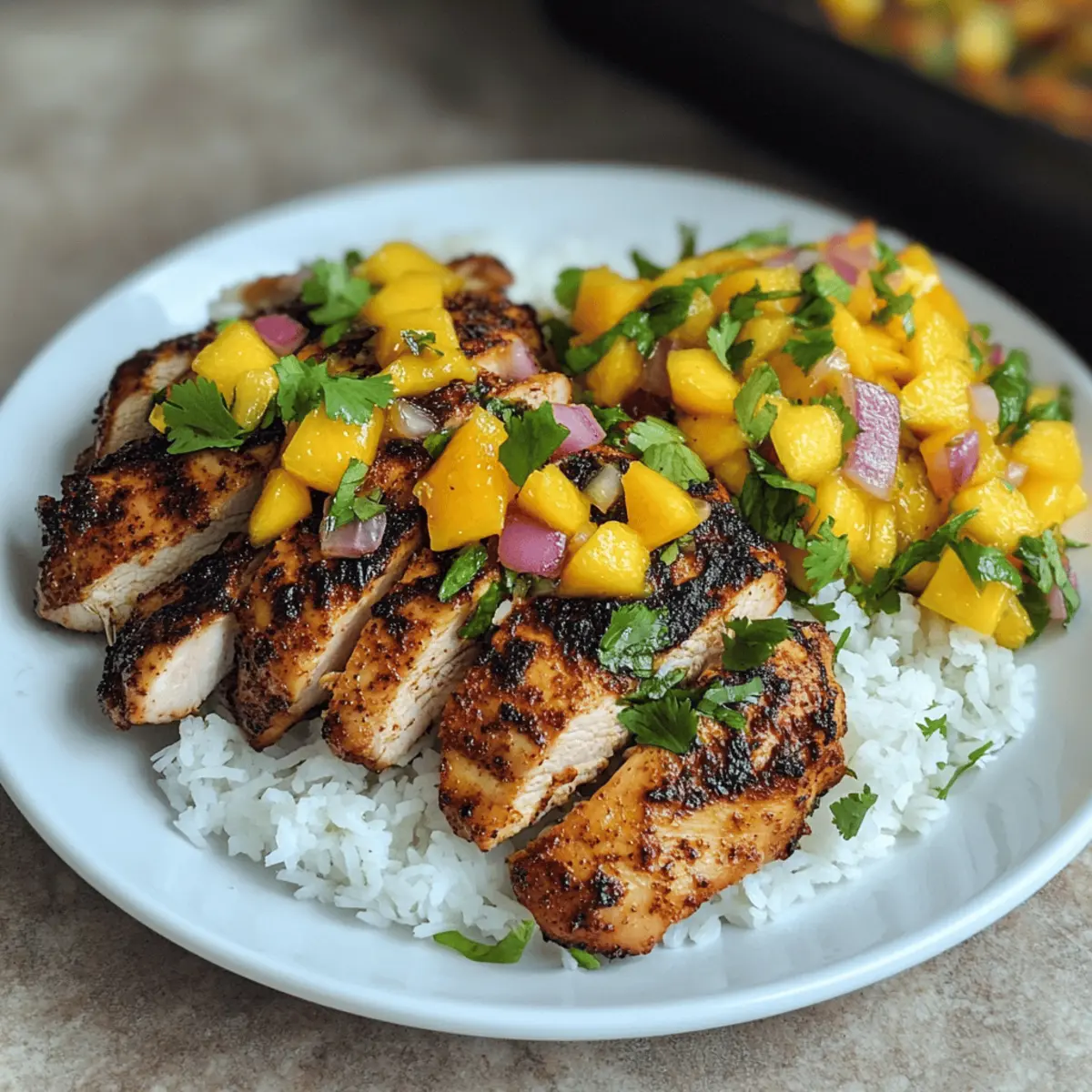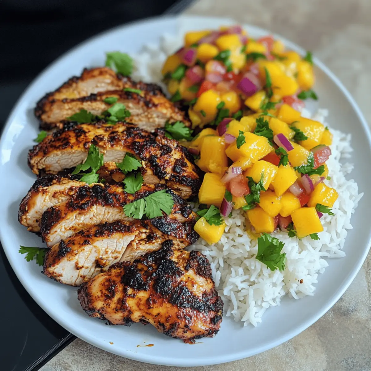 Der Duft von würziger Marinade in der Luft lässt meine Geschmacksknospen bereits vorfreudig tanzen. Jerk Chicken mit Mango Salsa und Kokosreis – das ist mein Geheimrezept für ein schnelles, aufregendes Abendessen! Diese Kombination aus saftigem, scharf gewürztem Hähnchen, cremigem Kokosreis und erfrischender Mangosalsa bringt die Aromen der Karibik direkt auf euren Teller. Mit nur 30 Minuten Zubereitungszeit ist dieses Gericht perfekt für einen hektischen Wochentag oder wenn ihr einfach etwas Besonderes auftischen möchtet. Zudem ist es nicht nur gesund, sondern auch ein wahrer Publikumsliebling, der garantiert für strahlende Gesichter am Tisch sorgt. Seid ihr bereit, eure Küche in ein Tropenparadies zu verwandeln? Warum ist Jerk Chicken so beliebt? Einzigartiger Geschmack: Der kräftige Mix aus Gewürzen und der süßen Mangosalsa sorgt für ein harmonisches Geschmackserlebnis, das man sich nicht entgehen lassen sollte. Schnelligkeit: In nur 30 Minuten zubereitet, ermöglicht dieses Rezept eine schnelle Feierabendmahlzeit, perfekt für stressige Tage. Gesund und nahrhaft: Mit frischen Zutaten ist dieses Gericht nicht nur köstlich, sondern auch nahrhaft – ideal für alle, die auf ihre Ernährung achten möchten. Vielseitigkeit: Kombiniert mit belebendem Kokosreis und optionalem Gemüse, wie einer einfachen Gemüsesauce oder einem frischen Salat, schafft ihr ein rundum leckeres Menü. Publikumsliebling: Egal ob Familie oder Gäste, die Mischung aus Aromen und die bunte Optik werden alle begeistern! Macht euch bereit für die Karibik auf dem Teller und entdeckt das Rezept für Avocado Toast Radieschen oder unser leckeres Hähnchen Reis Rezept für noch mehr Inspiration! Zutaten für Jerk Chicken Für das Hähnchen Hähnchenbrust ohne Haut – sorgt für zartes und saftiges Fleisch; Hähnchenschenkel können für mehr Geschmack verwendet werden. Jerk-Gewürz – verleiht dem Gericht seine charakteristische Schärfe; für einen milderen Geschmack kannst du auch eine eigene Gewürzmischung verwenden. Olivenöl – sorgt beim Braten für reichhaltigen Geschmack; kann durch neutrales Öl ersetzt werden. Für den Kokosreis Basmati-Reis – Grundlage des Gerichts für eine lockere Textur; Jasminreis kann ebenfalls verwendet werden für ein anderes Aroma. Kokosmilch – fügt Cremigkeit und eine süße Note hinzu; Milch kann zur Kalorienreduzierung alternativ verwendet werden. Salz – hebt den Geschmack; anpassen nach persönlichem Geschmack. Wasser – unerlässlich zum Kochen des Reises; sorgt dafür, dass der Reis gut hydratisiert wird. Für die Mangosalsa Mango – frisch und süß, perfekt für die Salsa; Ananas kann für eine tropische Alternative ebenfalls genutzt werden. Rote Zwiebel – sorgt für Crunch und Geschmack; kann durch Schalotten ersetzt werden, wenn es milder sein soll. Koriander – frisches Kraut, das für Garnitur und Geschmack sorgt; für Abwechslung kann Petersilie verwendet werden. Limettensaft – bringt Frische, die die Mango ergänzt; Zitronensaft kann kurzfristig genutzt werden. Zusätzliches Salz – zum Würzen der Salsa; je nach Vorliebe anpassen. Entdecke mit Jerk Chicken den aufregenden und würzigen Geschmack der Karibik in deiner eigenen Küche! Schritt-für-Schritt-Anleitung für Jerk Chicken mit Mango Salsa und Kokosreis Schritt 1: Reis zubereiten In einem Topf den Basmati-Reis, die Kokosmilch, Wasser und Salz vermengen. Bringt die Mischung bei mittlerer Hitze zum Kochen. Reduziert die Hitze auf niedrig, deckt den Topf ab und lasst den Reis etwa 15 Minuten lang köcheln, bis er weich und fluffig ist. Achtet darauf, den Reis später mit einer Gabel aufzulockern. Schritt 2: Hähnchen würzen Während der Reis kocht, die Hähnchenbrustfilets auf beiden Seiten großzügig mit dem Jerk-Gewürz einreiben. Erhitzt in einer großen Pfanne das Olivenöl bei mittlerer bis hoher Hitze. Sobald das Öl heiß ist, legt die Hähnchenbrust hinein und bratet sie 5-7 Minuten auf jeder Seite, bis sie goldbraun und durchgegart ist. Ein Fleischthermometer sollte 75 °C anzeigen. Schritt 3: Mangosalsa zubereiten In einer Schüssel die gewürfelte Mango, rote Zwiebel, Koriander, Limettensaft und eine Prise Salz vermengen. Rührt alles gut um, bis die Zutaten gleichmäßig verteilt sind. Die frische und süße Mangosalsa rundet das würzige Jerk Chicken perfekt ab und sorgt für einen schönen Kontrast. Schritt 4: Servieren Die fluffige Kokosreis-Basis auf Teller verteilen und die aufgeschnittenen Stücke des Jerk Chicken darüber anrichten. Löffelt großzügig die erfrischende Mangosalsa über das Hähnchen, um das Gericht optisch zu verfeinern. Sofort genießen und die Aromen der Karibik erleben! Lagerungstipps für Jerk Chicken Kühlschrank: Bewahre Reste von Jerk Chicken in einem luftdichten Behälter im Kühlschrank auf. So bleibt es bis zu 3 Tage frisch und schmackhaft. Gefrierschrank: Für eine längere Lagerung kannst du das Jerk Chicken einfrieren. Wickele die Stücke einzeln in Frischhaltefolie und lege sie in einen luftdichten Behälter. Eingelegt hält es bis zu 3 Monate. Wiedererwärmung: Um das marinierte Hähnchen aufzuwärmen, kannst du es im Ofen bei 180°C für 15-20 Minuten erhitzen oder in der Mikrowelle bei mittlerer Leistung bis zum Durchwärmen. Achte darauf, dass das Hähnchen vollständig erhitzt wird (mindestens 75 °C). Hauptgericht: Das Jerk Chicken kann problemlos zusammen mit dem Kokosreis aufbewahrt werden. Diese Kombination bleibt ebenfalls bis zu 3 Tage im Kühlschrank frisch. Variationen für Jerk Chicken Verleiht eurem Jerk Chicken mit kreativen Anpassungen neuen Schwung und genießt den wow-Effekt am Tisch! Vegetarisch: Tauscht das Hähnchen gegen Tofu aus. So bekommt ihr eine leckere, pflanzliche Variante, die ebenso lecker ist. Fruchtiger Twist: Fügt Ananasstücke zur Mangosalsa hinzu. Diese Süße ergänzt die Schärfe des Hähnchens perfekt und macht das Gericht noch tropischer. Kokosnuss-Streifen: Toppt euren Kokosreis mit ge