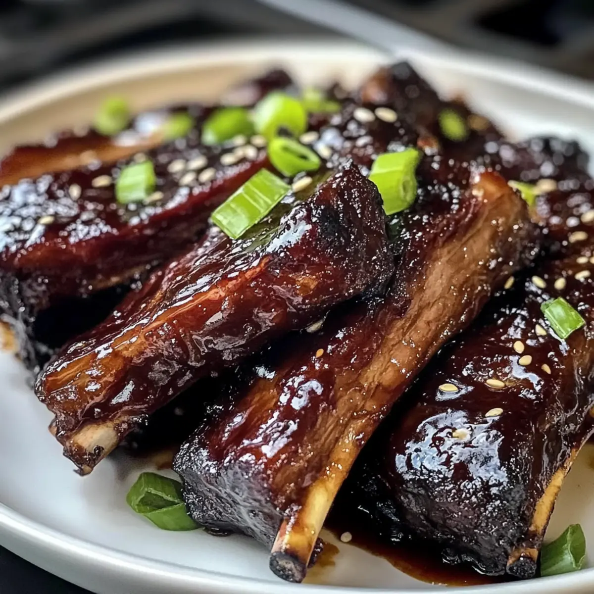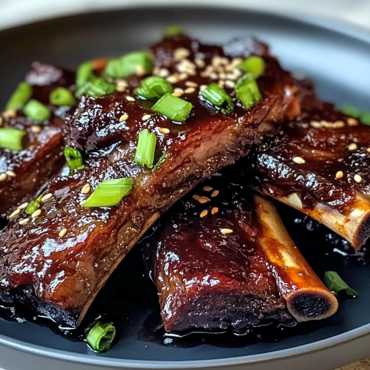Es war einmal ein grauer Sonntag, an dem ich beschloss, meinem Gaumen eine ganz besondere Freude zu bereiten. Die Karamellisierten langsam geschmorten asiatischen Rinderkurzrippen, die ich heute mit euch teilen möchte, sind nicht nur ein Fest für die Sinne, sondern auch ein wahres Komfortessen, das sich perfekt für gesellige Abende mit Freunden oder ein entspanntes Familienessen eignet. Mit einer köstlichen Marinade aus Sojasauce, braunem Zucker und einer Auswahl an Gewürzen wird dieses Gericht garantiert zum Highlight auf jedem Tisch. Der eingehende Aroma des Rindfleisches und die zarte Textur, die beim langsamen Schmoren entsteht, werden euch und eure Liebsten in Begeisterung versetzen. Habt ihr schon einmal darüber nachgedacht, wie ein wenig Geduld und die richtigen Zutaten den Unterschied ausmachen können? Warum werden diese Rinderkurzrippen Ihr Favorit? Einzigartiger Geschmack: Die komplexe Marinade aus Sojasauce, Honig und aromatischen Gewürzen sorgt für ein unvergessliches Geschmackserlebnis, das jeden Bissen zu einem Genuss macht. Vielseitigkeit: Diese Rinderkurzrippen finden sich perfekt zu gedämpften Reis oder geröstetem Gemüse, was sie ideal für jede Gelegenheit macht. Simplicity: Durch den slow cooking Prozess wird die Zubereitung kinderleicht und erfordert minimalen Aufwand. Beeindrucken Sie Ihre Gäste: Diese Ribs sind nicht nur köstlich, sondern auch ein wahrer Hingucker auf dem Tisch – perfekt für Dinnerpartys. Komfortessen: Sie bringen die Herzen und den Gaumen zusammen, damit Sie unvergessliche Momente mit Ihren Liebsten genießen können. Karamellisierte langsam geschmorte asiatische Rinderkurzrippen Zutaten • Diese köstlichen Rinderkurzrippen sind nicht nur ein Genuss für den Gaumen, sondern auch ein einfaches und schmackhaftes Hauptgericht. Für die Marinade Sojasauce – sorgt für herzhaften Umami-Geschmack; verwenden Sie Sojasauce mit reduziertem Natrium, um den Salzgehalt zu kontrollieren. Brauner Zucker – bringt eine süße Balance in das Gericht; kann durch Kokoszucker für eine gesündere Option ersetzt werden. Reisessig – verleiht eine erfrischende Säure; alternativ kann auch Weißweinessig verwendet werden. Hoisin-Sauce – sorgt für einen reichhaltigen, süßen Geschmacksprofil; miso kann als Ersatz dienen, wenn Hoisin nicht verfügbar ist. Ingwer (gehackt) – bringt Wärme und Gewürz; frischer Ingwer ist am besten, Pulver kann in einem Notfall verwendet werden. Knoblauch (gehackt) – fügt aromatische Tiefe hinzu; frischer Knoblauch wird bevorzugt, Knoblauchpulver kann aber auch verwendet werden. Sesamöl – bringt einen nussigen Geschmack mit; Sonnenblumenöl kann als leichtere Alternative verwendet werden. Chilipaste (optional) – verleiht Schärfe; kann weggelassen oder durch Sriracha ersetzt werden. Schwarzer Pfeffer – sorgt für eine milde Schärfe; frisch gemahlener Pfeffer schmeckt am besten. Für die Rinderkurzrippen Rinderkurzrippen – das Hauptprotein, das für seinen Geschmack und die zarte Textur sorgt; wählen Sie gut marmorierte Ribs für mehr Saftigkeit. Für die Garnitur Frühlingszwiebeln – verleihen dem Gericht Farbe und einen milden Zwiebelgeschmack; können durch Schnittlauch ersetzt werden. Sesamsamen – sorgen für einen knusprigen Kontrast und Geschmacksnuancen; auslassen, wenn Allergien bestehen. Schritt-für-Schritt-Anleitung für Karamellisierte langsam geschmorte asiatische Rinderkurzrippe Step 1: Rindfleisch vorbereiten Spülen Sie die Rinderkurzrippen unter kaltem Wasser ab und tupfen Sie sie mit Küchenpapier trocken. Diese Vorbereitung ist entscheidend, um überschüssiges Wasser zu entfernen und sicherzustellen, dass die Marinade gut anhaftet. Stellen Sie sicher, dass die Ribs gleichmäßig verteilt sind, um einen gleichmäßigen Garprozess zu gewährleisten. Step 2: Marinade zubereiten In einer großen Schüssel kombinieren Sie Sojasauce, braunen Zucker, Reisessig, Hoisinsauce, gehackten Ingwer, gehackten Knoblauch, Sesamöl, Chilipaste und schwarzen Pfeffer. Rühren Sie die Zutaten gut um, bis der Zucker vollständig aufgelöst ist. Diese aromatische Marinade bringt die köstlichen Aromen in die Karamellisierten langsam geschmorten asiatischen Rinderkurzrippen. Step 3: Rindfleisch marinieren Legen Sie die Rinderkurzrippen in einen wiederverschließbaren Beutel oder eine Schüssel und gießen Sie die Marinade darüber. Stellen Sie sicher, dass die Ribs vollständig mit der Marinade bedeckt sind. Verschließen Sie den Beutel oder decken Sie die Schüssel ab und stellen Sie sie für mindestens 2 Stunden, vorzugsweise über Nacht, in den Kühlschrank, damit die Aromen gut einziehen können. Step 4: Ofen vorheizen Heizen Sie Ihren Ofen auf 160 °C (325 °F) vor. Diese niedrige Temperatur ist ideal, um das Rindfleisch langsam zu schmoren und seine Zartheit zu maximieren. Während der Ofen aufheizt, können Sie die nächsten Schritte vorbereiten. Step 5: Rindfleisch anbraten Erhitzen Sie eine große Pfanne bei mittlerer bis hoher Hitze und geben Sie die marinierten Rinderkurzrippen hinein. Braten Sie die Ribs für etwa 3-4 Minuten pro Seite an, bis sie eine goldbraune Kruste haben. Das Anbraten hilft, die Aromen zu intensivieren und sorgt für eine schöne Farbe. Step 6: In die Bratpfanne übertragen Legen Sie die angebratenen Rinderkurzrippen in eine Bratpfanne und gießen Sie die verbleibende Marinade darüber. Achten Sie darauf, dass die Ribs gleichmäßig in der Marinade liegen, um optimalen Geschmack bei der langen Garzeit zu gewährleisten. Step 7: Bedecken und schmoren Decken Sie die Bratpfanne mit Alufolie ab und stellen Sie sie in den vorgeheizten Ofen. Schmoren Sie die Rinderkurzrippen für 3-4 Stunden, bis das Fleisch zart ist und sich leicht mit einer Gabel zerteilen lässt. Die langsame Garzeit sorgt dafür, dass die Aromen gut durchziehen. Step 8: Rippern karamellisieren Entfernen Sie die Alufolie in den letzten 30 Minuten des Garens, um eine köstliche Karamellisierung zu errei
