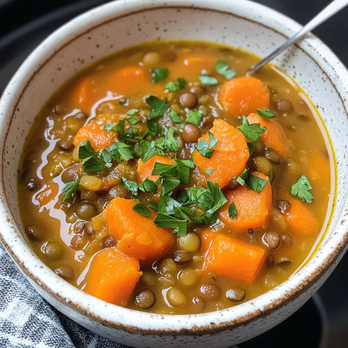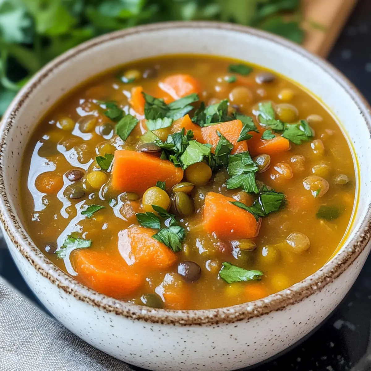 Diese Karotten- und Linsensuppe ist ein nahrhaftes Komfortessen, das schnell zubereitet wird und sowohl den Gaumen als auch die Seele erfreut.
