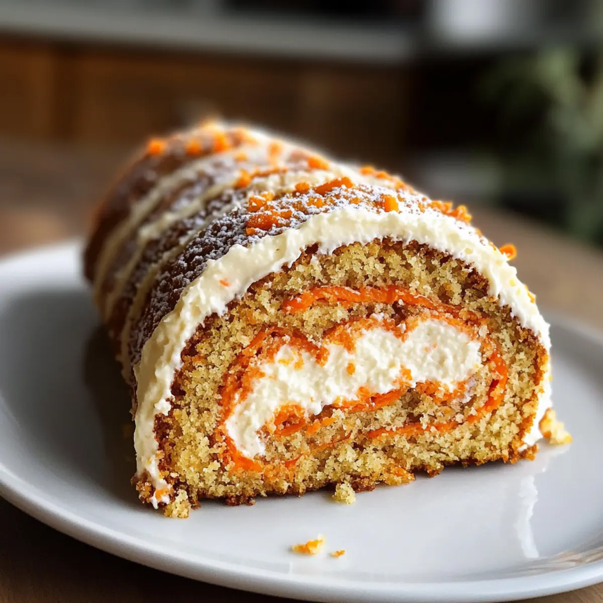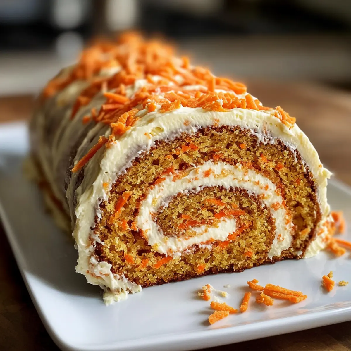 Die ersten Sonnenstrahlen des Frühlings bringen nicht nur warmeres Wetter, sondern auch die perfekte Gelegenheit, um etwas Leckeres zu zaubern! Heute teile ich ein Rezept für eine verführerische Karottenkuchenrolle mit Frischkäse-Frosting-Füllung, die einfach himmlisch ist. Diese Rolle vereint die saftige Konsistenz von Gewürzkarottenkuchen mit einer cremigen Füllung, die deinem Gaumen schmeichelt – und das Beste? Sie ist nicht nur ein echter Blickfang, sondern lässt sich auch schnell zubereiten und eignet sich hervorragend für besondere Anlässe. Ob als süßer Abschluss eines festlichen Essens oder als Highlight auf dem Ostertisch, diese Karottenkuchenrolle wird jeden begeistern. Bist du bereit, deine Gäste mit diesem köstlichen Dessert zu überraschen? Warum ist diese Karottenkuchenrolle besonders? Einfachheit: Die Zubereitung ist unkompliziert und erfordert keine besonderen Backkünste – ideal für jeden heimischen Bäcker! Verführerischer Geschmack: Die Kombination aus Gewürzkarottenkuchen und cremigem Frischkäse-Frosting sorgt für ein Geschmackserlebnis, das anspricht und begeistert. Perfekte Präsentation: Die elegante Spiralform und das schön dekorierte Äußere machen diese Rolle zum Highlight jeder Feier. Vielseitigkeit: Ob für Ostern, Geburtstage oder einfach für einen Kaffeeklatsch – dieses Dessert passt zu jedem Anlass. Zeitersparnis: Dank der schnellen Zubereitung bleibt mehr Zeit, um deine Gäste zu bewirten oder um andere Leckereien wie Avocado Toast Rezept oder Roll Französischer Toast vorzubereiten! Karottenkuchenrolle mit Frischkäse-Frosting-Füllung Zutaten • Hier sind die köstlichen Zutaten, die du für die Herstellung dieser verführerischen Karottenkuchenrolle mit Frischkäse-Frosting-Füllung benötigst: Für den Teig Allzweckmehl – sorgt für die Struktur und ein leichtes, fluffiges Ergebnis. Backpulver – ist ein wichtiges Triebmittel, das dafür sorgt, dass der Kuchen gleichmäßig aufgeht. Natron – wirkt in Kombination mit Säure und unterstützt das Aufgehen des Kuchens. Salz – hebt den Geschmack hervor und balanciert die Süße. Gemahlener Zimt – verleiht einen warmen, würzigen Geschmack, der typischerweise mit Karottenkuchen verbunden ist. Gemahlenen Ingwer – bringt eine zesty Note und zusätzliche Geschmackstiefe in den Teig. Gemahlene Muskatnuss – fügt eine sanfte Wärme hinzu und lässt den Kuchen noch aromatischer erscheinen. Große Eier – sorgen für Feuchtigkeit und Struktur; zimmerwarme Eier schaffen eine fluffigere Konsistenz. Zucker – trägt zur Süße bei und hilft, die Eier auf eine luftige Konsistenz zu schlagen. Vanilleextrakt – intensiviert das Gesamtaroma des Kuchens. Fein geriebene Karotten – liefern Feuchtigkeit und Geschmack; frisch geriebene Karotten sind ideal für die beste Textur. Pflanzenöl – sorgt für zusätzliche Saftigkeit und einen reichhaltigen Geschmack. Gehackte Walnüsse oder Pekannüsse – optional, um dem Kuchen eine knackige Textur und zusätzlichen Geschmack zu verleihen. Für die Füllung Frischkäse – sorgt für die cremige Konsistenz der Füllung; verwende Vollfett für das besten Ergebnis. Ungesalzene Butter – sorgt für eine angenehme Cremigkeit; die Butter sollte weich sein, um gut zu vermischen. Gesiebter Puderzucker – süßt die Füllung und hilft, eine glatte Konsistenz zu erreichen. Für das Bestäuben Puderzucker – verhindert das Ankleben während des Rollens und sorgt für ein schönes Finish. Wenn du diese Zutaten zusammenbringst, wirst du eine himmlische Karottenkuchenrolle mit Frischkäse-Frosting-Füllung kreieren, die alle Herzen erobern wird! Schritt-für-Schritt-Anleitung für die Karottenkuchenrolle mit Frischkäse-Frosting-Füllung Step 1: Vorbereiten der Form Heize den Ofen auf 175 °C vor. Lege ein 10×15-Zoll Backblech mit Backpapier aus und fette die Oberfläche leicht ein. Dies verhindert, dass die Karottenkuchenrolle am Blech kleben bleibt und sorgt für ein gleichmäßiges Backen. Step 2: Trockene Zutaten vermischen In einer mittelgroßen Schüssel vermischst du das Allzweckmehl, Backpulver, Natron, Salz, Zimt, Ingwer und Muskatnuss mit einem Schneebesen. Diese Mischung sorgt dafür, dass die trockenen Zutaten gleichmäßig verteilt sind und die Aromen beim Backen intensivieren. Step 3: Teig zubereiten In einer großen Rührschüssel schlägst du die Eier, den Zucker und den Vanilleextrakt 2-3 Minuten lang mit einem Handmixer, bis die Mischung dick und blass ist. Füge dann das Pflanzenöl hinzu und rühre die fein geriebenen Karotten unter. In mehreren Portionen faltest du die trockene Mischung hinein, bis alles gerade so vermischt ist. Step 4: Kuchen backen Gieße den Teig gleichmäßig auf das vorbereitete Backblech und streiche ihn glatt. Backe die Karottenkuchenrolle für 10-12 Minuten, bis die Oberfläche beim leichten Berühren zurückfedert und leicht goldbraun ist. Achte darauf, dass der Kuchen nicht zu lange backt, damit er nicht austrocknet. Step 5: Kuchen rollen Bestreue ein sauberes Küchentuch mit Puderzucker. Stülpe den gebackenen Kuchen sofort auf das Tuch, ziehe das Backpapier ab und rolle den Kuchen von der kurzen Seite her auf. Lass ihn vollständig in dieser Rolle abkühlen, damit er seine Form behält. Step 6: Füllung zubereiten Schlage den Frischkäse und die ungesalzene Butter in einer Rührschüssel mit einem Handmixer cremig. Füge nach und nach den gesiebten Puderzucker und den Vanilleextrakt hinzu und vermische alles, bis die Füllung schön fluffig und gut verbunden ist. Step 7: Zusammenstellen Rolle den abgekühlten Kuchen vorsichtig wieder auf und verstreiche die Frischkäsefüllung gleichmäßig darauf, wobei du einen kleinen Rand freihältst. Rolle den Kuchen ohne das Tuch wieder auf, wickele ihn in Frischhaltefolie und stelle ihn für mindestens eine Stunde in den Kühlschrank, damit er fest wird. Step 8: Servieren Vor dem Servieren kannst du die Karottenkuchenrolle mit etwas Puderzucker bestäube