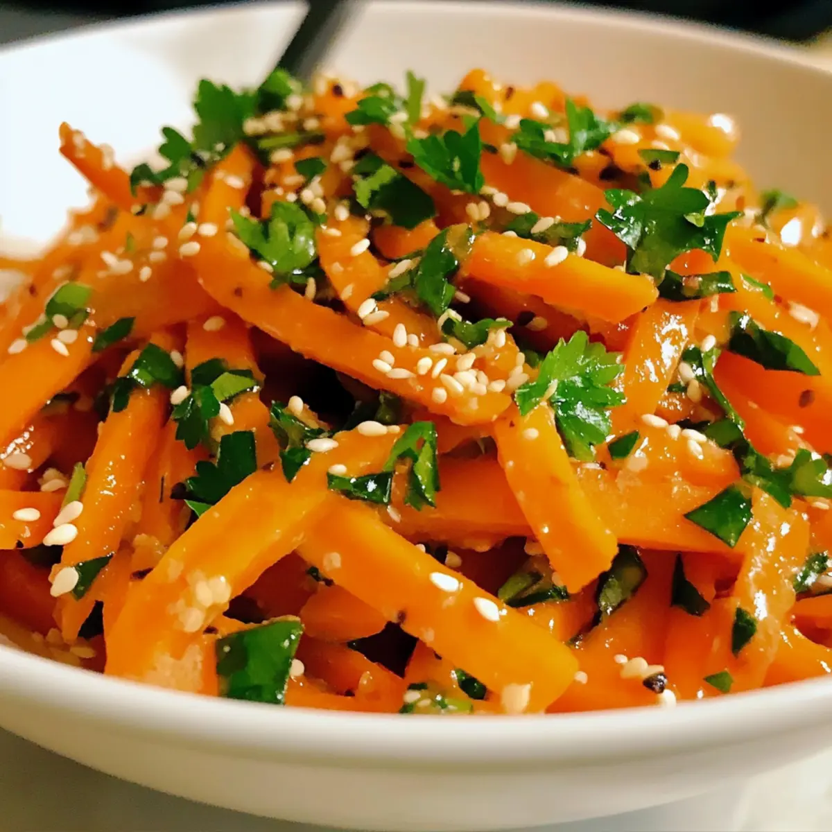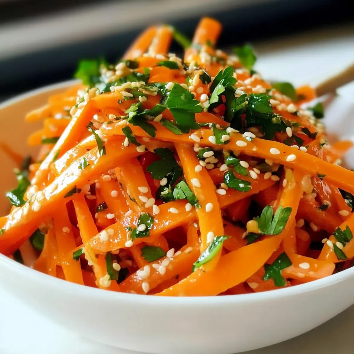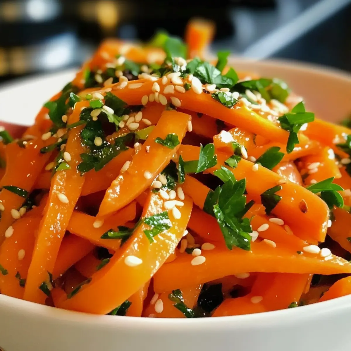 In der Hektik des Alltags kann es manchmal eine kleine Herausforderung sein, frische, gesunde Mahlzeiten auf den Tisch zu bringen. Genau hier kommt mein Karottensalat mit Ingwer-Sesam-Dressing ins Spiel. Diese köstliche Mischung aus knackigen Karotten und einem würzigen Dressing ist nicht nur im Handumdrehen zubereitet, sondern auch ein wahrer Hingucker auf jedem Esstisch. Veganer und glutenfreier Genuss, der sich perfekt als raffinierte Beilage oder leichtes Mittagessen eignet. Die frischen Zutaten verleihen diesem Salat nicht nur einen großartigen Geschmack, sondern auch eine Portion Vitalität! Wer könnte da widerstehen? Wagt ihr den ersten Bissen und entdeckt die unwiderstehliche Kombination aus Süße und Würze? Warum ist dieser Karottensalat so besonders? Frische, Dieser Karottensalat ist eine wahre Geschmacksexplosion, die deinen Gaumen mit jedem Bissen belebt. Einfachheit, In nur wenigen Minuten zauberst du eine gesunde und nahrhafte Beilage. Vielseitig, Sei es als Beilage zu gegrilltem Gemüse oder als leichtes Mittagessen, dieser Salat passt immer. Nährstoffreich, Vollgepackt mit Vitaminen und Ballaststoffen ist er ein echter Boost für dein Wohlbefinden. Vegan und glutenfrei, Perfekt für alle, die gesund leben möchten, ohne auf den Genuss zu verzichten. Entdecke auch meine Pistazien Traum Kekse oder probiere die Kokos Cheesecake Kekse für eine süße Abwechslung! Karottensalat mit Ingwer-Sesam-Dressing Zutaten • Entdecke die köstlichen Zutaten für diesen gesunden Salat! Für den Salat Karotten – sorgen für den knackigen Biss und die natürliche Süße; frische, feste Karotten bieten den besten Geschmack. Frischer Ingwer (gerieben) – bringt eine frische Schärfe und Wärme ins Spiel; bei Bedarf kann auch gemahlener Ingwer verwendet werden, aber sparsam dosieren. Frische Petersilie oder Koriander – verleiht dem Salat einen frischen Akzent; wähle je nach Vorliebe zwischen den beiden Kräutern. Für das Dressing Sesamöl – bringt einen reichen, nussigen Geschmack; verwende geröstetes Sesamöl für intensivere Aromen. Sojasauce – sorgt für Umami und salzige Würze; für eine glutenfreie Variante nutze Tamari. Honig (oder Agavendicksaft) – süßt das Dressing; kann durch Ahornsirup für eine vegane Option ersetzt werden. Reisessig – bringt Säure und Frische; Alternativen sind Apfelessig oder Zitronensaft. Für den Abschluss Sesamkörner – verbessern die Textur und den Geschmack; leicht rösten für zusätzlichen nussigen Geschmack. Mit diesen Zutaten wird dein Karottensalat mit Ingwer-Sesam-Dressing nicht nur gesund, sondern bietet auch einen herrlichen Genuss! Schritt-für-Schritt-Anleitungen für Karottensalat mit Ingwer-Sesam-Dressing Step 1: Karotten vorbereiten Schäle die Karotten mit einem Schäler und schneide sie entweder in feine Streifen (julienne) oder benutze eine Reibe für feine Karottenraspel. Achte darauf, dass die Karotten gleichmäßig geschnitten sind, um eine ansprechende Textur zu gewährleisten. Verteile die geschnittenen Karotten in einer großen Schüssel. Step 2: Dressing zubereiten In einer separaten Schüssel vermengst du das Sesamöl, den geriebenen Ingwer, die Sojasauce, den Honig oder Agavendicksaft sowie den Reisessig. Verwende einen Schneebesen, um die Zutaten gut zu vermischen, bis sie vollständig emulgiert sind und eine einheitliche Konsistenz erreicht ist. Der Geruch sollte frisch und einladend sein. Step 3: Zutaten kombinieren Gieße das vorbereitete Dressing über die julienned Karotten in der Schüssel. Mit einem großen Löffel oder einer Zange mischst du alles gründlich, bis die Karotten gleichmäßig mit dem Dressing überzogen sind. Dieser Karottensalat mit Ingwer-Sesam-Dressing sollte jetzt eine schöne glänzende Oberfläche haben. Step 4: Garnieren und Servieren Streue die gerösteten Sesamkörner über den Karottensalat und füge die frisch gehackte Petersilie oder den Koriander hinzu. Mische alles vorsichtig, um die Aromen zu vereinen. Du kannst den Salat sofort servieren oder ihn für 15-20 Minuten im Kühlschrank ziehen lassen, damit die Aromen intensiver werden. Was passt zu Karottensalat mit Ingwer-Sesam-Dressing? Dieser bunte Karottensalat bietet die perfekte Basis für eine köstliche Mahlzeit. Lass dich von den frischen, knackigen Aromen inspirieren und erweitere dein kulinarisches Erlebnis! Gegrilltes Hähnchen: Das saftige Hähnchen ergänzt die frischen Karotten ideal und sorgt für eine herzhafte Note. Diese Kombination bringt herzliche Aromen zusammen. Quinoa-Salat: Leicht und nahrhaft, bringt ein nussiges Aroma und zusätzliche Textur, die deinen Salat wunderbar ergänzt. Quinoa ist ein echter Nährstofflieferant! Frische Kräuterbrot: Ein warmes, knuspriges Brot bringt ein rustikales Element in dein Menü. Perfekt, um die köstlichen Dressingreste aufzunehmen. Geröstete Süßkartoffeln: Diese süße und leicht cremige Beilage harmoniert wunderbar mit der Säure des Dressings und sorgt für einen schönen Kontrast. Kokosjoghurt: Eine cremige und erfrischende Option, die perfekt zu den würzigen Noten des Salats passt. Probiere es einmal aus, um das Ganze abzurunden! Zitronen-Limonade: Ein spritziges Getränk, das den erfrischenden Geschmack des Salats unterstreicht und deine Sinne belebt. Ideal für warme Tage! Karottensalat mit Ingwer-Sesam-Dressing im Voraus zubereiten Dieser Karottensalat mit Ingwer-Sesam-Dressing ist ideal für die Meal Prep und spart dir wertvolle Zeit an hektischen Tagen! Du kannst die Karotten bis zu 24 Stunden im Voraus schälen und in Streifen schneiden; so bleiben sie frisch, wenn du sie in einem luftdichten Behälter im Kühlschrank aufbewahrst. Das Dressing lässt sich ebenfalls vorab zubereiten und bleibt bis zu 3 Tage gut, wenn du es in einem separaten Gefäß aufbewahrst. Kurz vor dem Servieren mischst du die Karotten mit dem Dressing, garnierts mit gerösteten Sesamkörnern und frisch gehackter Petersilie oder Koriander. So bleibt der Salat knackig und g