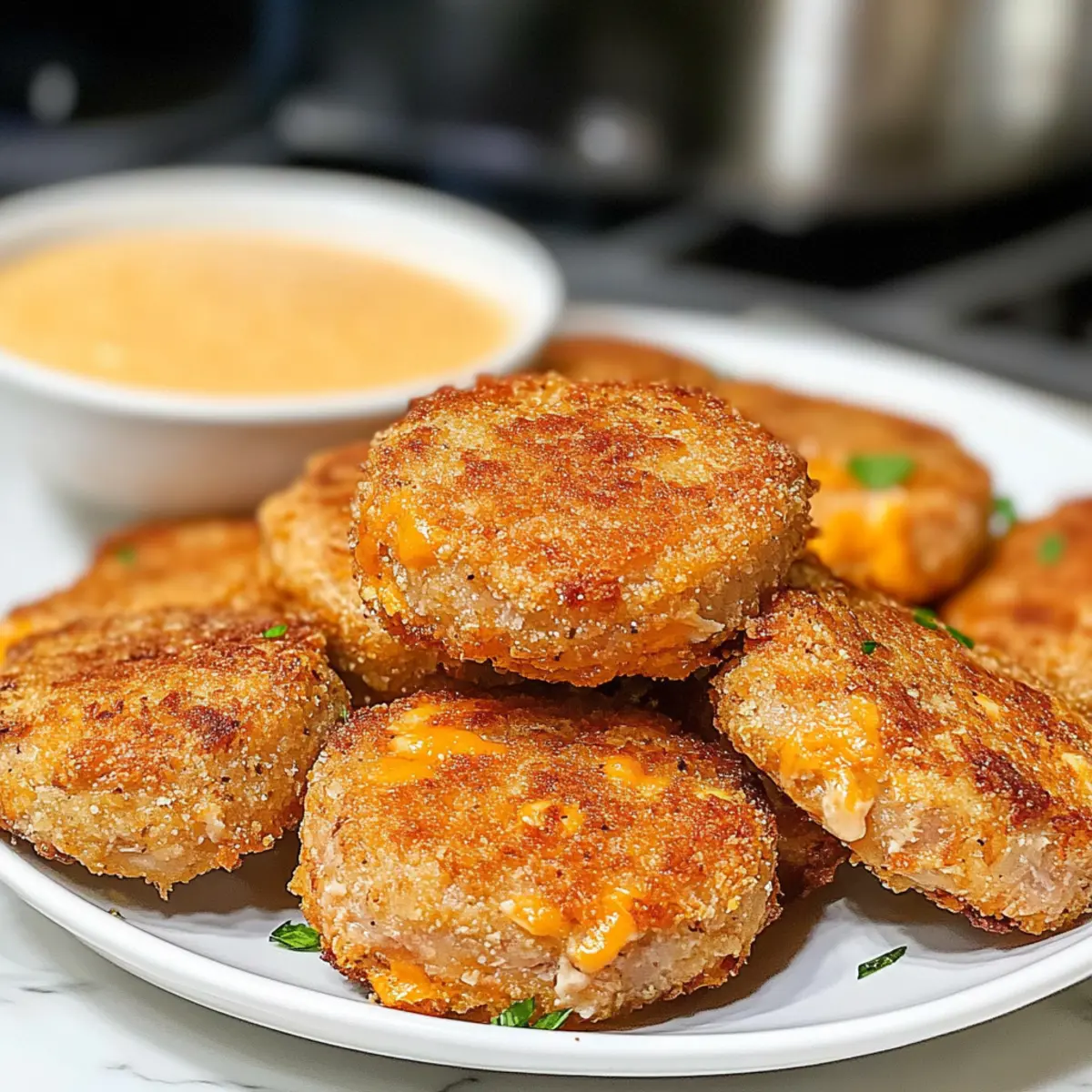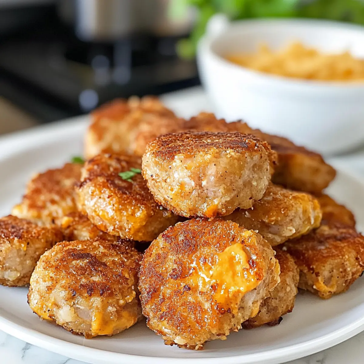 Als ich neulich in der Küche stand und die letzten Reste von Dosen-Thunfisch betrachtete, kam mir die Idee zu den Keto Heißluftfritteuse Thunfischbissen. Diese knusprigen Häppchen sind nicht nur eine vergessene Kindheitserinnerung an Chicken Nuggets, sondern auch eine köstliche und gesunde Option für alle, die auf ihre Kohlenhydrate achten. In nur zehn Minuten sind sie zubereitet und bieten eine proteinreiche Snack- oder Mittagessen-Alternative, die perfekt zu einem aktiven Lebensstil passt. Mit dieser einfachen und vielseitigen Rezeptur verwandelst du Dosenfisch in einen verlockenden Snack, den jeder lieben wird. Es ist Zeit, die Tradition des Fast Foods hinter dir zu lassen – wie klingt das für dich? Warum wirst du dieses Rezept lieben? Einfachheit: Die Zubereitung ist kinderleicht und erfordert keine besonderen Kochkünste – perfekt für jede Küche. Vielseitigkeit: Du kannst die Thunfischbissen mit verschiedenen Käsesorten oder Kräutern anpassen, um deinen Geschmack zu treffen. Gesunder Genuss: Reich an Eiweiß und arm an Kohlenhydraten, sind diese Bissen ideal für eine ketogene Ernährung und eine großartige Alternative zu ungesunden Snacks. Köstlicher Geschmack: Die Kombination aus würzigem Thunfisch und schmelzendem Käse erinnert an die besten Zeiten mit Chicken Nuggets – und das ganz ohne schlechtes Gewissen! Für mehr köstliche und gesunde Rezepte kannst du auch unseren Asiatisch Keto Kabeljau mit Pak Choi Rezept ausprobieren. Keto Heißluftfritteuse Thunfischbissen Zutaten • Entdecke die leckeren Zutaten für deine nächste kulinarische Kreation! Für die Bissen • Dosen-Thunfisch – Achte darauf, dass der Thunfisch gut abgetropft ist, um die Bissen nicht zu wässrig zu machen. • Geriebener Cheddar – Sorgt für eine köstliche Bindung und Geschmack; du kannst auch Pepper Jack verwenden für einen würzigen Kick. • Knoblauchpulver – Verleiht den Bissen die nötige Würze; die Menge kann nach Geschmack angepasst werden. • Zwiebelpulver – Gibt den Bissen eine angenehme Tiefe; frische Zwiebel ist ebenfalls möglich, einfach die Menge anpassen. • Eier – Binden die Mischung zusammen und geben Struktur; verwende große Eier für das beste Ergebnis. • Salz und Pfeffer – Würze nach Geschmack; passt die Menge nach deinen Vorlieben an. Für eine kreative Note und mehr Abwechslung beim Servieren, denke an die köstlichen Möglichkeiten mit diesen Zutaten! Die Keto Heißluftfritteuse Thunfischbissen werden ein Hit in deiner Küche sein! Schritt-für-Schritt-Anleitung für Keto Heißluftfritteuse Thunfischbissen Step 1: Zutaten vermengen Gib den gut abgetropften Dosen-Thunfisch, geriebenen Cheddar, Knoblauchpulver, Zwiebelpulver, Eier, Salz und Pfeffer in eine große Rührschüssel. Vermenge die Zutaten gründlich mit einer Gabel oder einem Löffel, bis die Mischung gleichmäßig und gut integriert ist. Dies sollte etwa 2-3 Minuten in Anspruch nehmen, bis eine homogene Masse entsteht, die gut zusammenhält. Step 2: Patties formen Nimm etwa die Größe eines Golfballs von der Thunfischmischung und forme sie vorsichtig zu kleinen Patties oder Bissen. Achte darauf, dass sie gleichmäßig und nicht zu dick sind, damit sie gleichmäßiger garen. Diese Keto Heißluftfritteuse Thunfischbissen sollten etwa 2-3 cm dick sein, um die perfekte Konsistenz zu erzielen. Step 3: Air Fryer vorbereiten Heize deine Heißluftfritteuse auf 200 °C (400 °F) vor. Während die Heißluftfritteuse aufheizt, lege ein Stück Backpapier in den Korb oder sprühe ihn leicht mit Kochspray ein, um ein Ankleben der Thunfischbissen zu verhindern. Dies sorgt dafür, dass die Bissen schön knusprig werden und eine goldene Farbe annehmen. Step 4: Patties garen Lege die geformten Patties vorsichtig in den Korb der Heißluftfritteuse, achte darauf, genügend Platz zwischen den Bissen zu lassen, damit die heiße Luft zirkulieren kann. Gare die Keto Heißluftfritteuse Thunfischbissen für 8-10 Minuten, bis sie goldbraun und knusprig sind. Halte nach der Hälfte der Garzeit Ausschau und wende die Patties vorsichtig, um eine gleichmäßige Bräunung zu gewährleisten. Step 5: Servieren Sobald die Bissen fertig und gut gebräunt sind, nimm sie vorsichtig aus der Heißluftfritteuse und lasse sie kurz auf einem Teller abkühlen. Die Keto Heißluftfritteuse Thunfischbissen sind nun bereit zum Servieren. Du kannst sie warm genießen, entweder solo oder mit deinen liebsten keto-freundlichen Dips wie Tartar oder Senf. Bereite deine Keto Heißluftfritteuse Thunfischbissen im Voraus vor! Die Keto Heißluftfritteuse Thunfischbissen sind nicht nur köstlich, sondern auch ideal für die Vorbereitung im Voraus, was dir wertvolle Zeit an hektischen Tagen spart. Du kannst die Thunfischmischung bis zu 24 Stunden im Voraus zubereiten und im Kühlschrank aufbewahren, damit die Aromen schön durchziehen. Achte darauf, dass die Mischung gut abgedeckt ist, um das Austrocknen zu verhindern. Wenn du bereit bist, die Bissen zu servieren, forme einfach die Patties und gare sie im vorgeheizten Air Fryer für 8-10 Minuten, bis sie goldbraun und knusprig sind. So hast du in kürzester Zeit ein leckeres, nahrhaftes Gericht, das genau wie frisch zubereitet schmeckt! Was passt zu Keto Heißluftfritteuse Thunfischbissen? Die Kombination dieser knusprigen Häppchen mit den richtigen Beilagen verwandelt dein Gericht in ein vollwertiges Erlebnis für die Sinne. Cremige Avocado-Dip: Dieser Dip ist voll von gesunden Fetten und ergänzt die Bissen mit einer samtigen Textur und mildem Geschmack. Zucchini-Nudeln: Leicht und frisch bringen sie eine knackige Komponente, die gut zu den herzhaften Thunfischbissen harmoniert. Gemischter Blattsalat: Ein bunter Salat sorgt für einen erfrischenden Kontrast und spendet viel Vitamine – perfekt für eine ausgewogene Mahlzeit. Eingelegte Gurken: Diese sind ein spritziger Begleiter, der die Aromen der Bissen hebt und eine zusätzliche Knackigkeit hinzufügt. Zitronen-Knoblauch-Dressing: D
