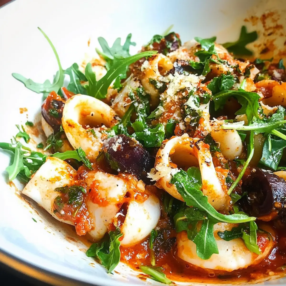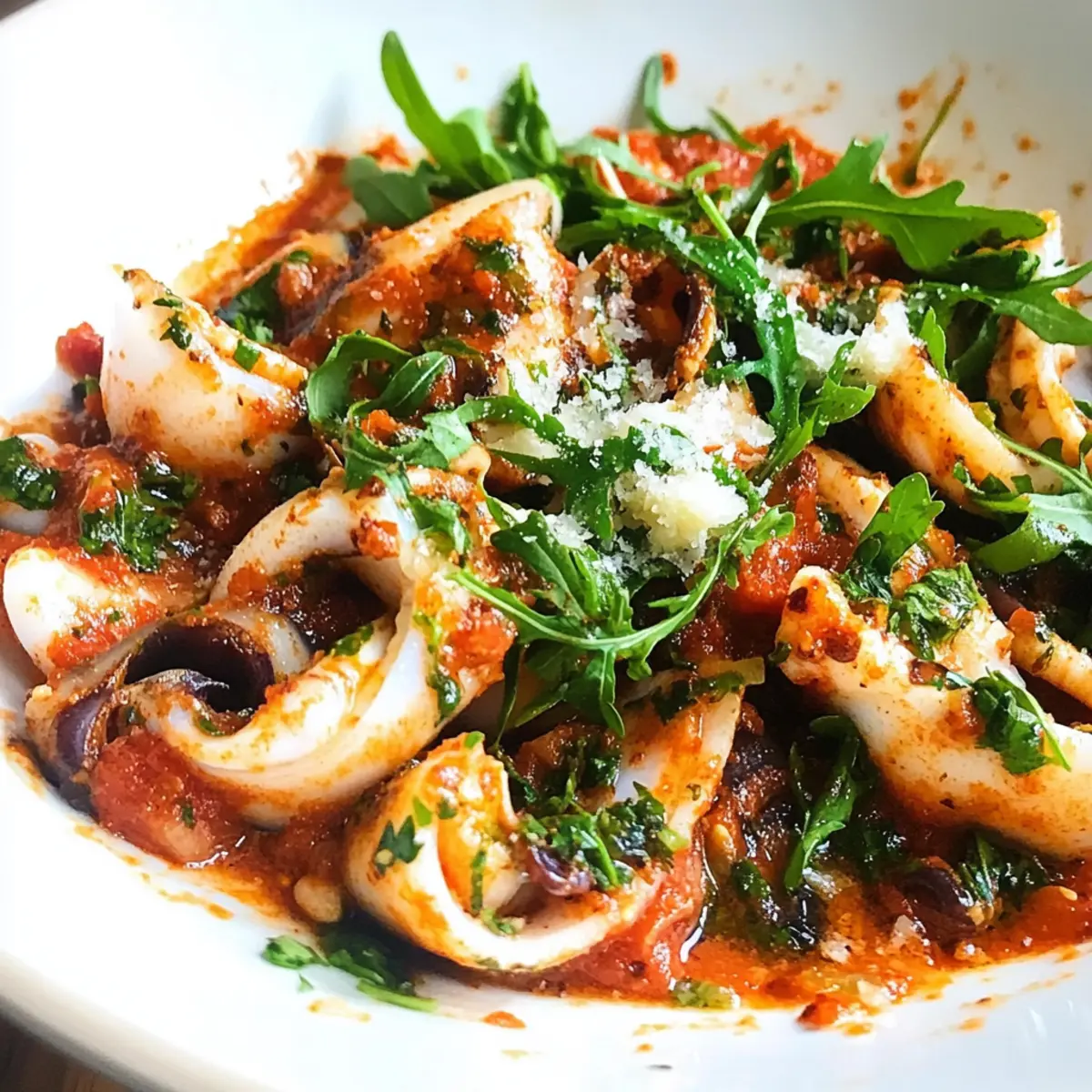 Es war ein schneller, hektischer Abend in meiner Küche, als ich beschloss, etwas Außergewöhnliches zu zaubern – einen Keto Knoblauch-Tintenfisch. Dieser köstliche Low-Carb-Leckerbissen vereint frischen Meeresfrüchte-Geschmack mit einer aromatischen Knoblauch-Tomaten-Sauce, die sowohl einfach zuzubereiten als auch unschlagbar befriedigend ist. Perfekt für geschäftige Wochenabende, verbindet dieses Rezept gesunde Zutaten mit einer Prise Kreativität und bringt ein Stück mediterraner Genuss auf den Tisch. Ob als schnelles Abendessen nach einem langen Tag oder als beeindruckendes Gericht für Gäste, dieser Tintenfisch wird garantiert zum Highlight! Neugierig, wie ich diesen köstlichen Schnellverschluss zubereite? Warum ist dieser Keto Knoblauch-Tintenfisch so besonders? Einfache Zubereitung: Mit nur wenigen Zutaten ist dieses Rezept ideal für alle, die eine schnelle, gesunde Mahlzeit zaubern möchten. Vielseitige Variationen: Du kannst die Zutaten nach Lust und Laune anpassen, etwa mit frischen Kräutern oder verschiedenen Meeresfrüchten. Aromatische Kombination: Der Geschmack von Knoblauch und Tomaten verstärkt die zarte Textur des Tintenfischs und sorgt für ein geschmackliches Erlebnis. Perfekt für Gäste: Beeindrucke deine Freunde und Familie mit einem Gericht, das aussieht und schmeckt, als hättest du stundenlang in der Küche gestanden. Gesund und Lecker: Ideal für eine Low-Carb-Diät, ohne dabei auf Genuss zu verzichten. Wenn du mehr über gesunde Meeresfrüchte erfahren möchtest, schau dir auch unsere Tipps zu gesunden Kochmethoden an. Keto Knoblauch-Tintenfisch Zutaten • Entdecke die köstlichen Zutaten für deinen nächsten Abendessen-Hit! Für den Tintenfisch Tintenfisch – dient als Hauptproteinquelle und sorgt für eine zarte Textur; kann bei Bedarf durch Calamari oder Garnelen ersetzt werden. Olivenöl – wird zum Sautieren verwendet und bringt Reichtum; achte auf hohe Qualität für den besten Geschmack. Knoblauch – intensiviert das Aroma; verwende frische Zehen für den maximalen Geschmack. Für die Sauce Tomatenmark – sorgt für Süße und Tiefe in der Sauce; im Sommer kannst du es durch frische, gewürfelte Tomaten in der gleichen Menge ersetzen. Basilikum – bietet eine frische, Kräuternote; getrockneter Basilikum kann alternativ verwendet werden. Oliven – fügt Salzigkeit und Textur hinzu; grüne oder schwarze Oliven nach Vorliebe verwenden. Für die Garnitur Rucola – bringt eine frische, pfeffrige Note; kann weggelassen oder durch Spinat ersetzt werden. Parmesankäse – fügt Cremigkeit und Umami hinzu; für eine vegane Alternative kann auch Nährhefe genutzt werden. Schritt-für-Schritt-Anleitung für Keto Knoblauch-Tintenfisch Step 1: Öl erhitzen Erhitze in einer großen Pfanne bei mittlerer Hitze zwei Esslöffel Olivenöl. Achte darauf, dass das Öl leicht schimmert, bevor du die nächsten Zutaten hinzufügst. Dies ist ein wichtiger Schritt, um das Aroma im Keto Knoblauch-Tintenfisch optimal zur Geltung zu bringen. Step 2: Knoblauch anbraten Füge zwei bis drei zerdrückte Knoblauchzehen in die heiße Pfanne und brate sie für etwa eine Minute an, bis sie goldbraun sind und duftend werden. Achte darauf, dass der Knoblauch nicht verbrennt, da er sonst bitter werden kann. Dies gibt deinem Gericht eine köstliche Basis. Step 3: Tintenfisch hinzufügen Gib den vorbereiteten Tintenfisch in die Pfanne und brate ihn für 2 bis 3 Minuten, bis er undurchsichtig und zart wird. Rühre regelmäßig um, damit der Tintenfisch gleichmäßig gart und nicht anhaftet. Dies ist der Moment, in dem die Aromen der anderen Zutaten miteinander verschmelzen. Step 4: Sauce zubereiten Füge nun zwei Esslöffel Tomatenmark und eine Handvoll frische oder getrocknete Basilikumblätter hinzu. Rühre alles gut um und koche es für eine weitere Minute. Der Keto Knoblauch-Tintenfisch sollte nun ein angenehmes, rotes Aroma abgeben, während die Zutaten miteinander kombiniert werden. Step 5: Oliven und Rucola hinzufügen Gib eine halbe Tasse Oliven und eine Handvoll frischen Rucola in die Pfanne und koche alles für etwa eine weitere Minute, bis der Rucola verwelkt ist. Achte darauf, dass die Oliven gut verteilt sind, damit sie der Sauce ihren herzhaften Geschmack verleihen. Step 6: Anrichten und servieren Nimm die Pfanne vom Herd und serviere den Keto Knoblauch-Tintenfisch in einer Schüssel. Bestreue das Gericht mit frisch geriebenem Parmesan-Käse oder einer veganen Alternative, wenn gewünscht. Sofort genießen, damit die Aromen frisch und lebendig bleiben! Variationen & Alternativen für Keto Knoblauch-Tintenfisch Gestalte deinen Keto Knoblauch-Tintenfisch nach deinen Vorlieben und entdecke neue Geschmackserlebnisse! Dairy-Free: Ersetze Parmesan durch Nährhefe für eine vegane Option, die trotzdem umami-reich ist. Du wirst überrascht sein, wie cremig und schmackhaft es wird! Spicy Kick: Füge während des Anbratens eine Prise rote Pfefferflocken hinzu, um dem Gericht eine angenehme Schärfe zu verleihen. So wird aus deinem Tintenfisch ein aufregendes Geschmackserlebnis. Verdickte Sauce: Koche eine kleine Menge Gemüsebrühe mit einem Teelöffel Xanthan-Gum, um die Sauce cremiger zu machen. Dies verleiht deinem Gericht eine noch reichhaltigere Textur. Seafood-Mix: Probiere unterschiedliche Meeresfrüchte wie Garnelen oder Muscheln in Kombination mit dem Tintenfisch aus. So werden die Aromen noch bunter und abwechslungsreicher! Zoodles verwenden: Tausche den Tintenfisch gegen Zoodles (Zucchini-Nudeln) für eine völlig andere, niedrigere Kohlenhydrat-Version. Diese frische und knackige Alternative macht dein Gericht noch leichter. Kräuterwechsel: Experimentiere mit frischen Kräutern wie Koriander oder Petersilie anstelle von Basilikum. Dies bringt eine neue geschmackliche Dimension in die Sauce. Geräucherte Oliven: Verwende geräucherte statt normaler Oliven für eine herzhaftere Note. Diese kleine Änderung bringt einen faszinierenden Twist in dein Rezept. Veg