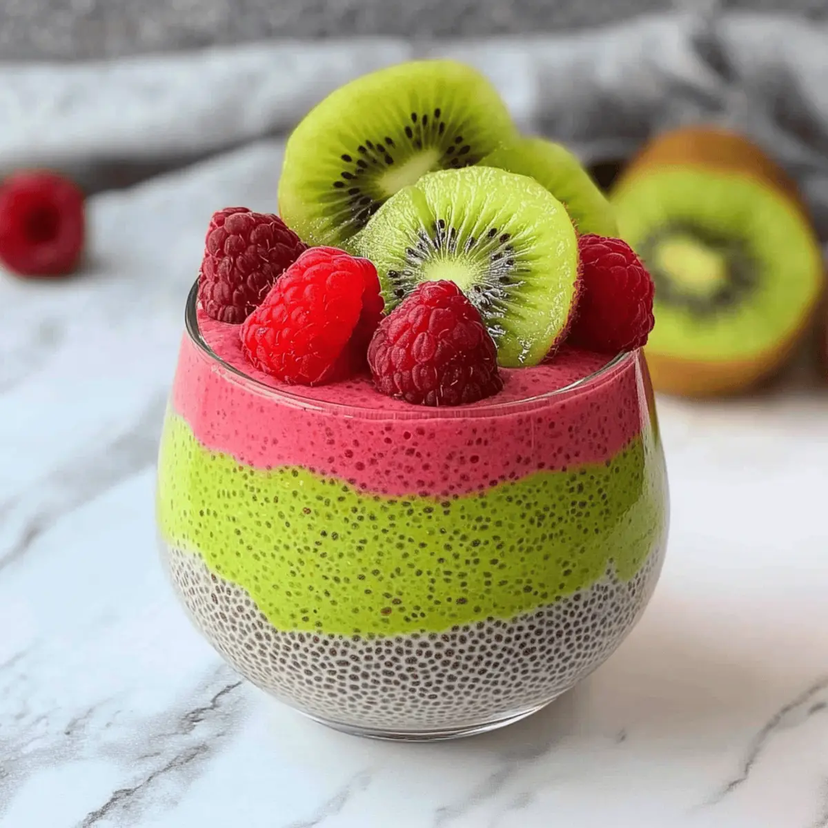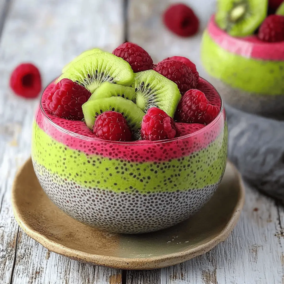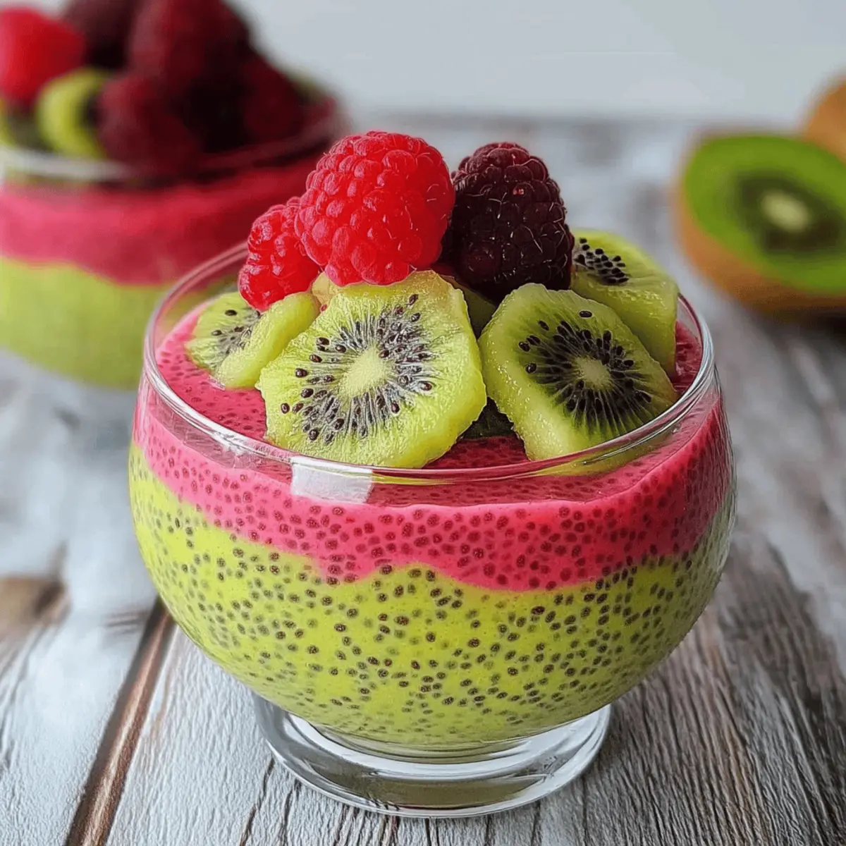 Als ich das erste Mal die leuchtenden Schichten von Kiwi und Himbeer-Chiapudding entdeckte, wusste ich sofort, dass ich etwas ganz Besonderes kreiert hatte. Diese Rezeptur kombiniert nicht nur fruchtige Aromen, sondern auch gesundheitsfördernde Nährstoffe, die uns bei Laune halten. Der Kiwi und Himbeer-Chiapudding ist zuckerarm, vegan und glutenfrei – perfekt für alle, die gesunde Snacks und Frühstücksideen lieben. Die Zubereitung ist schnell und einfach, was bedeutet, dass ihr im Handumdrehen ein köstliches und sättigendes Gericht zaubern könnt, das auch noch wunderschön aussieht. Wer kann da schon widerstehen? Seid ihr bereit, euer Frühstück farbenfroh zu gestalten? Warum ist dieser Chia Pudding besonders? Frische Vielfalt: Die Kombination aus Kiwi und Himbeeren sorgt für einen erfrischenden und fruchtigen Genuss. Gesunde Nährstoffe: Dank der Chia-Samen liefert der Pudding wertvolle Omega-3-Fettsäuren und Ballaststoffe. Einfaches Rezept: Mit wenigen Zutaten und einer unkomplizierten Zubereitung eignet sich dieses Rezept bestens für Kochanfänger und Vielbeschäftigte. Vielseitig: Variiert die Schichten mit euren Lieblingsfrüchten oder ergänzt etwas Nussbutter für extra Cremigkeit. Auge schmeckt mit: Die leuchtenden Farben machen diesen Chia Pudding zum perfekten Highlight auf jedem Frühstückstisch – ideal für die ganze Familie! Für weitere gesunde Frühstücksideen schaut euch auch unser Rezept für Streuselkuchen mit Pudding an. Kiwi und Himbeer Chia Pudding Zutaten Für die Chia-Schicht: • Chia-Samen – sorgen für die gewünschte Konsistenz und Nährstoffdichte; könnt ihr auch durch Leinsamen ersetzen. • Kokosmilch – dient als cremige Basis; nutzt für eine leichtere Version Mandelmilch oder andere Pflanzenmilch. Für die pinke Schicht: • Gefrorene Himbeeren – bringen Süße und Farbe; frische Himbeeren sind eine gute Alternative, wenn verfügbar. • Banane (x2) – sorgt für natürliche Süße und eine dicke Konsistenz; ersetzt eine Banane gegebenenfalls durch Mango für einen anderen Geschmack. Für die grüne Schicht: • Spinat – fügt Nährstoffe hinzu, ohne den Geschmack zu verändern; kann auch durch Grünkohl ersetzt werden. • Kiwis – bieten erfrischenden Geschmack und schöne Farbe; eventuell auch durch grüne Äpfel ersetzen. • Eis – kühlt und verdickt die grüne Schicht; kann weggelassen werden, wenn ihr eine dickere Konsistenz bevorzugt. Garnierung: • Geschnittene Früchte – bietet zusätzliche Textur und ansprechende Präsentation. Mit diesen Zutaten zaubert ihr ganz einfach euren eigenen Kiwi und Himbeer Chia Pudding, ein köstlicher und gesunder Snack! Schritt-für-Schritt-Anleitung für Kiwi und Himbeer Chia Pudding Step 1: Chia-Schicht vorbereiten Vermische die Chia-Samen mit 1½ Tassen Kokosmilch in einer mittelgroßen Schüssel. Rühre kräftig um, damit sich die Samen gut verteilen. Decke die Schüssel ab und stelle sie für mindestens 2 Stunden oder über Nacht in den Kühlschrank, bis die Mischung fest und gelartig wird. Step 2: Basis schichten Nimm die fest gewordene Chia-Schicht aus dem Kühlschrank und teile sie gleichmäßig auf zwei Gläser auf. Mit einem Löffel kannst du die Schichten gut anrichten, sodass sie durch die transparenten Gläser schön sichtbar sind. Step 3: Pinke Schicht erstellen Gib die gefrorenen Himbeeren, eine Banane und ¼ Tasse Kokosmilch in einen Mixer. Püriere alles zu einer glatten und cremigen Konsistenz. Achte darauf, dass die Mischung dick genug ist, um nicht mit der Chia-Schicht zu vermischen. Gieße die pinke Schicht vorsichtig über die Chia-Schicht in den Gläsern. Step 4: Grüne Schicht kreieren In demselben Mixer kombinierst du die zweite Banane, den Spinat, die Kiwis, das Eis und 2 Esslöffel Kokosmilch. Püriere die Zutaten bis zur gewünschten cremigen und dicken Konsistenz. Vorsichtig die grüne Schicht über die pinke Schicht gießen, sodass die Farben schichtenartig erhalten bleiben. Step 5: Garnieren Dekoriere die Oberseite jedes Glases mit geschnittenen Früchten, um zusätzliche Textur und ansprechende Präsentation zu schaffen. Die leuchtenden Farben sorgen dafür, dass dein Kiwi und Himbeer Chia Pudding auch visuell ein Genuss ist. Step 6: Servieren Der Kiwi und Himbeer Chia Pudding kann direkt genossen werden, vorzugsweise gekühlt als gesunder Snack oder ein farbenfrohes Frühstück. Achte darauf, die Puddings vor dem Servieren noch einmal kurz zu kühlen, damit sie erfrischend bleiben. Tipps für den besten Kiwi und Himbeer Chia Pudding Chia richtig einweichen: Achte darauf, die Chia-Samen mindestens 2 Stunden oder über Nacht quellen zu lassen, damit die Konsistenz perfekt wird. Dicke Schichten: Die Smoothies für die pinke und grüne Schicht sollten dick sein, damit sie sich nicht vermischen. Variationen hinzufügen: Experimentiere mit verschiedenen Früchten oder Nussbutter, um deinen Kiwi und Himbeer Chia Pudding zu verfeinern. Einfache Garnitur: Frisch geschnittene Früchte auf dem Pudding sorgen nicht nur für extra Geschmack, sondern auch für eine hübsche Präsentation. Aufbewahrung: Bewahre die Puddings in einem luftdichten Behälter im Kühlschrank auf, um Frische und Geschmack zu erhalten. Variationen & Alternativen Lass deinem Kiwi und Himbeer Chia Pudding eine persönliche Note geben – die Möglichkeiten sind grenzenlos! Milchfreie Option: Verwende Mandelmilch anstelle von Kokosmilch für einen leichteren Geschmack. Tropische Frucht: Tausche den Spinat gegen Mangostücke aus, um eine süßere und exotische grüne Schicht zu kreieren. Beerenmix: Ersetze die Himbeeren durch eine Mischung aus Erdbeeren und Blaubeeren für mehr Abwechslung. Proteinreich: Füge einen Esslöffel Erdnussbutter oder Mandelmus zur Pinken Schicht hinzu, um den Pudding proteinreicher zu machen. Würziger Kick: Eine Prise Zimt oder Ingwer in der grünen Schicht bringt eine unerwartete Geschmackstiefe. Süßere Note: Ergänze die Mischung um Honig oder Ahornsirup, um